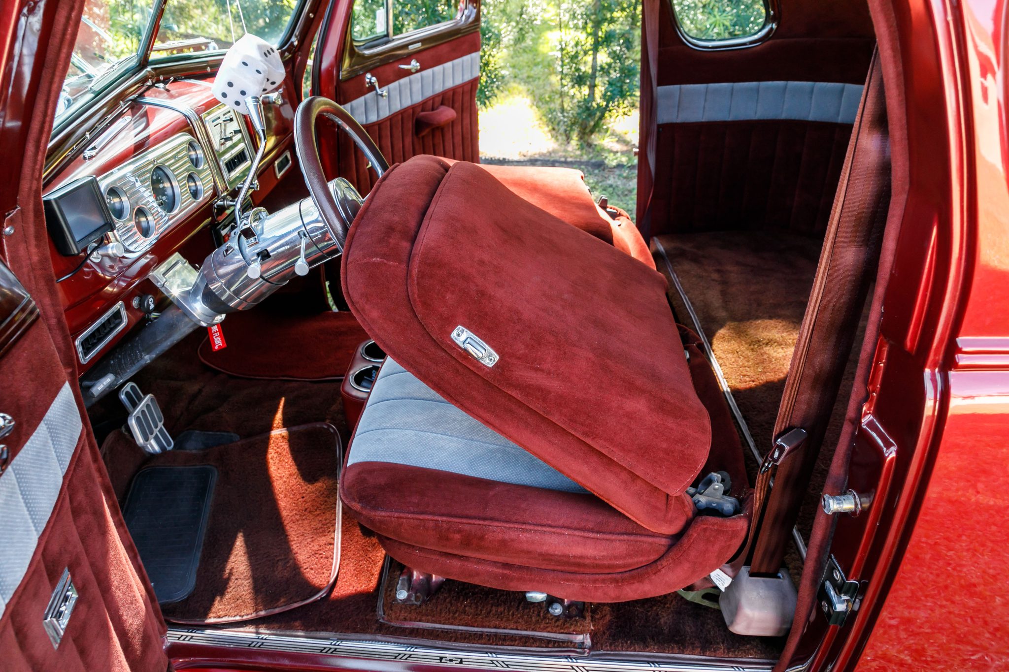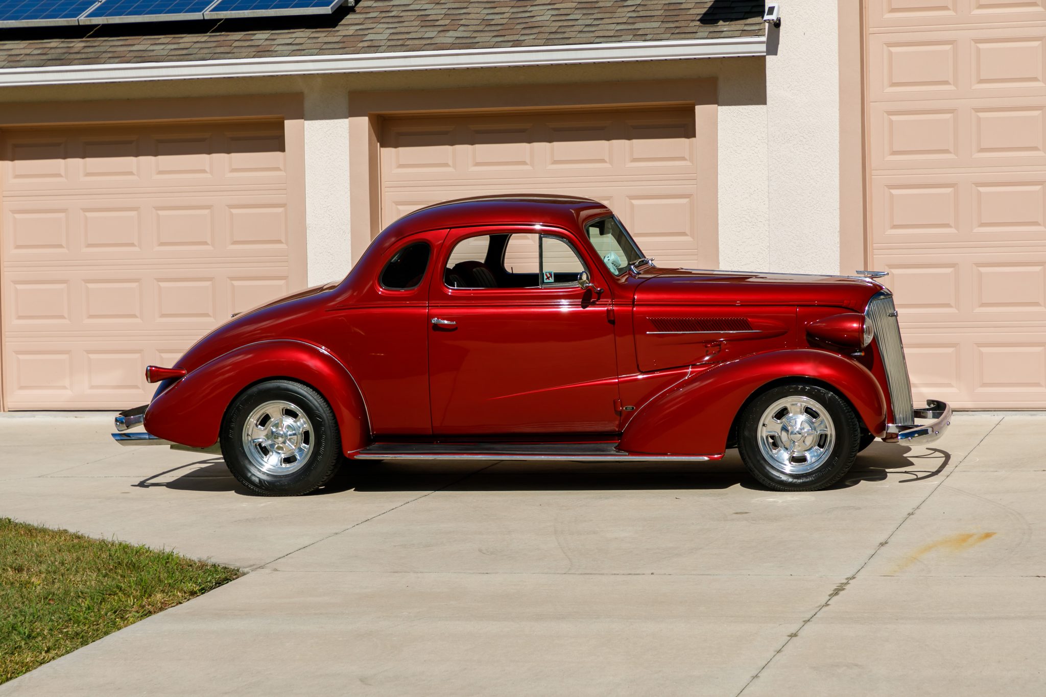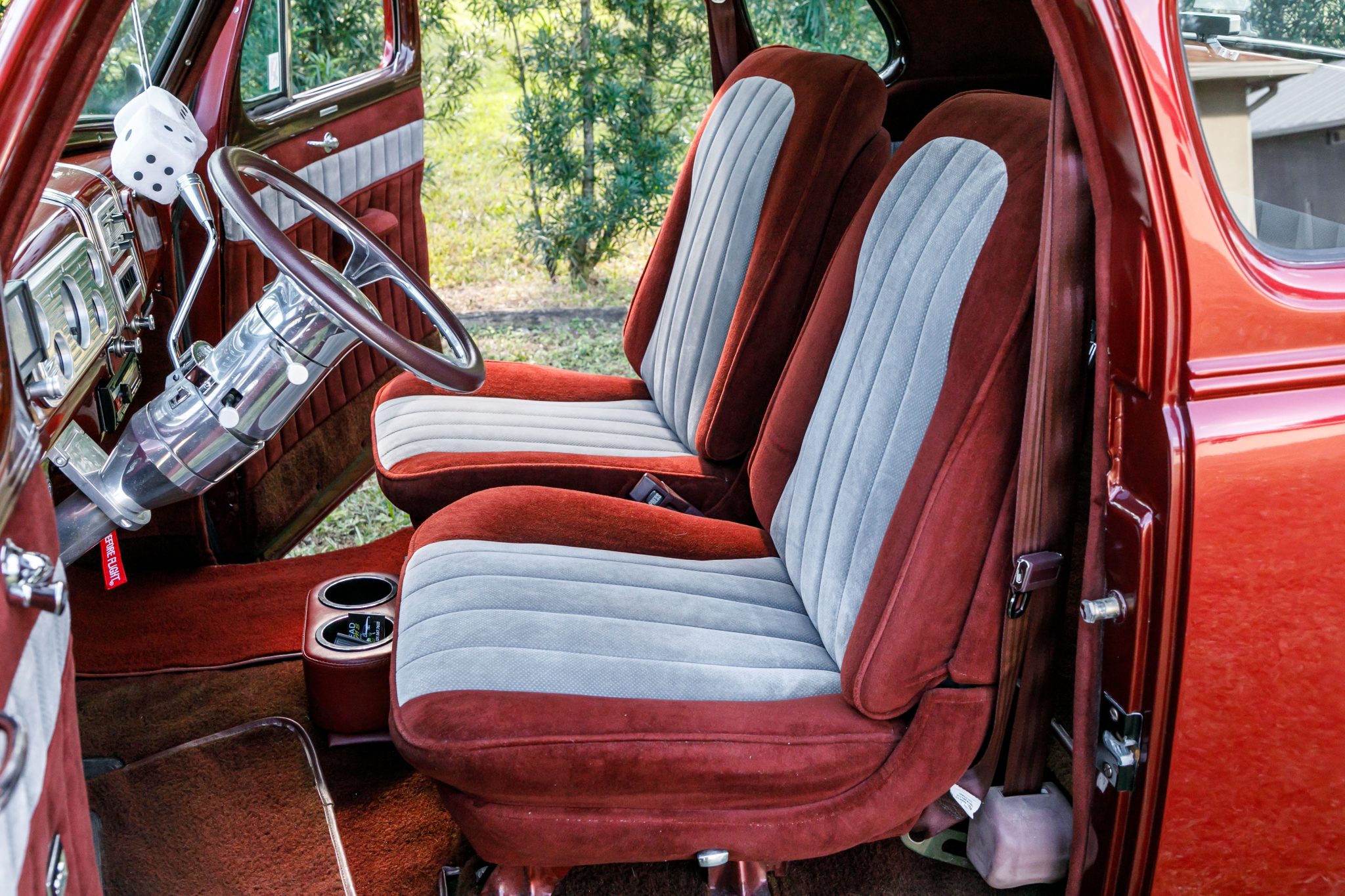 Power comes from a 400ci V8 with a Holley electronic fuel injection system, and it is backed by a TH350 three-speed automatic transmission and a 9” rear end. The car rides on Billet Specialties 15” wheels and fabricated suspension featuring a Mustang II-style front subframe, a four-link rear setup, coilovers, and four-wheel disc brakes. Inside, two-tone cloth upholstery is joined by a tilting steering column and VDO gauges as well as as Vintage Air climate control, power windows, and an Alpine CD head unit.