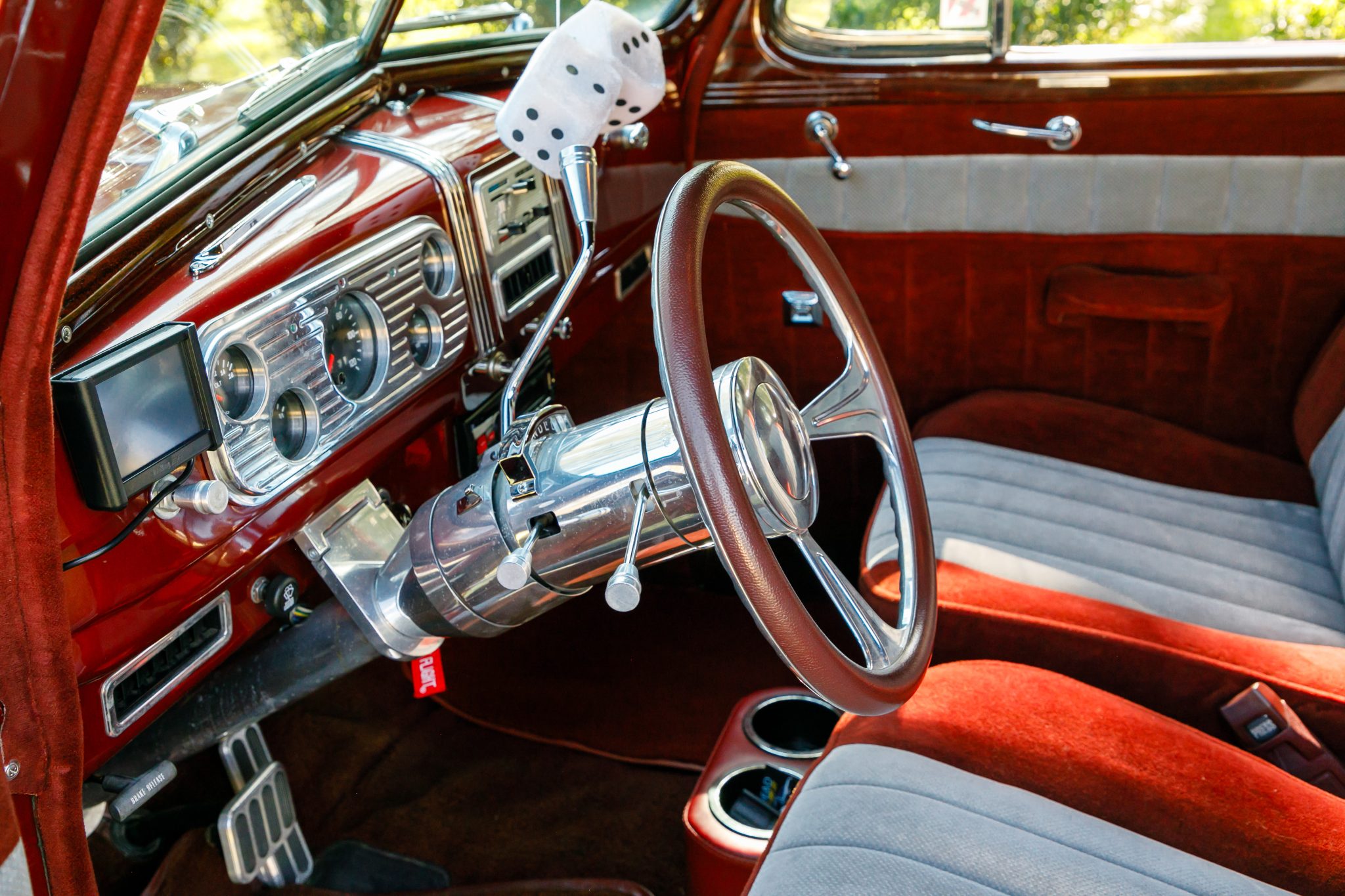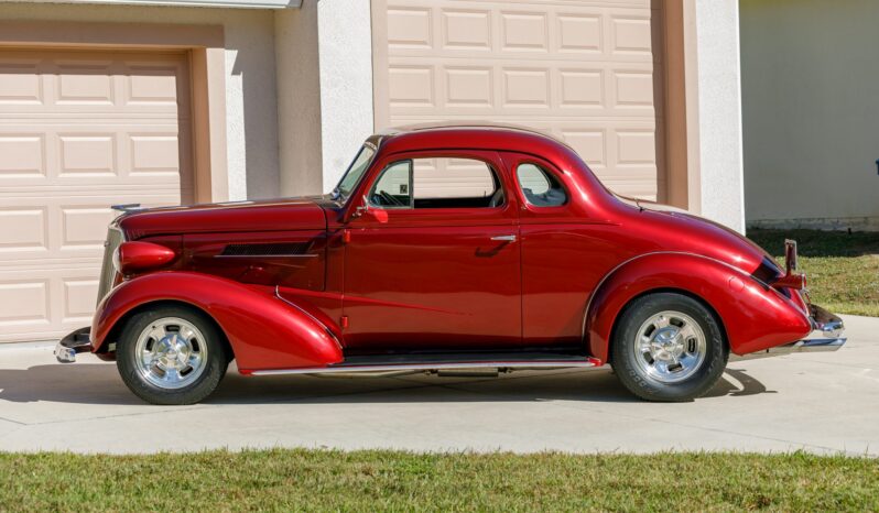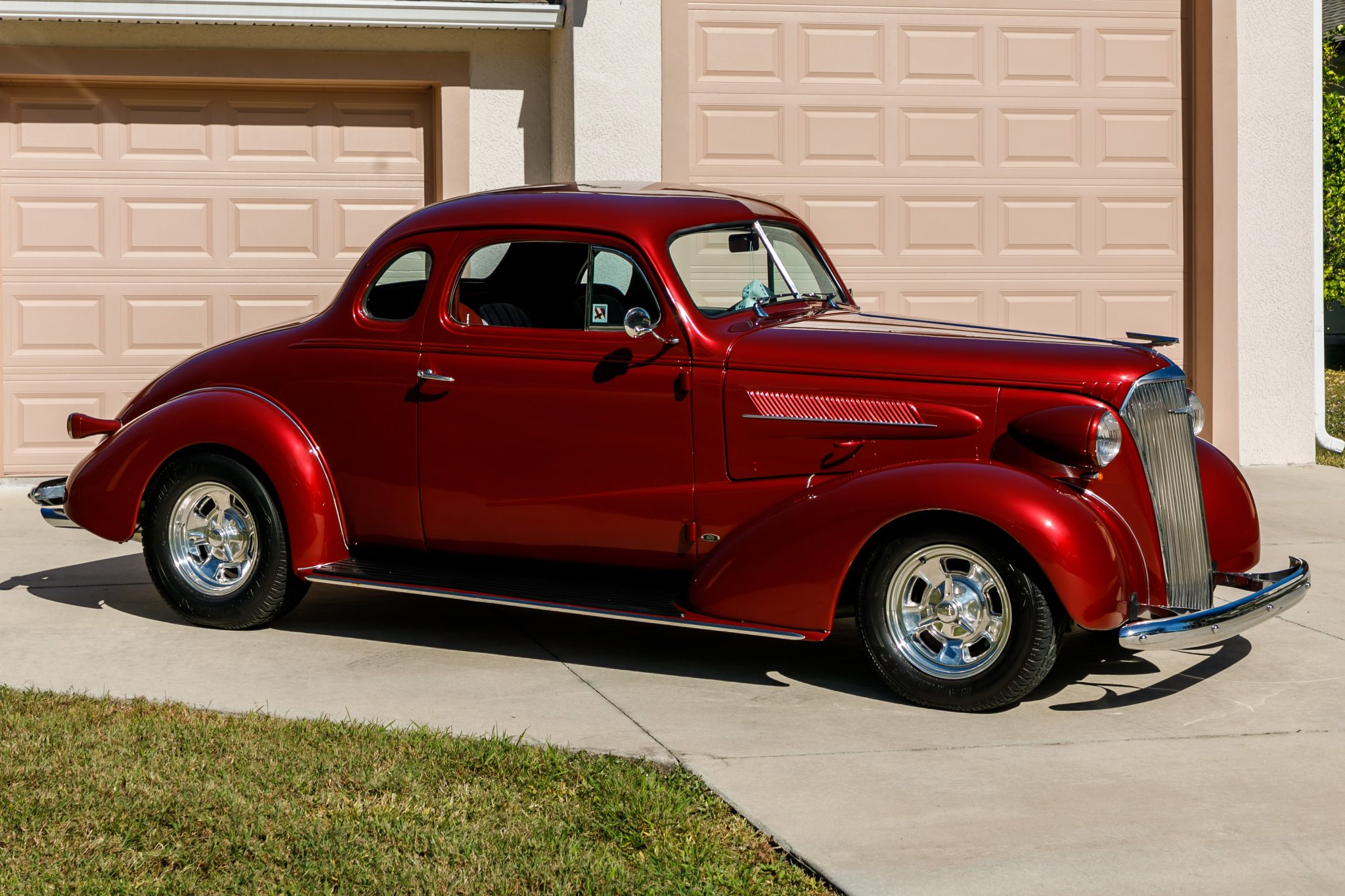 Power comes from a 400ci V8 with a Holley electronic fuel injection system, and it is backed by a TH350 three-speed automatic transmission and a 9” rear end. The car rides on Billet Specialties 15” wheels and fabricated suspension featuring a Mustang II-style front subframe, a four-link rear setup, coilovers, and four-wheel disc brakes. Inside, two-tone cloth upholstery is joined by a tilting steering column and VDO gauges as well as as Vintage Air climate control, power windows, and an Alpine CD head unit.
