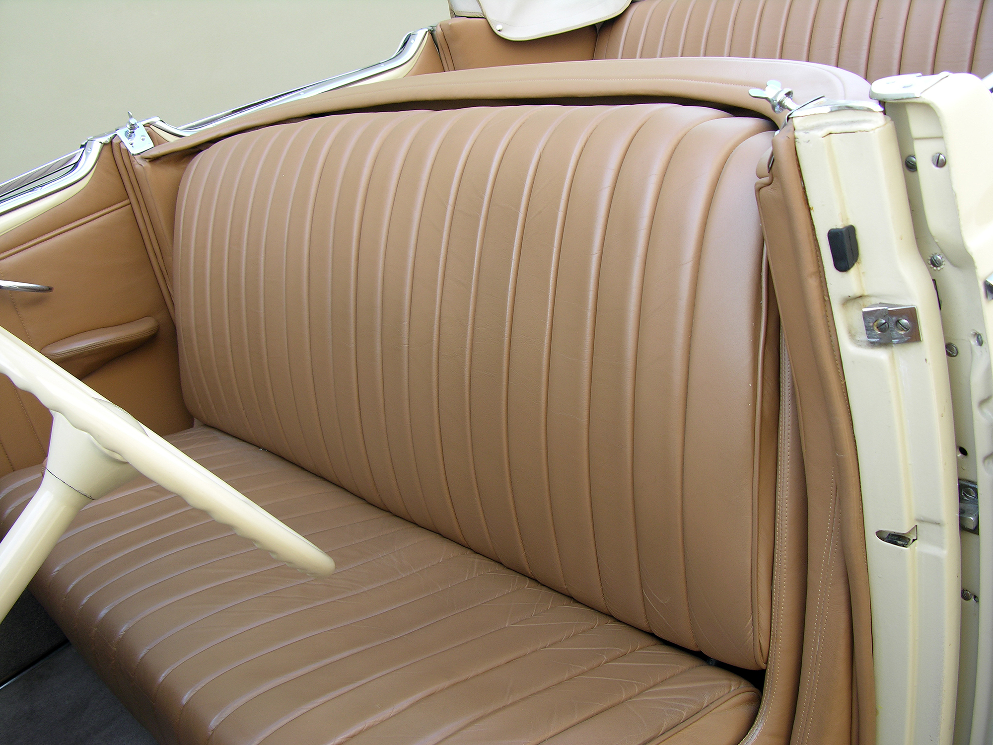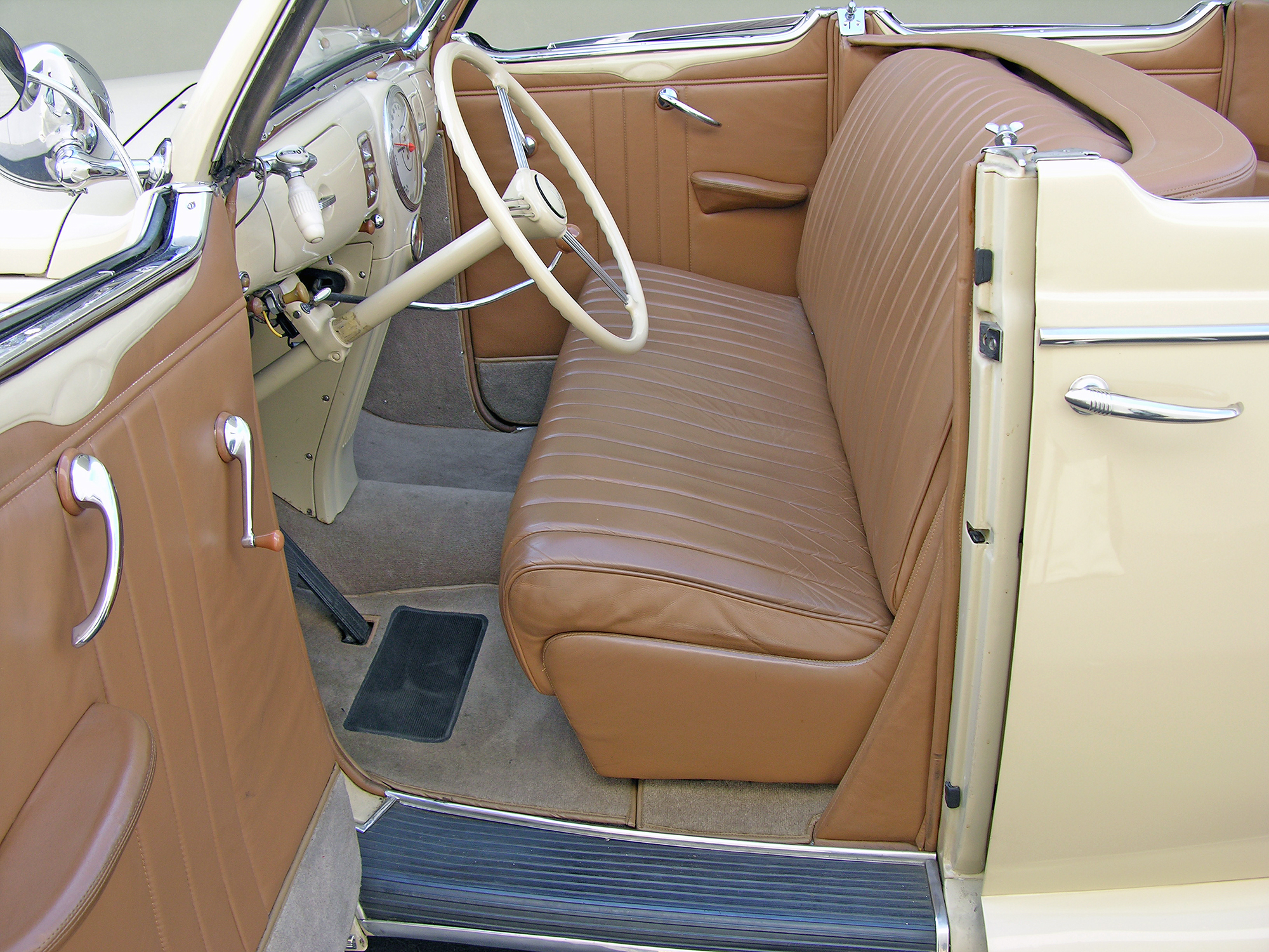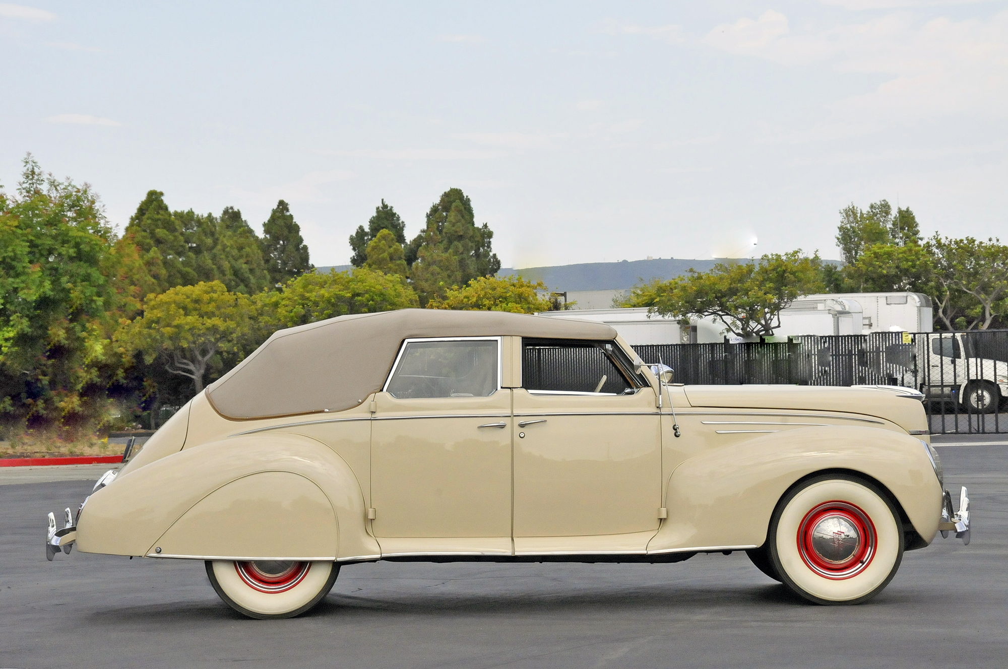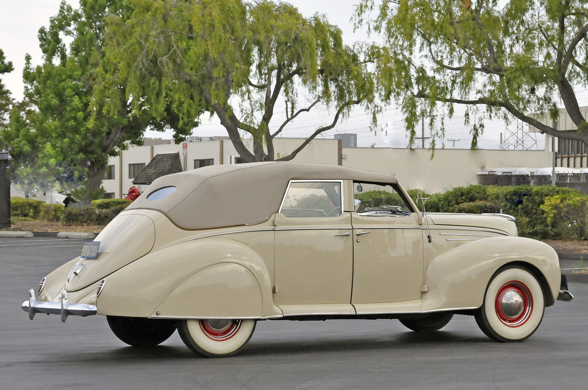 This 1939 Lincoln-Zephyr is one of 302 convertible sedan examples produced for the model year, and it was refurbished The car is finished in beige over brown upholstery, and power comes from a 267.3ci V12 paired with a three-speed manual transmission. Equipment includes a tan soft top, detachable B-pillars, a driver-side spotlight, rear-hinged rear doors, fender skirts, an AM radio, dual gloveboxes, and rear footrests. Service performed in preparation for the sale reportedly included the installation of a replacement fuel pump, a rebuild of the carburetor, a cleaning of the fuel system, and a brake adjustment.