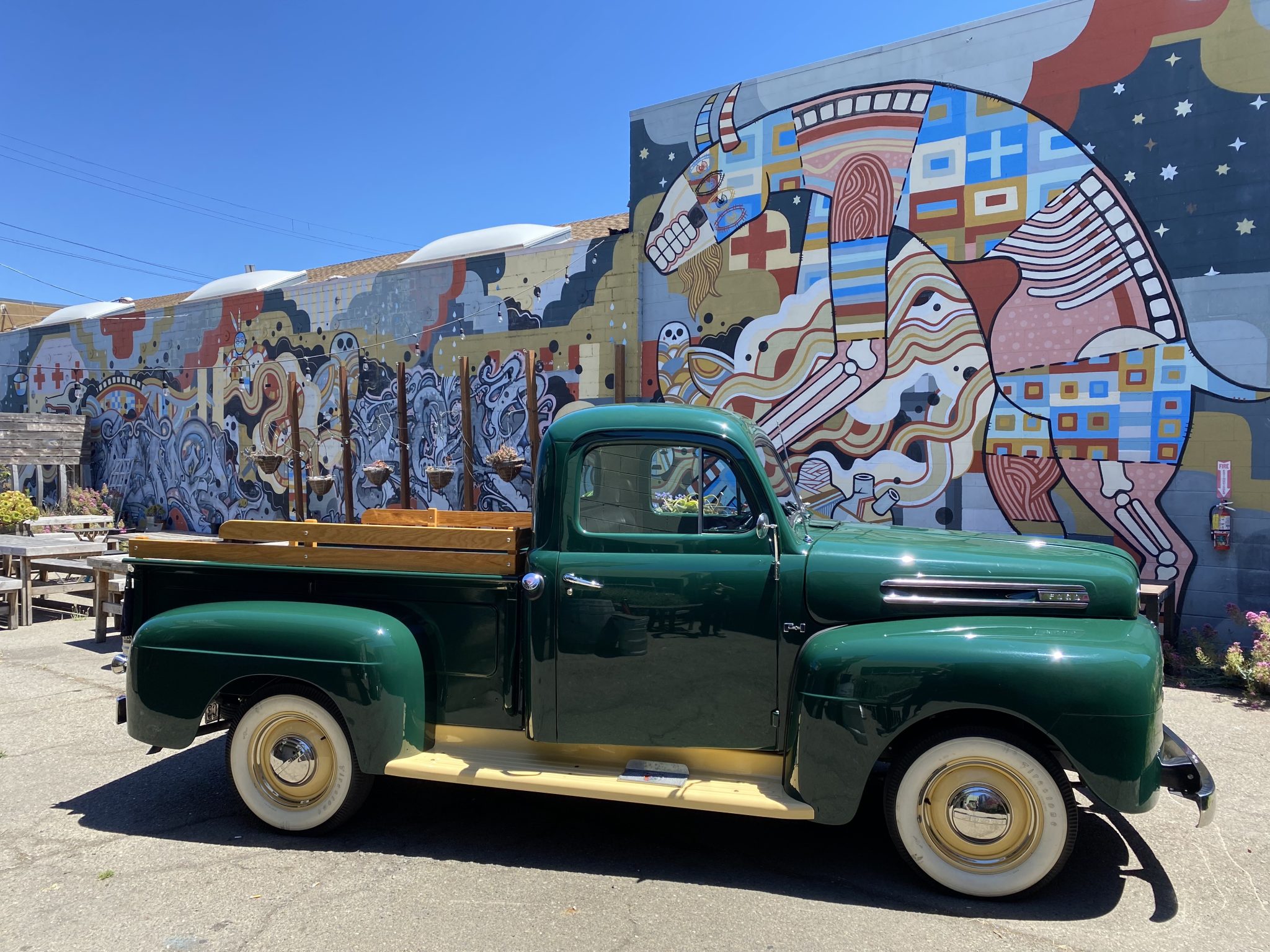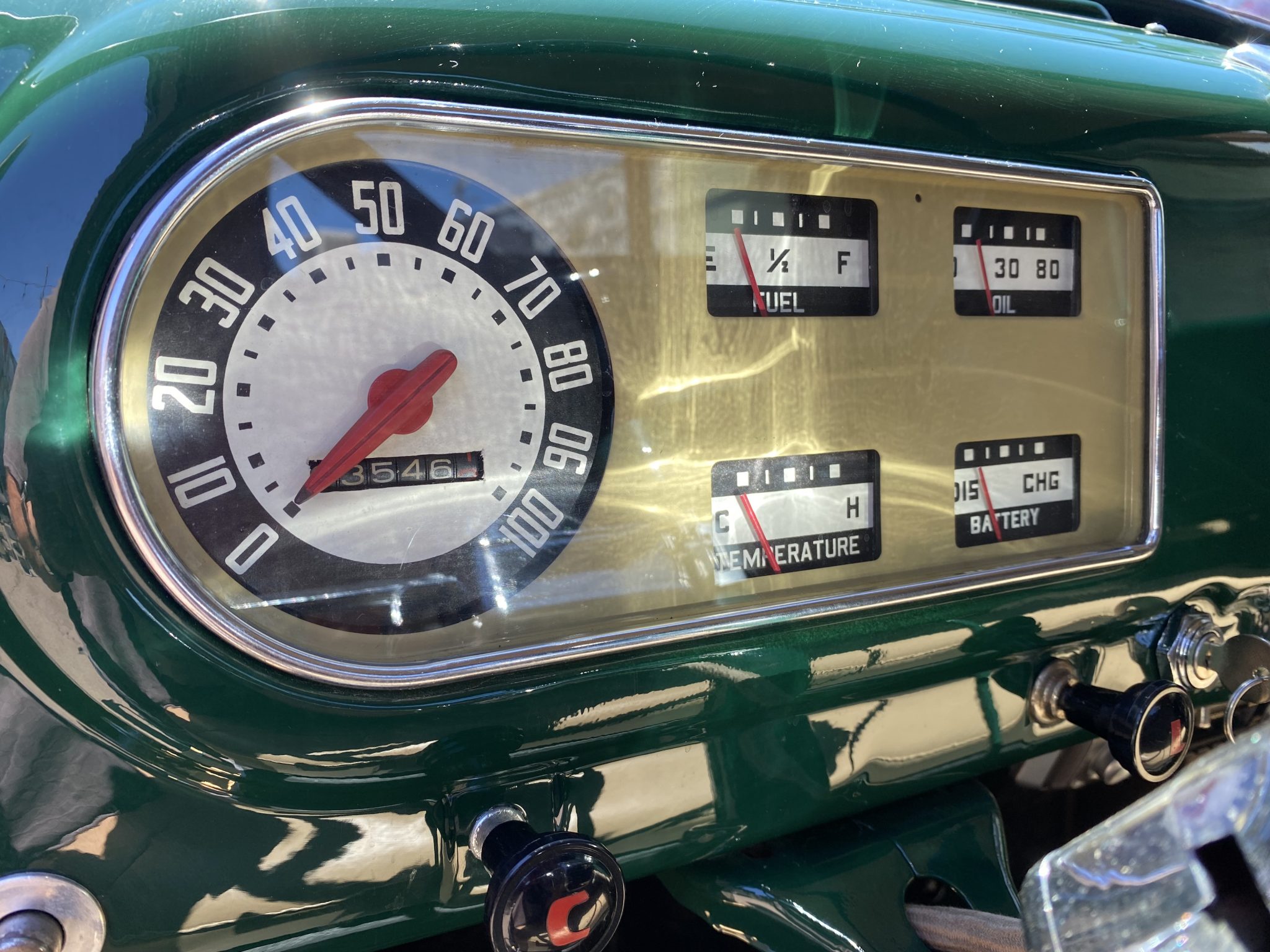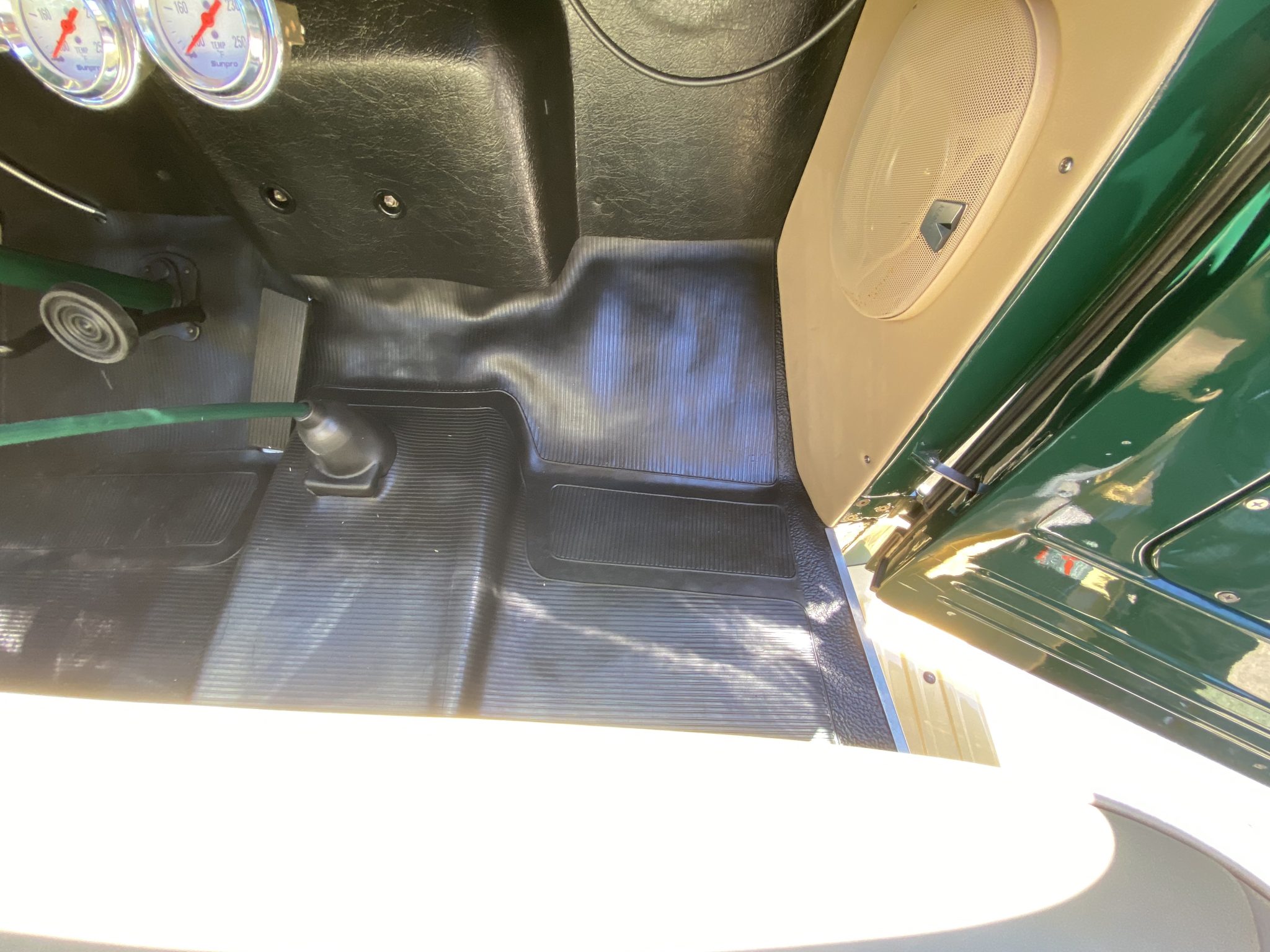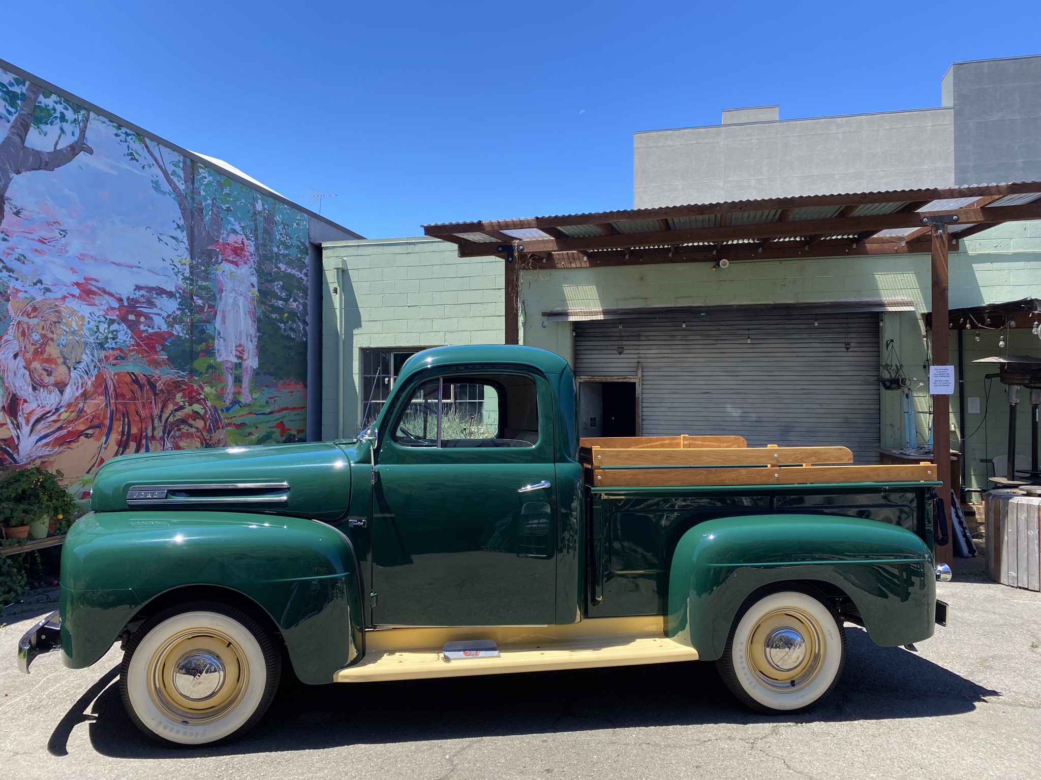 The truck is powered by a 239ci flathead V8 mated to a three-speed manual transmission, and it is finished in green over tan upholstery. Equipment includes 15″ steel wheels with bright hubcaps in addition to a 12-volt electrical conversion, a wood-plank bed floor, wood side stakes and rails, chrome bumpers, a heater, and a Pioneer stereo.