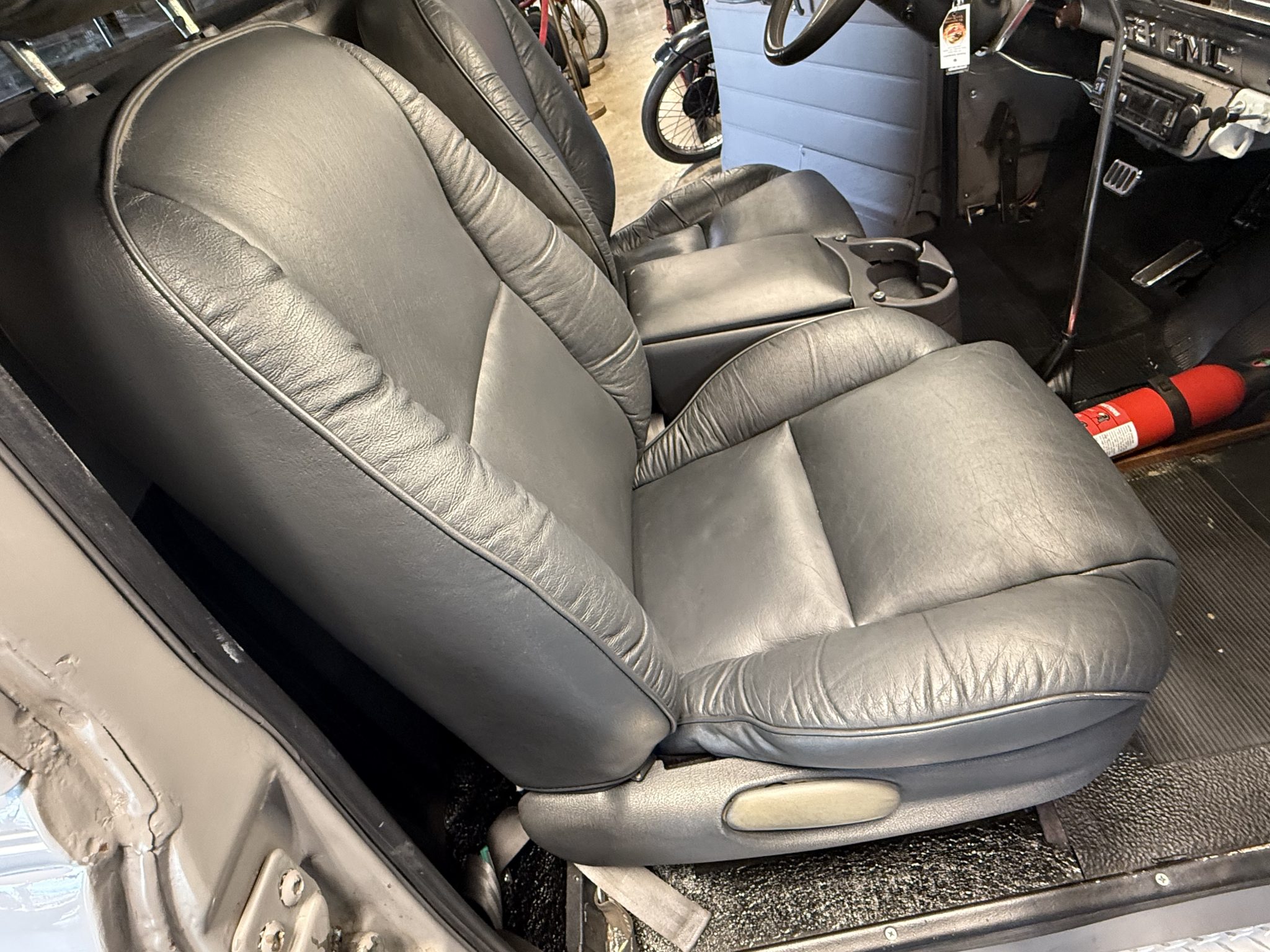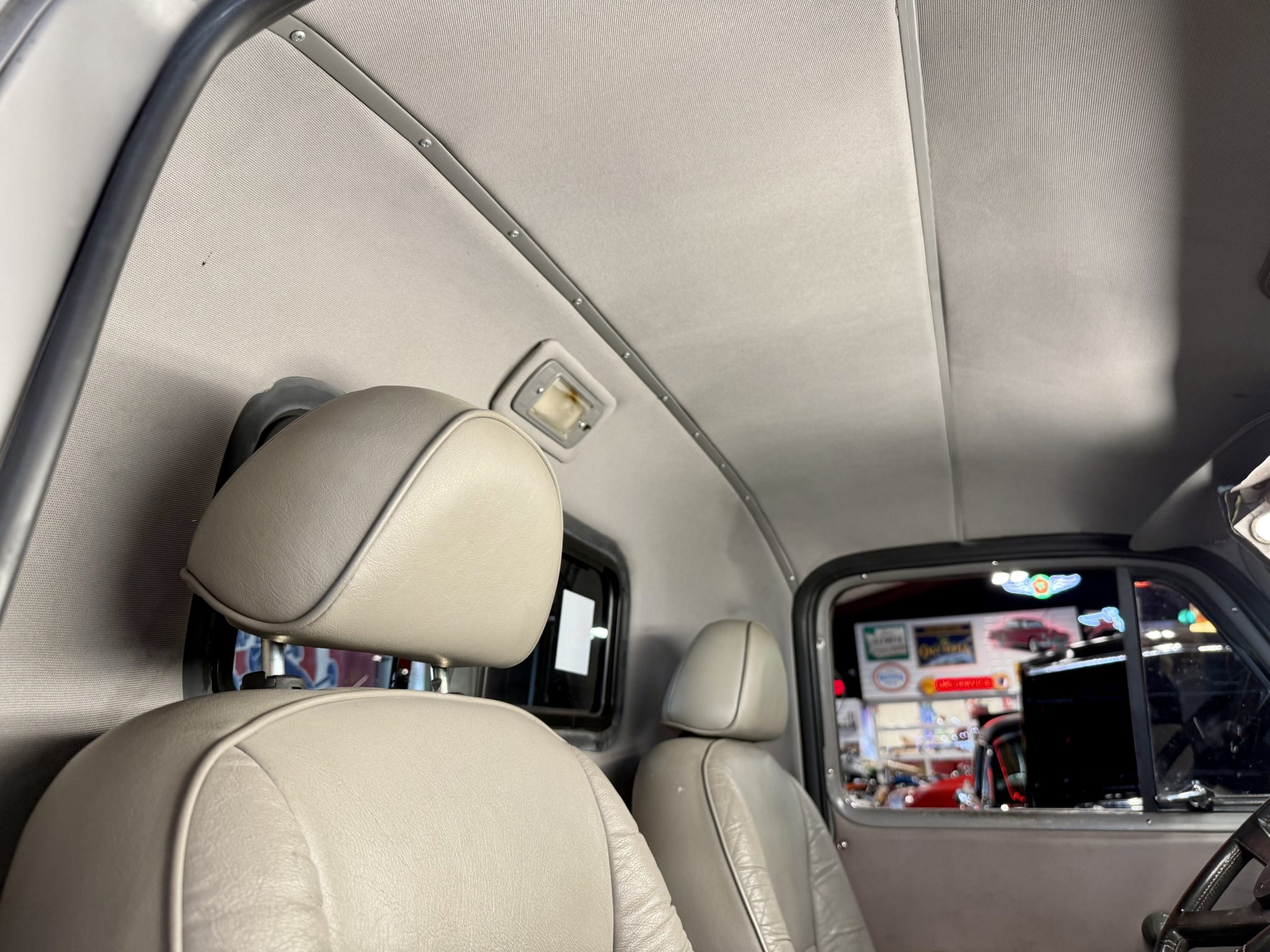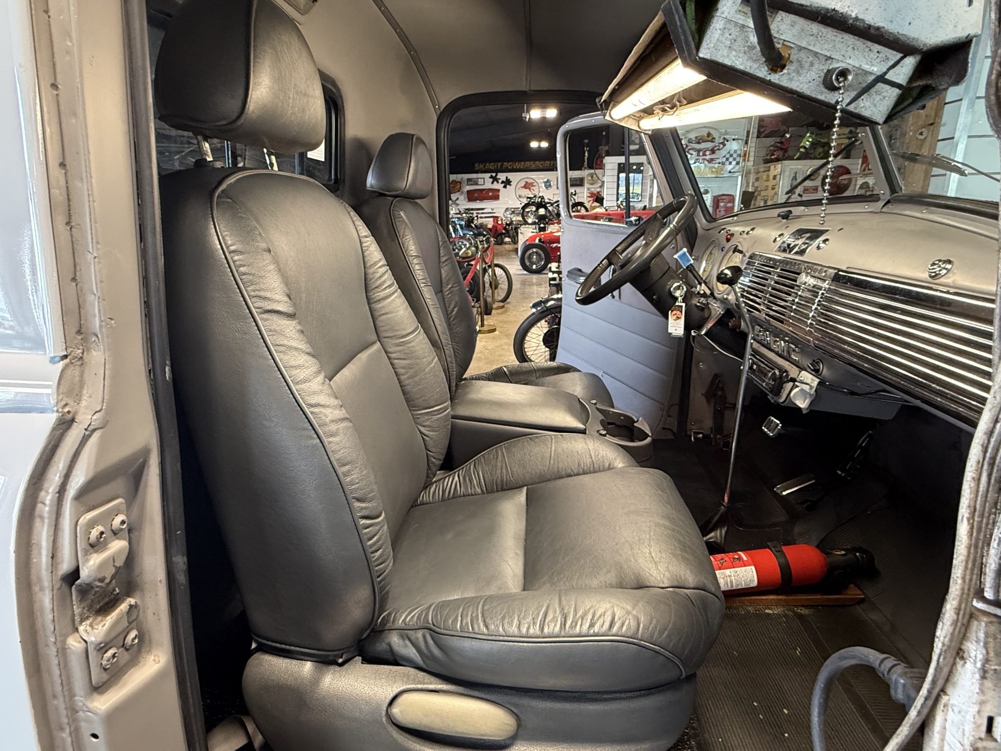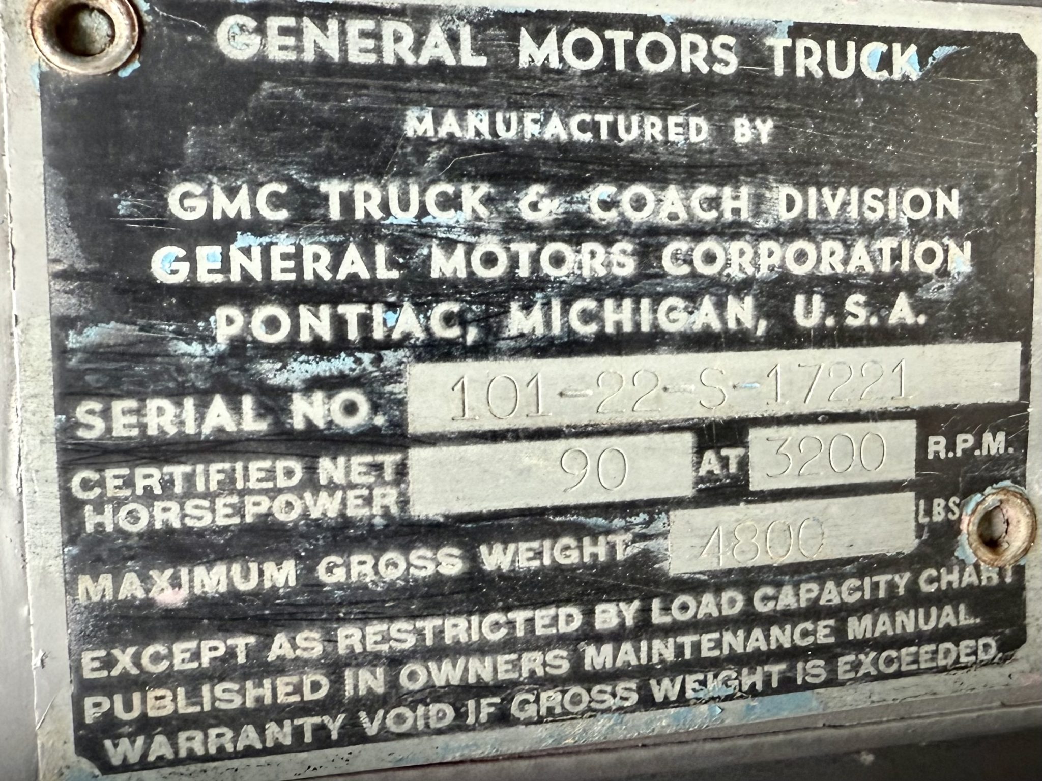 This 1953 GMC 150 is a 3/4-ton pickup that was refurbished and it rides on a Mustang II-style front suspension and air helper springs over 15″ Rally wheels. The truck is finished in gray over gray upholstery and is powered by a replacement inline-six paired with a three-speed automatic transmission. Additional equipment includes power steering, power-assisted front disc brakes, a wood bed floor, and diamond-plate running boards.