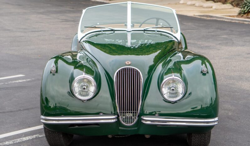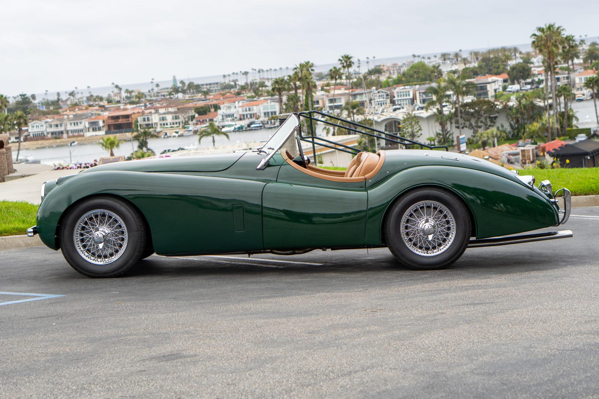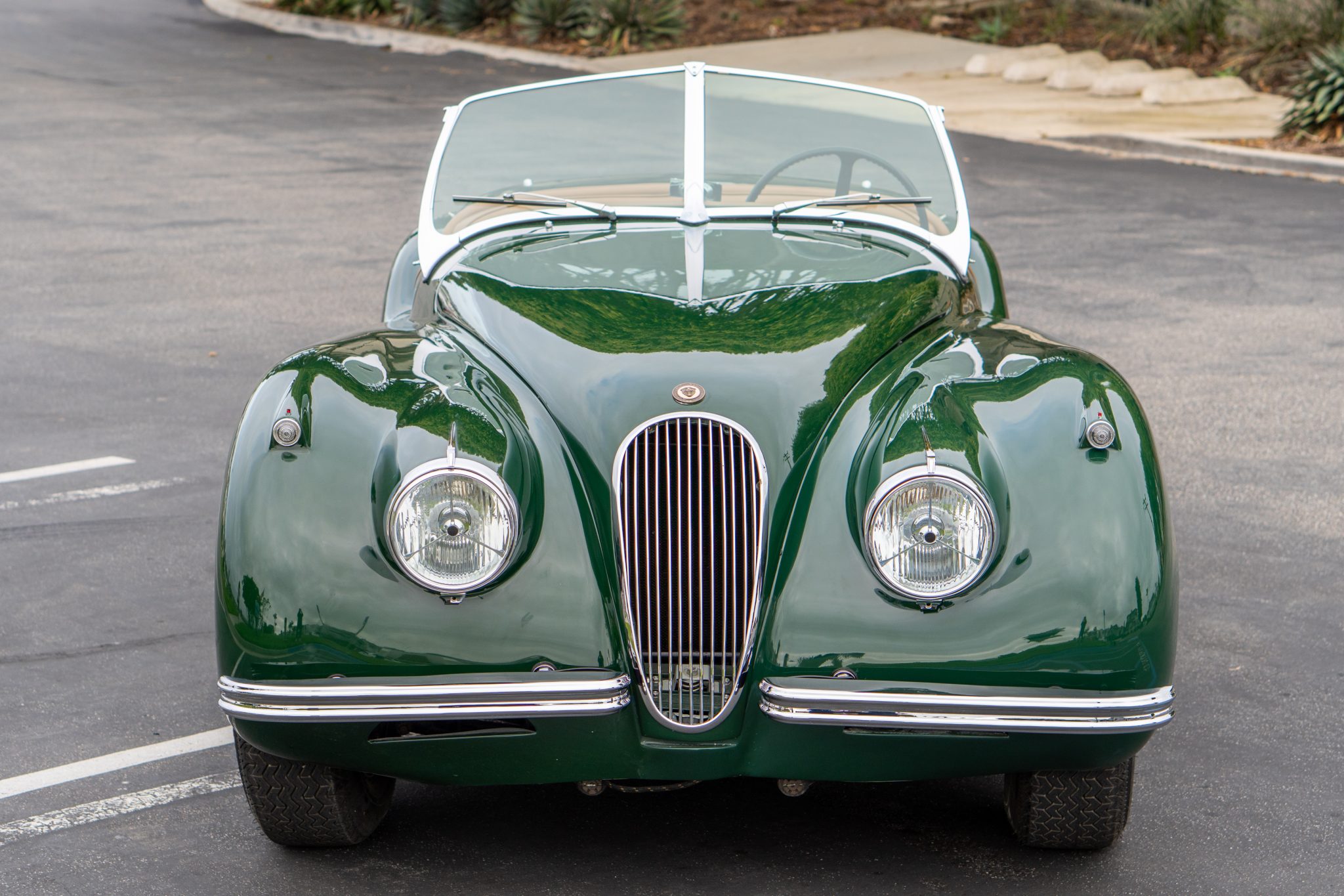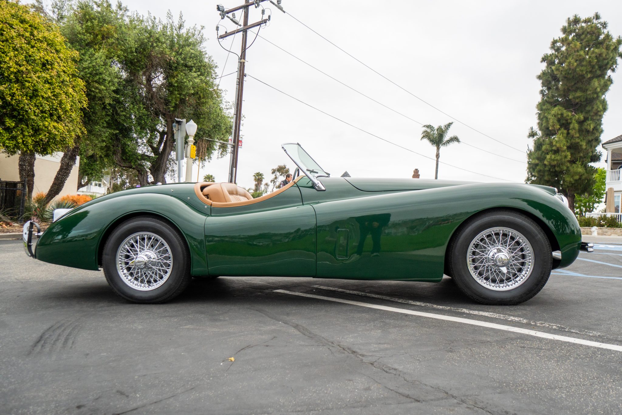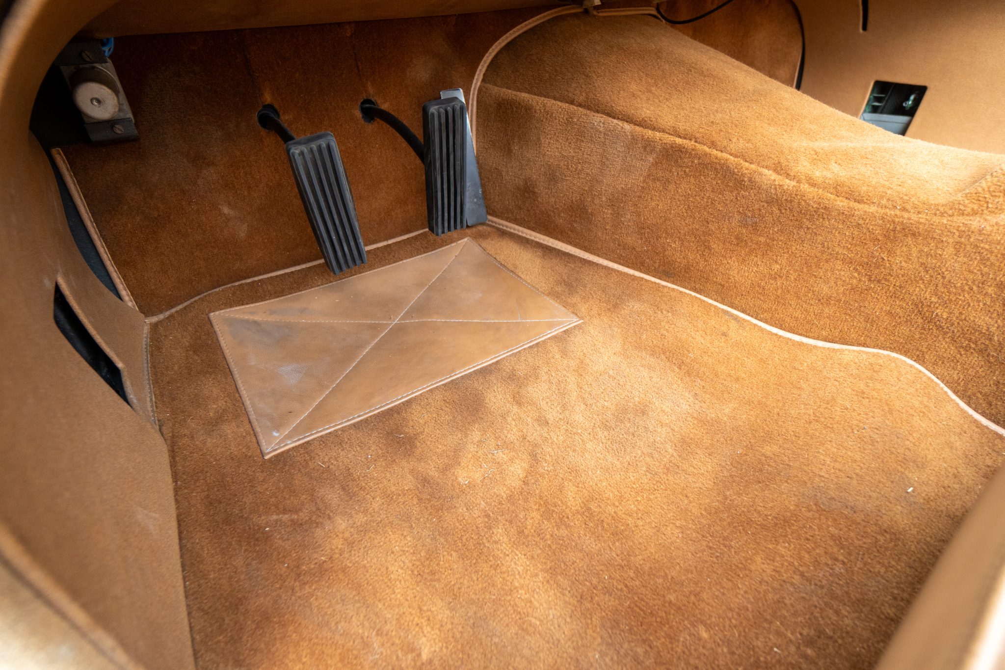 A refurbishment was commenced by powdercoating the frame and having the engine and transmission rebuilt. Powered by a 3.4-liter inline-six linked with a four-speed manual transmission, the car features dual SU carburetors, a C-type cylinder head, a beige convertible top, side curtains, chrome 16” wire wheels, and Smiths gauges.