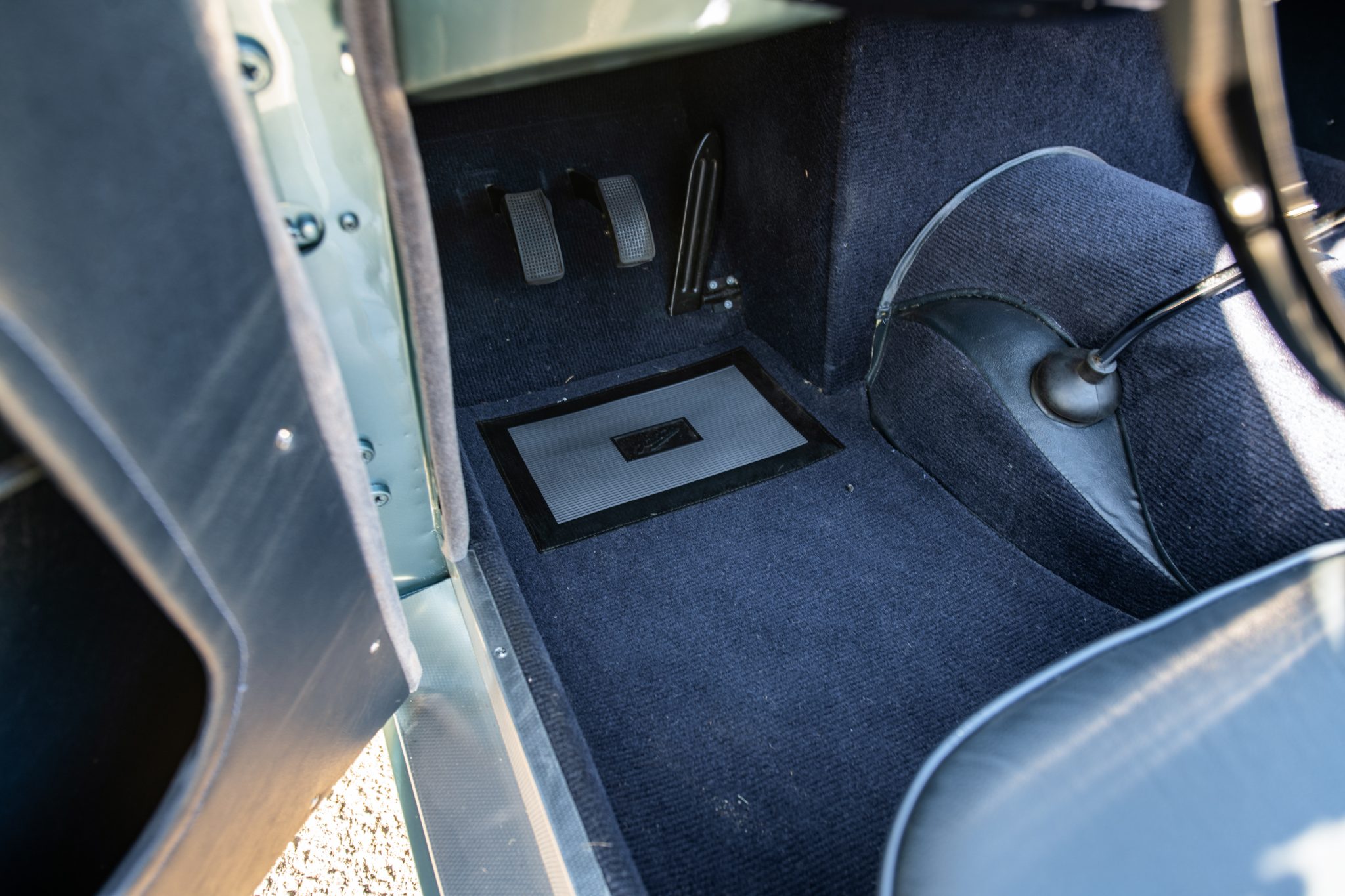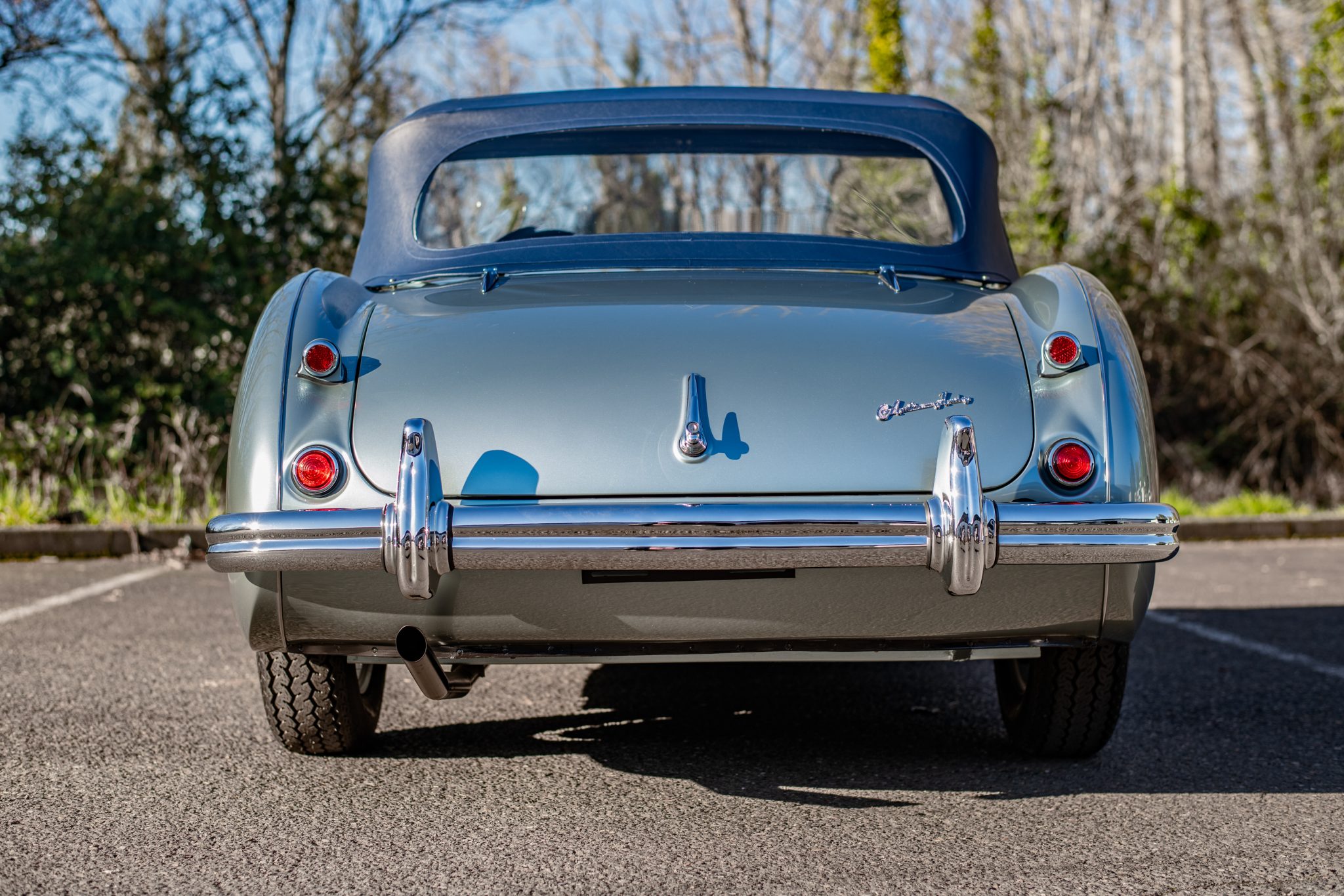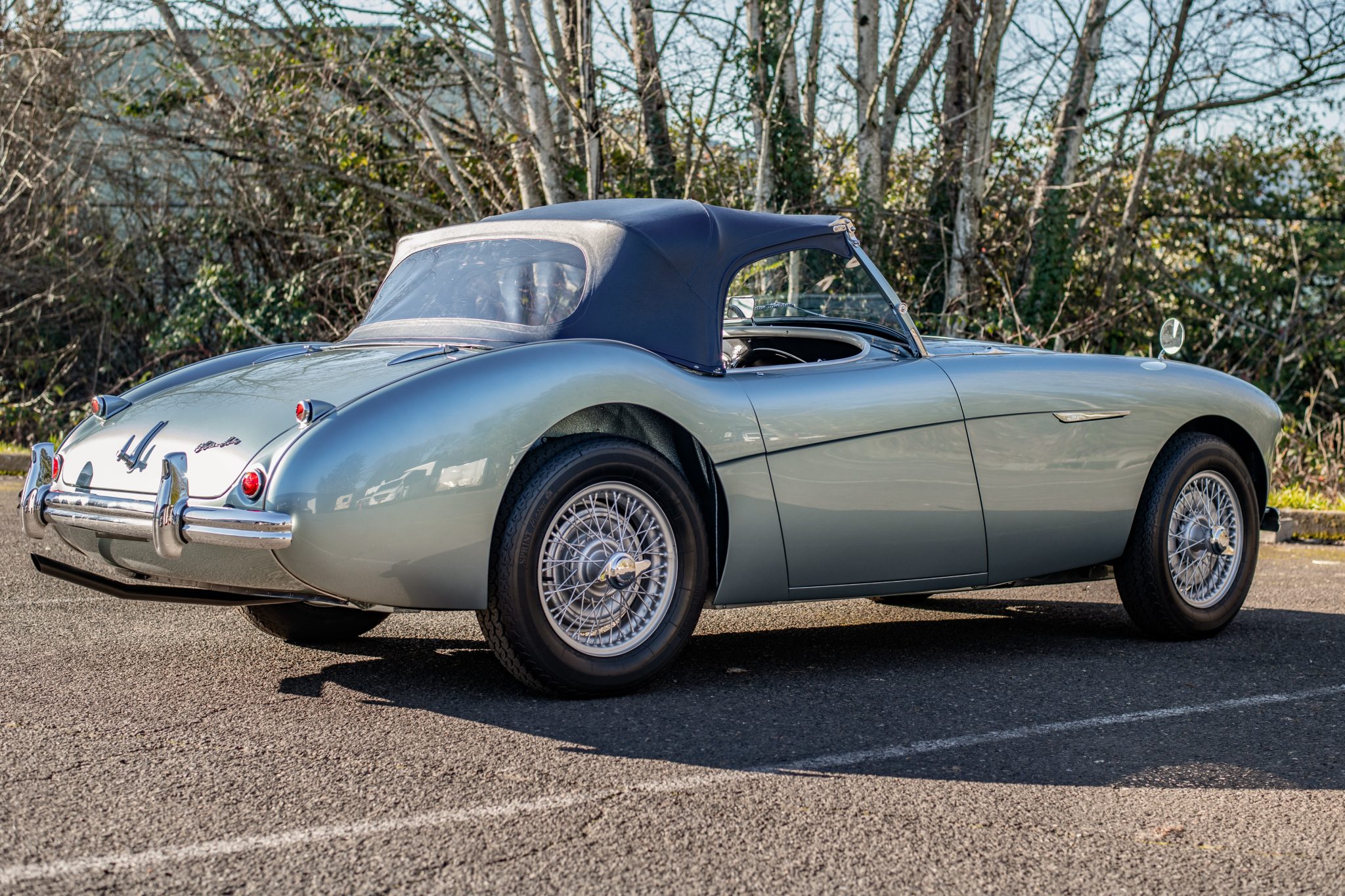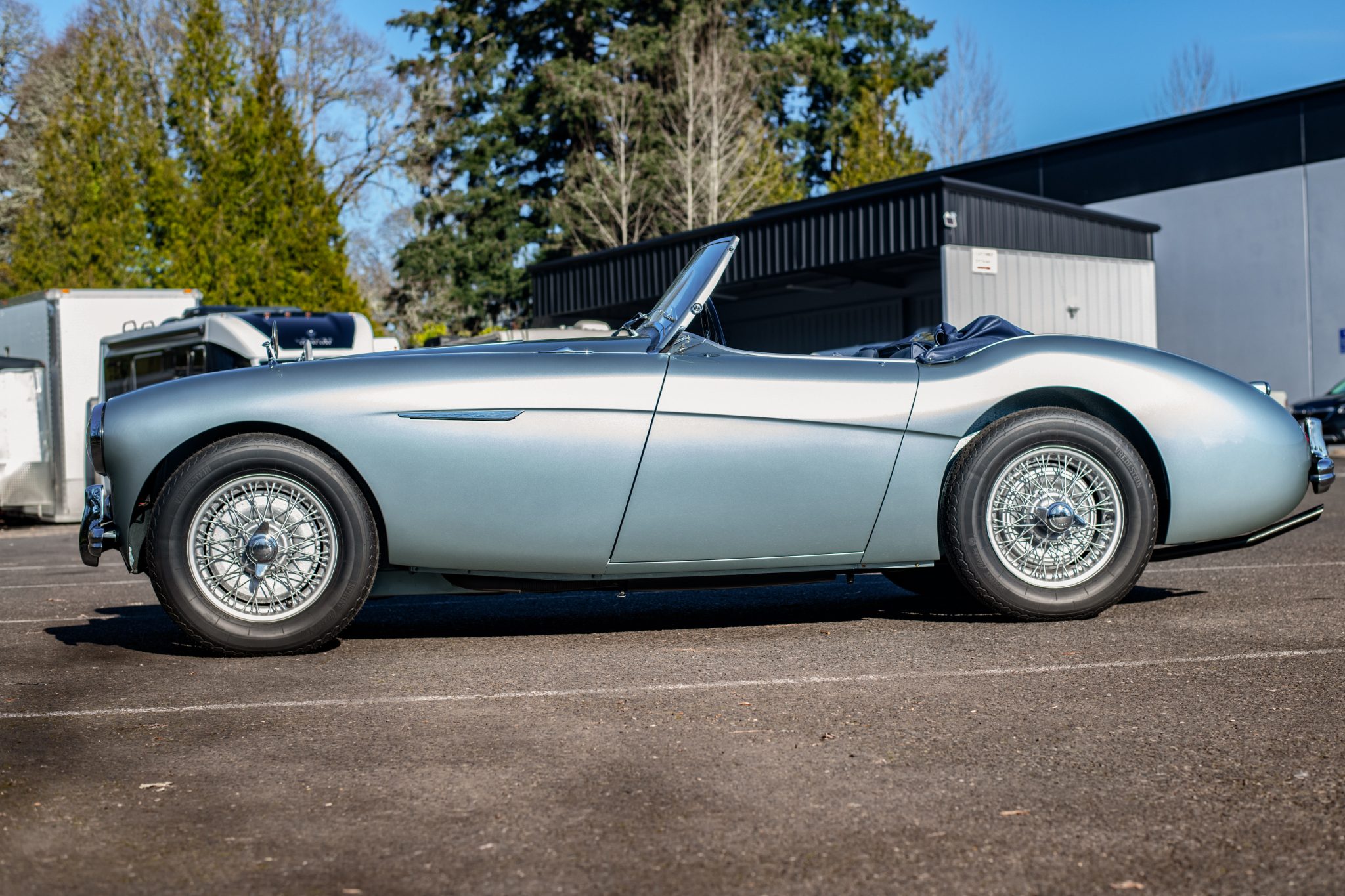 Finished in blue with a blue vinyl soft top, the car rides on 15″ knock-off wire wheels and is powered by a 2.7-liter inline-four equipped with dual SU carburetors. Shifting is through a three-speed manual transmission with overdrive, and additional equipment includes bucket seats, a banjo-style steering wheel, and a Smiths heater.