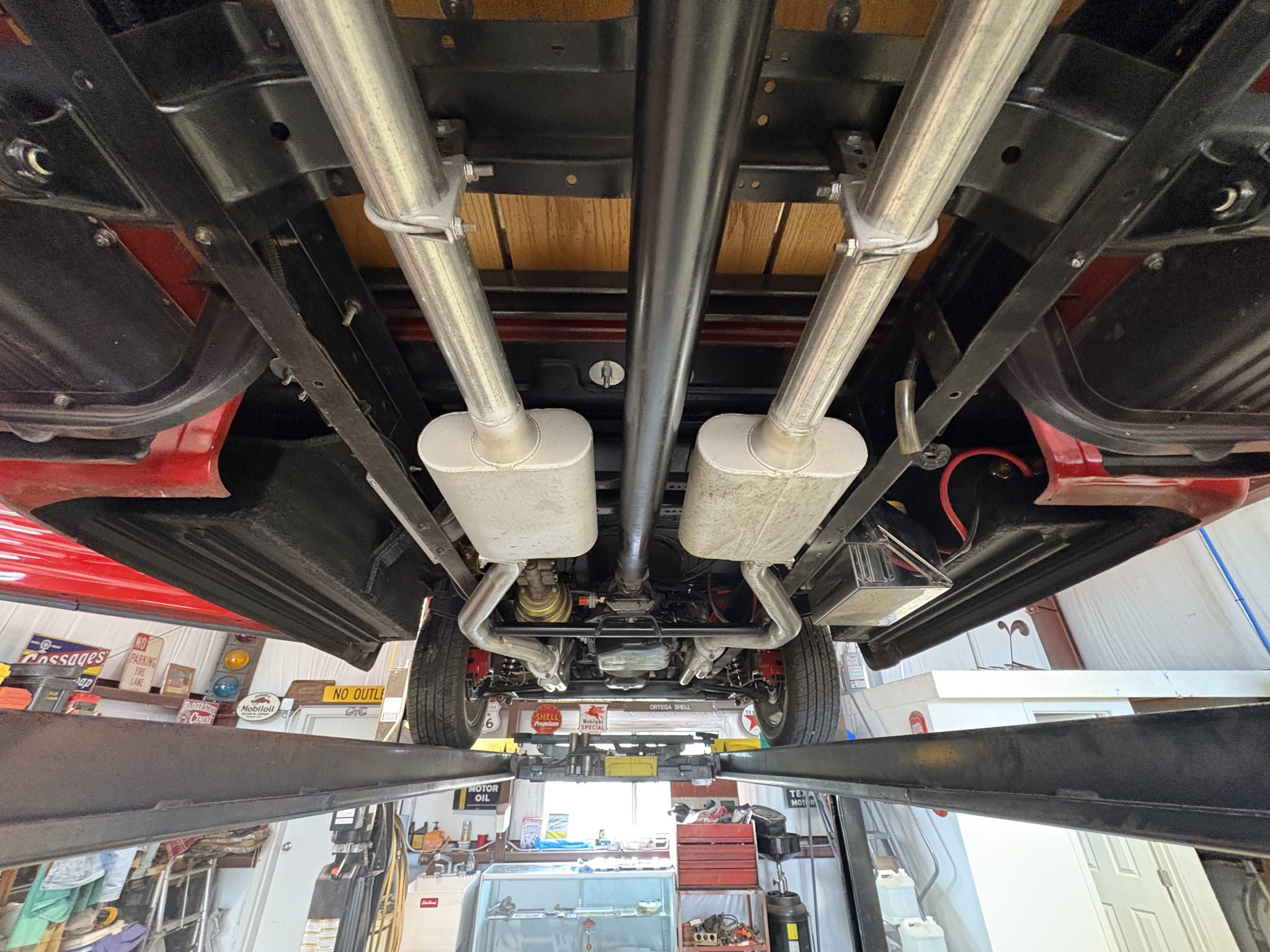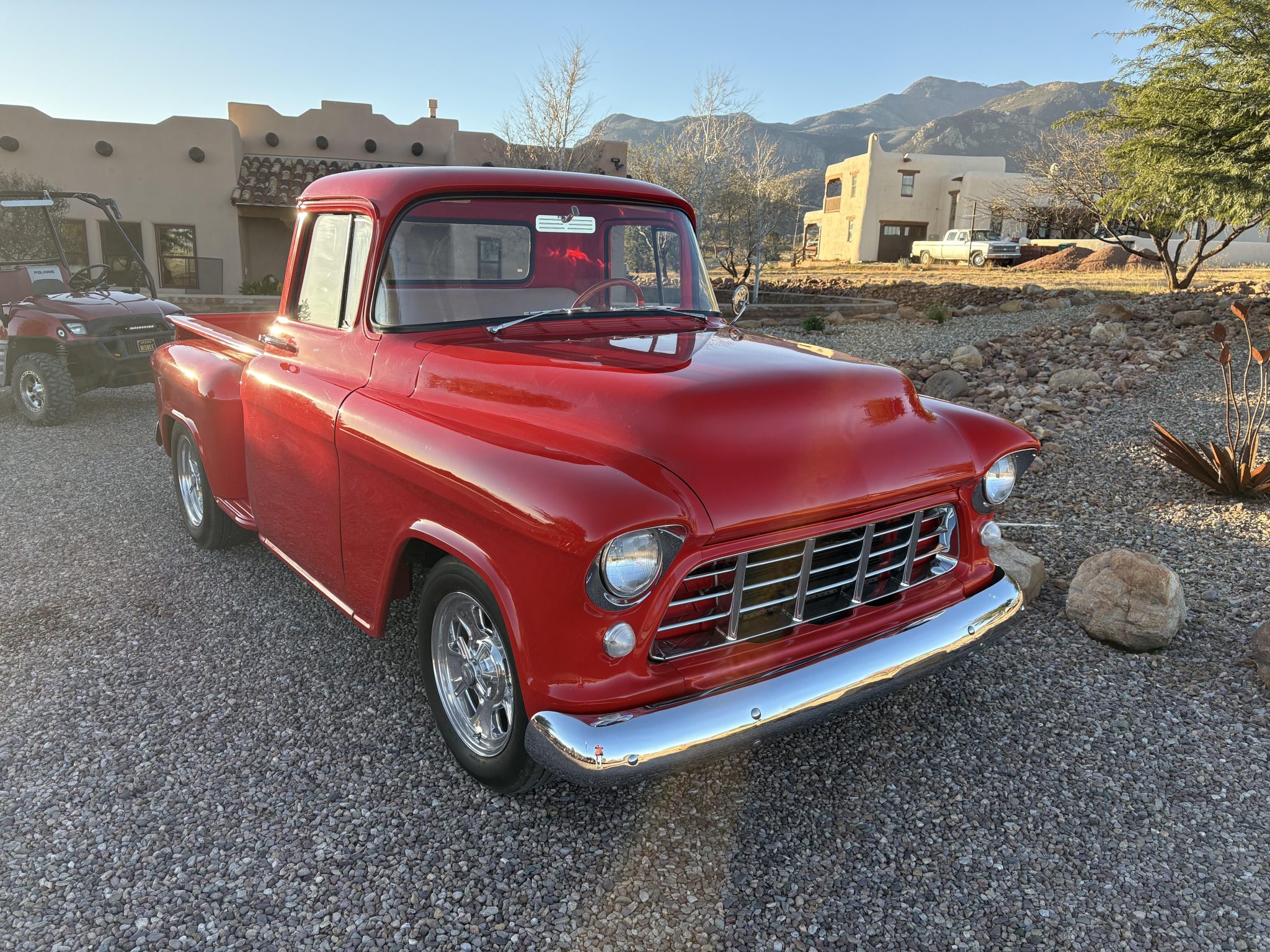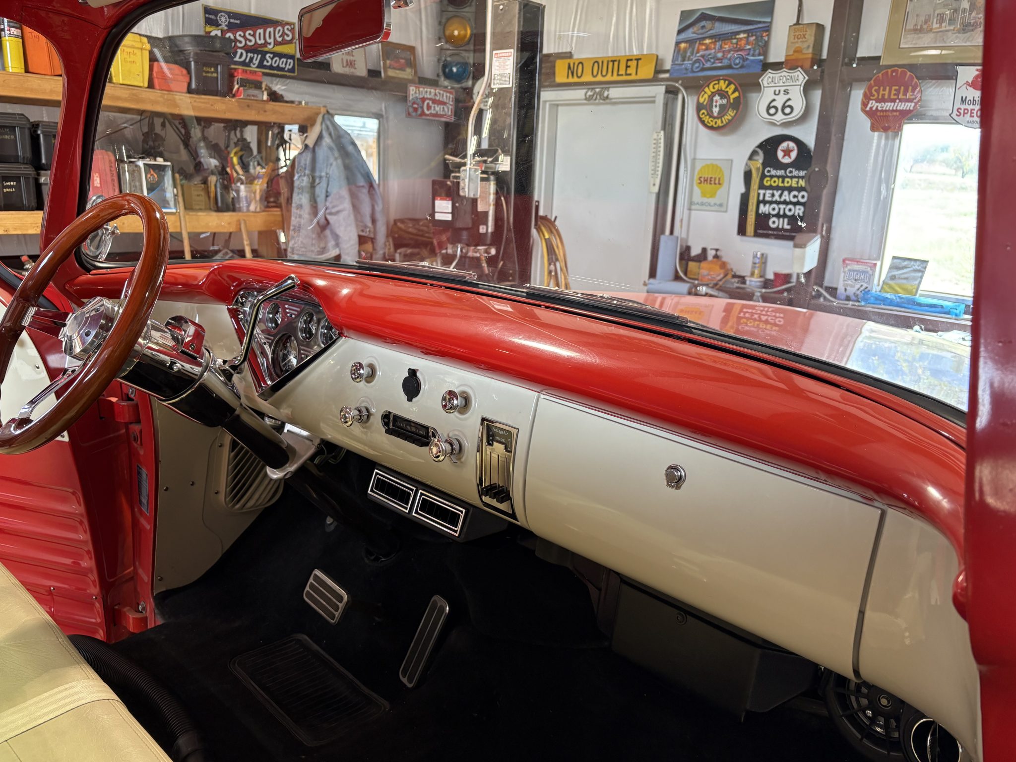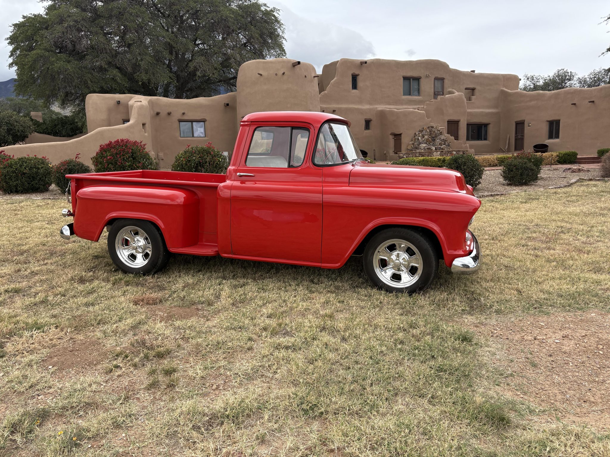 Work included installing a 383ci BluePrint V8 and a TH200-4R four-speed automatic transmission, repainting the exterior, refreshing the interior, performing a disc brake conversion, and overhauling the suspension. Equipment includes an Edelbrock EFI system, a hydraulic roller camshaft, an aluminum radiator, 17″ Billet Specialties wheels, a Mustang II-style front suspension, four-link rear suspension, RideTech coilovers, a wood bed floor, Vintage Air climate control, a Bluetooth-capable stereo, and aftermarket speakers.