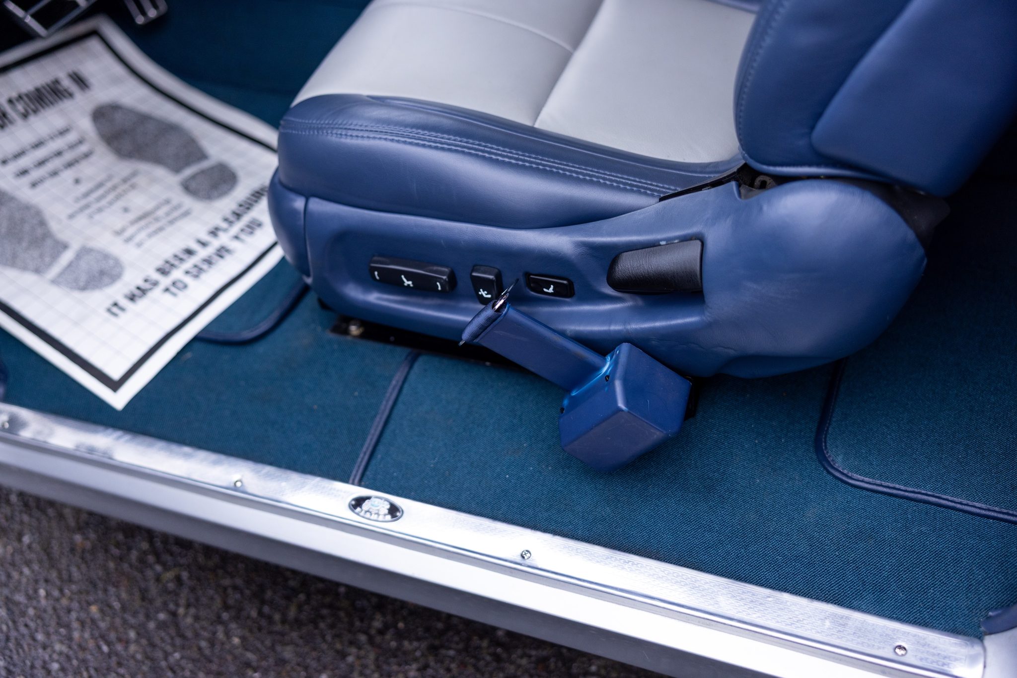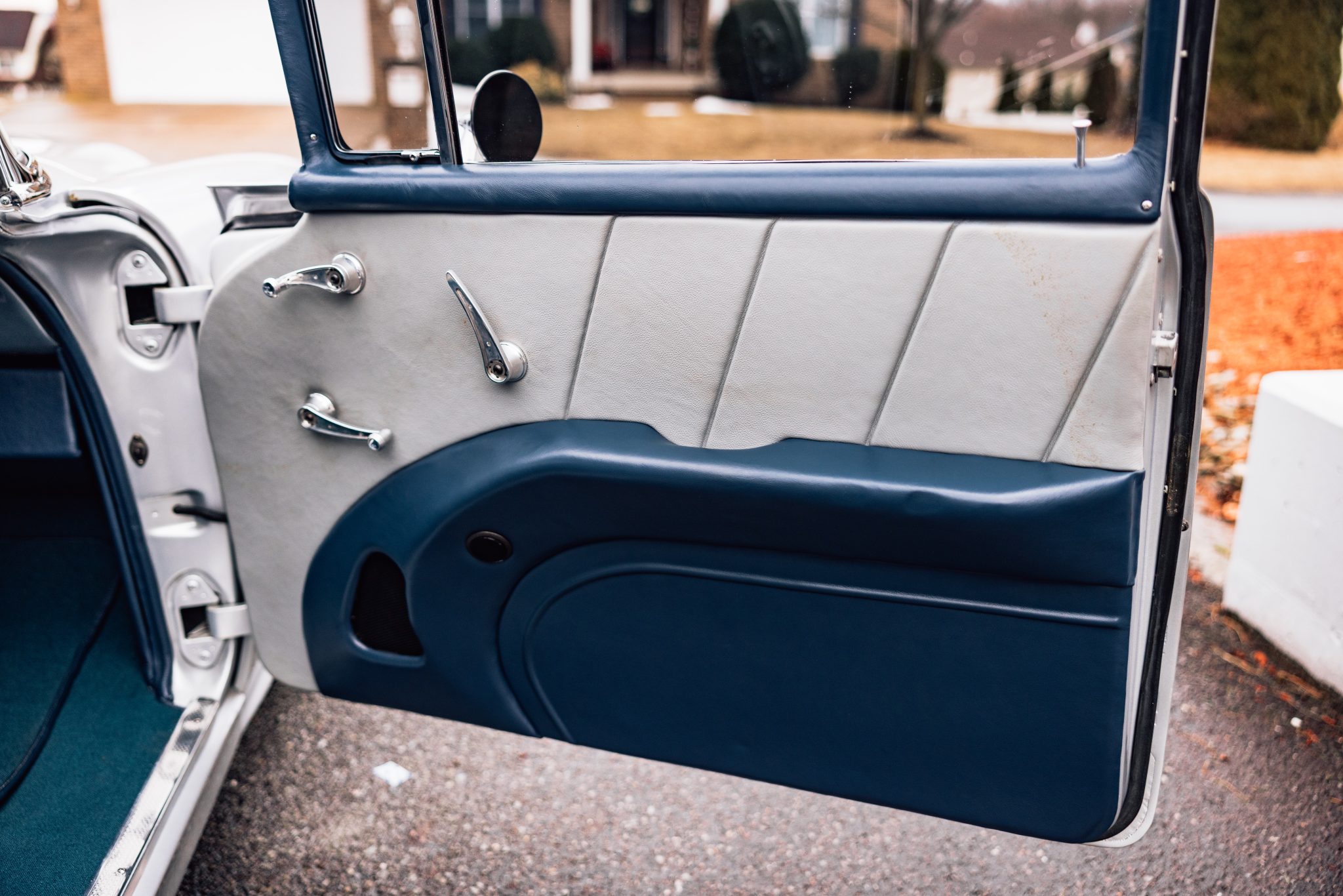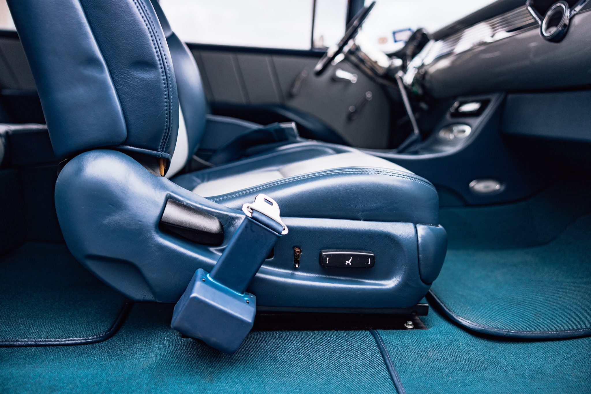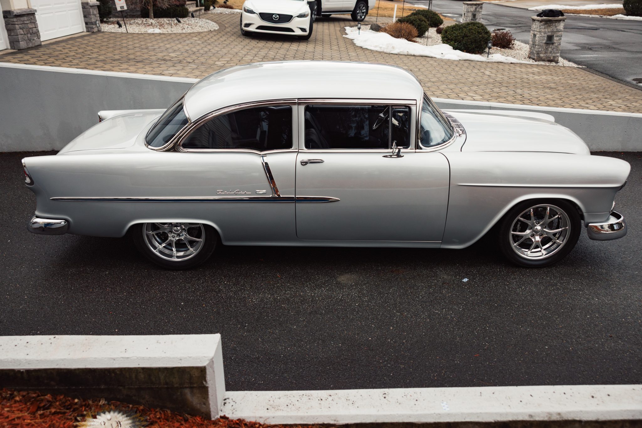 A Magnuson-supercharged 6.2-liter LS3 V8 was installed along with a four-speed automatic transmission and a 9″ rear end, and the body was refinished in silver. The chassis was modified with tubular front control arms, a rear four-link setup, adjustable coilovers, rack-and-pinion steering, and Wilwood disc brakes as well as Boze Alloys 18″ wheels. Inside, power-assisted bucket seats are trimmed in blue and gray leather and accompanied by a custom-fabricated center console and door panels, a Kenwood stereo, aftermarket air conditioning, a Billet Specialties steering wheel, and Dakota Digital gauges.