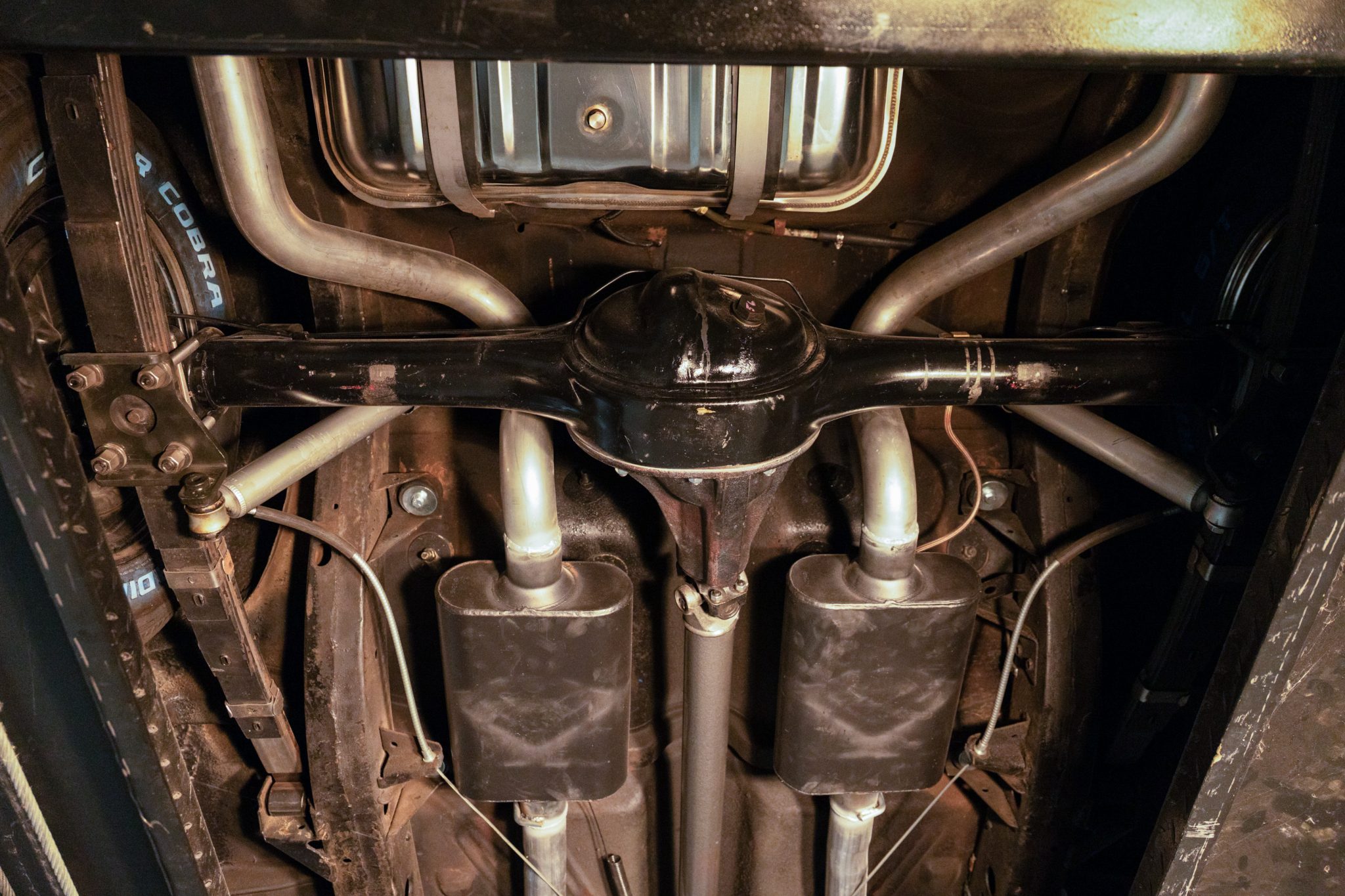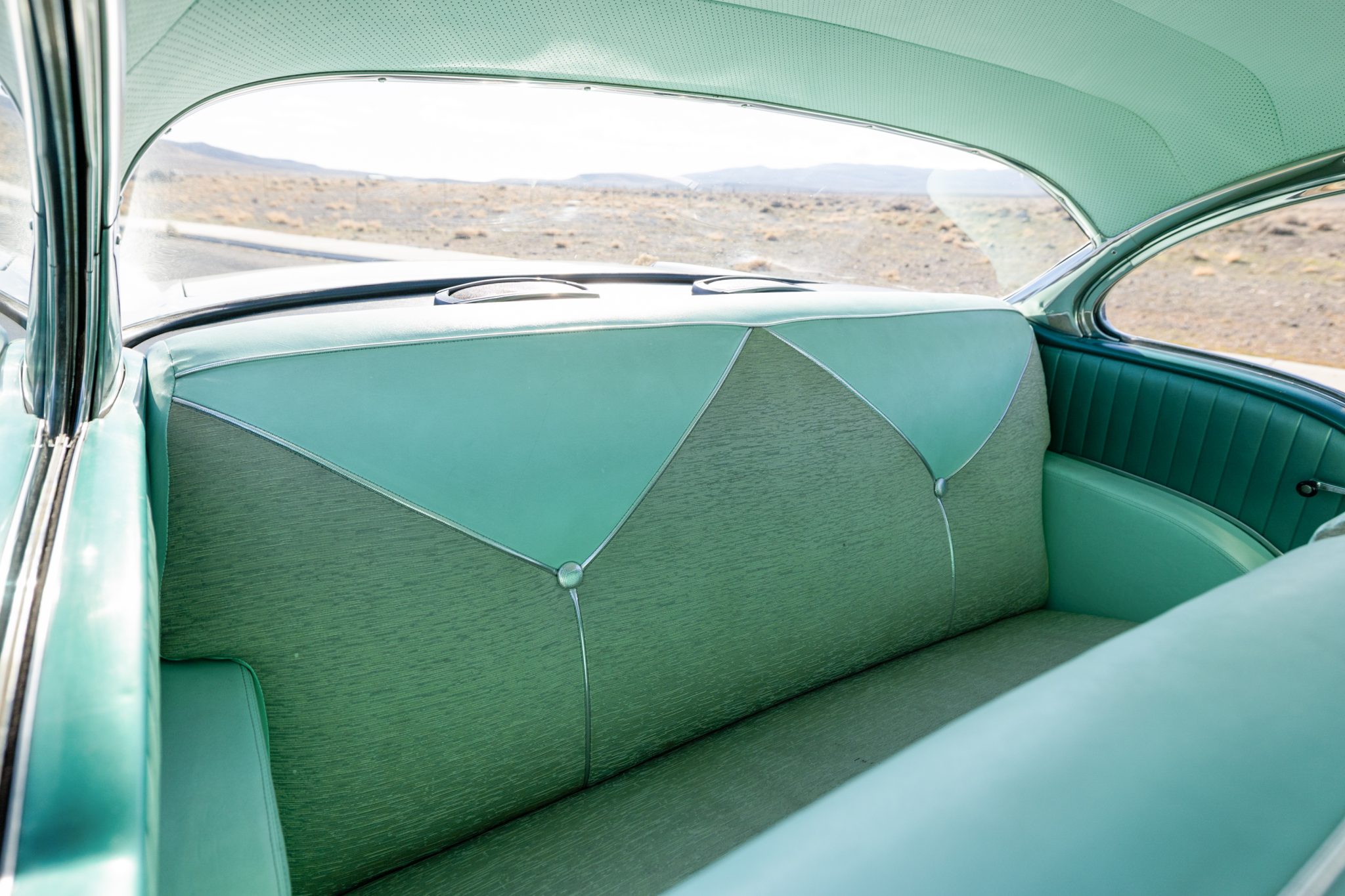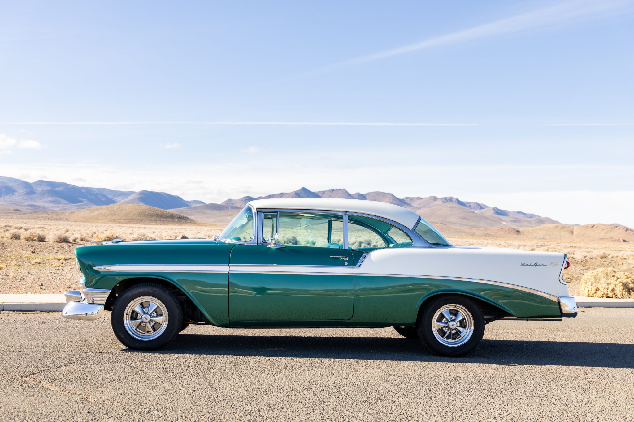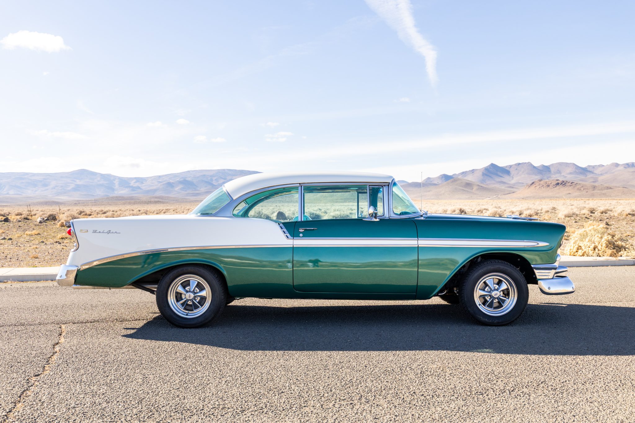The suspension was overhauled, and a 350ci V8, a TCI 700R4 automatic transmission, and Wilwood front disc brakes were installed at that time. Inside, the cabin was refreshed with green upholstery and fitted with sound-deadening material, aftermarket air conditioning, a Bluetooth stereo, a tilt steering column, and Classic Instruments gauges. Additional equipment includes 15″ Cragar S/S wheels, long-tube headers, power steering, MSD ignition, a March accessory drive setup, and an Edelbrock carburetor and intake.