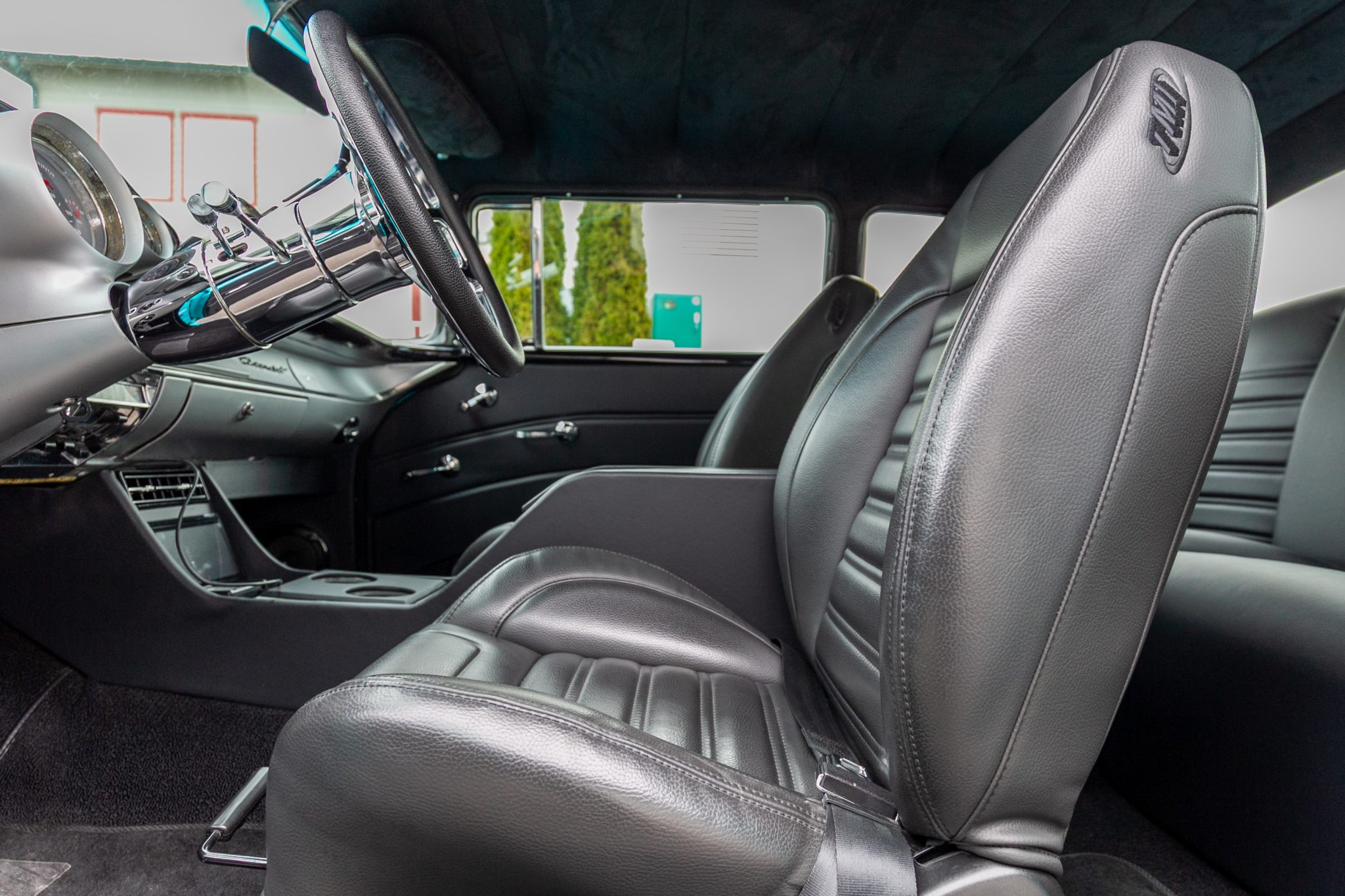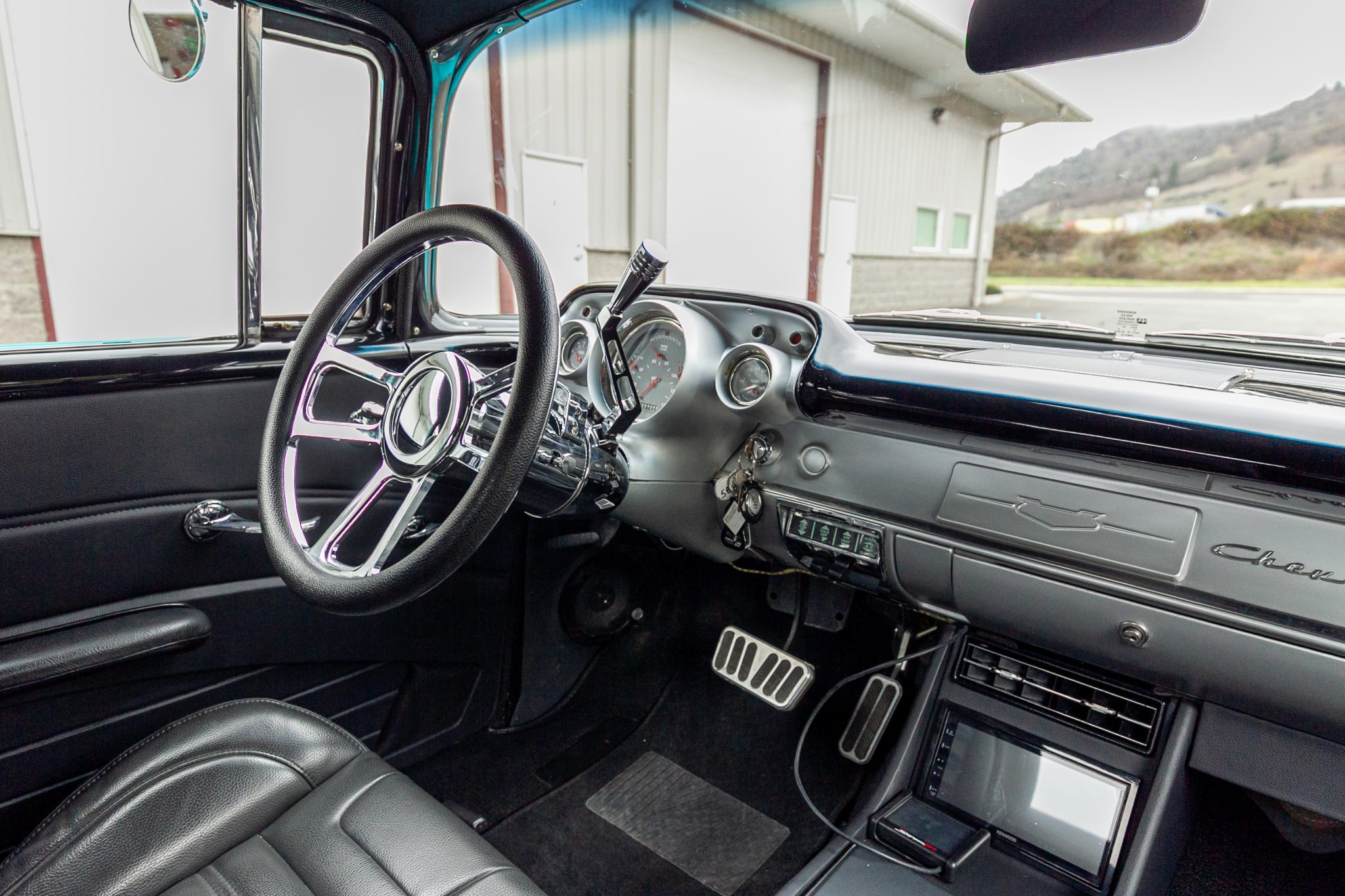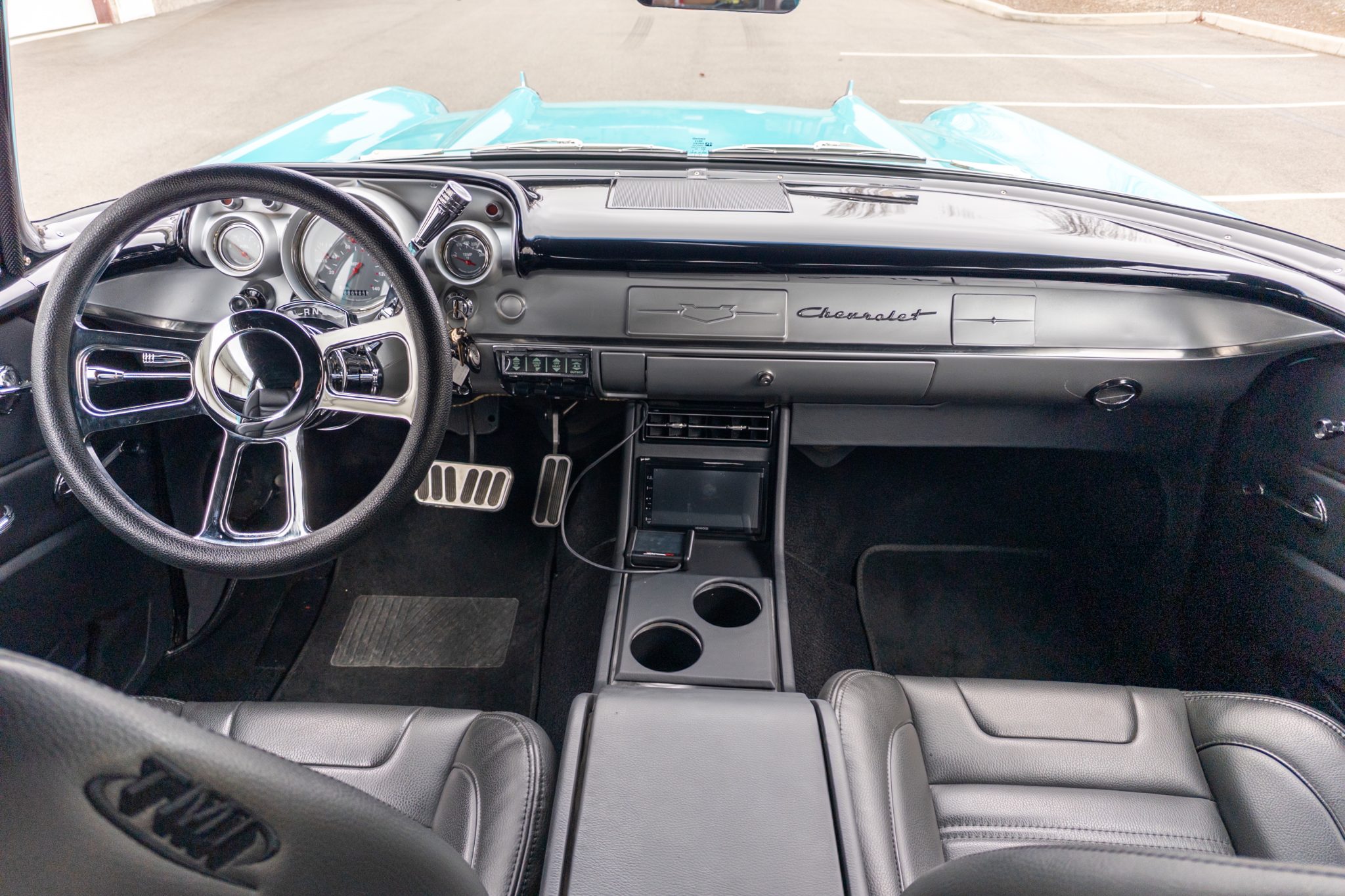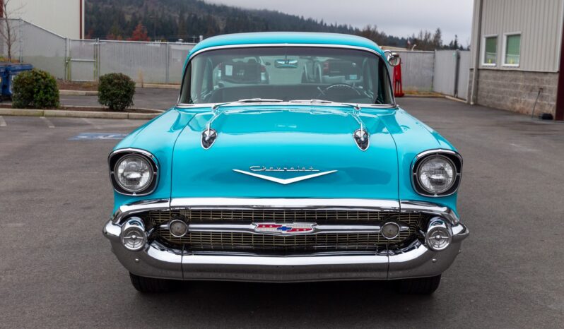 This 1957 Chevrolet 210 two-door sedan is powered by a BluePrint Engines 383ci stroker V8 that is linked with a 700R4 automatic transmission and a limited-slip differential The cabin is outfitted with black leather TMI Products seats, aftermarket air conditioning, Classic Instruments gauges, and a Kenwood touchscreen head unit. Further equipment includes a Holley Sniper EFI setup, 18″ Ridler wheels, four-wheel disc brakes, rack-and-pinion power steering, four-into-one headers, and a dual exhaust system.