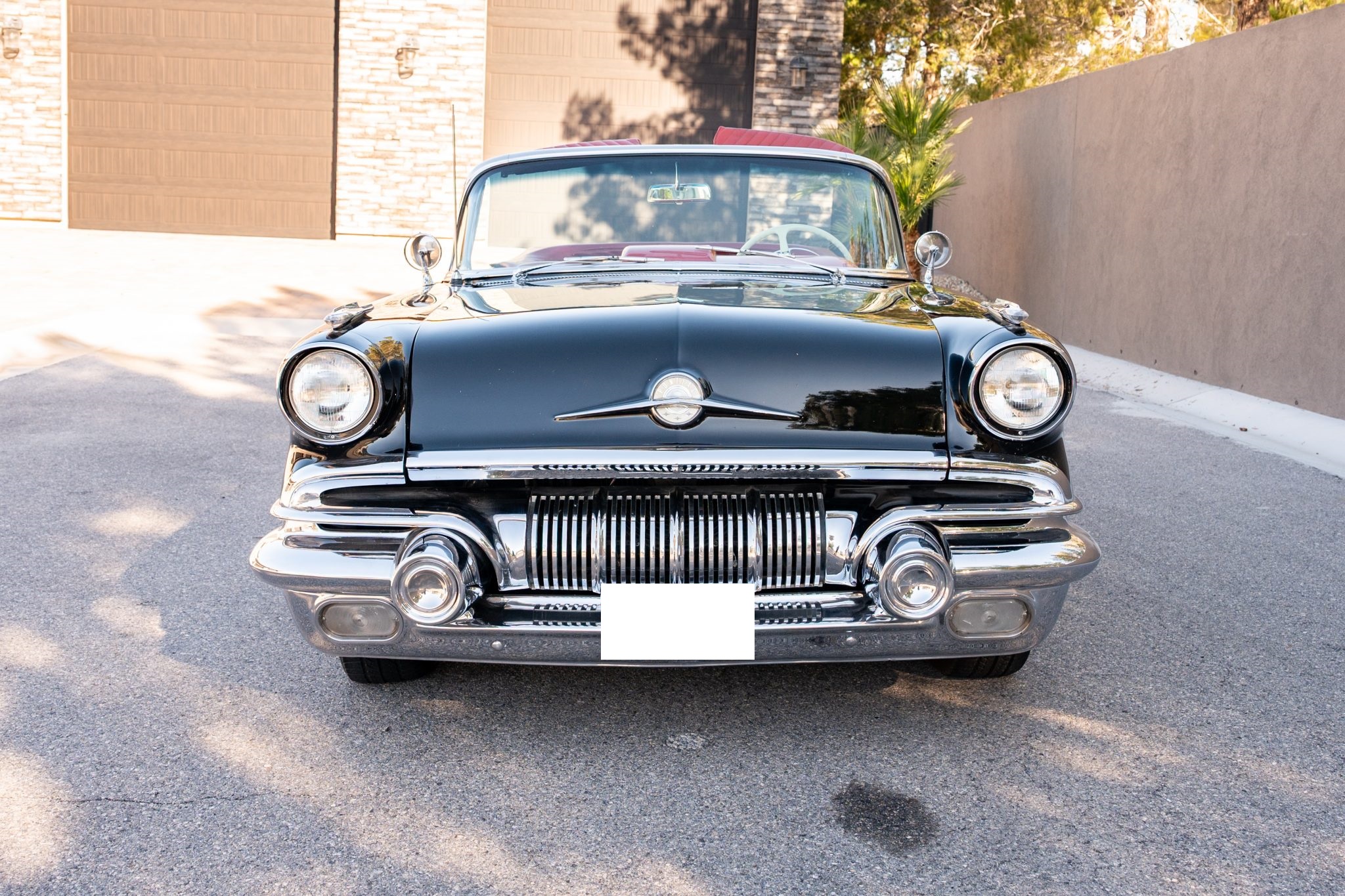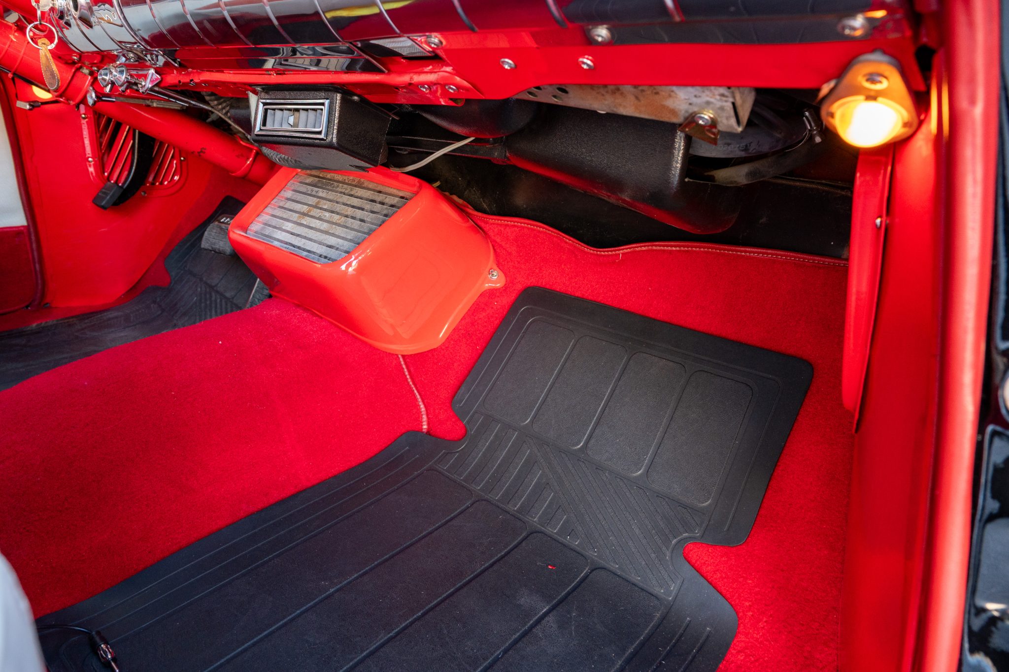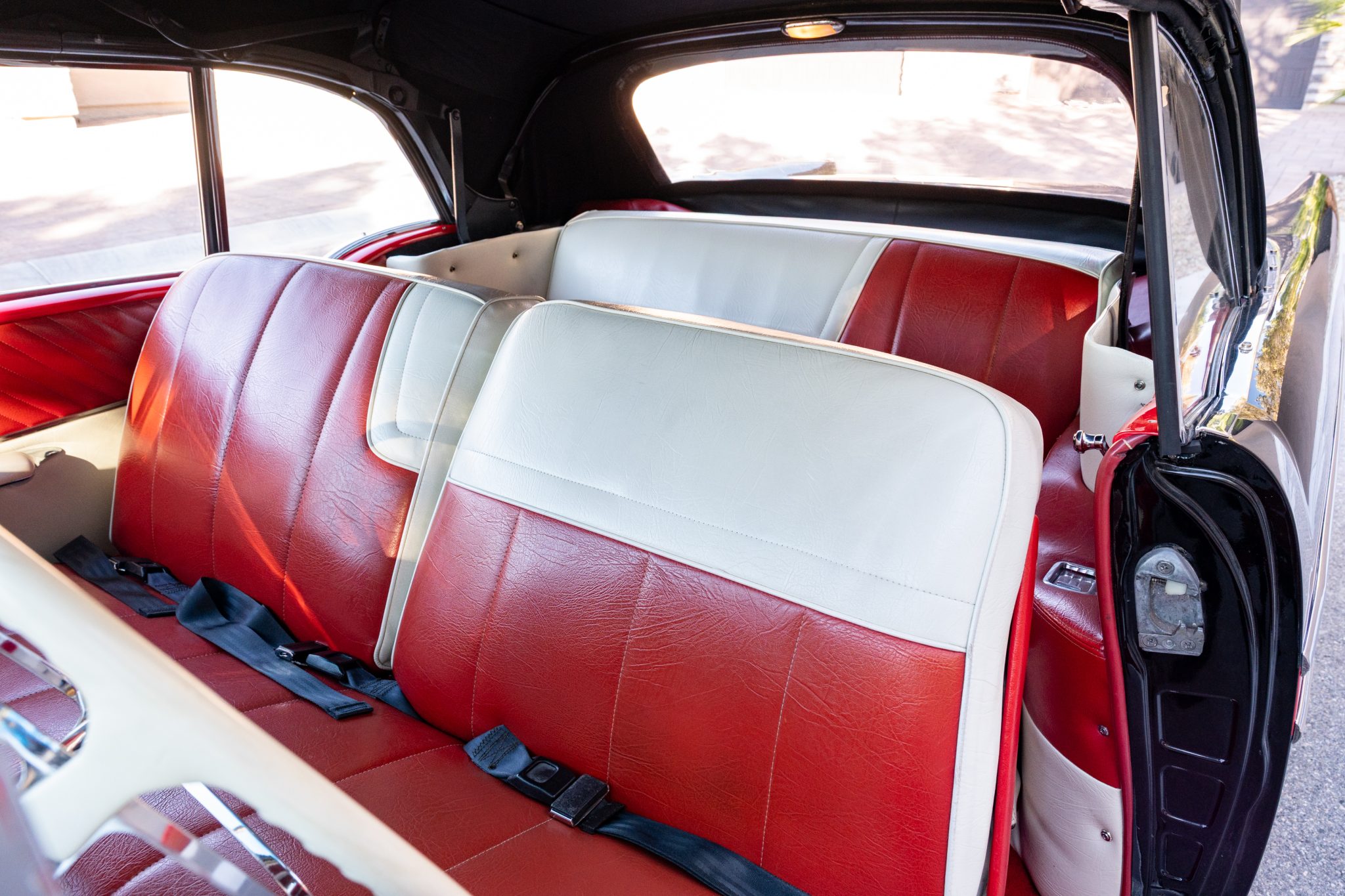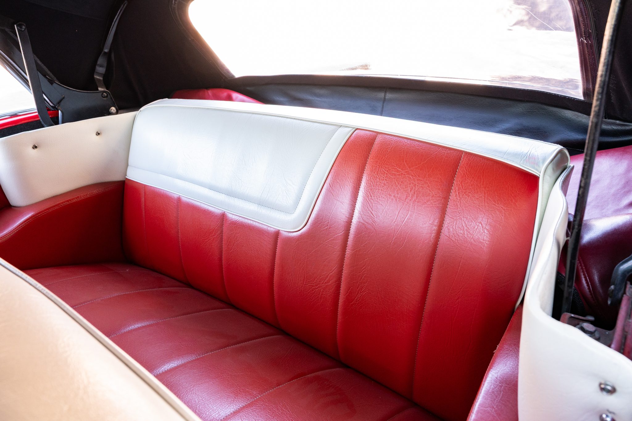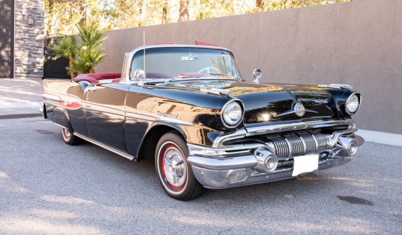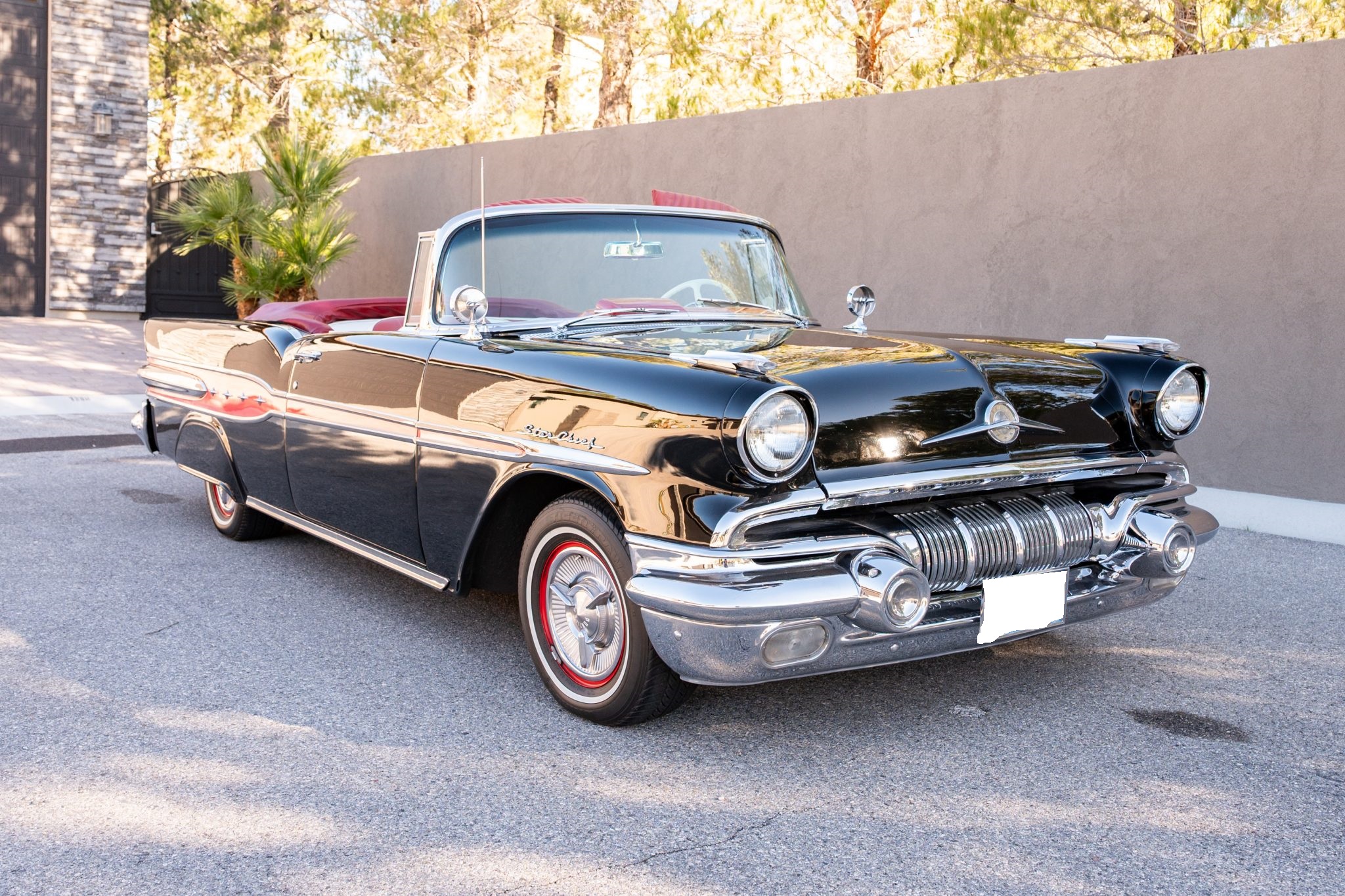 Refurbishment work was performed over the years, and the car has been refinished in black with red accents over a red and white interior. Power is provided by a 347ci V8 linked with a four-speed automatic transmission. Equipment includes a black convertible top, a red top boot, 14″ wheels, front disc brakes, power steering, lap belts, and air conditioning.
