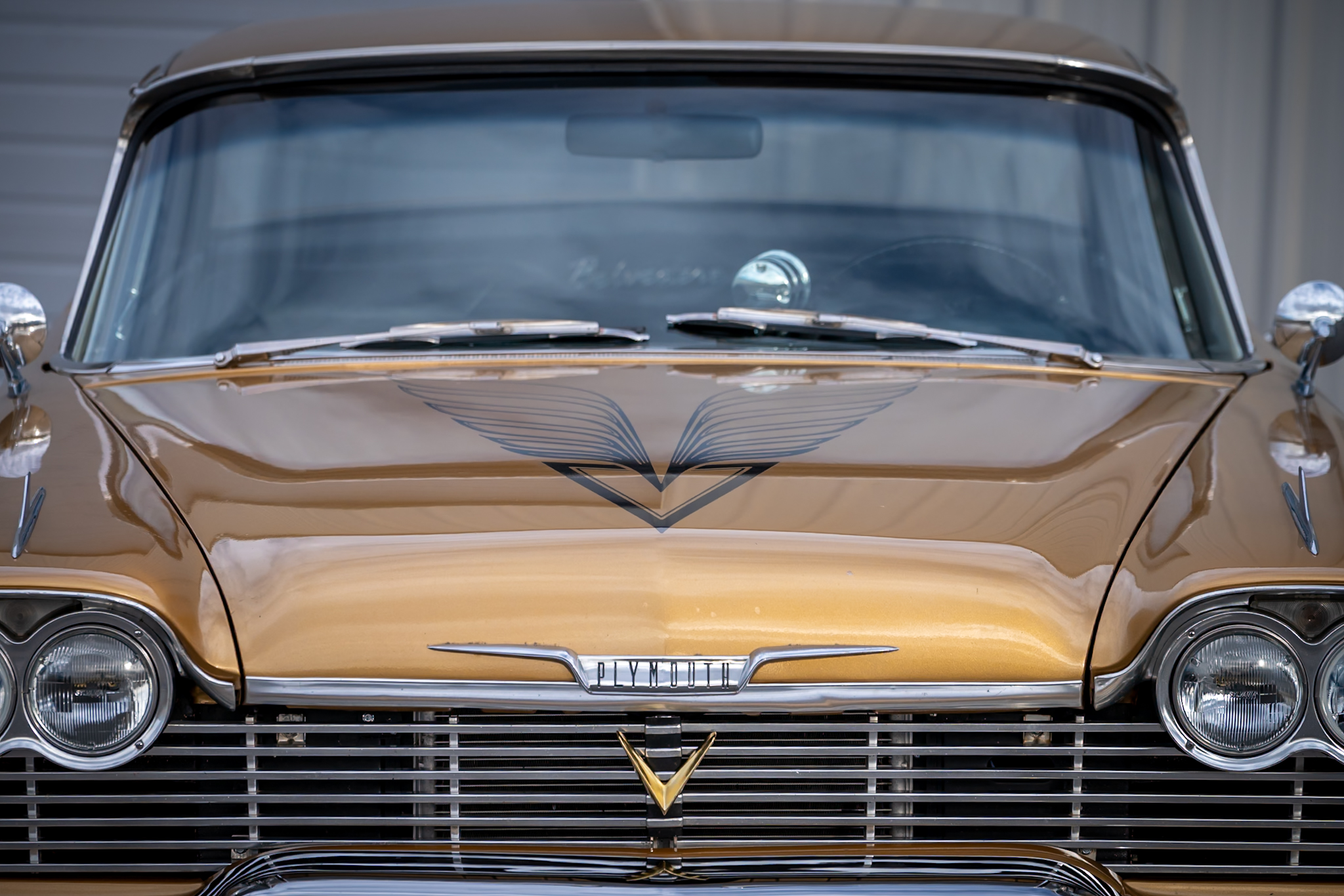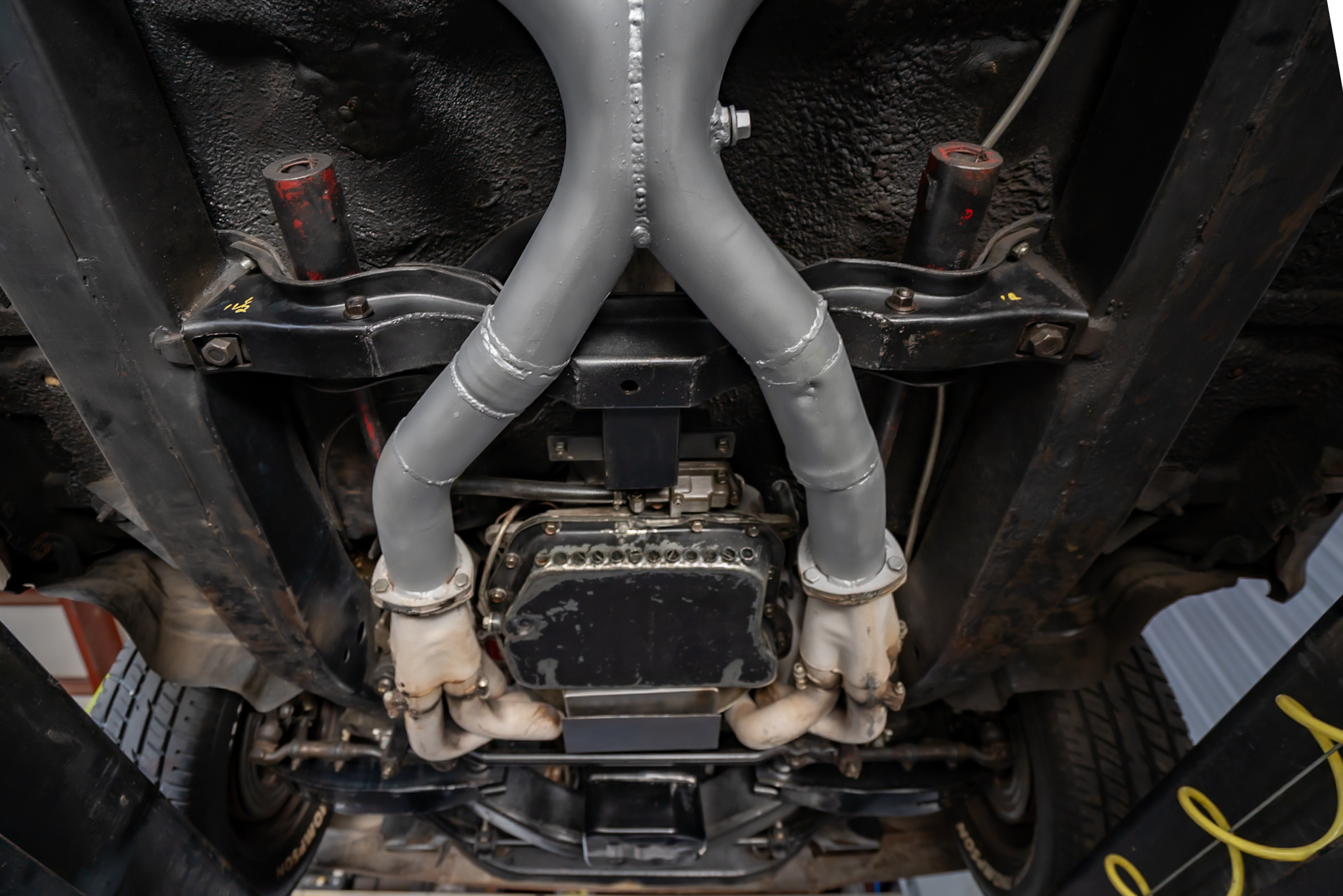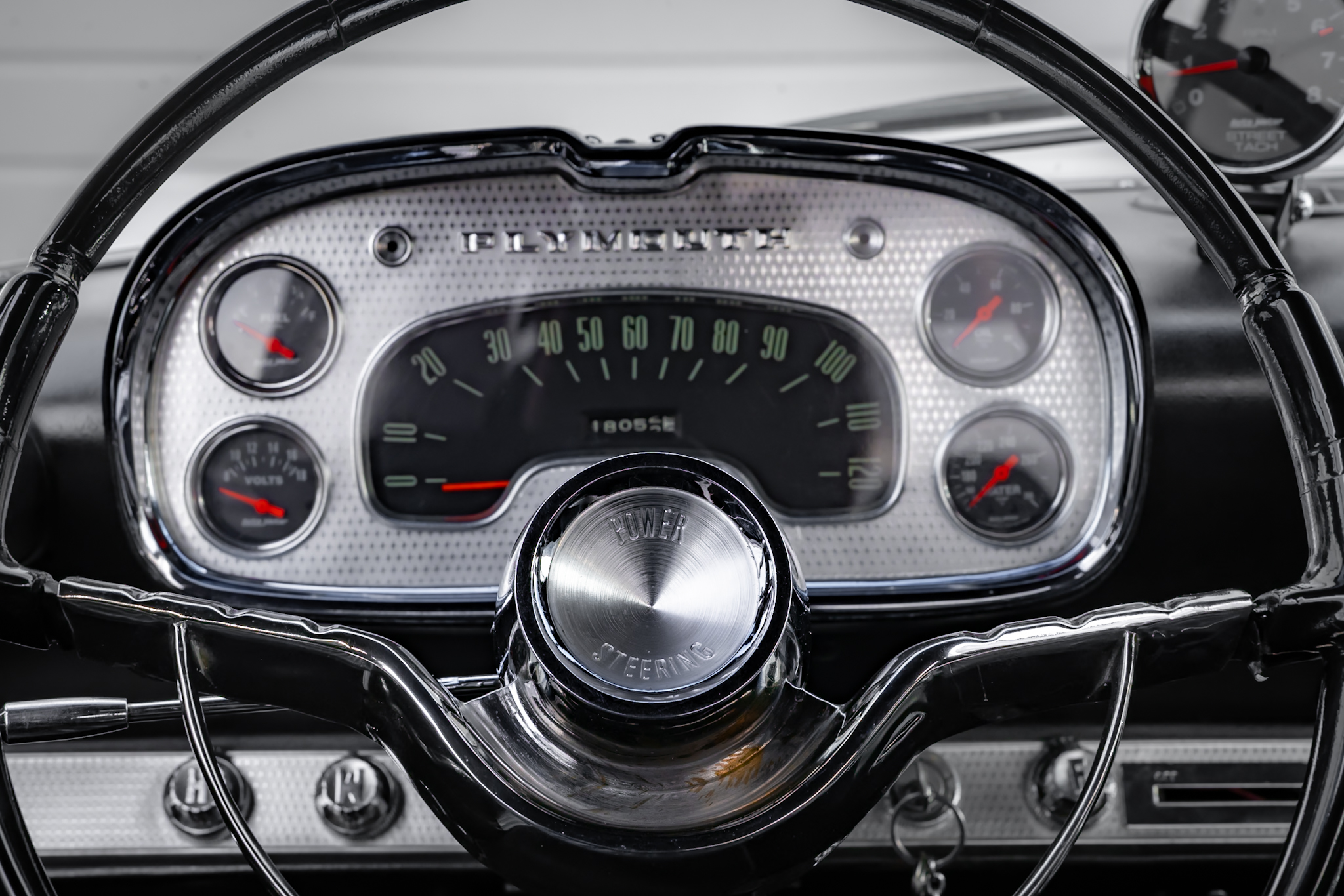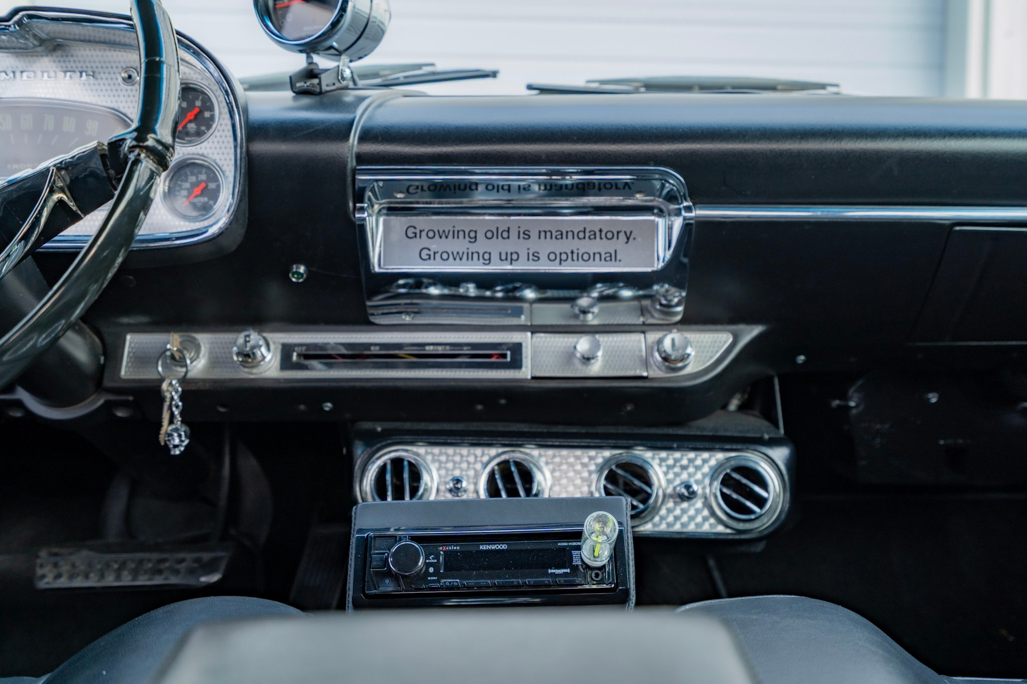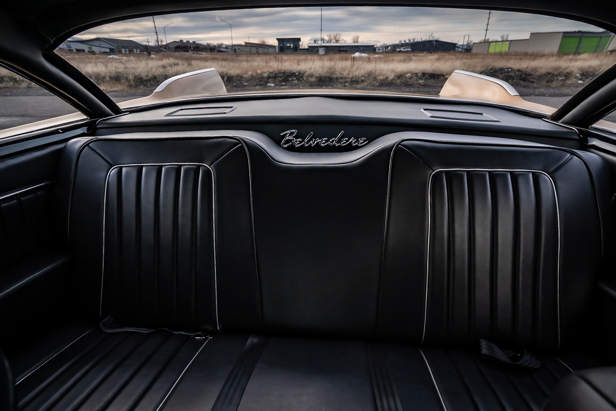 Work included installing a replacement 512ci V8, overhauling the three-speed automatic transmission, replacing the wheels and tires, retrofitting a front disc brake setup, and refreshing the black vinyl interior. The body is finished in gold with black accents on the hood and bodysides, and the cabin is outfitted with Vintage Air climate control, a custom center console, and a Kenwood CD stereo. Additional equipment includes a limited-slip differential, black 15” steel wheels, chrome hubcaps, power steering, long-tube headers, and an X-pipe exhaust with MagnaFlow mufflers.