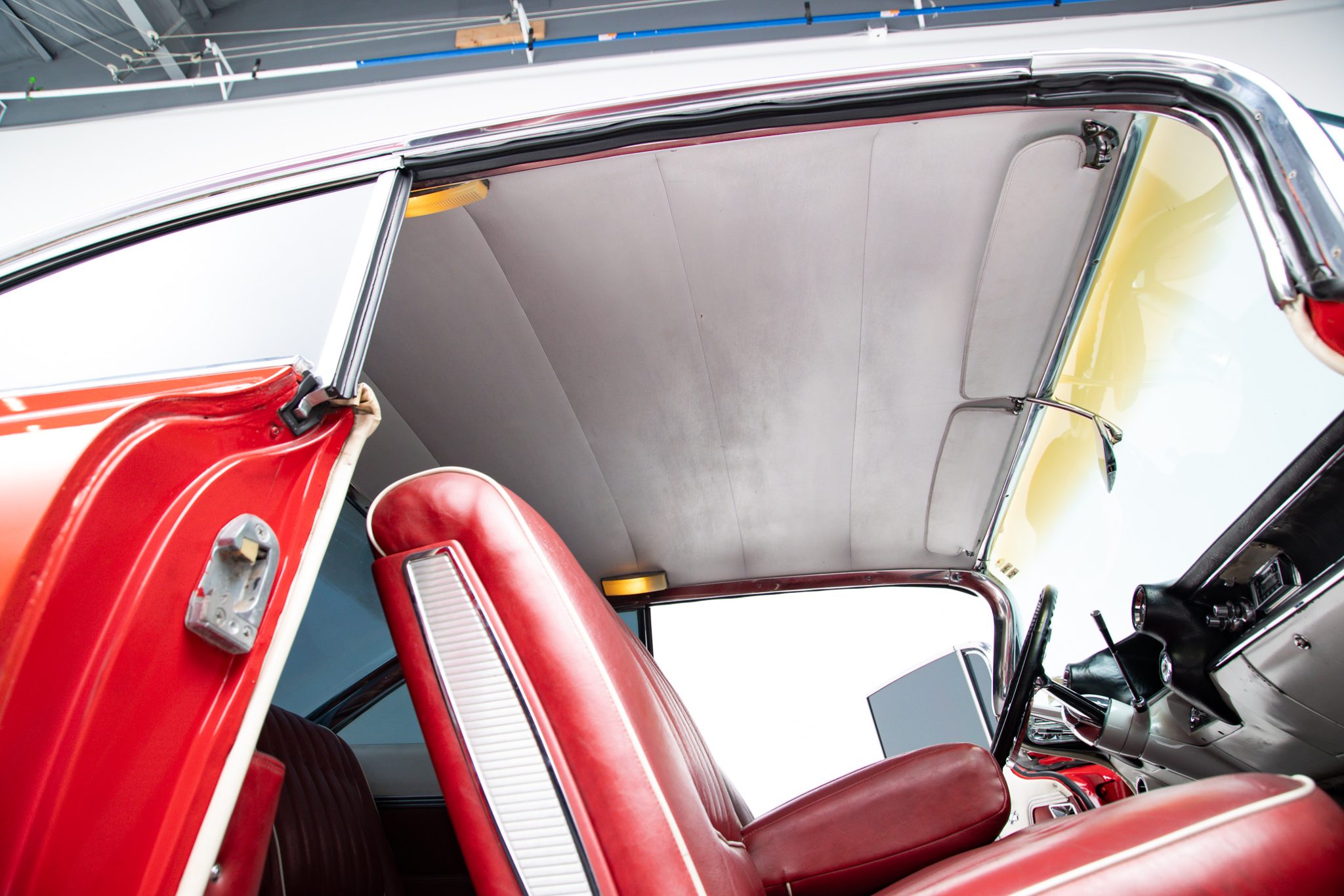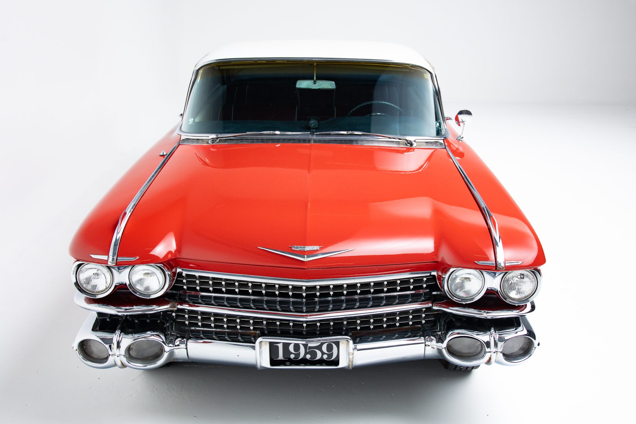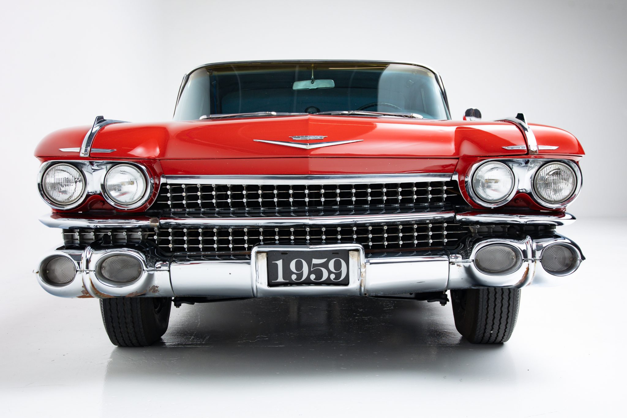 This 1959 Cadillac Coupe DeVille is powered by a 390ci V8 with Holley Sniper fuel injection, and its rear wheels are driven through a four-speed Hydra-Matic automatic transmission. The car wears a repaint in red with a white roof, and equipment includes power steering, power-assisted brakes, LED rear lighting, tinted windows, 15″ steel wheels, Cadillac-crest wheel covers, power windows, and a Cadillac-branded radio. The current owner purchased the car seven years ago out of an Arizona collection, and subsequent work has included brake service, overhauling the suspension system, and replacing the weather seals, window felts, and several window motors.