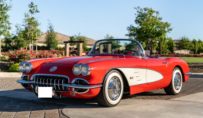 A 6.2-liter LS3 V8 linked with a Tremec T56 Magnum six-speed manual transmission and a Dana 44 rear end was installed along with power-assisted rack-and-pinion steering and four-wheel disc brakes. An Al Knoch interior kit was fitted, and additional equipment includes a white convertible soft top, a removable body-color hardtop, 20″ Deluxe Wheel Company wheels with integrated whitewalls, Vintage Air air conditioning, a rebuilt Wonder Bar AM radio, and Dakota Digital instrumentation.
