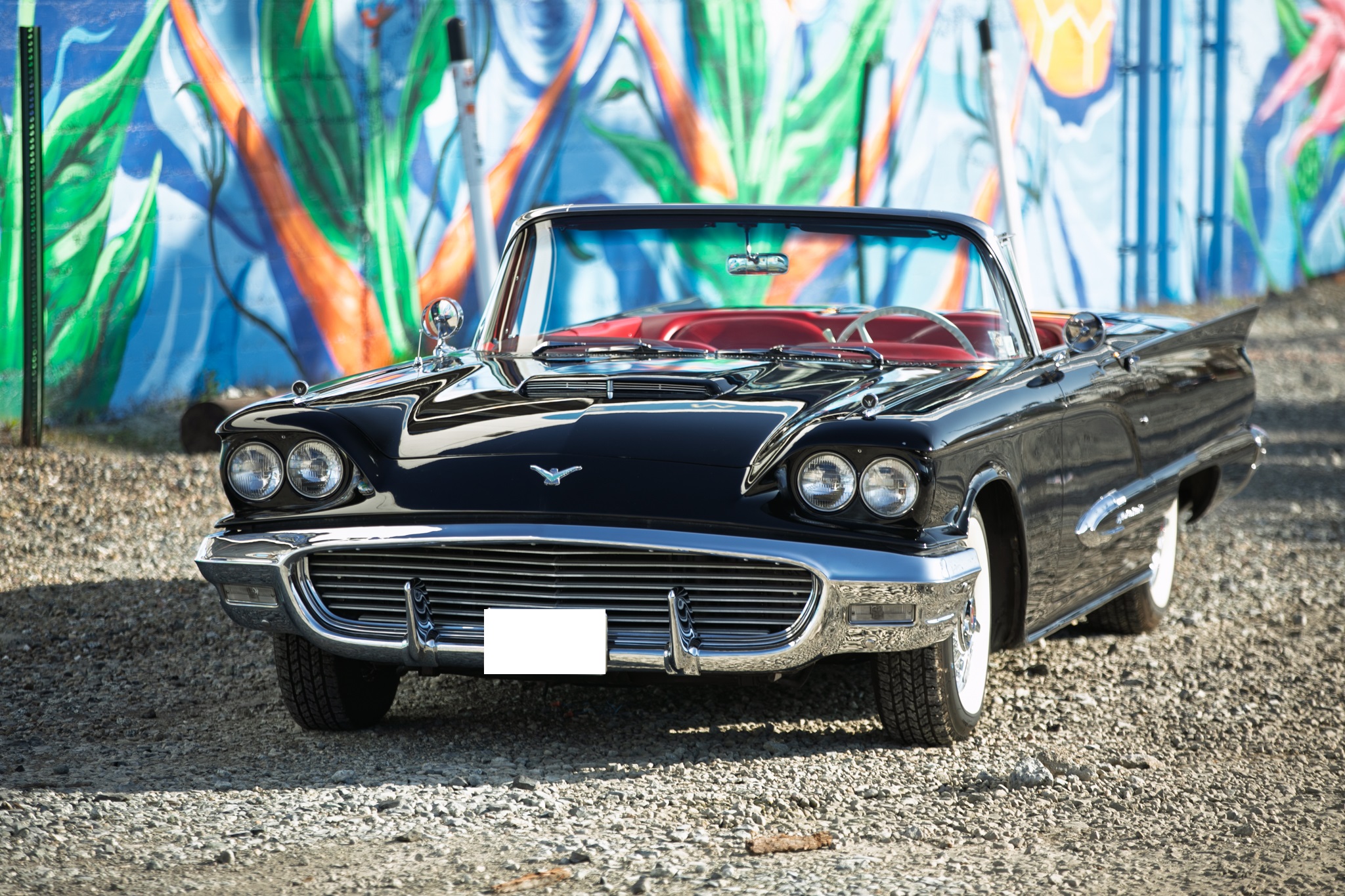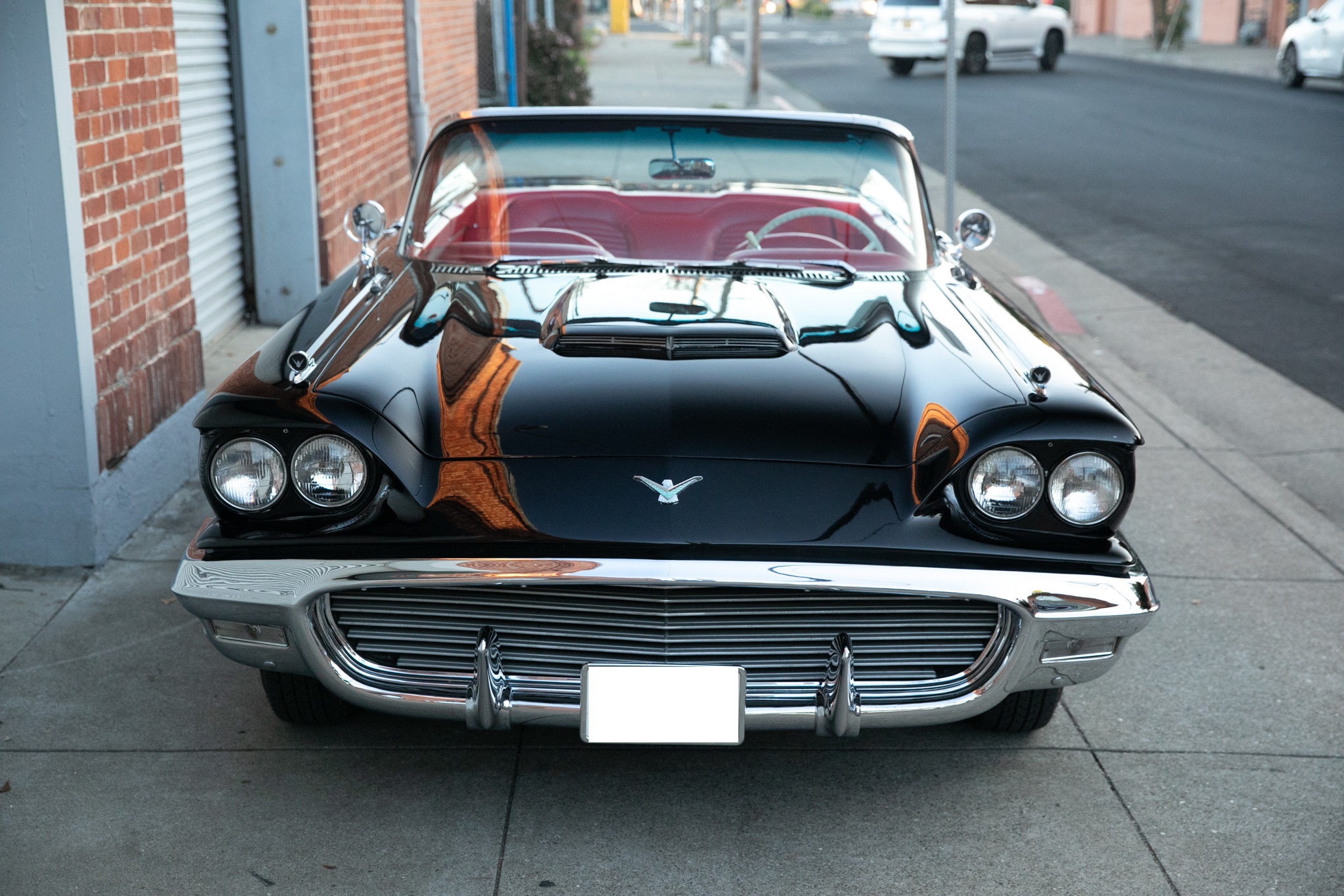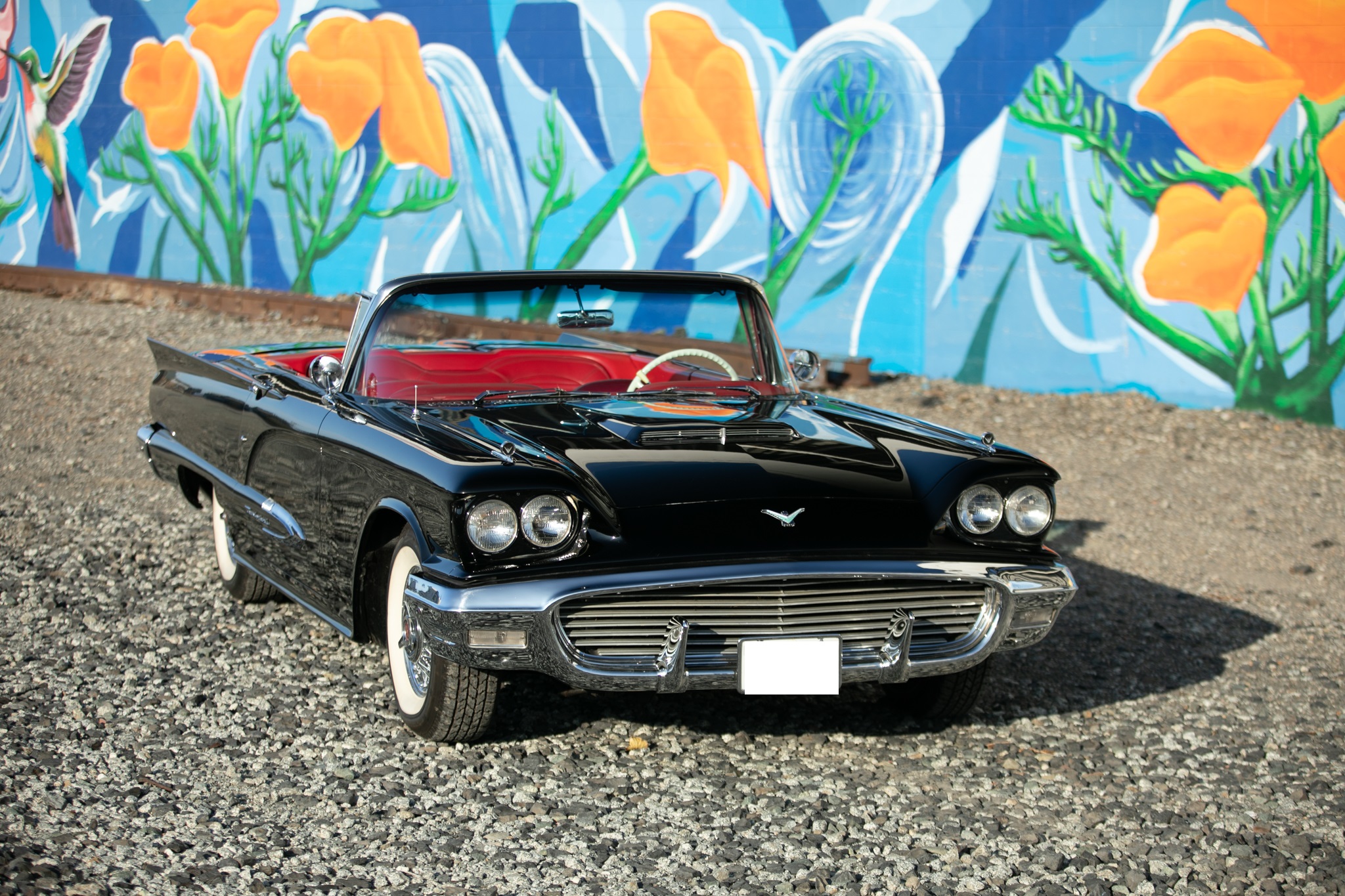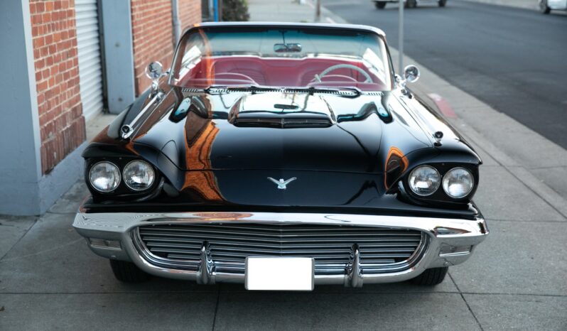 The car has been primarily stored since, and in preparation for the sale the fuel pump, ignition components, battery cables, and battery for the 430ci V8 were replaced and the retrofitted Edelbrock carburetor was adjusted. The car is further equipped with a power-retractable White soft top, Kelsey-Hayes 14″ wire-spoke wheels, an AM/FM radio, power windows, and front bucket seats.