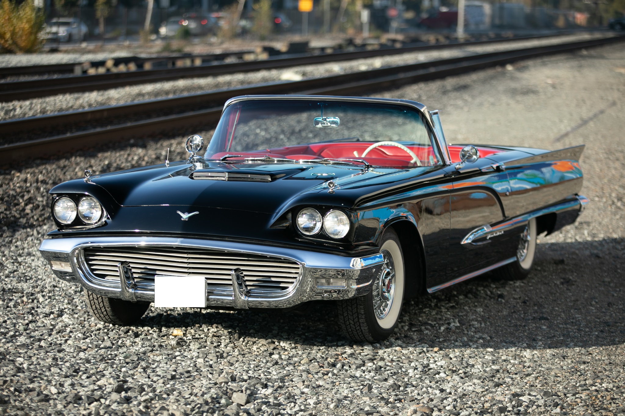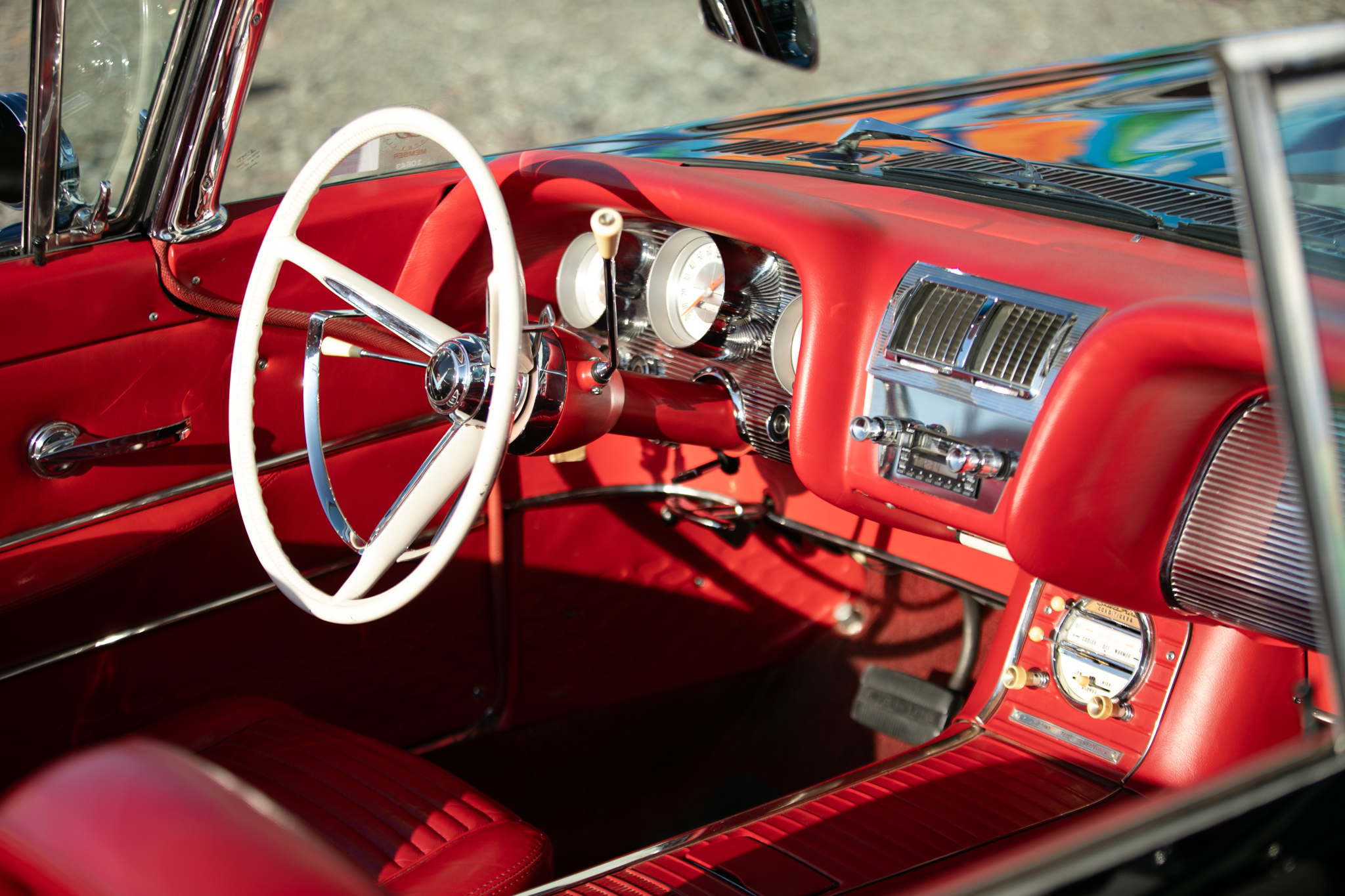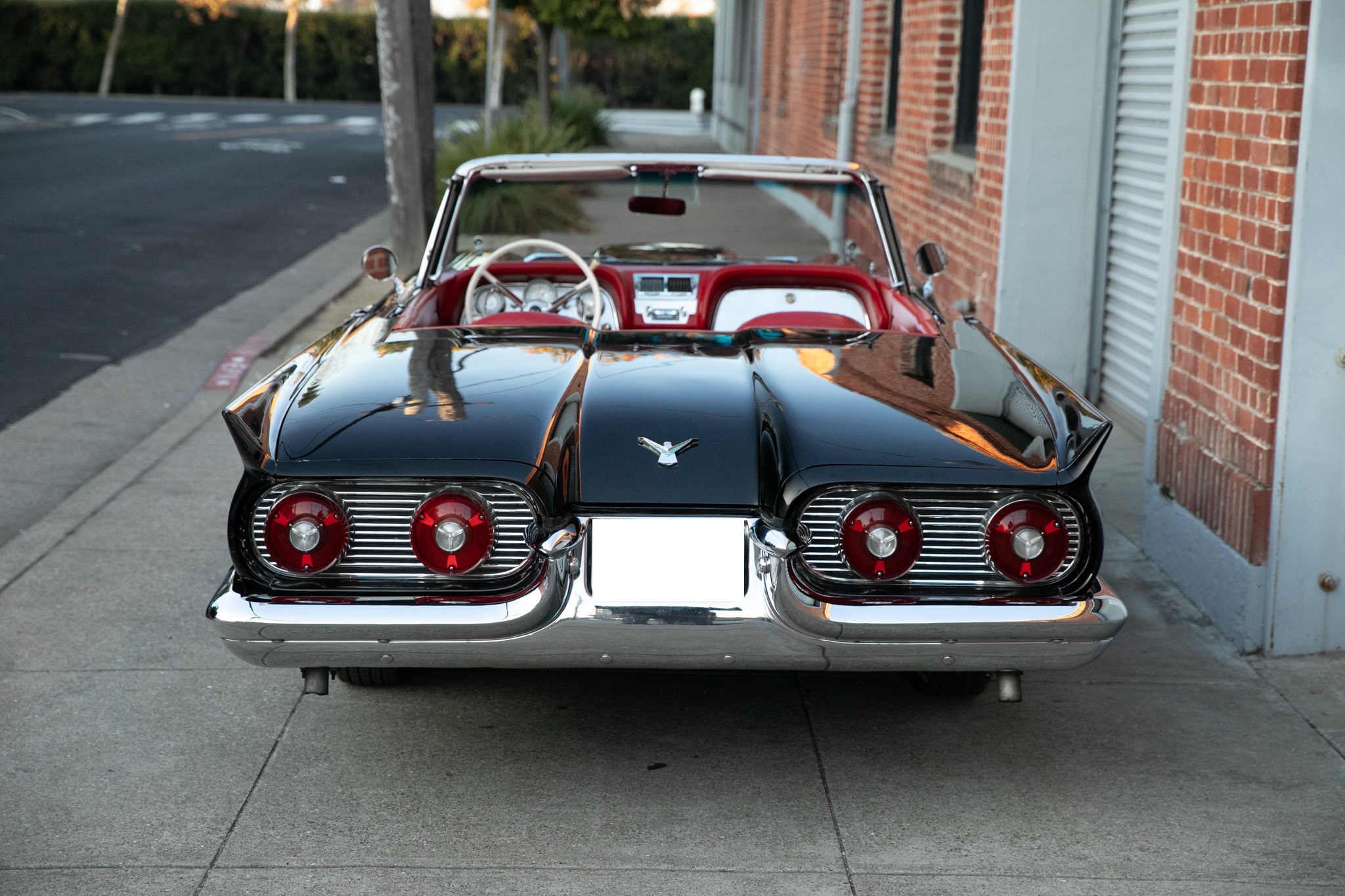 The car has been primarily stored since, and in preparation for the sale the fuel pump, ignition components, battery cables, and battery for the 430ci V8 were replaced and the retrofitted Edelbrock carburetor was adjusted. The car is further equipped with a power-retractable White soft top, Kelsey-Hayes 14″ wire-spoke wheels, an AM/FM radio, power windows, and front bucket seats.