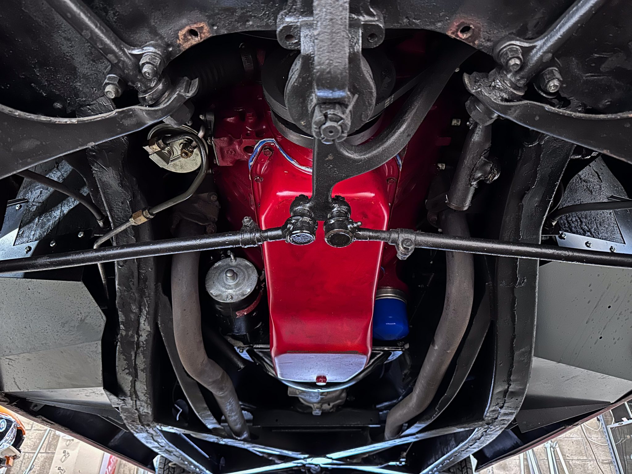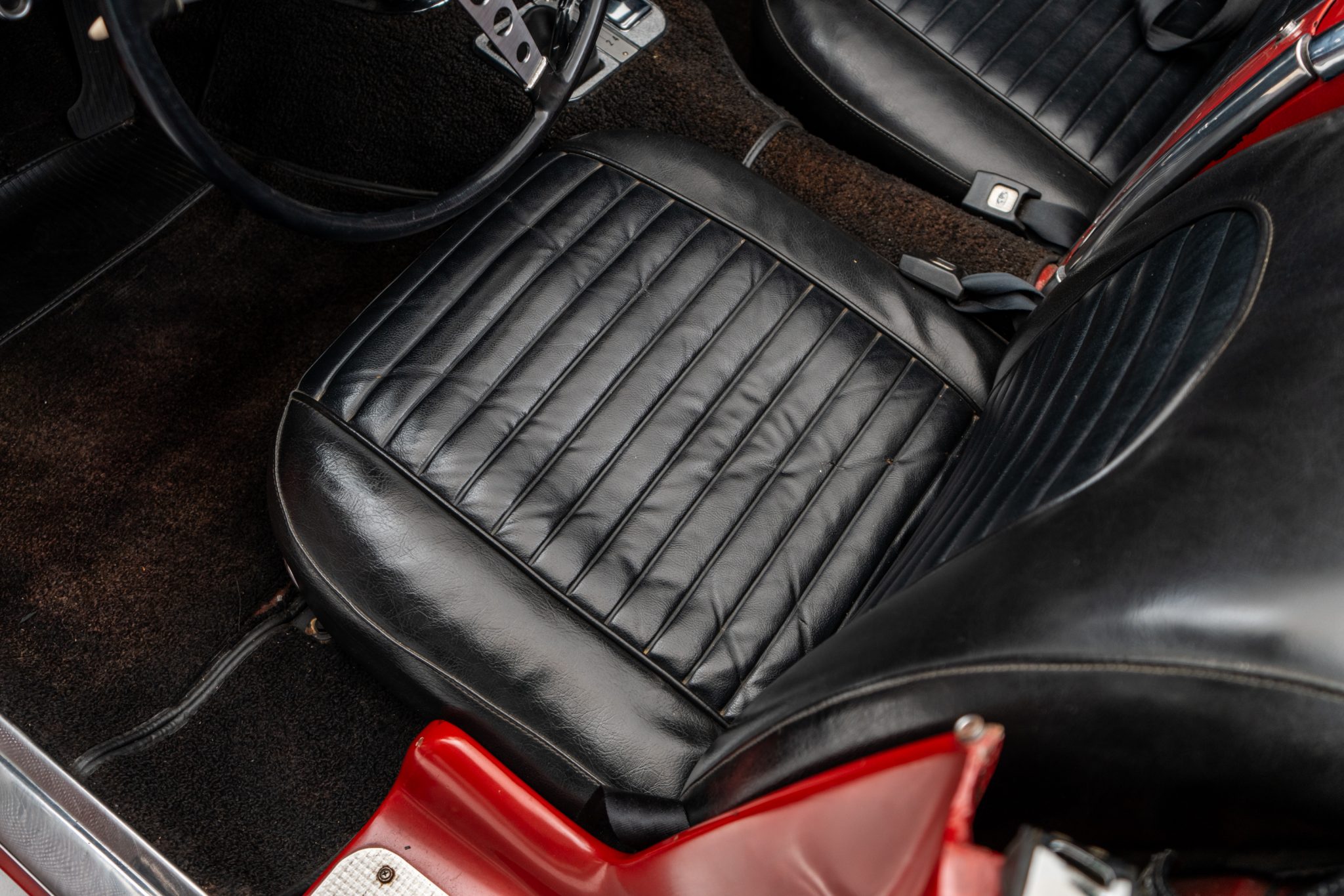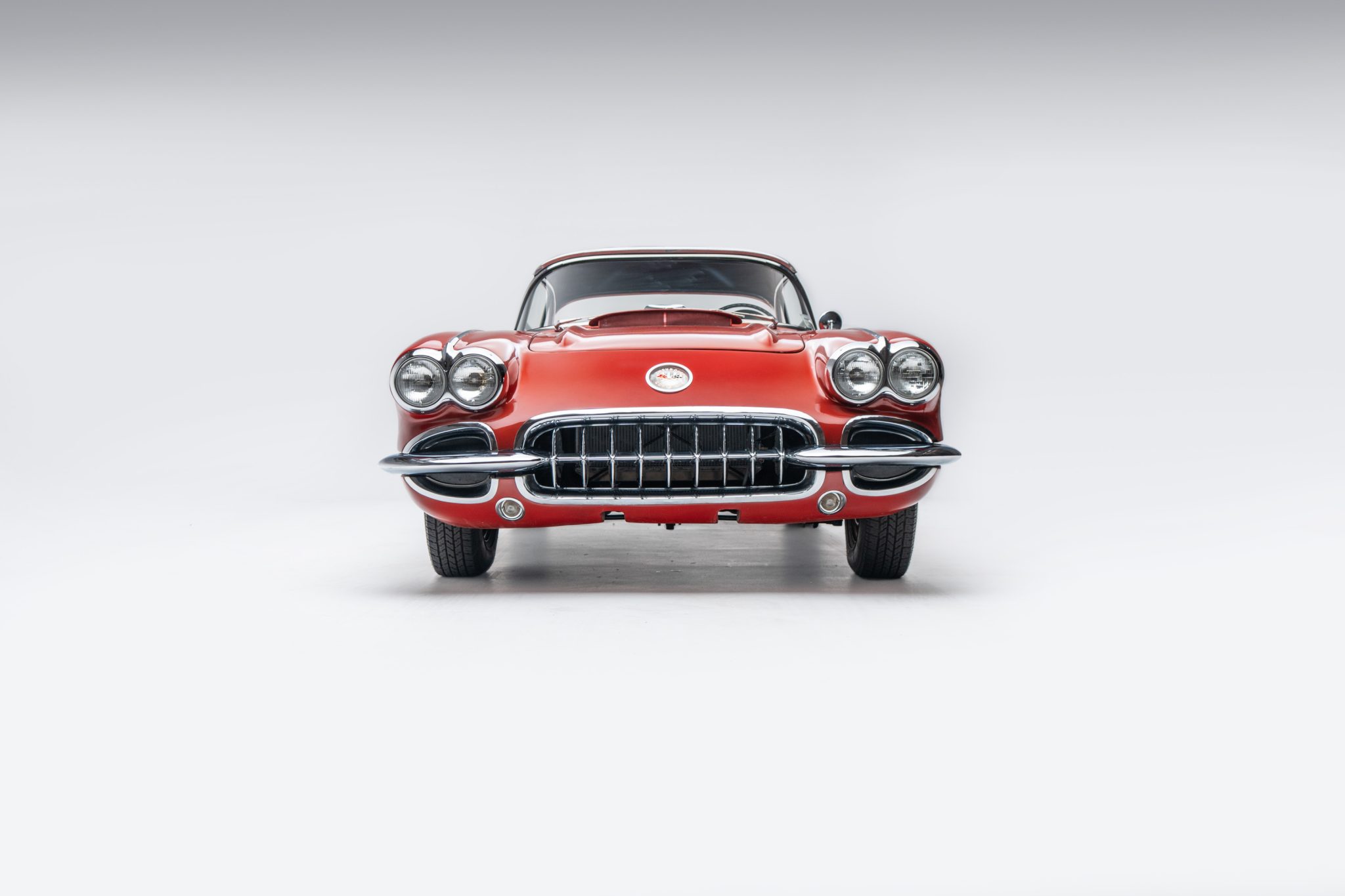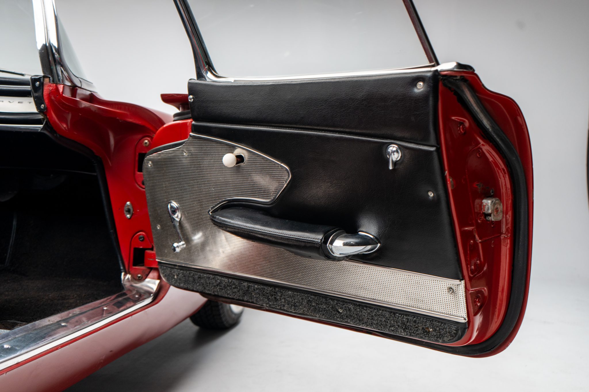 This 1960 Chevrolet Corvette was fitted with a replacement 283ci V8 and refinished in maroon Subsequent maintenance involved fluid changes and replacing the thermostat, spark plugs, motor mount bushings, fuel filter, and rear sway bar end links. Features include a black vinyl interior, a four-speed manual transmission, dual four-barrel carburetors, a removable body-color hardtop, 15″ steel wheels, windshield washers, and a dash-mounted rearview mirror