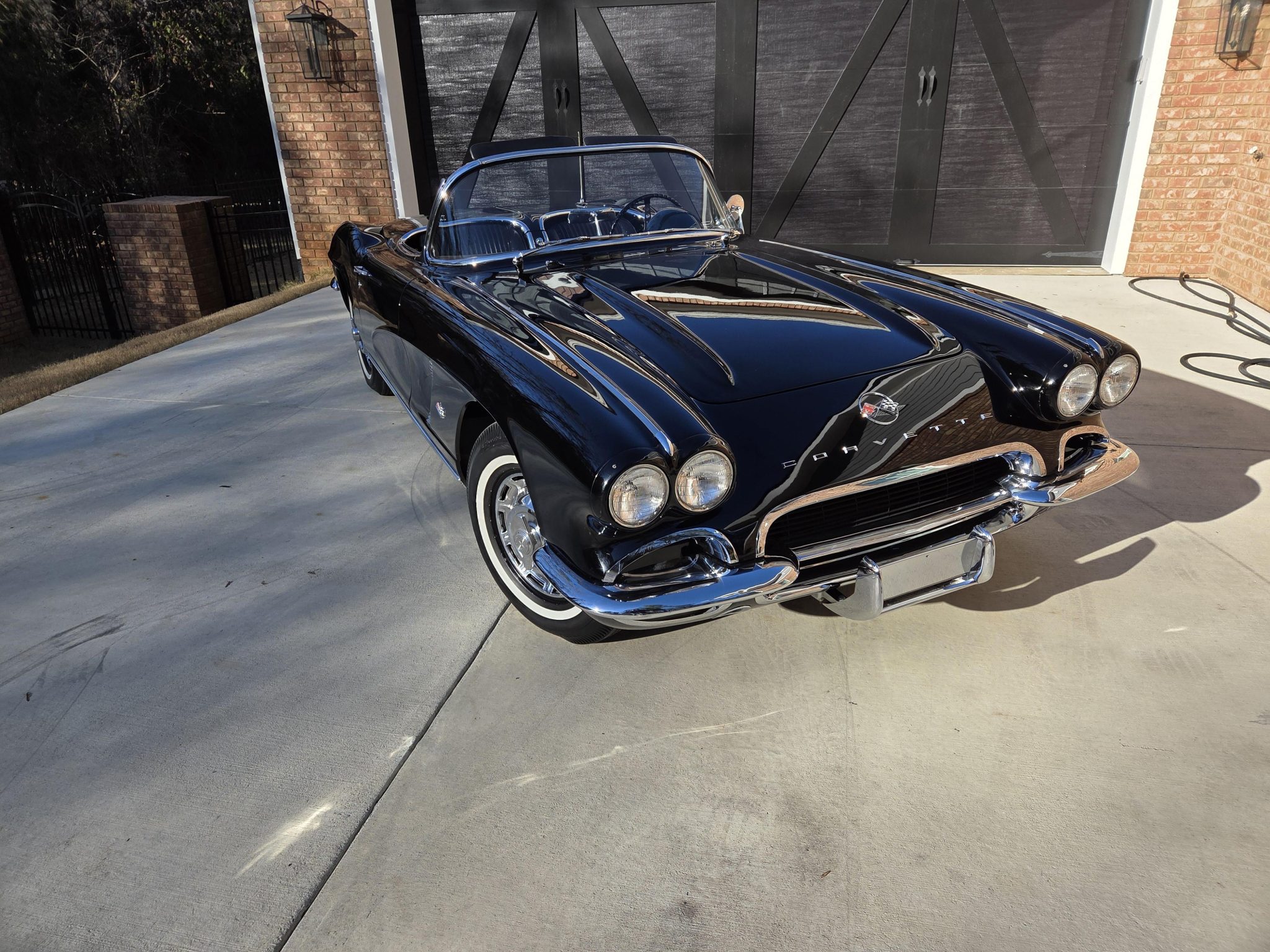 This 1962 Chevrolet Corvette is a triple-black convertible that was refurbished circa 2017 Powered by a 327ci V8 paired with a four-speed manual transmission, the car is equipped with a Positraction differential, 15″ steel wheels, a heater, and a Wonder Bar AM radio.