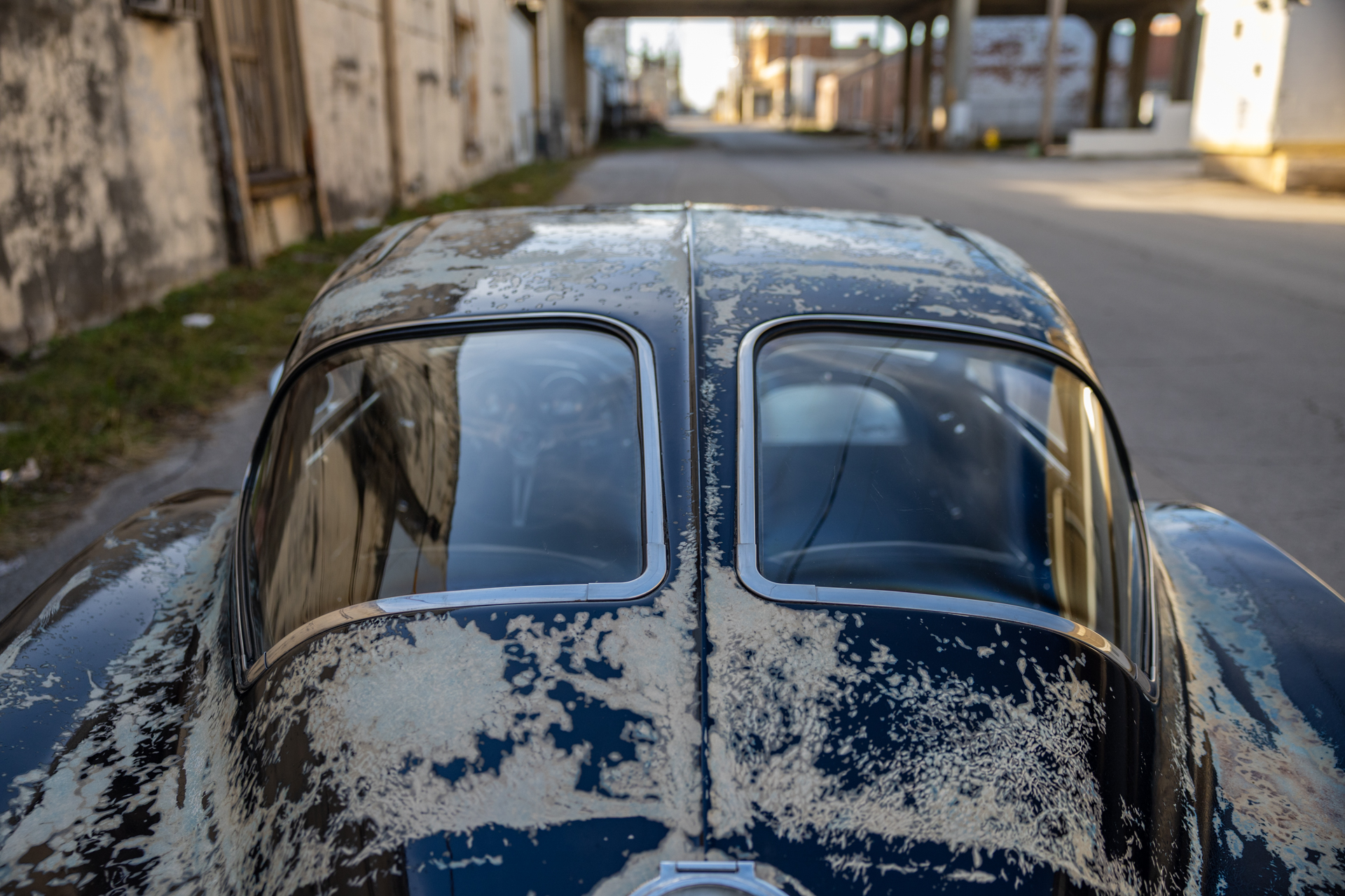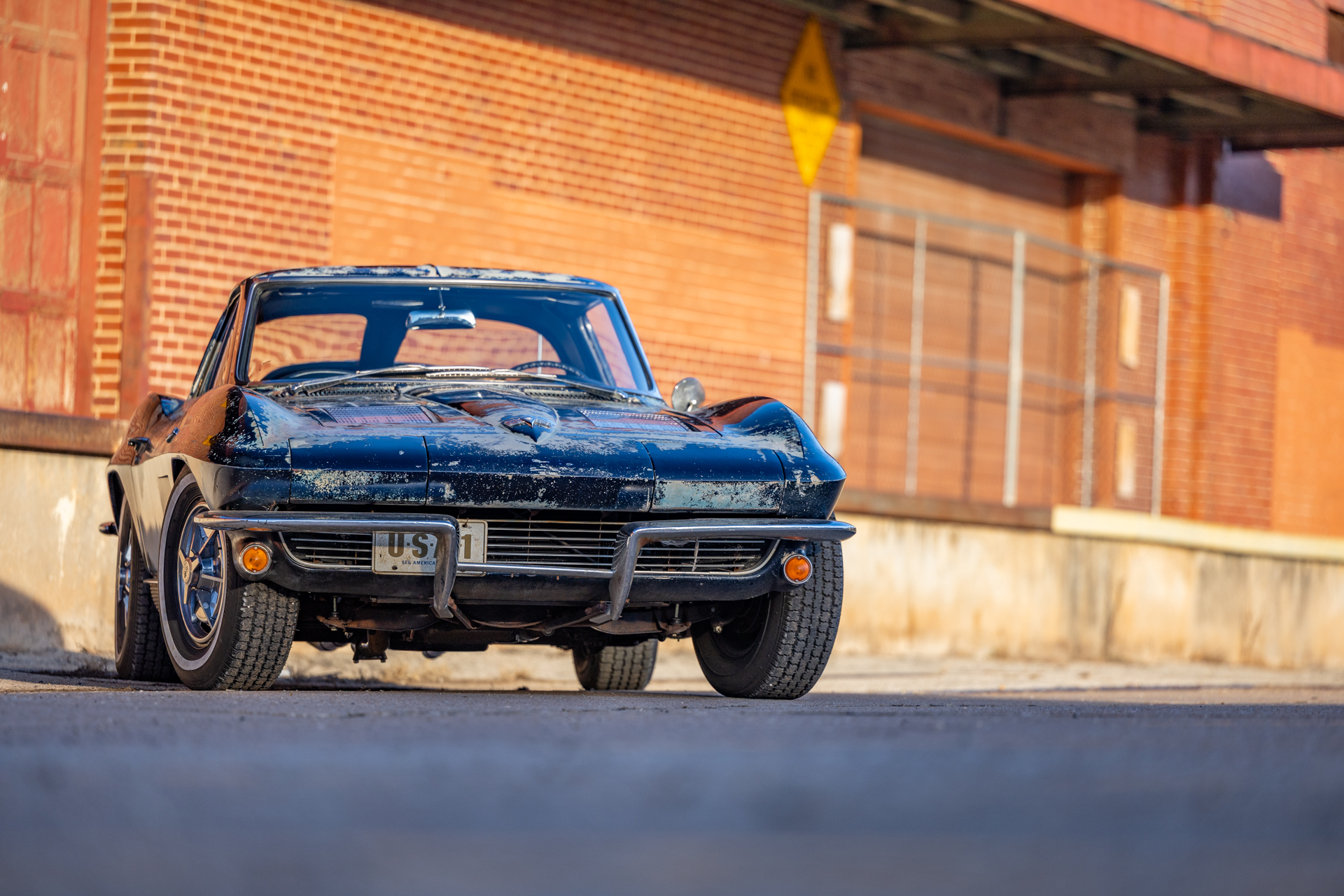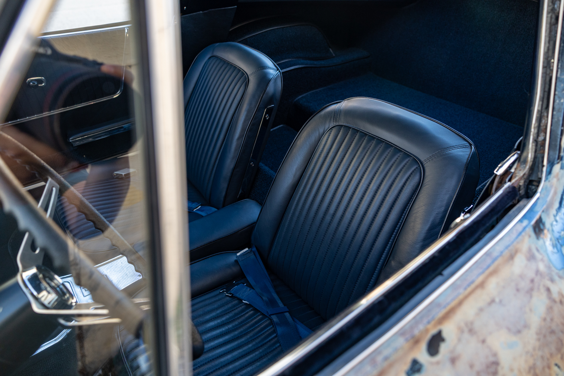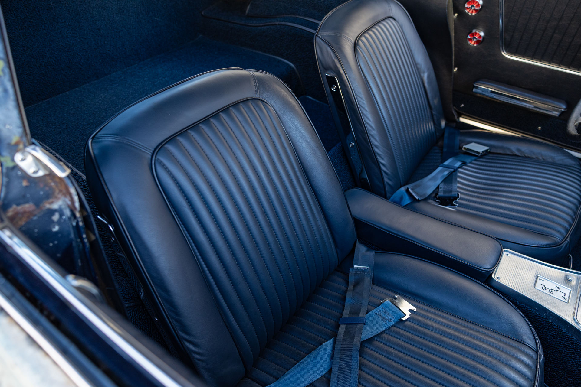 A 6.2-liter LS3 V8 was installed along with a rebuilt 4L60E four-speed automatic transmission, an aluminum radiator, and a replacement fuel tank. The interior was also overhauled in 2023 and features bucket seats trimmed in blue leather as well as a RetroSound stereo unit. The fiberglass body is coated in worn Daytona Blue paint that has chipped away in areas, and the chassis features independent suspension as well as power steering and power-assisted front disc brakes with drilled and slotted rotors.