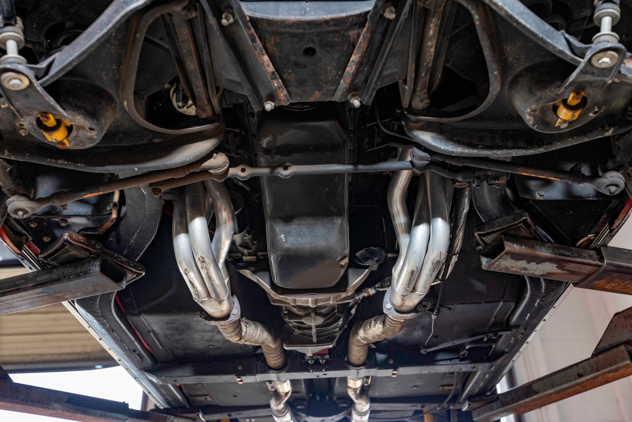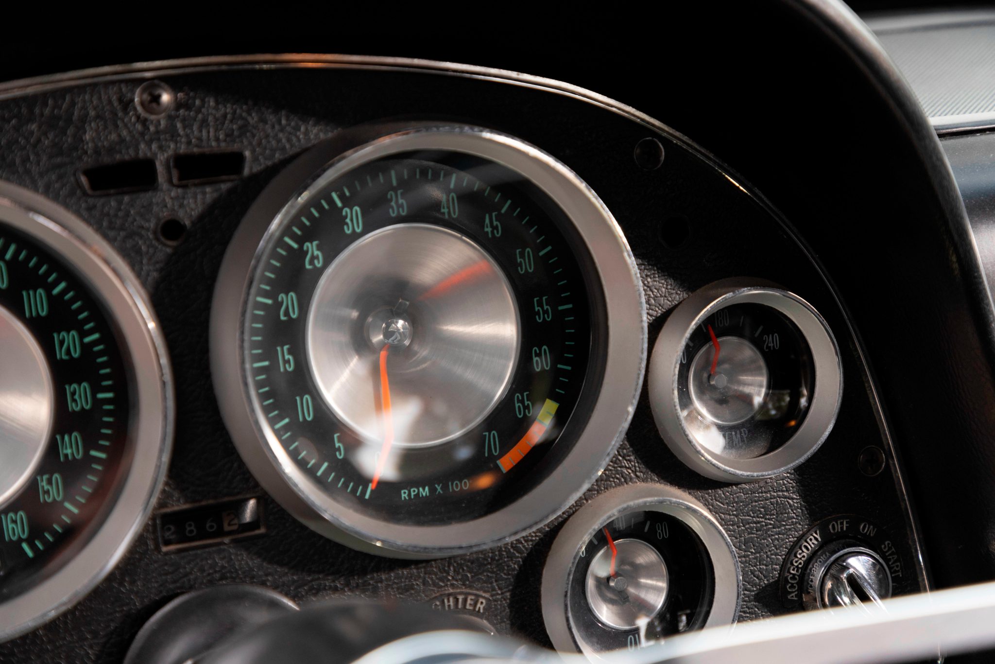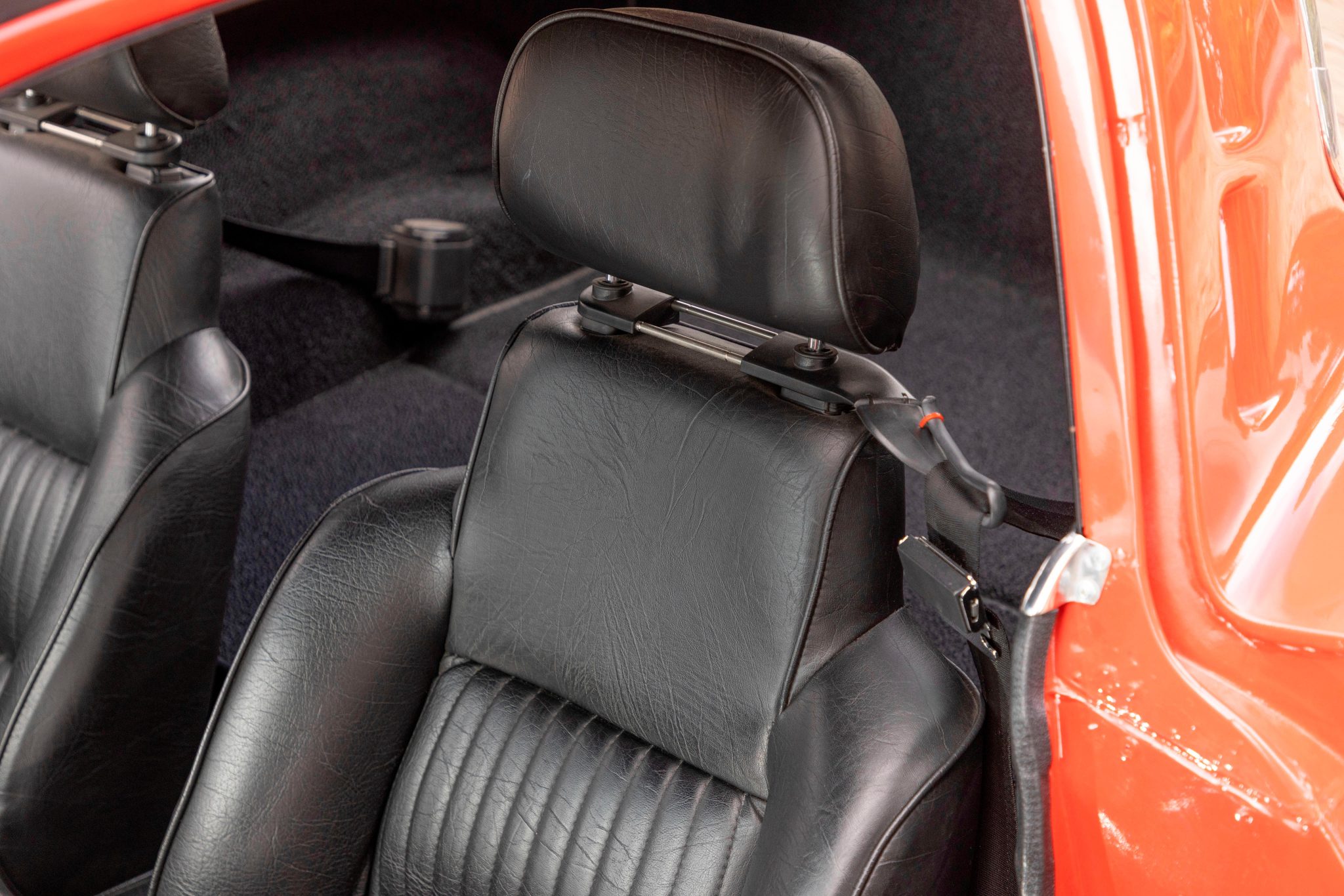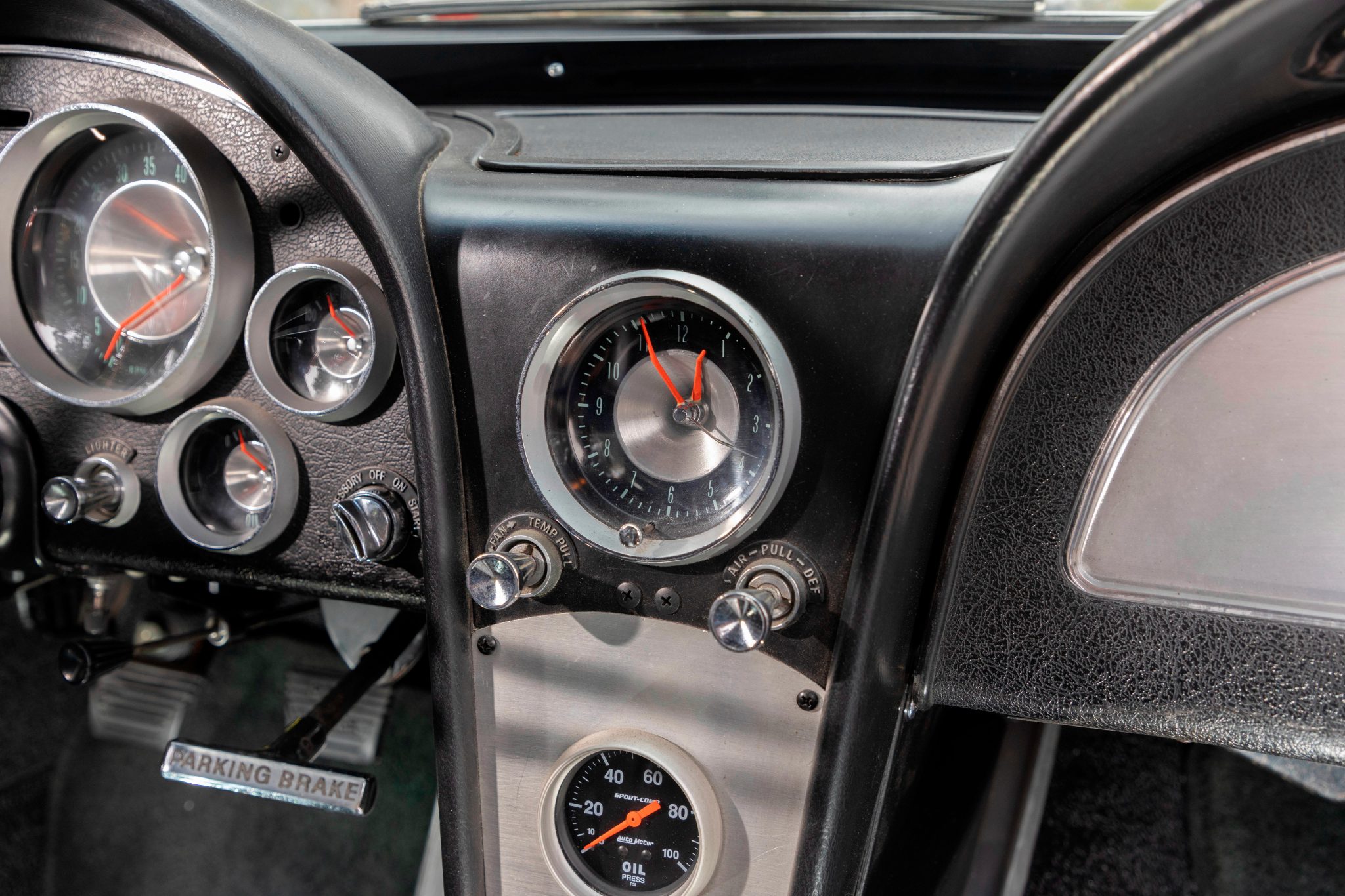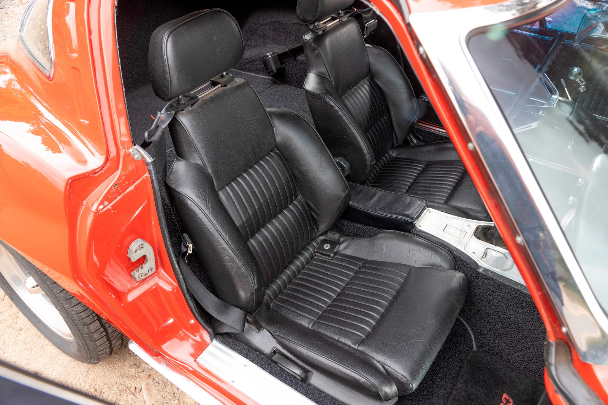 This 1963 Chevrolet Corvette split-window coupe was subsequently refurbished and fitted with a replacement 427ci stroker V8 as well as a Tremec TKO 600 five-speed manual transmission. Breathing through a Holley 800-cfm carburetor, the engine features a Dart block, a Schneider roller camshaft, a Melling oil pump, JE pistons, ARP hardware, Moroso stud girdles, an Edelbrock intake manifold, MSD ignition components, Hooker headers, and Allen’s chambered exhaust pipes. The body was repainted in red and modified with central exhaust outlets, and Honda-sourced bucket seats were installed and the battery was relocated to the cabin. Front disc brakes have been added, and other highlights include American Racing 15” wheels, Bilstein Shocks, a Flaming River steering box, and a limited-slip differential.