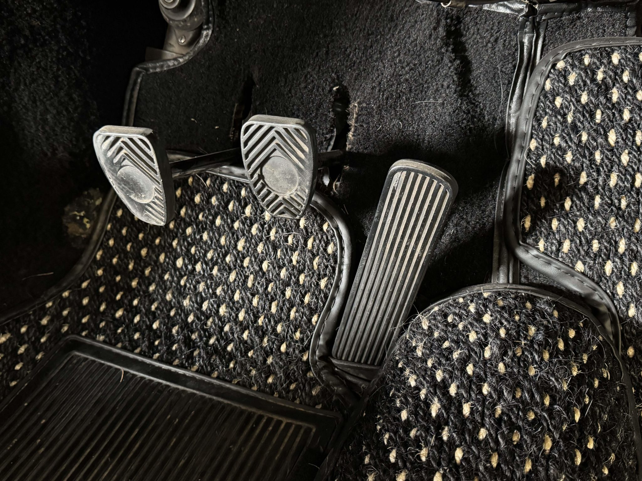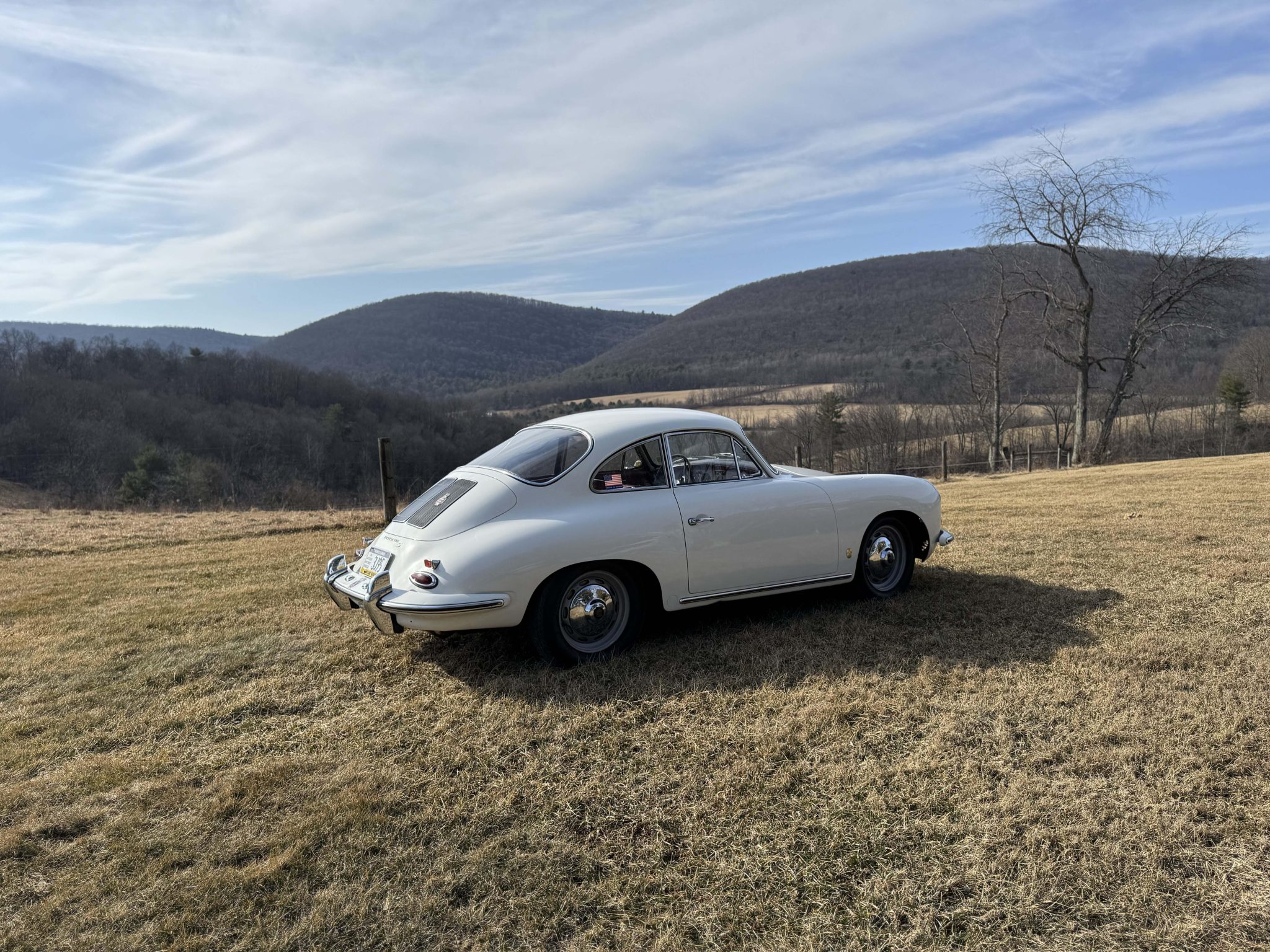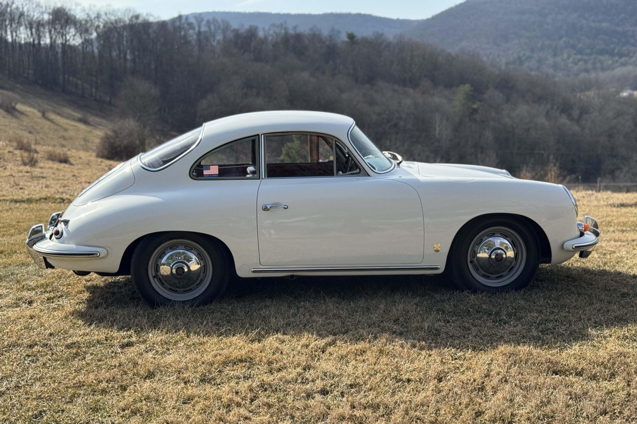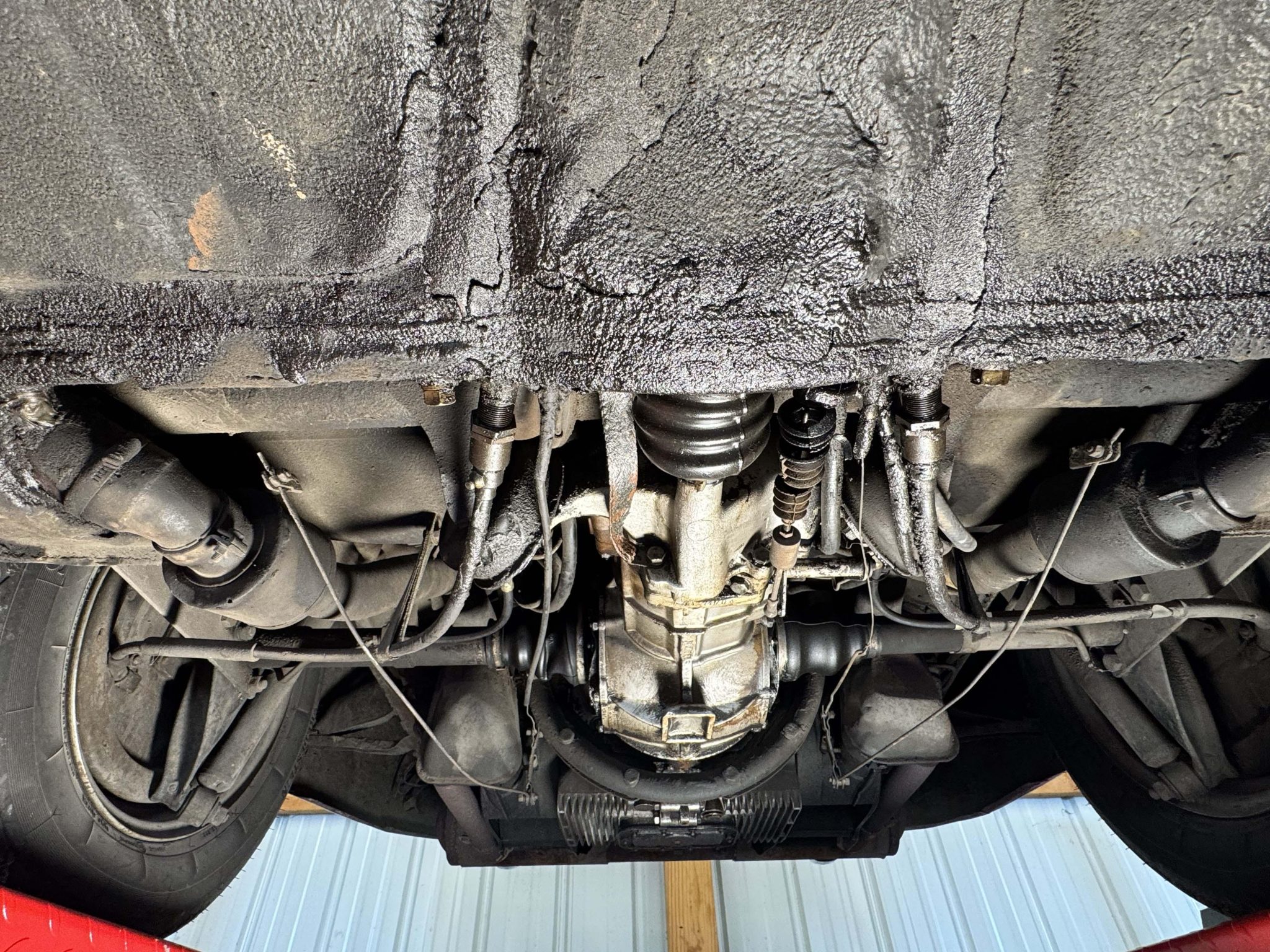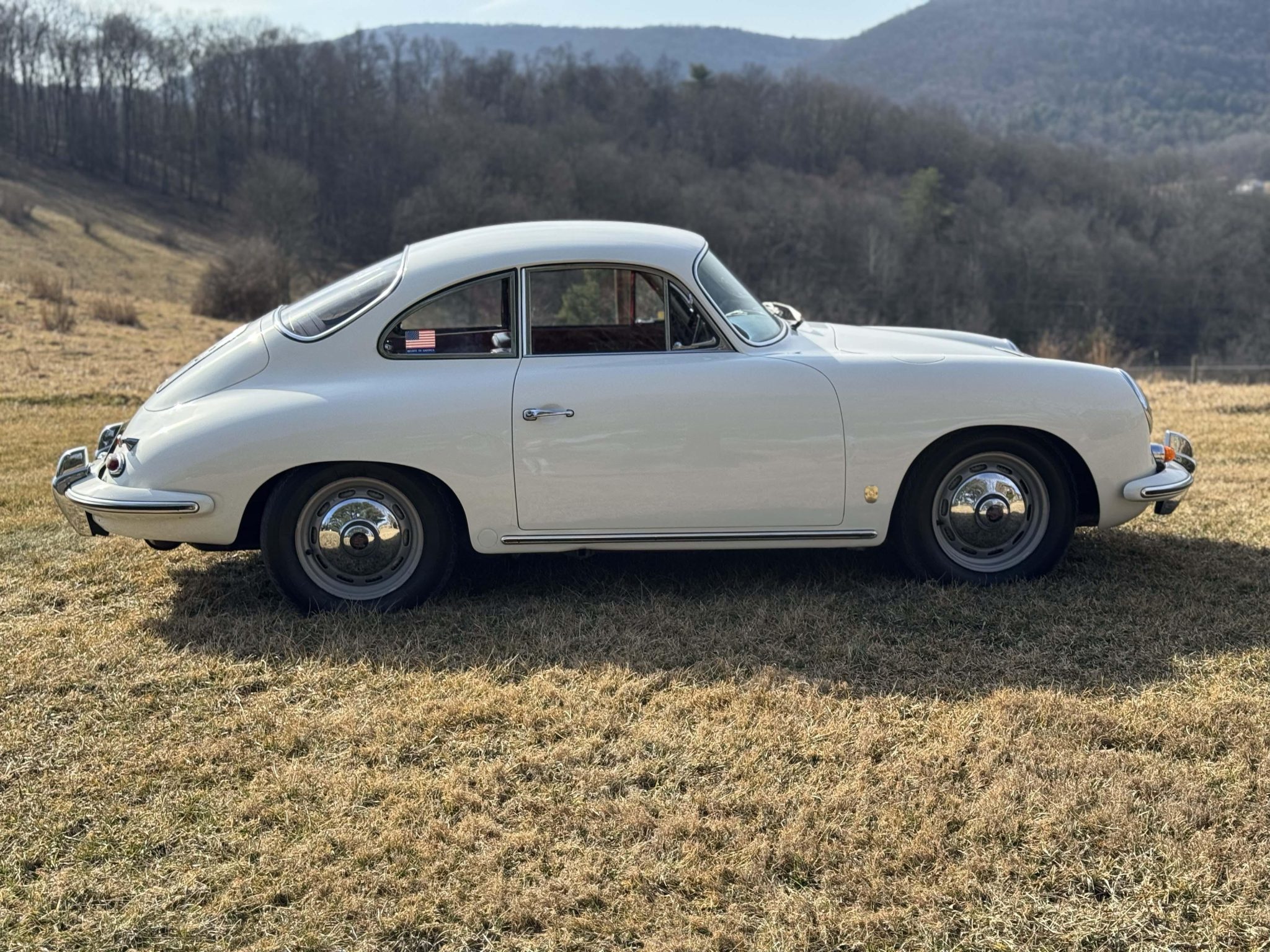 The Super flat-four has reportedly been increased in displacement to 1,800cc and is paired with a four-speed manual transaxle. It has been repainted white over red leather, and features include 15″ steel wheels, vent windows, body-color bumpers, an AM/FM radio, a cabin heater, and front bucket seats.