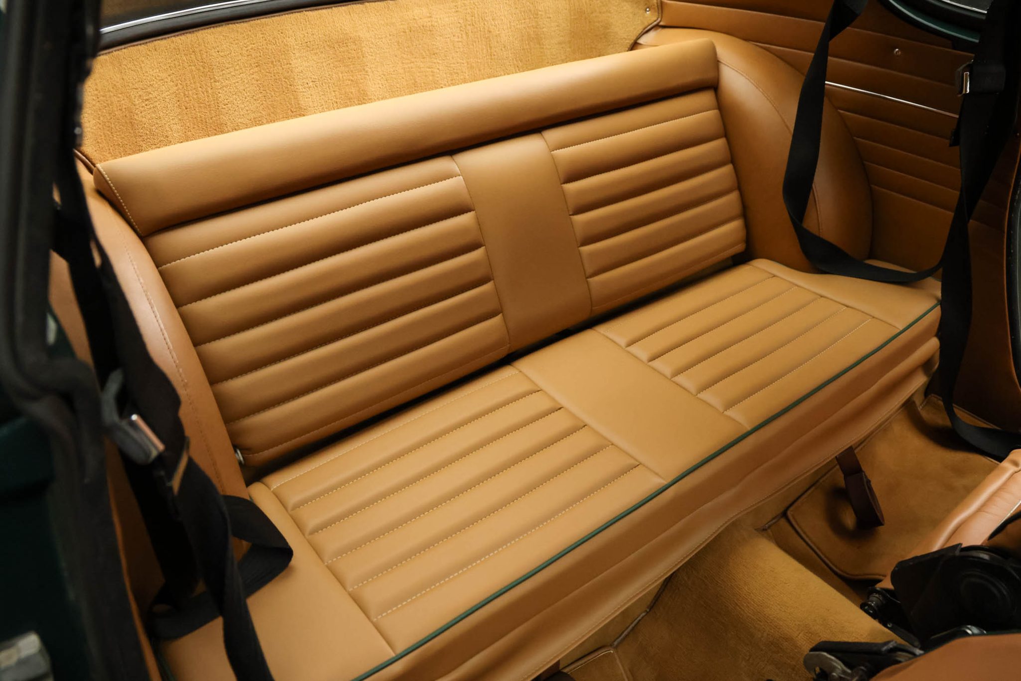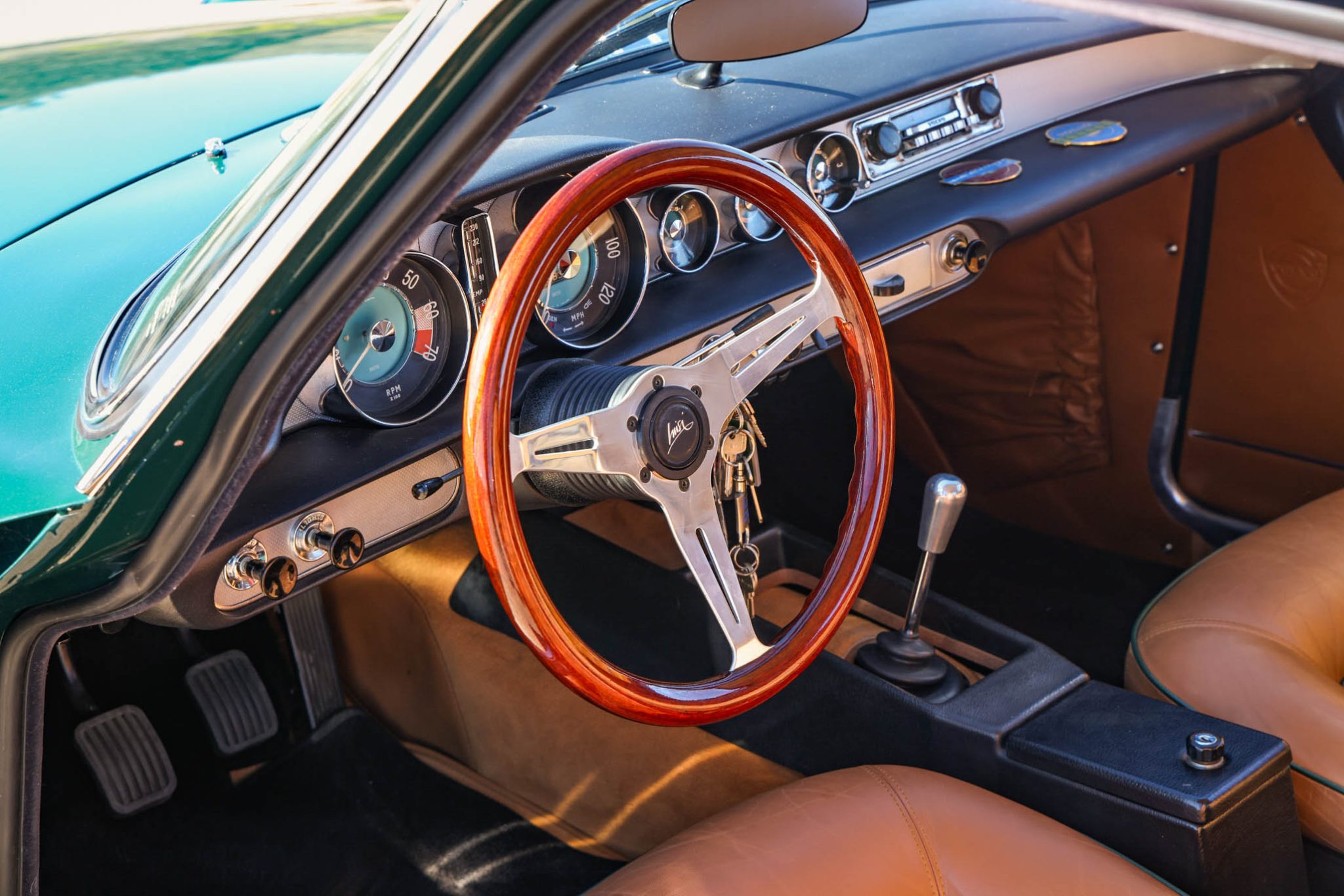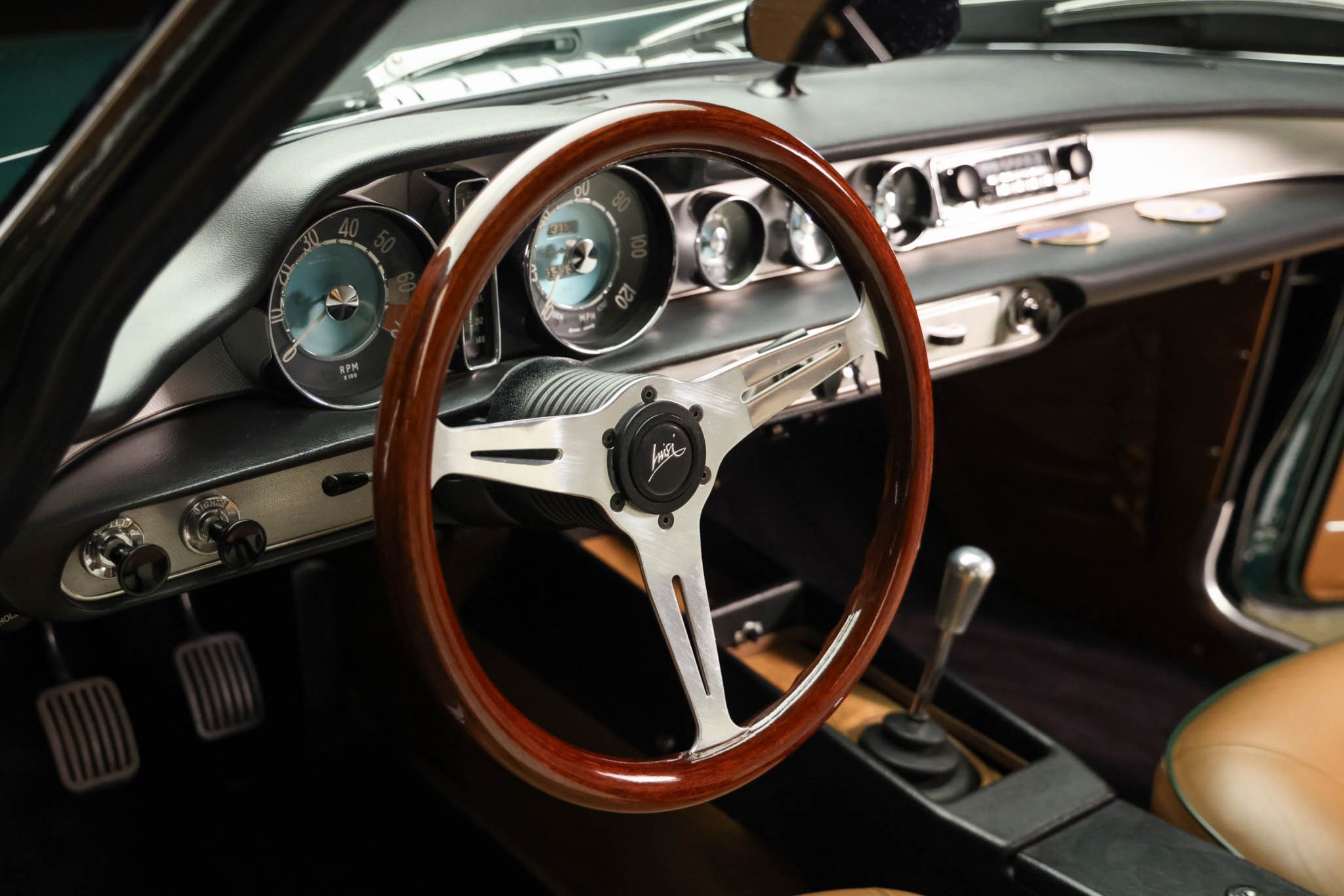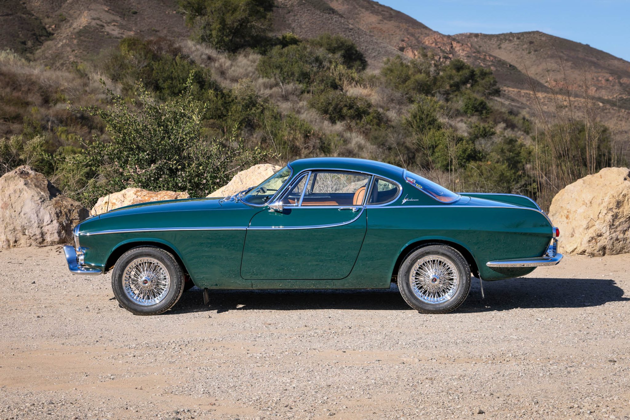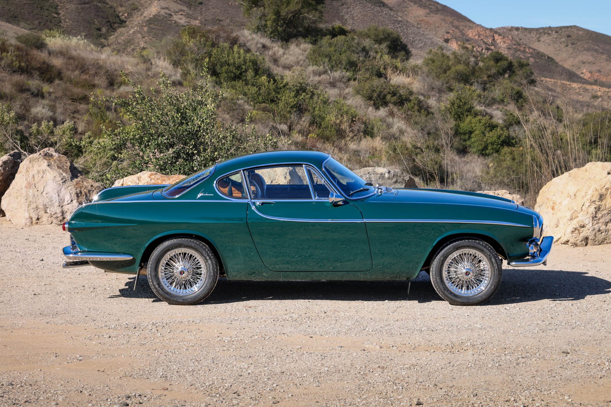 This 1963 Volvo P1800 was fitted with a replacement 2.0-liter B20 inline-four and a four-speed manual gearbox with overdrive in the mid-1970s. refurbishment work between 2002 and 2009 included repainting the body in green, rebuilding the Smiths instruments, reupholstering the seats in tan leather with green piping, and installing Talbot Berlin mirrors as well as rebuilding the engine with .040″-oversized pistons, dual SU carburetors, and a “Type D” camshaft. The car also features “cow horn” front bumpers, front disc brakes, 15″ wire wheels, and an AM/FM radio linked with an MB Quart coaxial speaker.