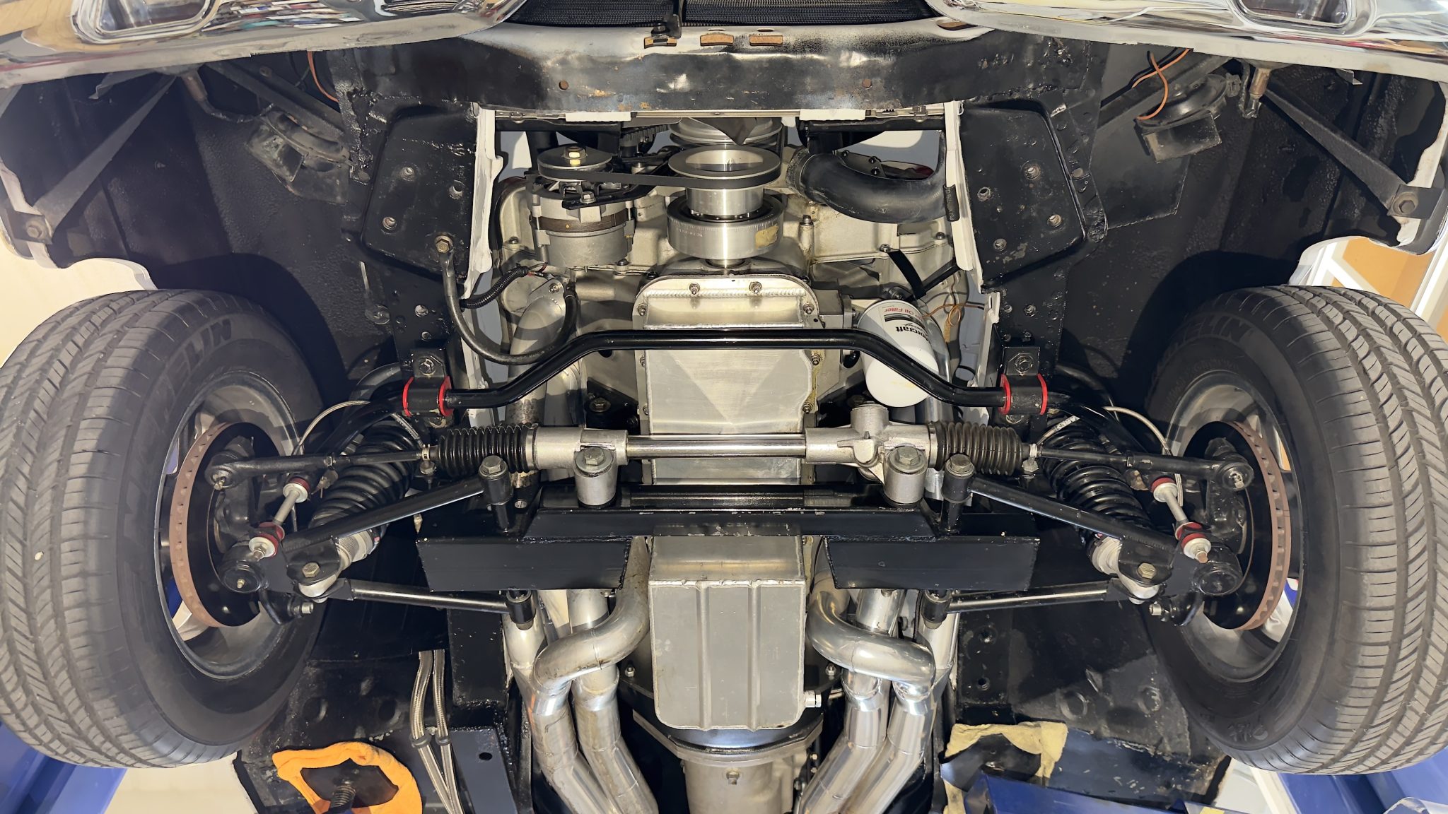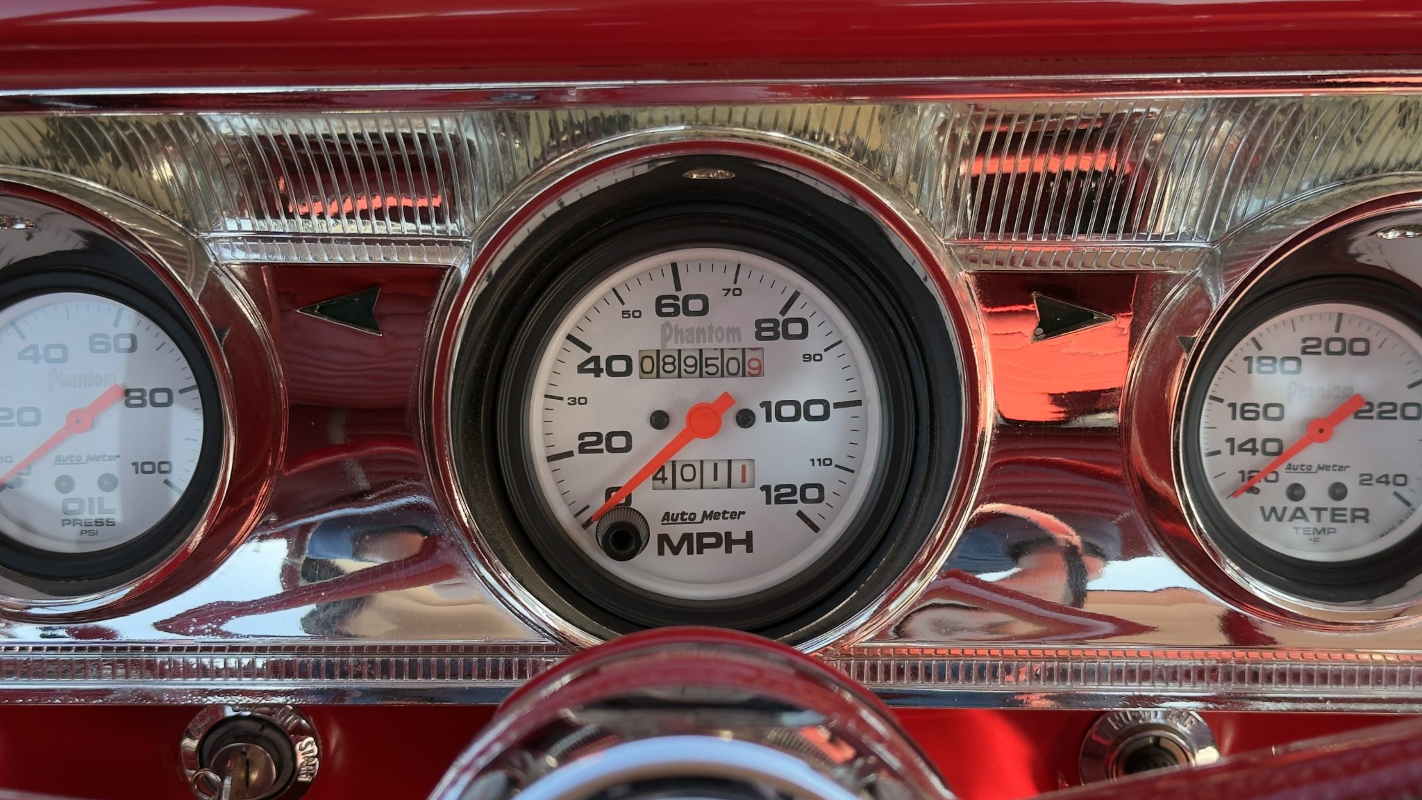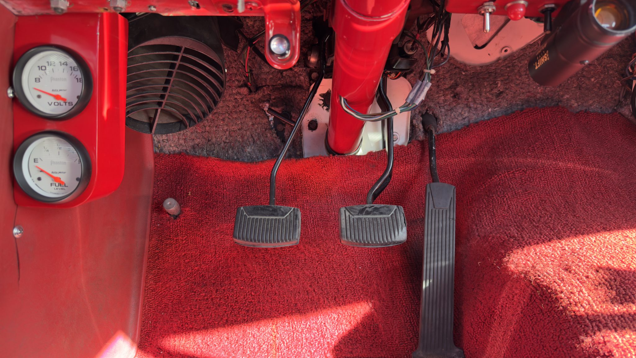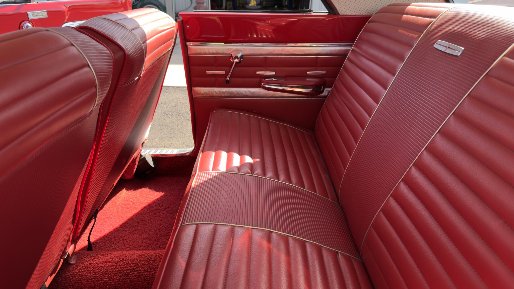 This 1964 Ford Fairlane 500 hardtop is powered by an aluminum 498ci “Cammer” V8 that utilizes a forged rotating assembly and an eight-stack throttle body setup. which results in a reported output of approximately 700 horsepower. Power is routed to the 31×16.5″ Mickey Thompson ET Streets through a David Kee Toploader four-speed transmission and a high-performance 9″ rear end, and the car rides on a modified chassis with a Mustang II-style front suspension, adjustable coilovers, and rear ladder bars. The exterior was refinished in white following the current owner’s 2011 acquisition, and details consist of a Thunderbolt-style hood and red bodyside accents. Inside, the red vinyl bench seats are joined by a push-button radio, AutoMeter instrumentation, and a Hurst shifter.