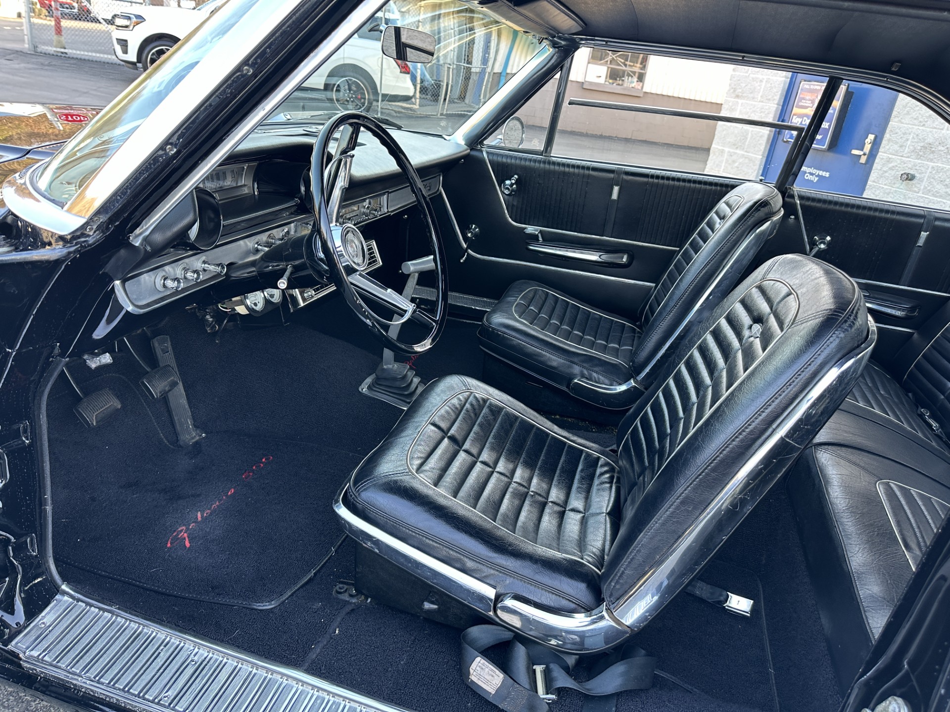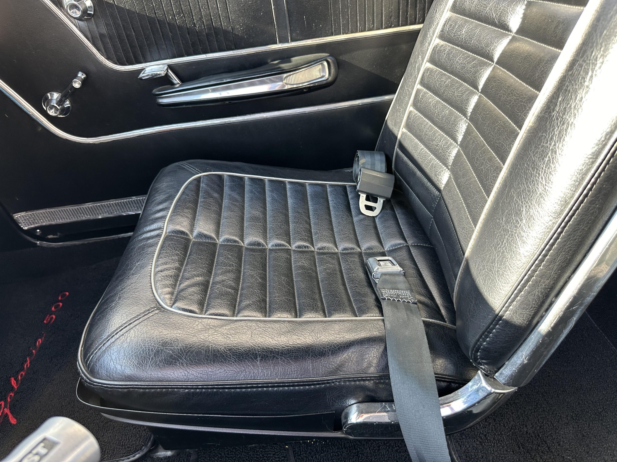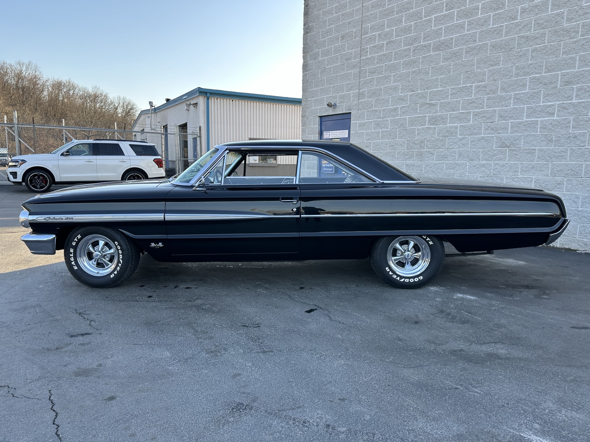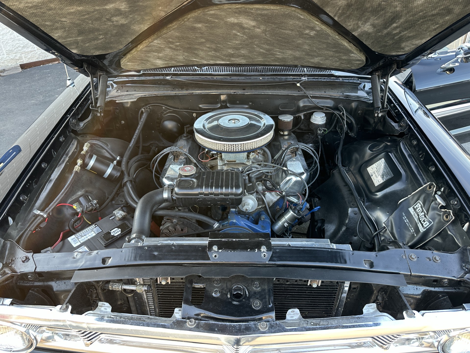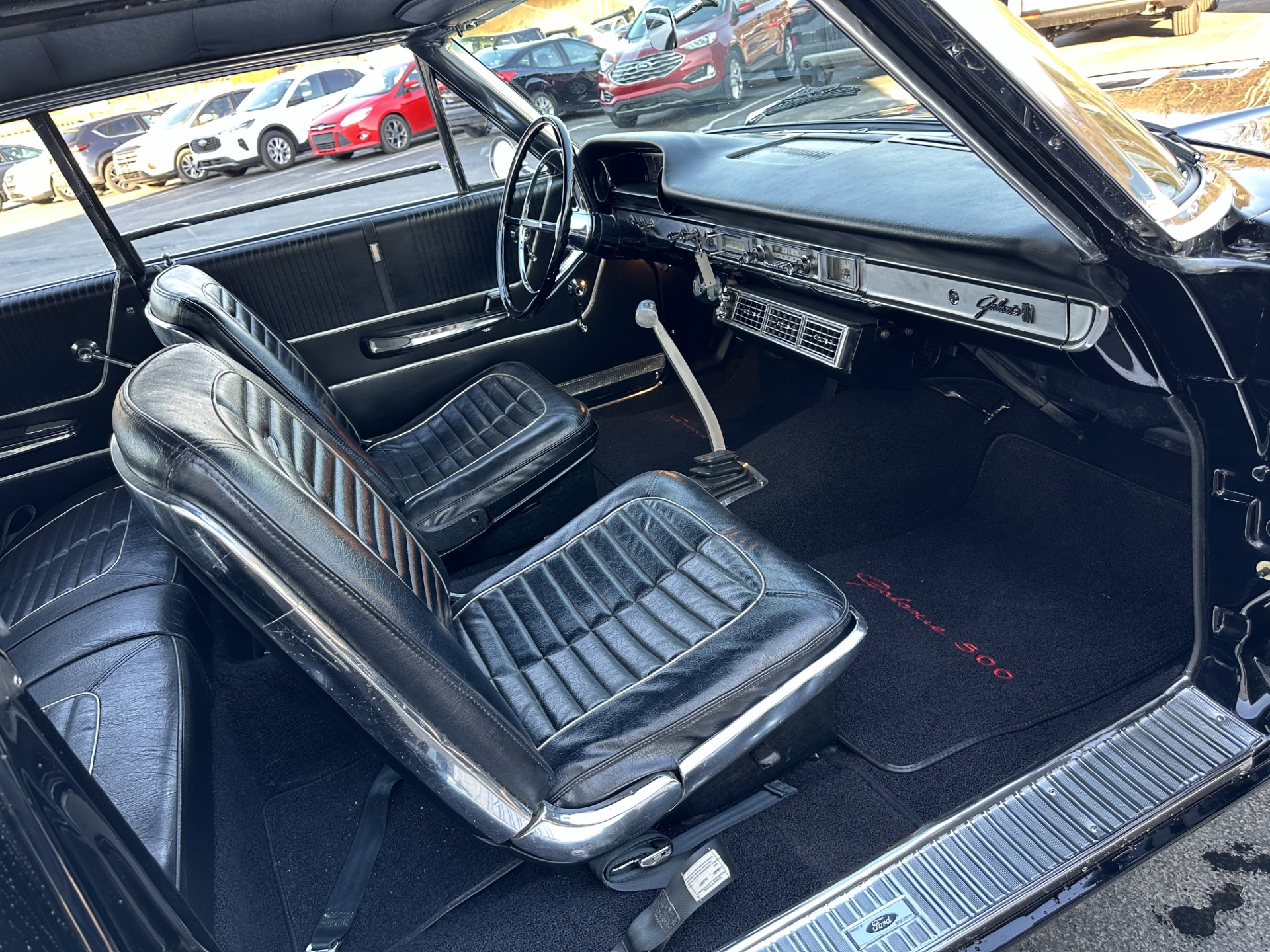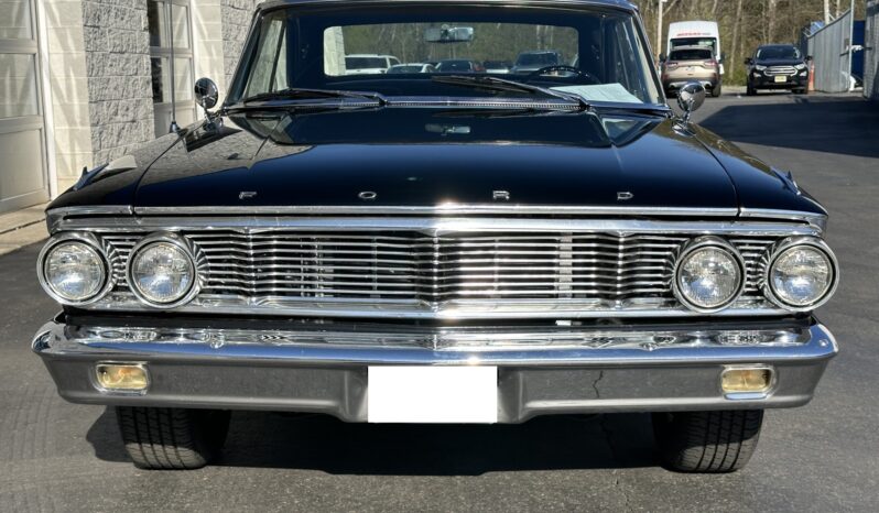 This 1964 Ford Galaxie 500XL hardtop was refurbished and modified in 1998 with work that included a repaint in black as well as the installation of a replacement bored and stroked 427ci V8 and a five-speed manual transmission. The interior features front bucket seats and a rear bench trimmed in black as well as a Hurst shifter, VDO auxiliary gauges, and an under-dash air conditioning unit. The car rides on 15″ Cragar S/S wheels mounted over drum brakes, and additional equipment includes an Edelbrock intake manifold, a Demon carburetor, a Flowmaster dual exhaust system, and an aluminum radiator with an electric fan.