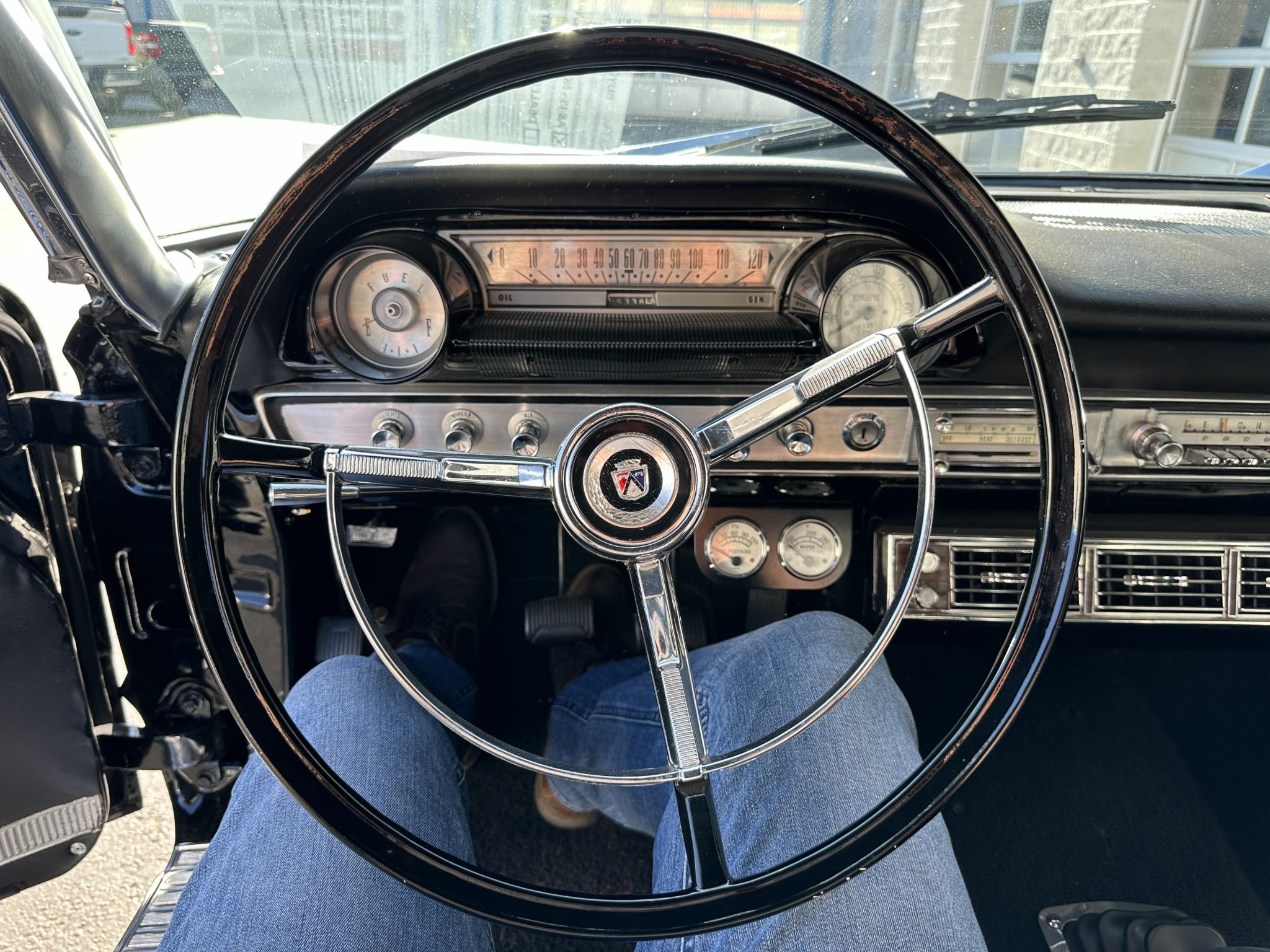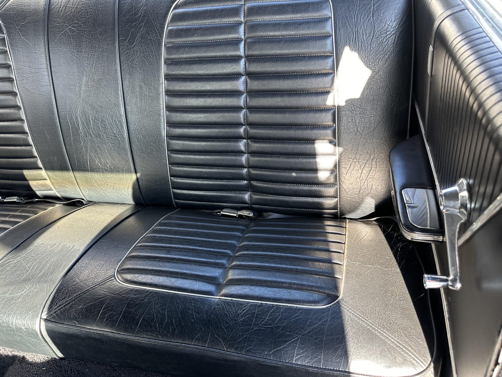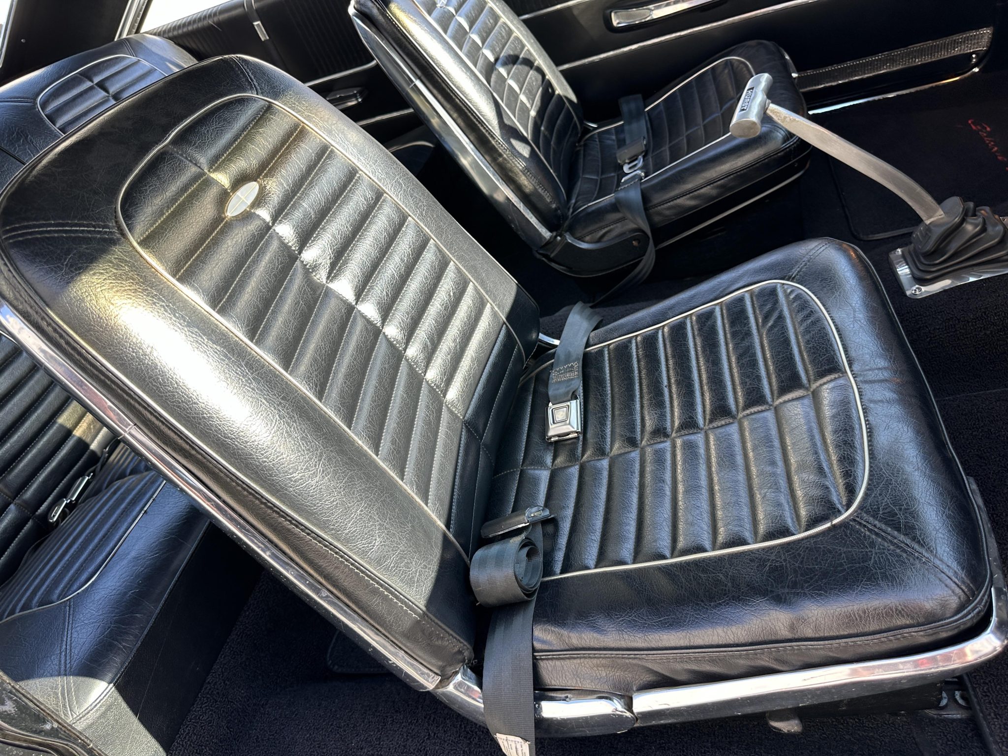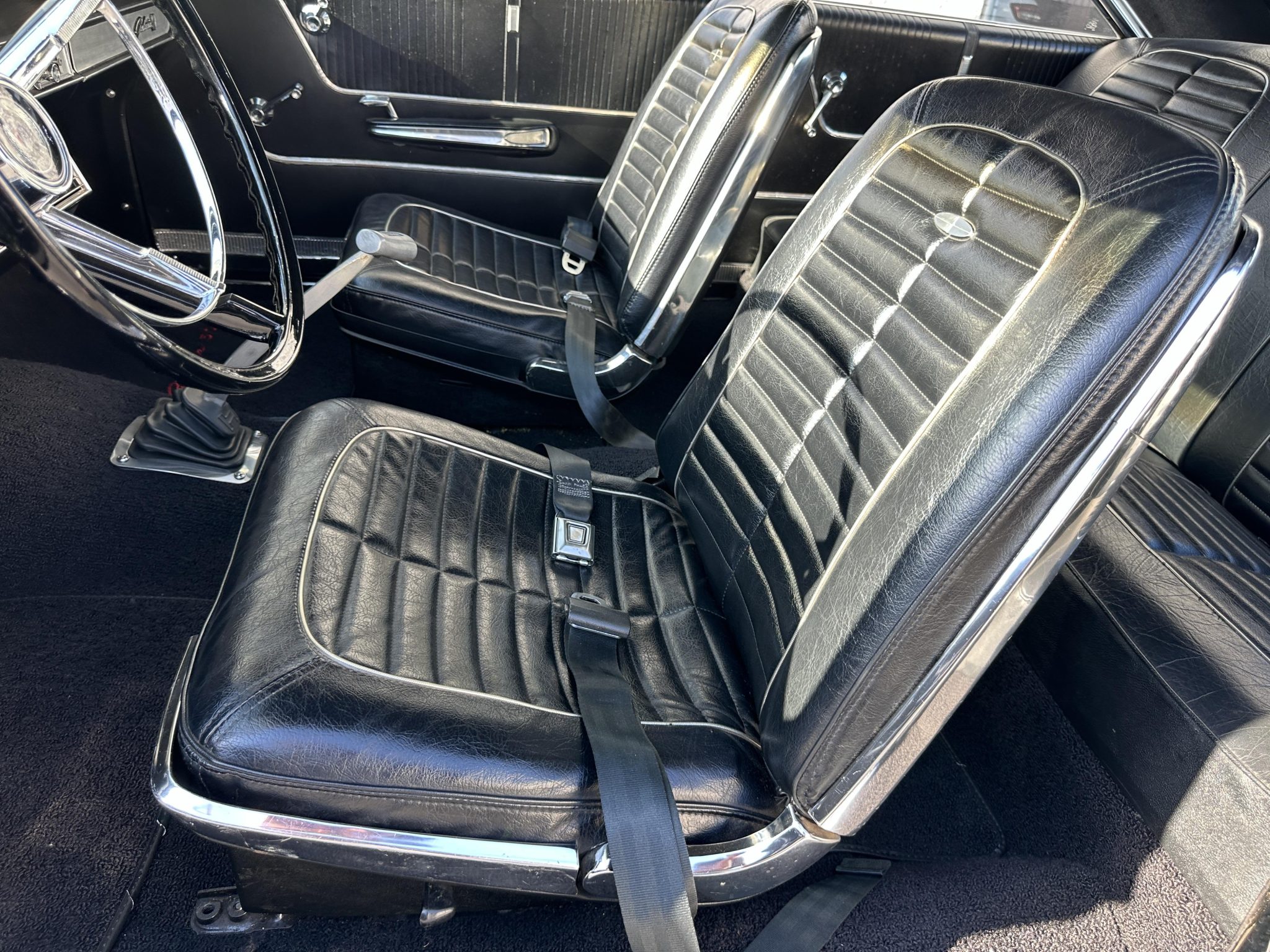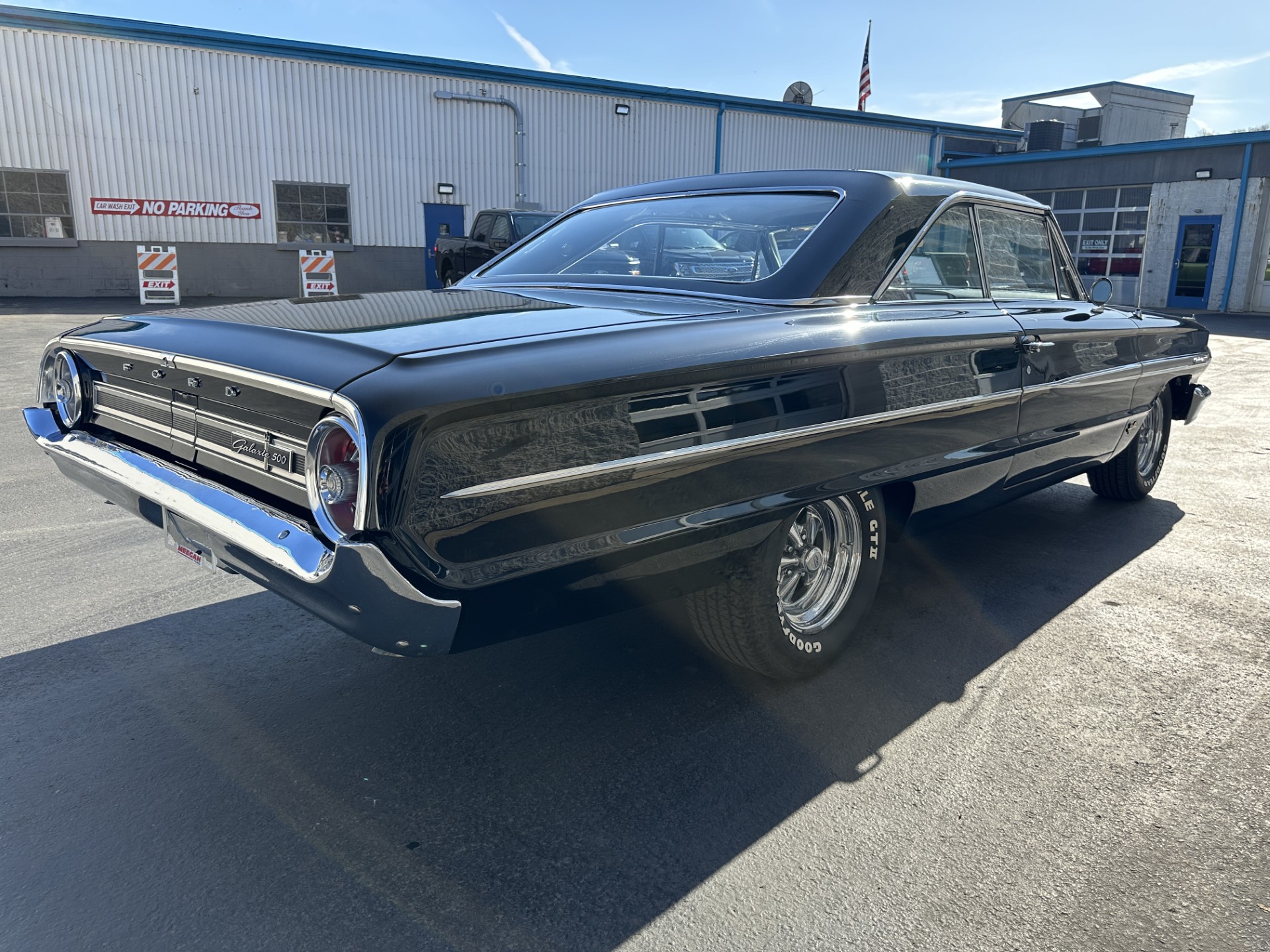 This 1964 Ford Galaxie 500XL hardtop was refurbished and modified in 1998 with work that included a repaint in black as well as the installation of a replacement bored and stroked 427ci V8 and a five-speed manual transmission. The interior features front bucket seats and a rear bench trimmed in black as well as a Hurst shifter, VDO auxiliary gauges, and an under-dash air conditioning unit. The car rides on 15″ Cragar S/S wheels mounted over drum brakes, and additional equipment includes an Edelbrock intake manifold, a Demon carburetor, a Flowmaster dual exhaust system, and an aluminum radiator with an electric fan.