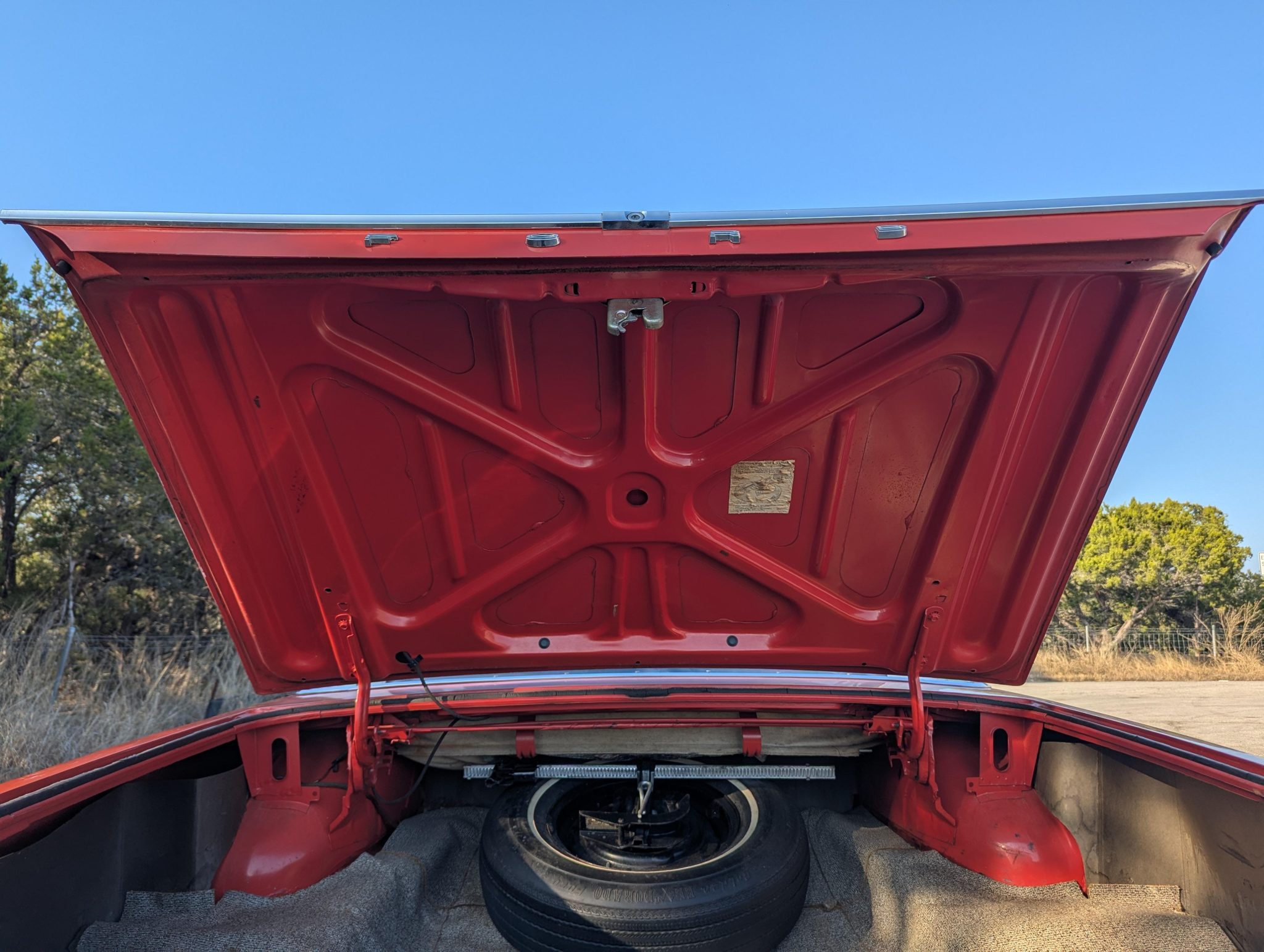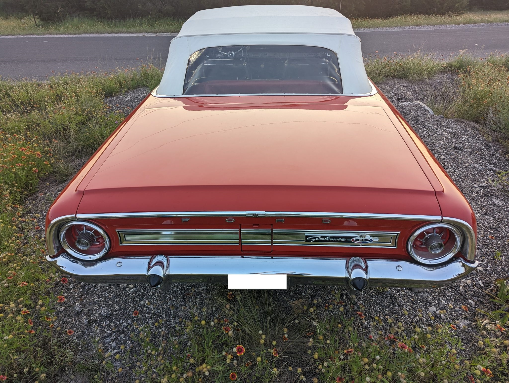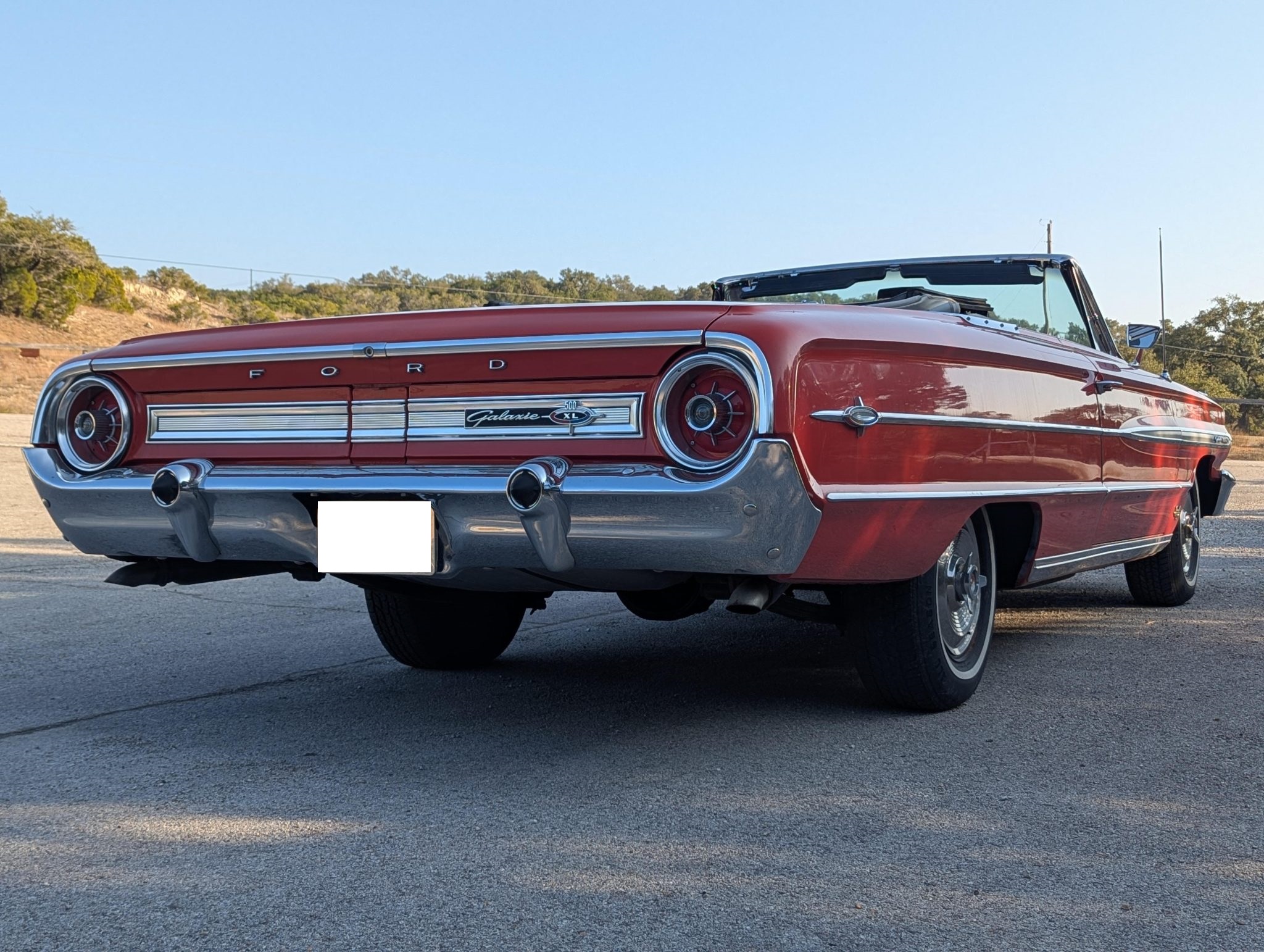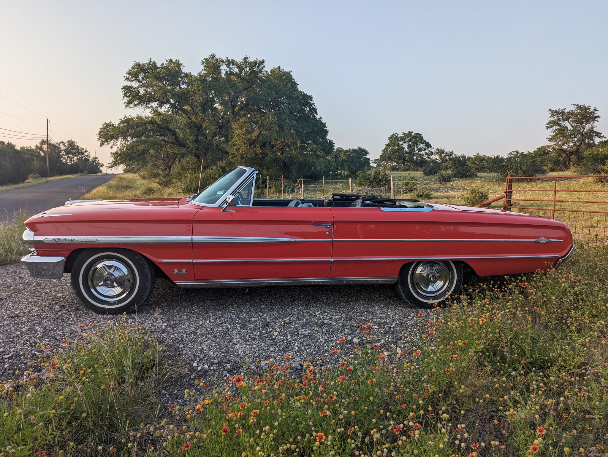 This Rangoon Red 1964 Ford Galaxie 500XL convertible was originally delivered with a 390ci V8, a four-speed toploader manual transmission, and a 3.50:1 differential. At some point the 390 V8 was replaced with a 427ci FE V8 that is topped by two Holley four-barrel carburetors, and work within the past few years included rebuilding the carburetors, master cylinder, and convertible top pump along with retrimming the front seats and replacing the carpeting