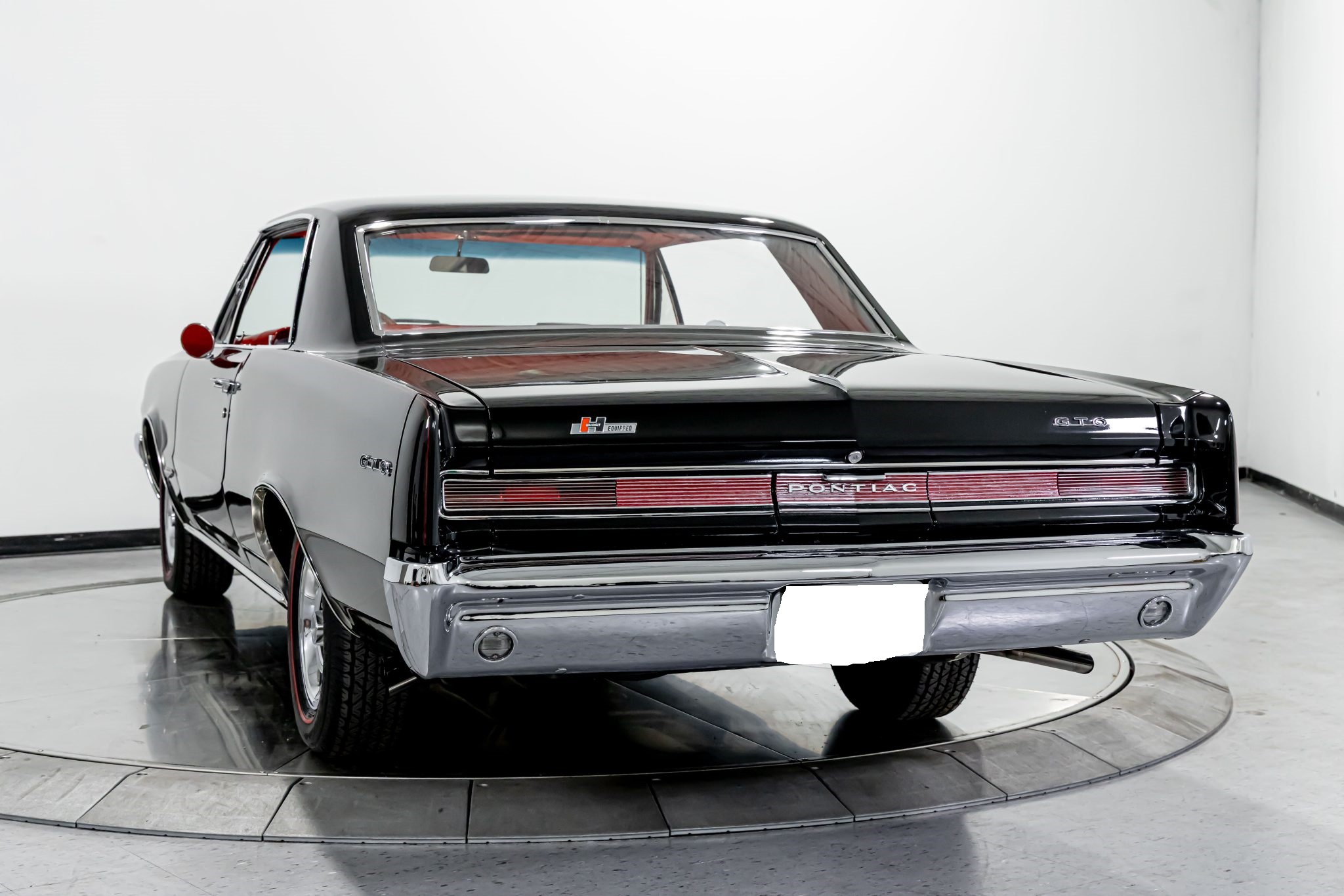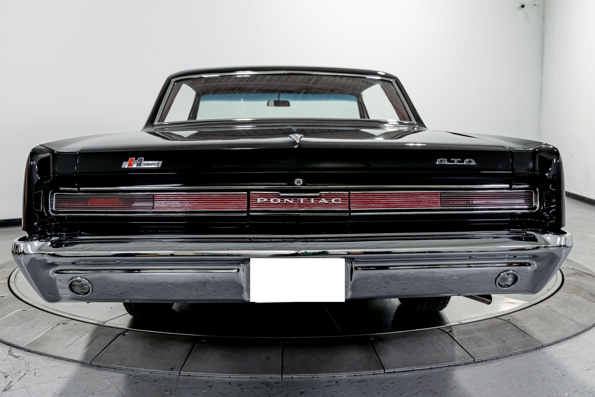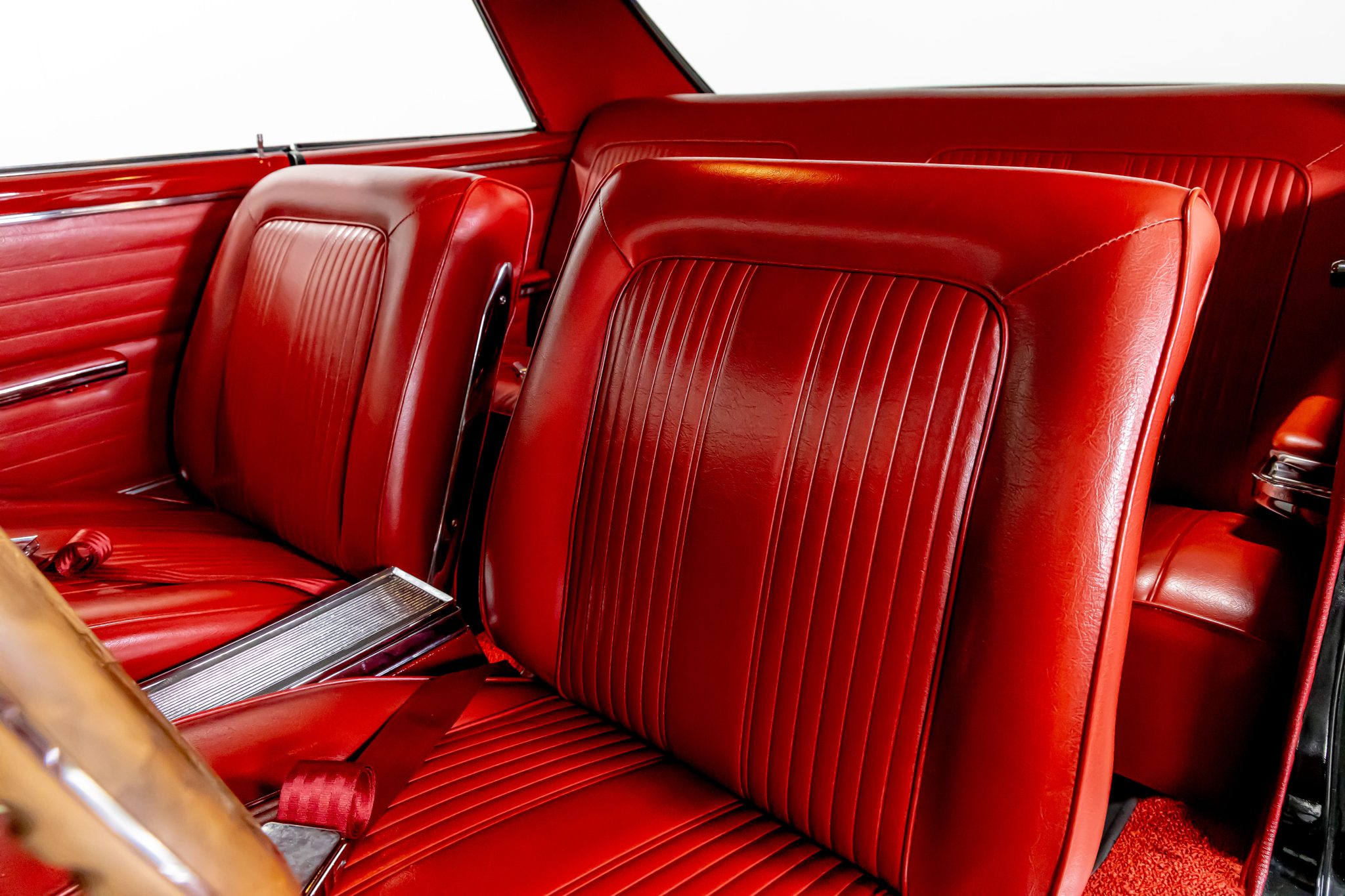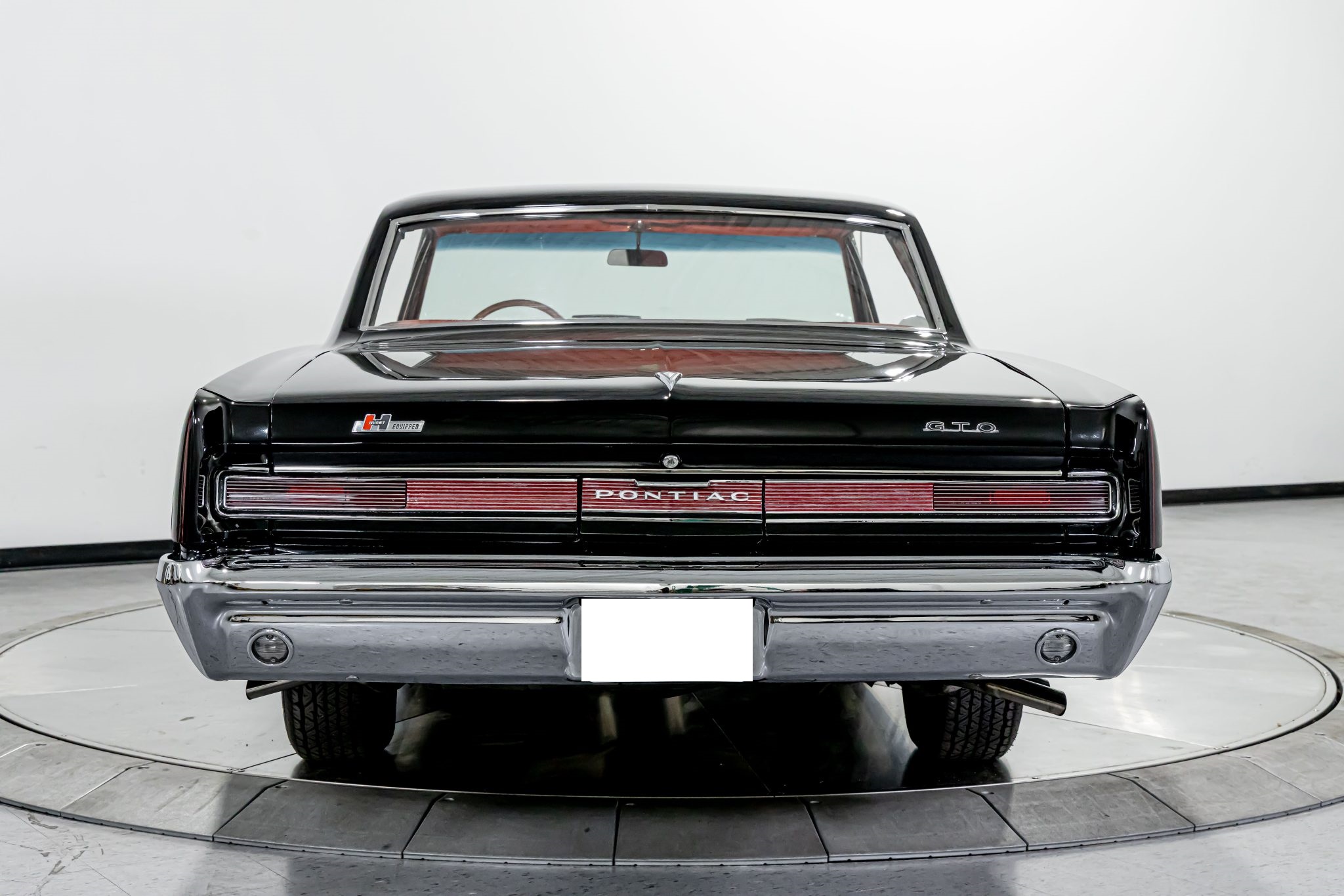 This 1964 Pontiac GTO hardtop coupe was refurbished and is powered by a 421ci tri-power V8 linked with a four-speed manual transmission and a limited-slip differential. The car was refinished in black over red, and it is equipped with power-assisted Wilwood front disc brakes, KYB front shocks, power steering, 14″ Rally wheels, Flo-Pro mufflers, a center console, a Hurst shifter, and a CD stereo.