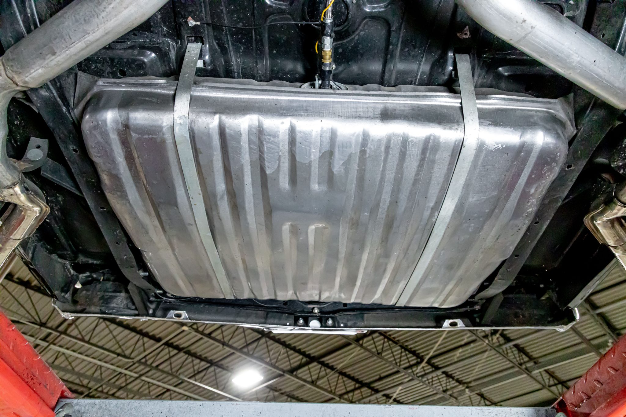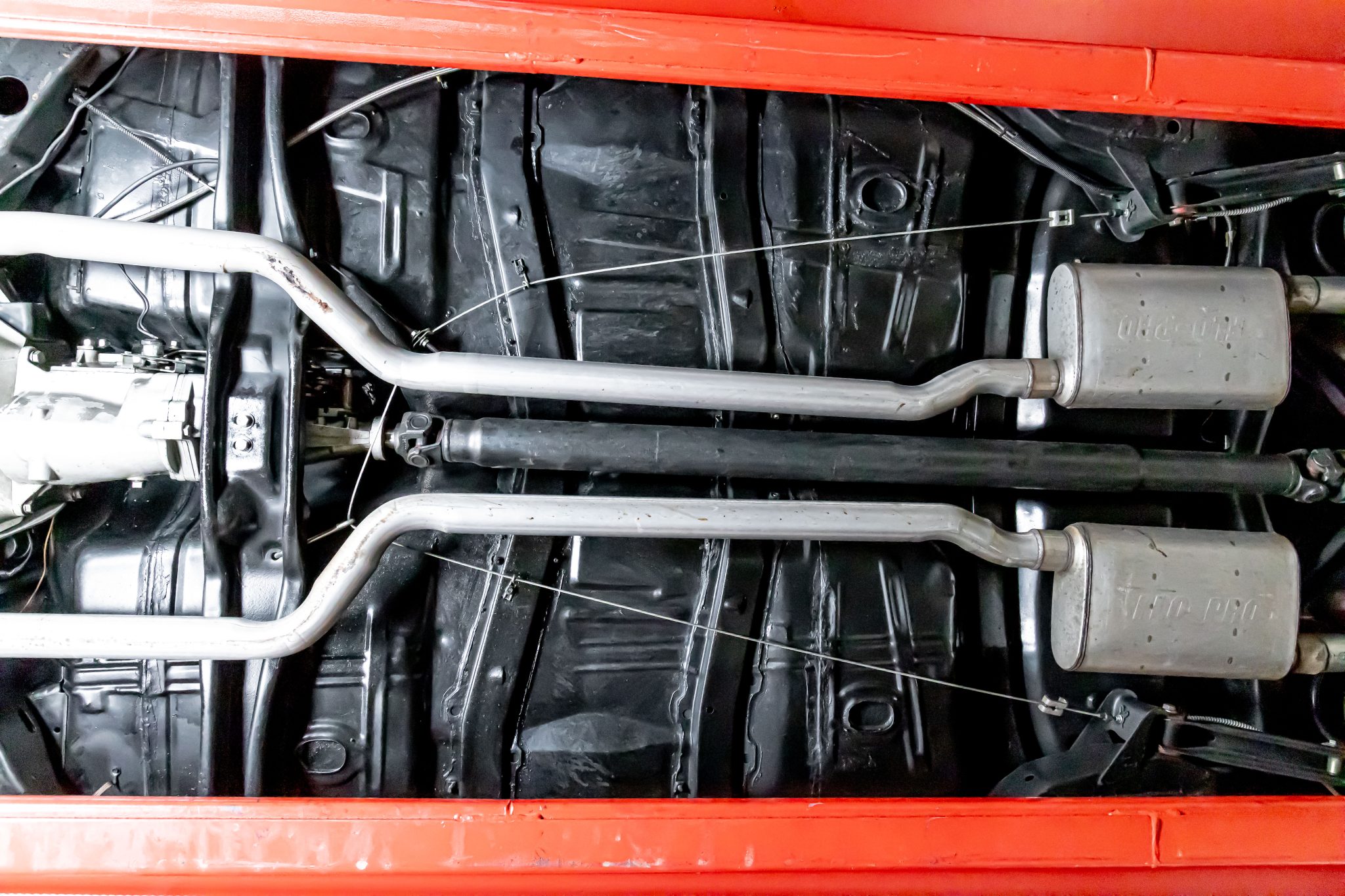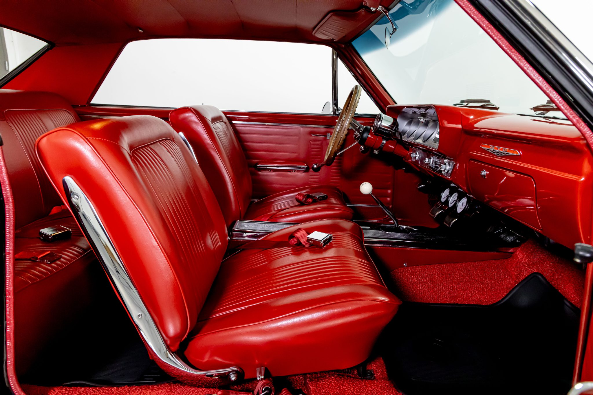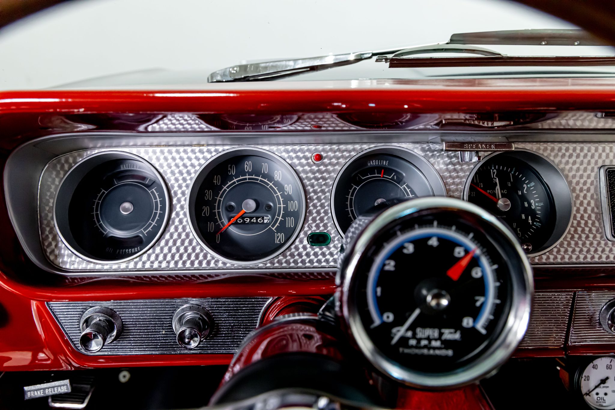 This 1964 Pontiac GTO hardtop coupe was refurbished and is powered by a 421ci tri-power V8 linked with a four-speed manual transmission and a limited-slip differential. The car was refinished in black over red, and it is equipped with power-assisted Wilwood front disc brakes, KYB front shocks, power steering, 14″ Rally wheels, Flo-Pro mufflers, a center console, a Hurst shifter, and a CD stereo.