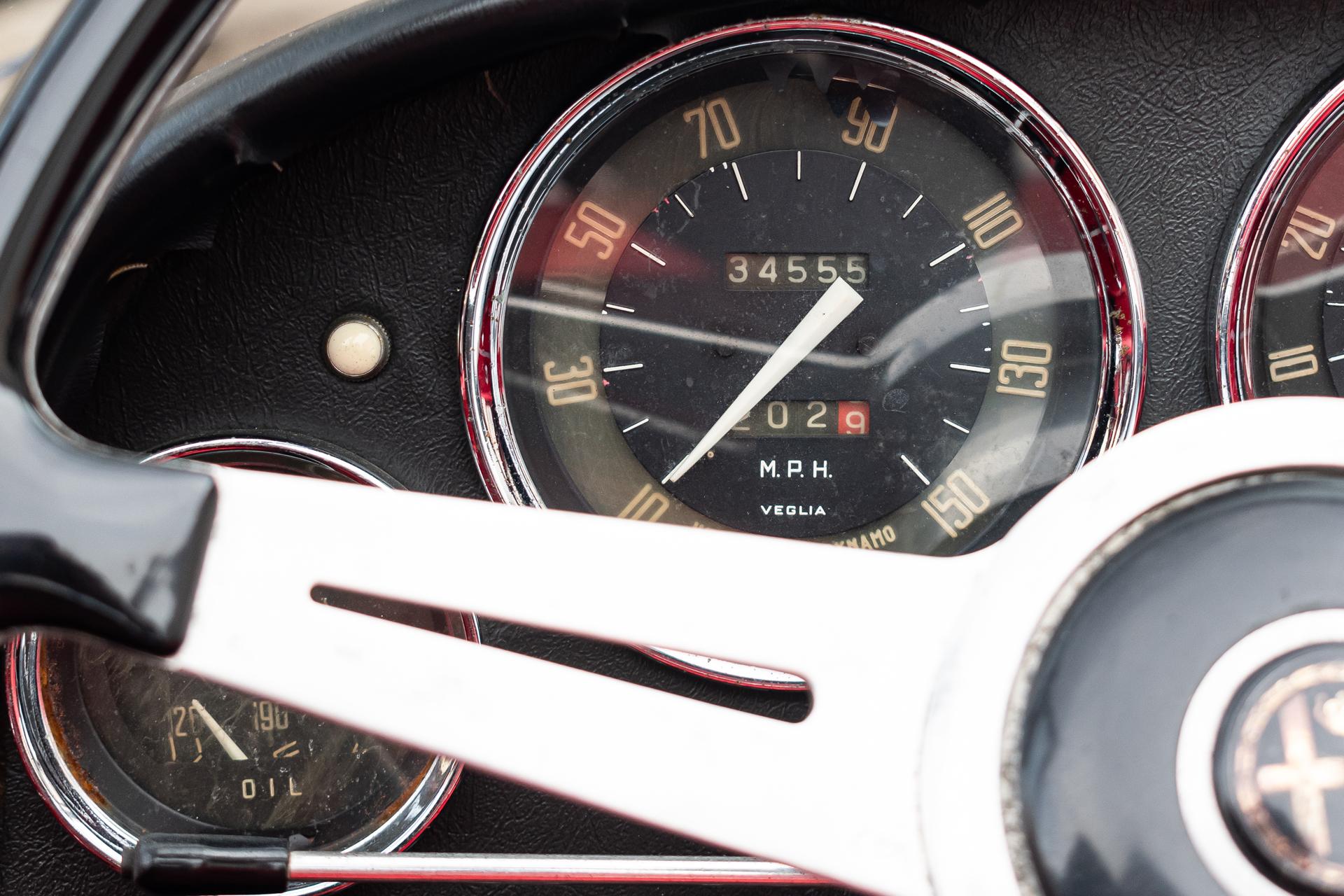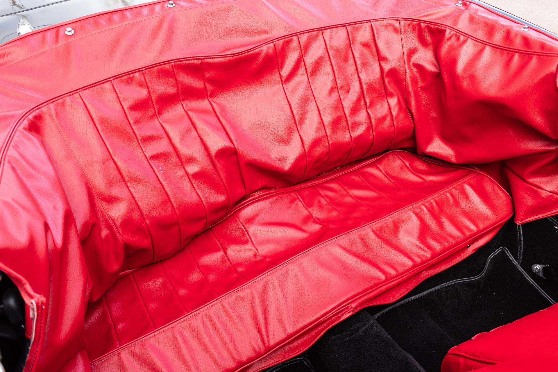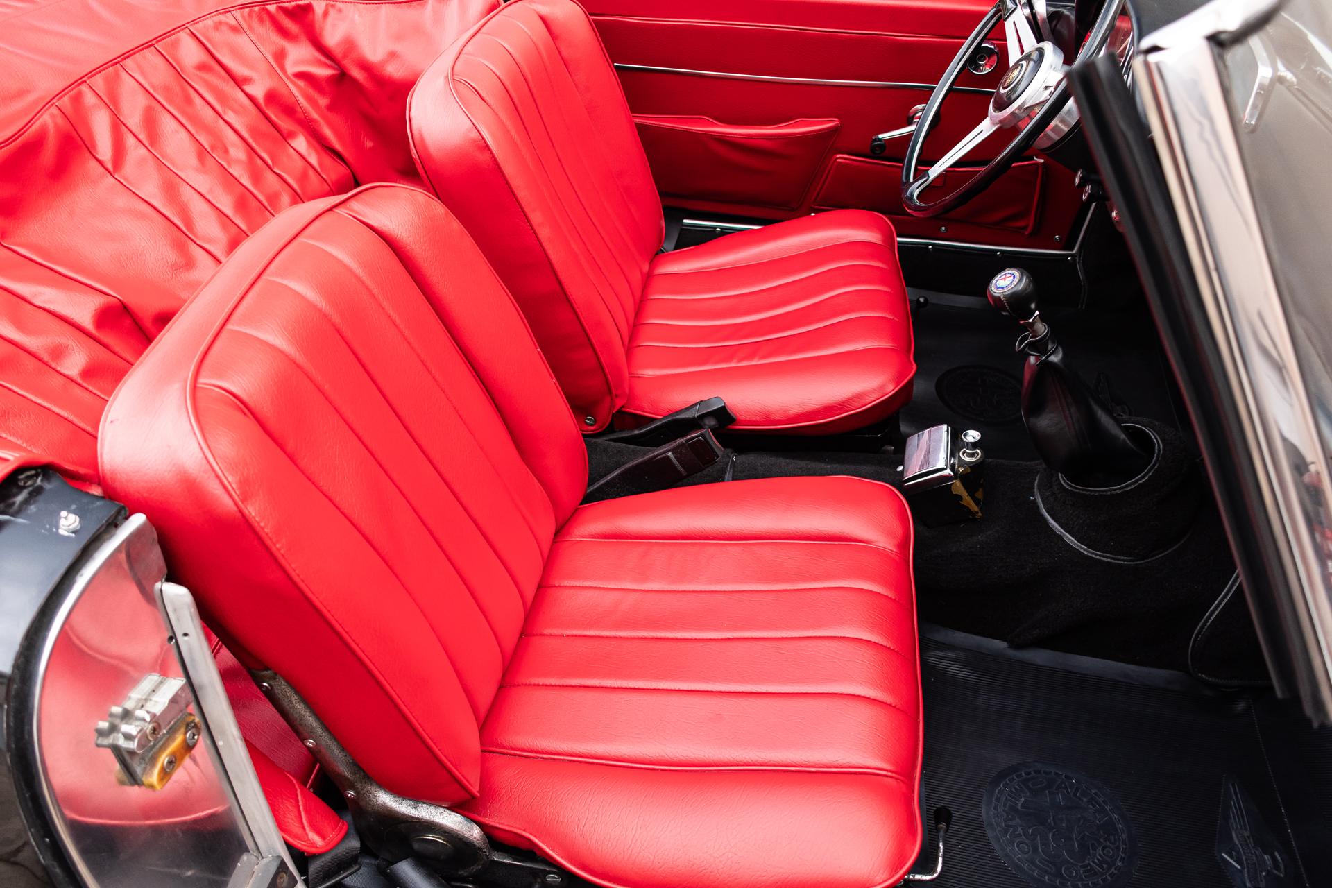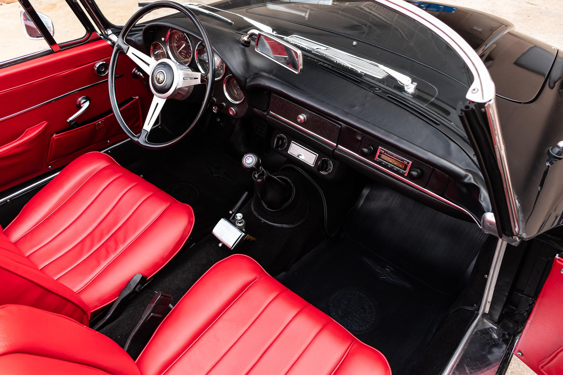 The car is powered by a 2.6-liter DOHC inline-six that breathes through triple Solex carburetors, while shifting is through a five-speed manual transmission. Additional features include 400mm steel wheels, four-wheel disc brakes, and an Imasaf exhaust system along with amber driving lamps, a RetroSound push-button radio, a black soft top, and a removable body-color hardtop.