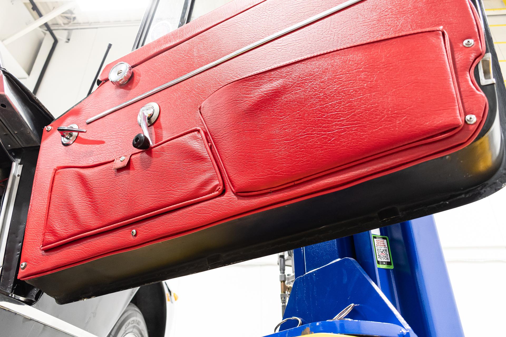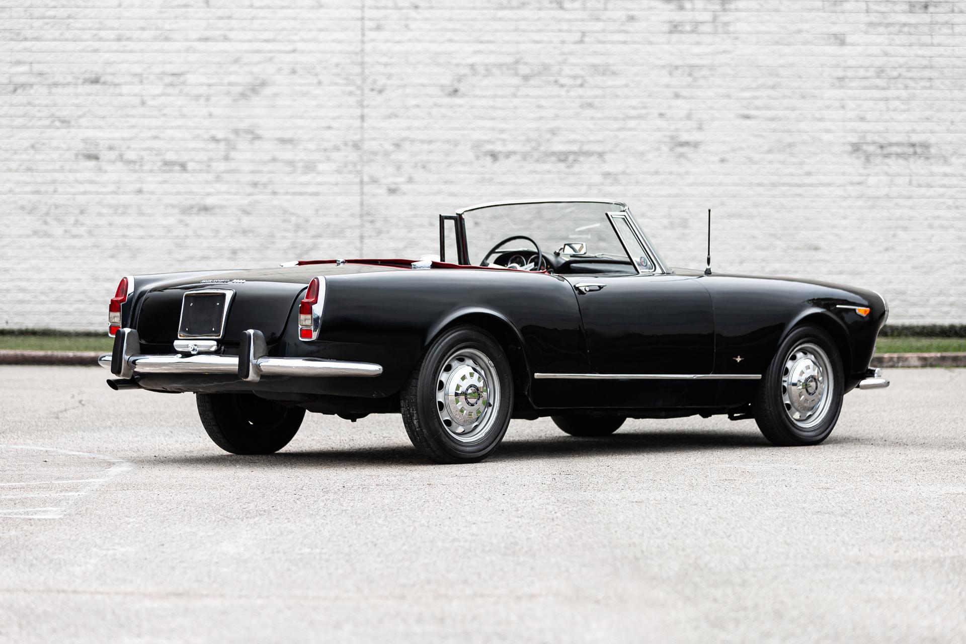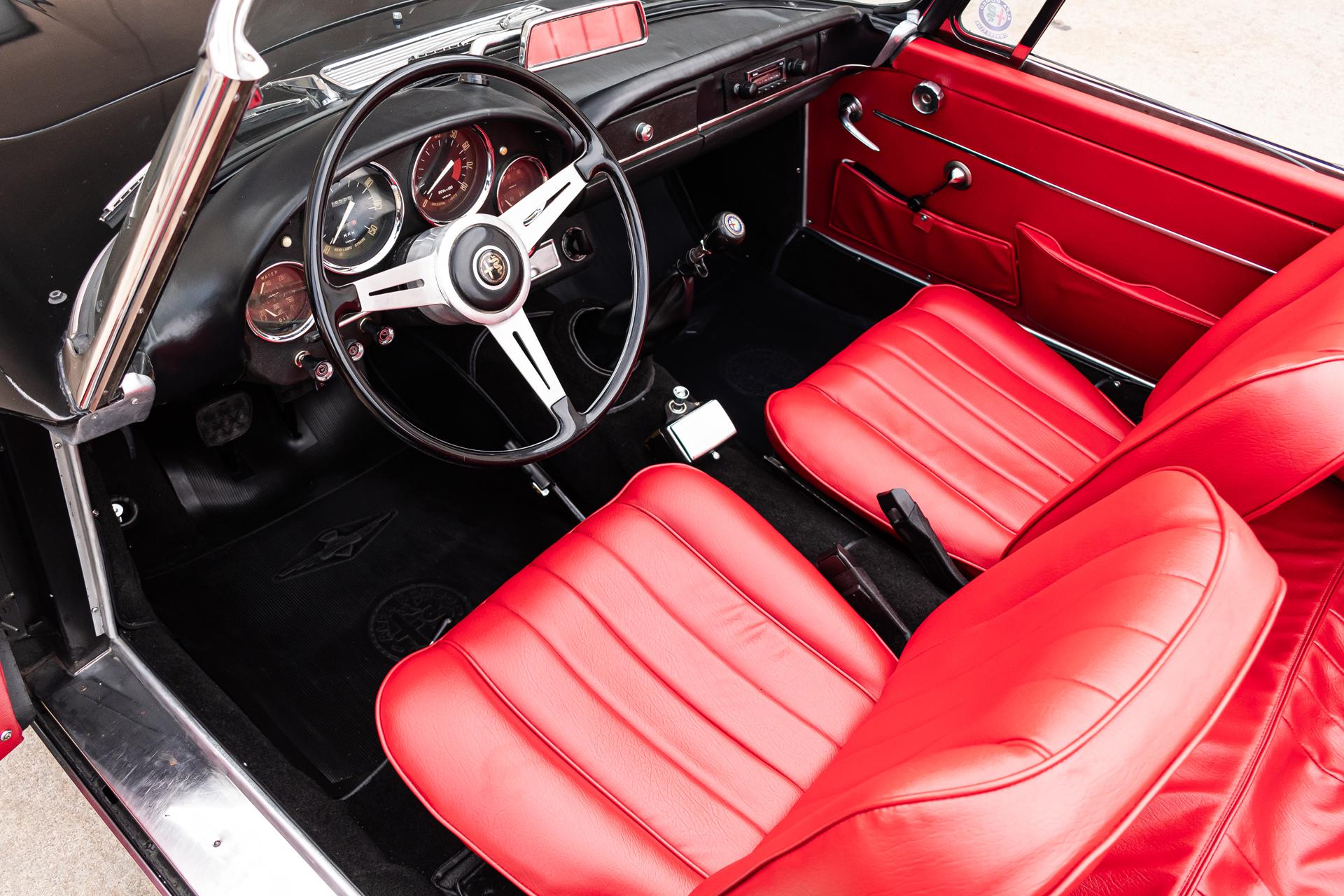 The car is powered by a 2.6-liter DOHC inline-six that breathes through triple Solex carburetors, while shifting is through a five-speed manual transmission. Additional features include 400mm steel wheels, four-wheel disc brakes, and an Imasaf exhaust system along with amber driving lamps, a RetroSound push-button radio, a black soft top, and a removable body-color hardtop.