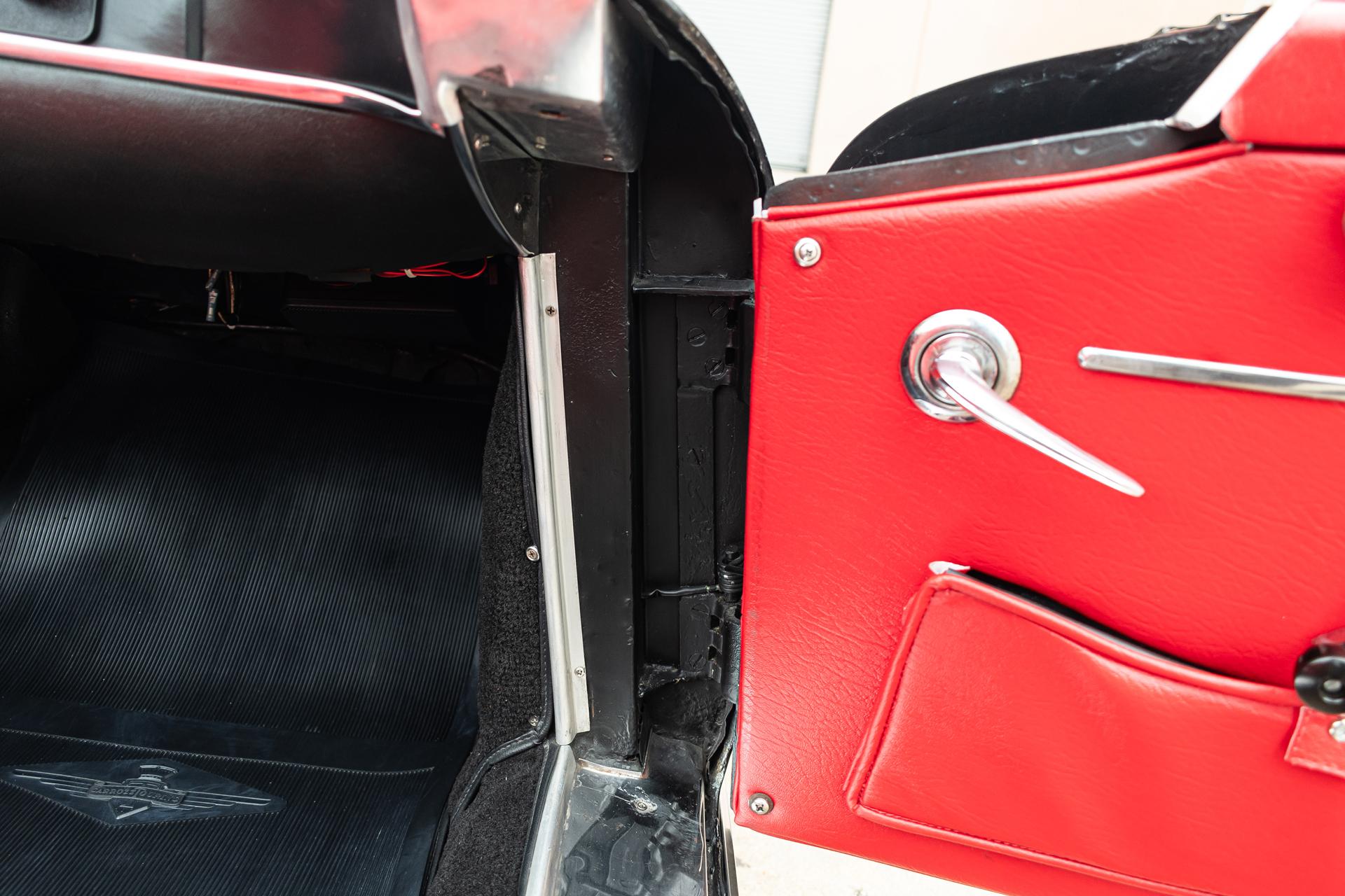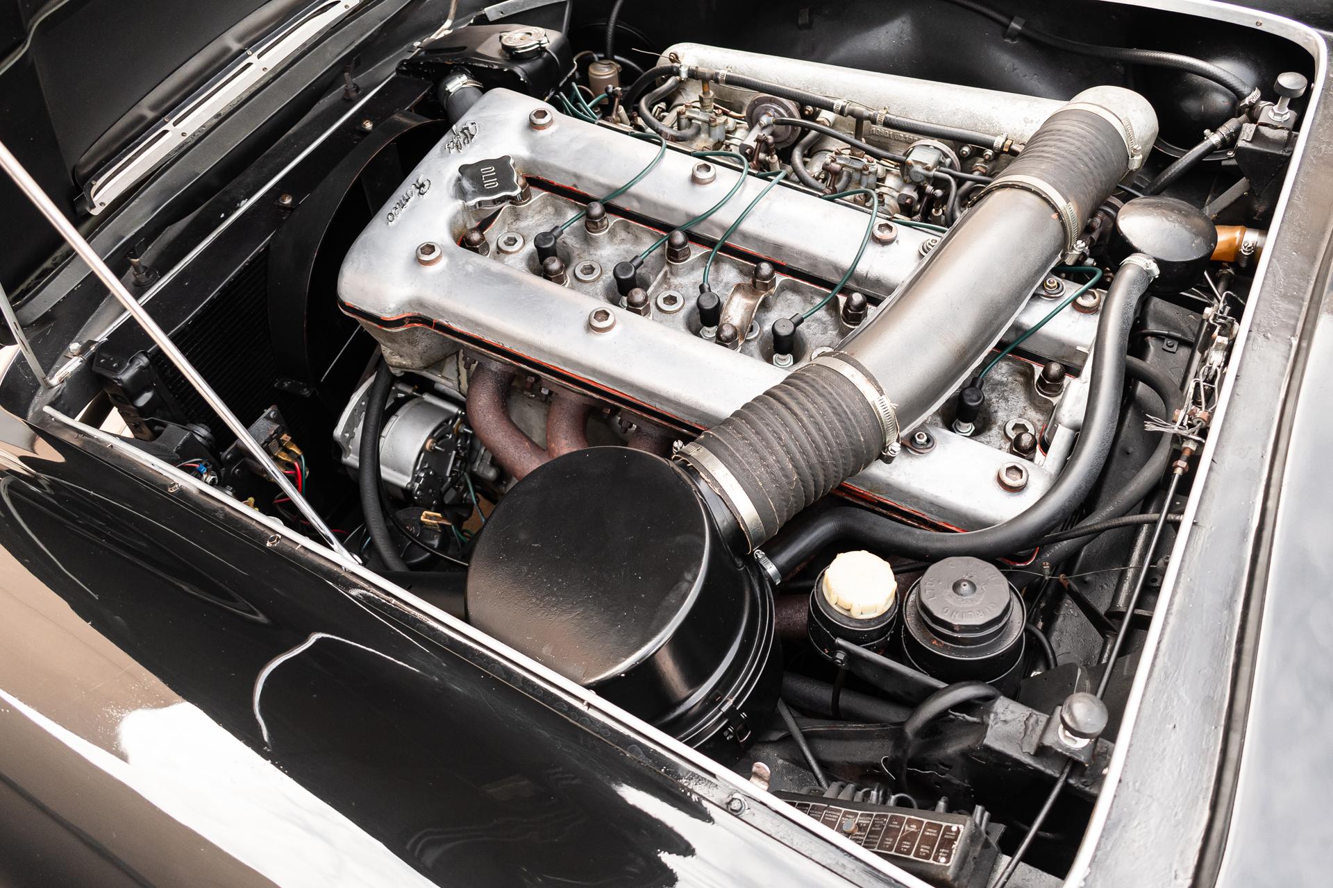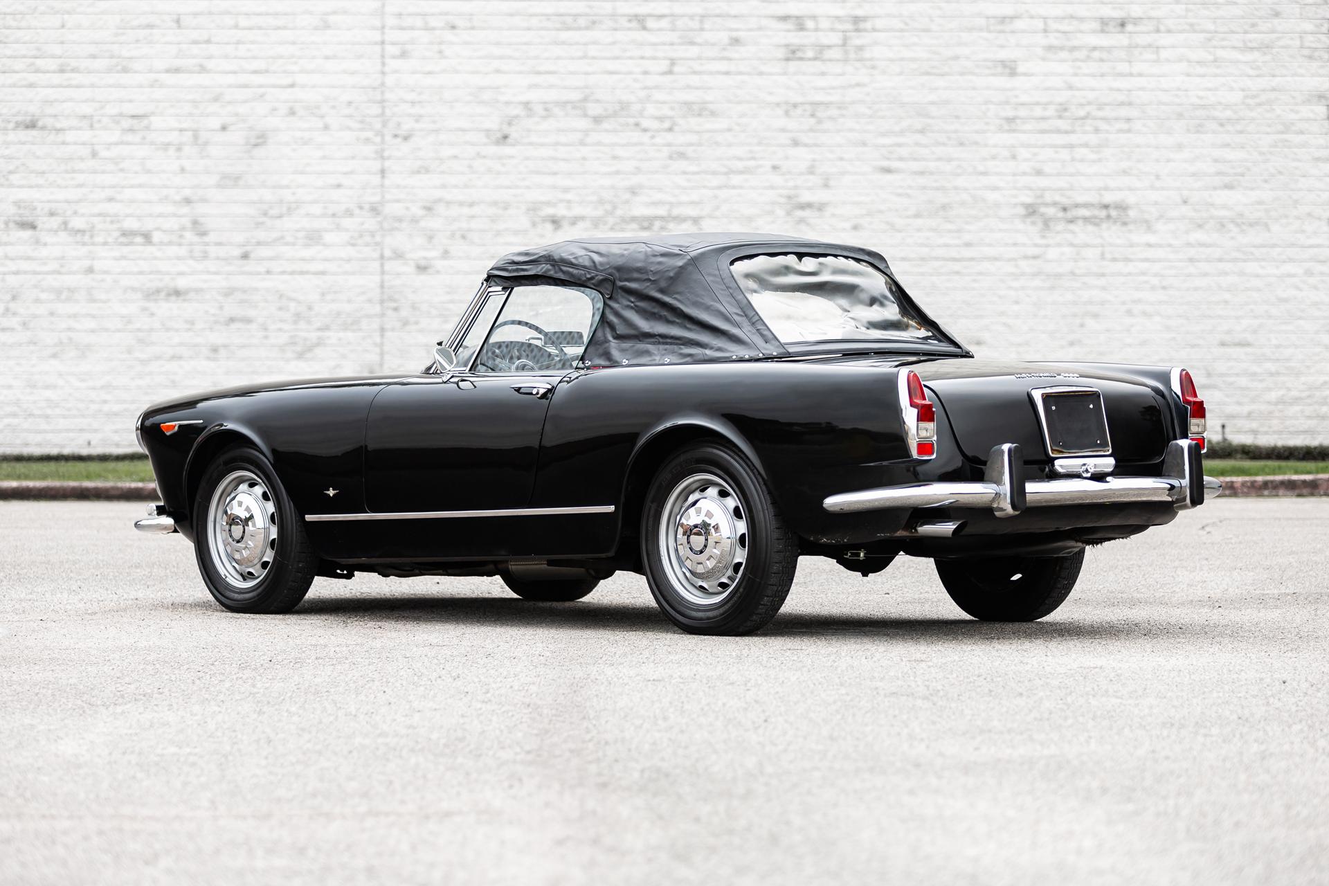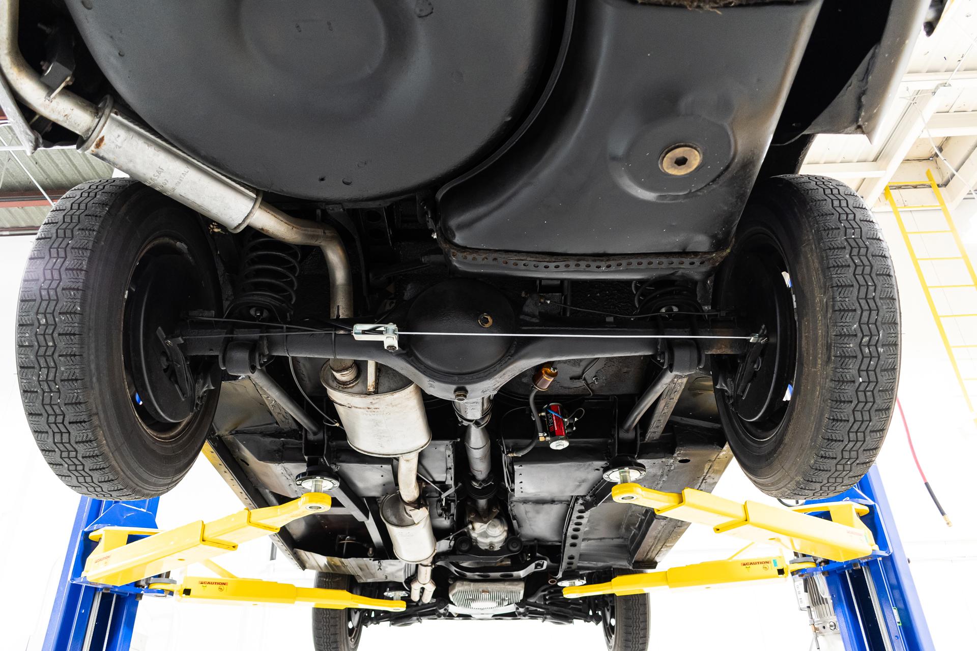 The car is powered by a 2.6-liter DOHC inline-six that breathes through triple Solex carburetors, while shifting is through a five-speed manual transmission. Additional features include 400mm steel wheels, four-wheel disc brakes, and an Imasaf exhaust system along with amber driving lamps, a RetroSound push-button radio, a black soft top, and a removable body-color hardtop.