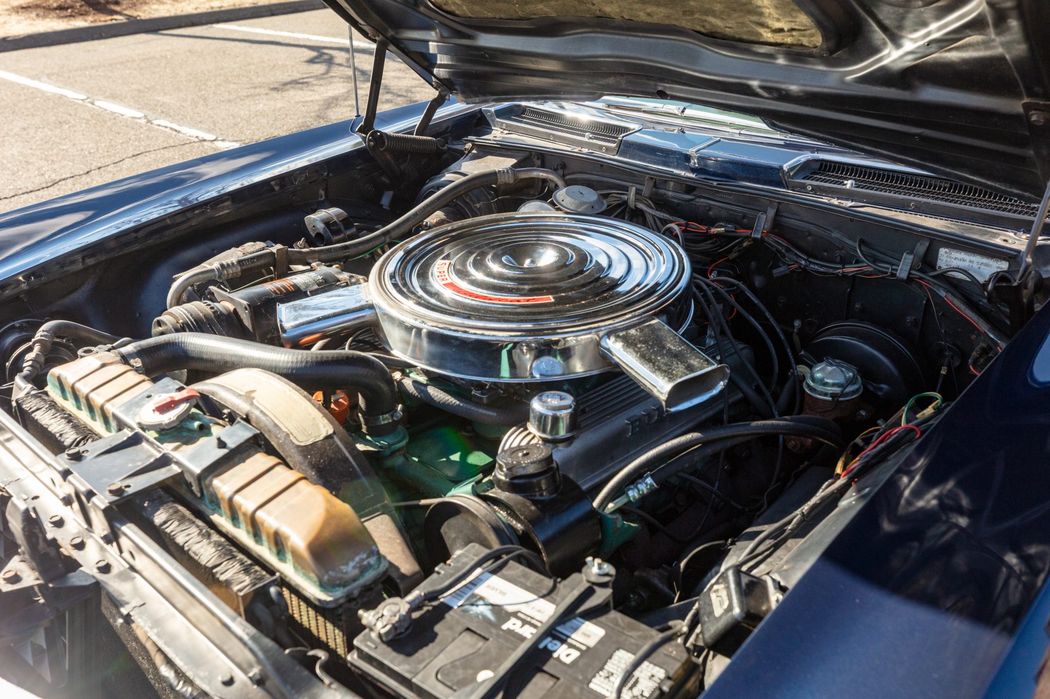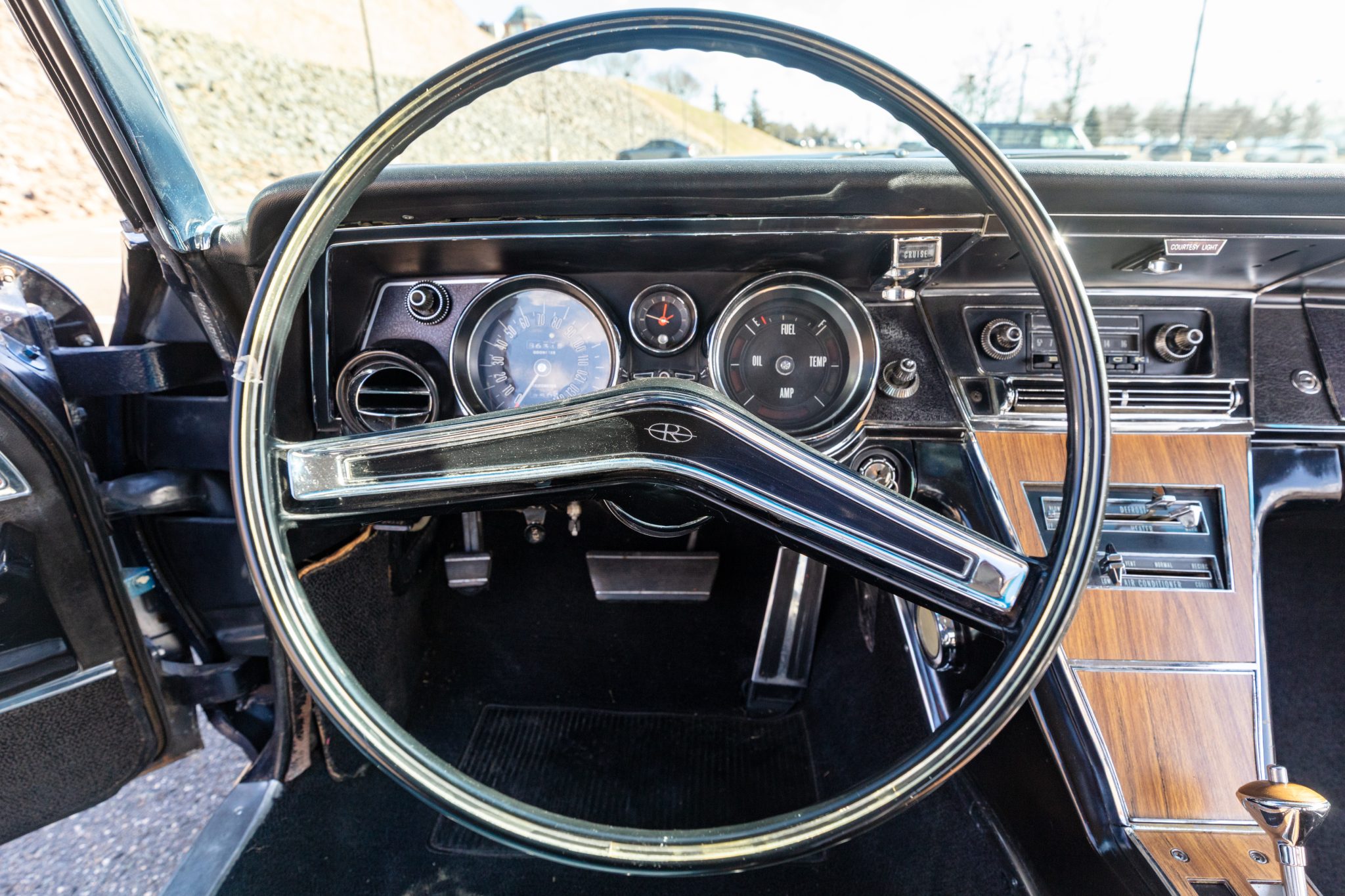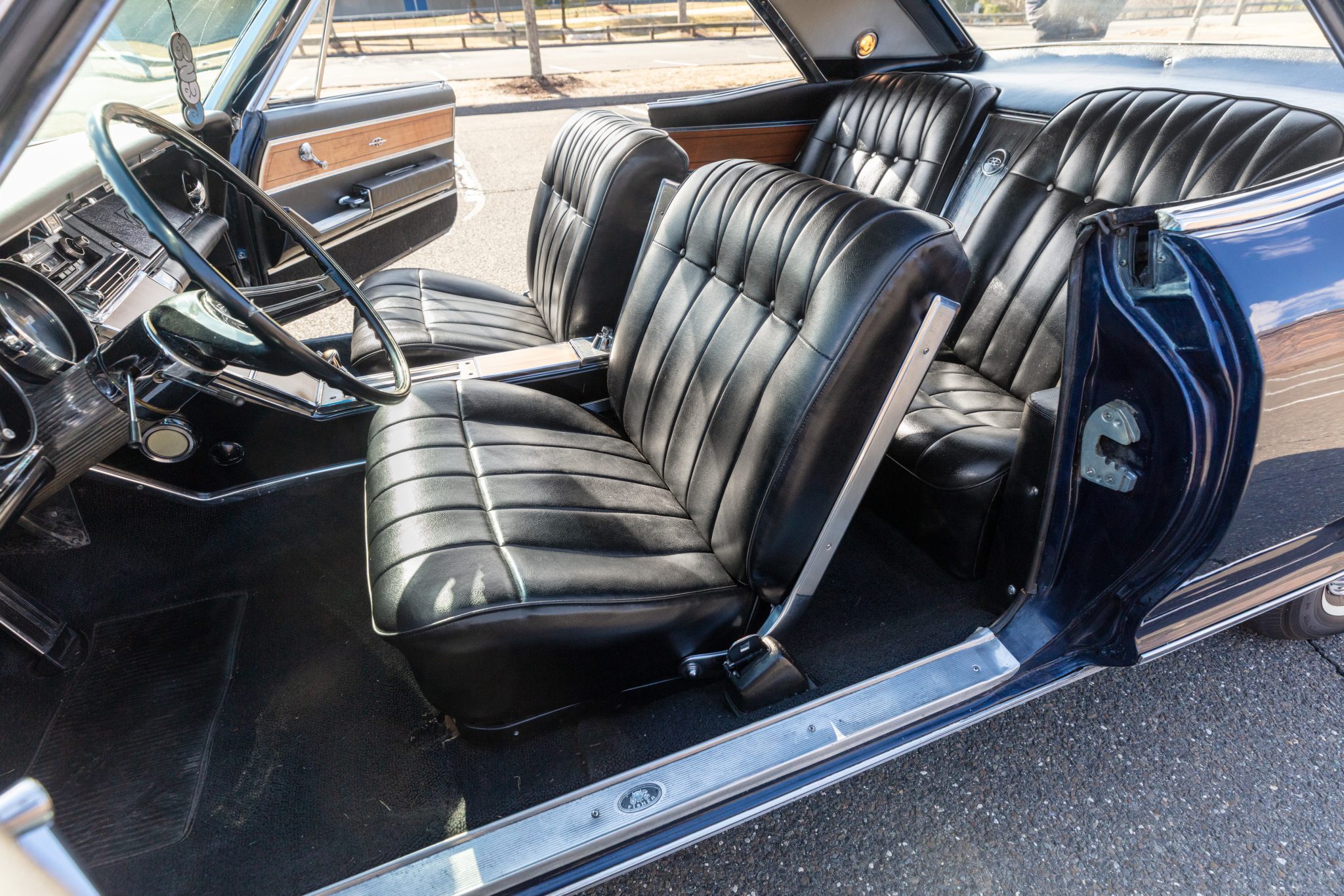 This 1965 Buick Riviera Gran Sport is one of 3,354 examples produced with the Gran Sport package A 425ci Nailhead V8 breathes through dual four-barrel carburetors and is mated to a three-speed automatic transmission and a limited-slip differential. The body has been refinished in blue, and the car is equipped with 15″ Rally wheels, concealed stacked headlights, a power-adjustable driver’s seat, rear bucket seats, power windows, cruise control, and a non-functioning air conditioning system.