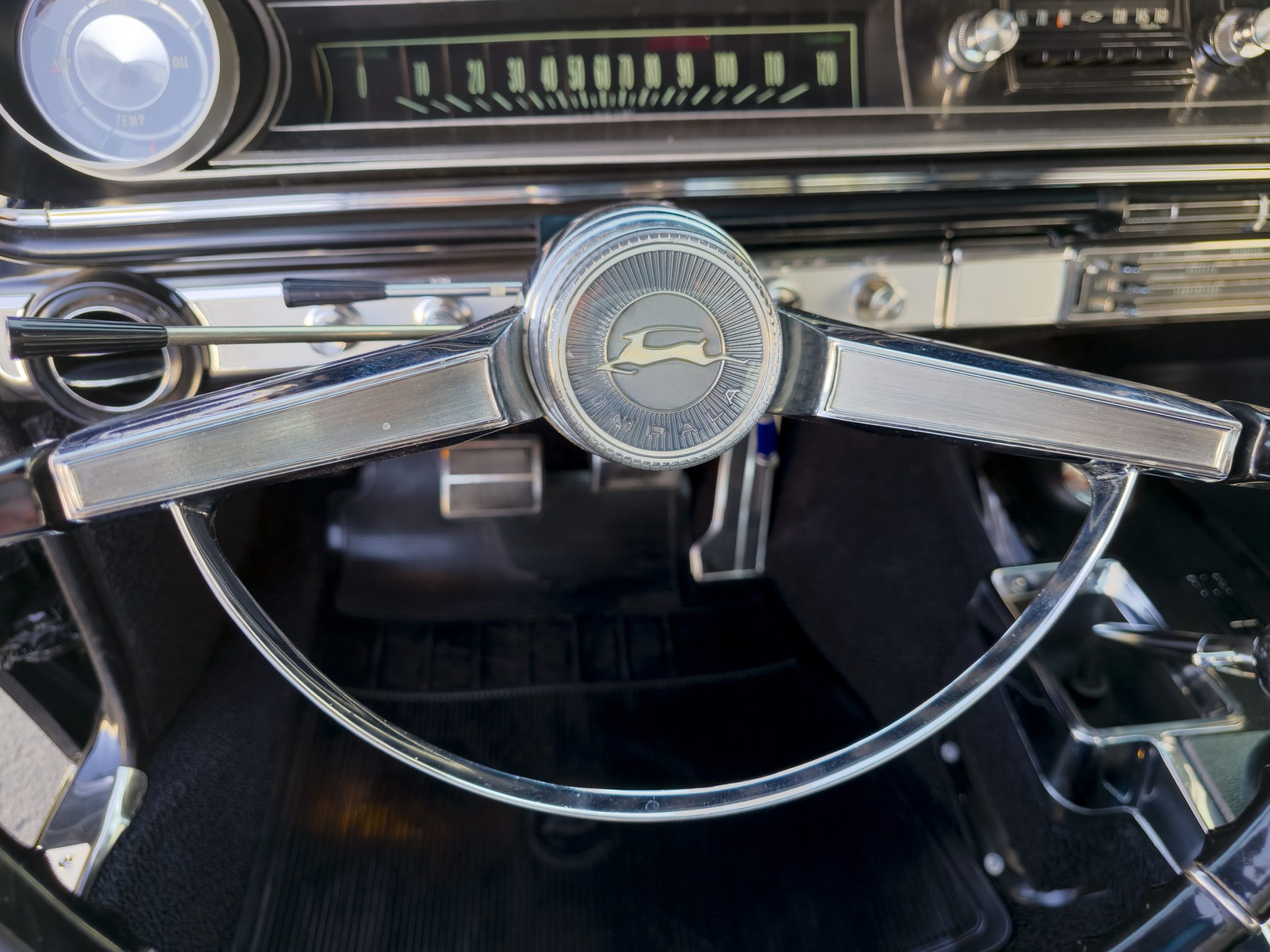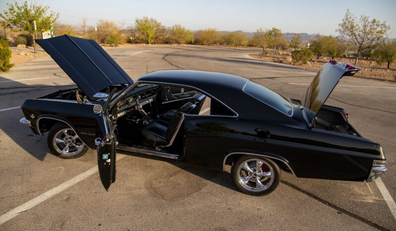 Work during that time included refinishing the frame and body in black, installing a replacement 327ci V8 backed by a four-speed manual transmission, and reupholstering the interior in black vinyl. Additional features include 17″ American Racing Torq Thrust wheels, power-assisted Baer disc brakes, power steering, a Positraction limited-slip rear differential, front bucket seats, an AM radio, and air conditioning. This Impala SS is now offered on dealer consignment with a Protect-O-Plate, manufacturer’s literature, service records, spare parts
