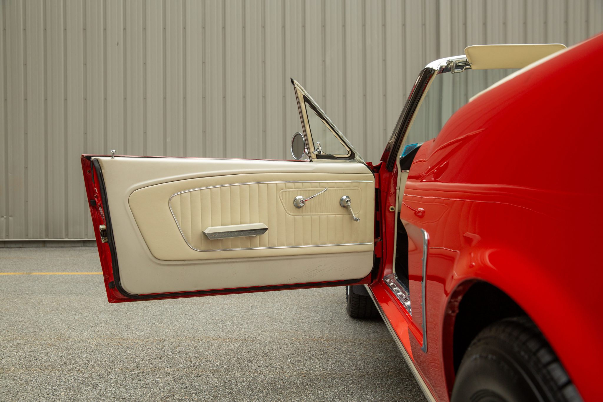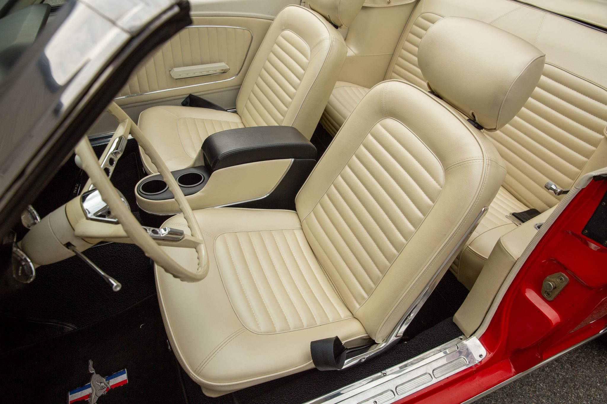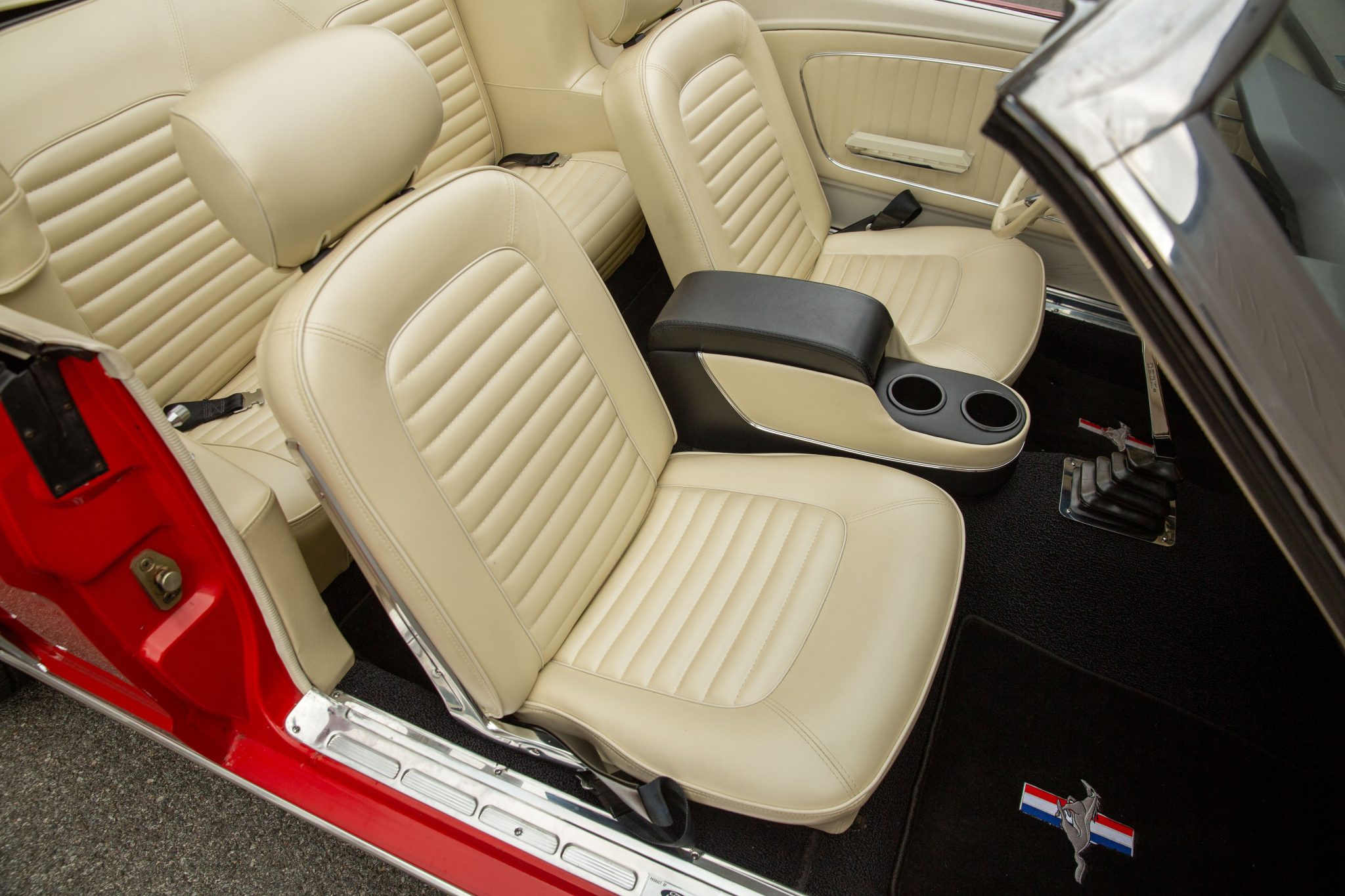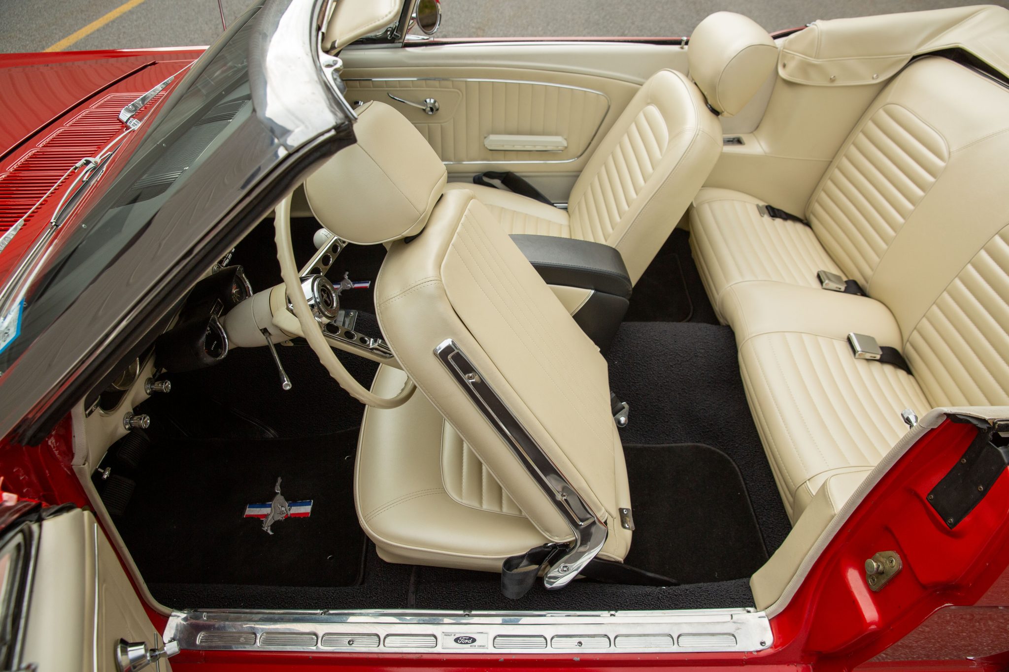 This 1965 Ford Mustang was delivered as a C-Code convertible with a 289ci V8 and automatic transmission In 2015 the engine was rebuilt to displace 293ci by Mustang Madness in Portland, Connecticut, and it is topped by Edelbrock heads and a Holley carburetor. A Tremec five-speed manual transmission, four-wheel discs, and a GT-style exhaust system and Rally-Pac instruments were also installed by the previous owners, while the seller mounted Scott Drake wheels, overhauled the interior, added a Custom Autosound Bluetooth stereo and power steering, and replaced the top, radiator, clutch, and more as described below.