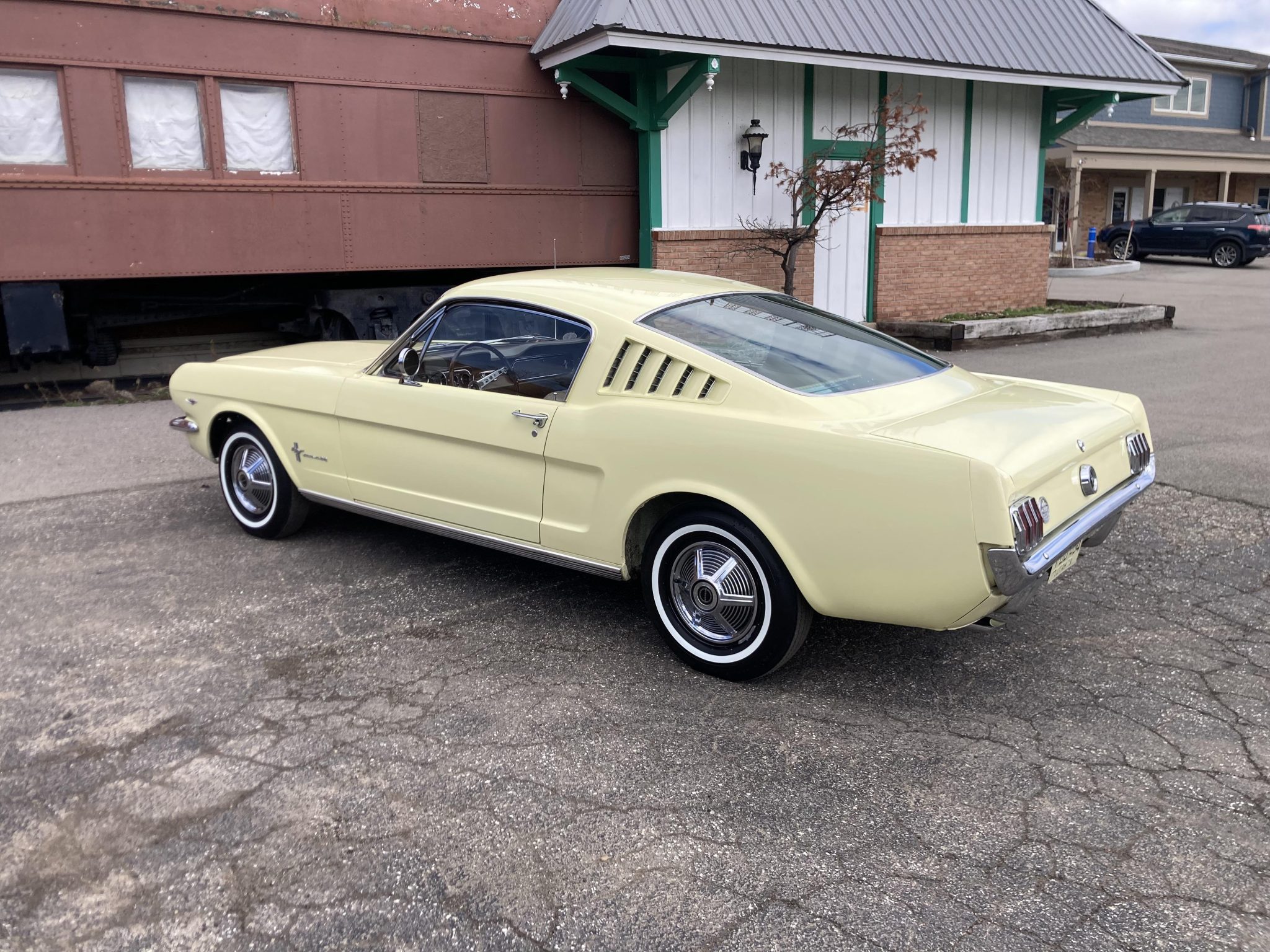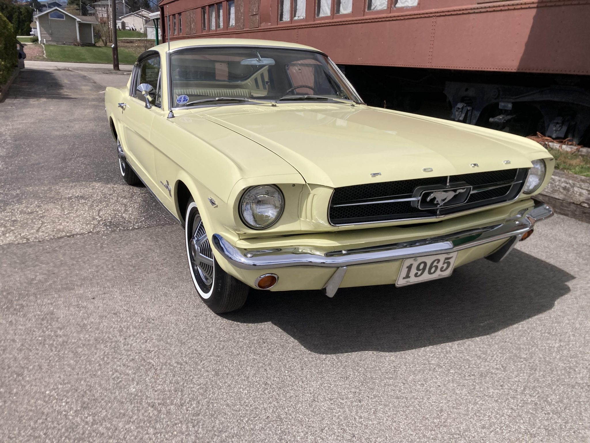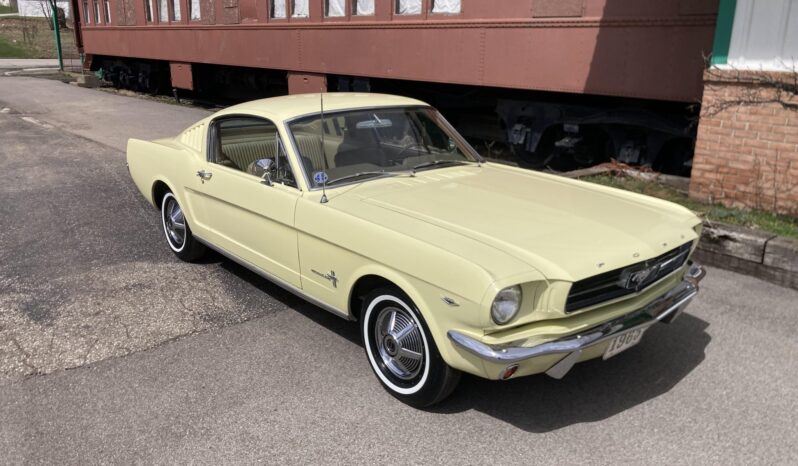 This 1965 Ford Mustang fastback was having been specified with a 289ci V8, a Cruise-o-Matic transmission, power steering, Springtime Yellow paintwork, a Palomino Pony interior, an AM radio, and the Visibility and Decor groups.
