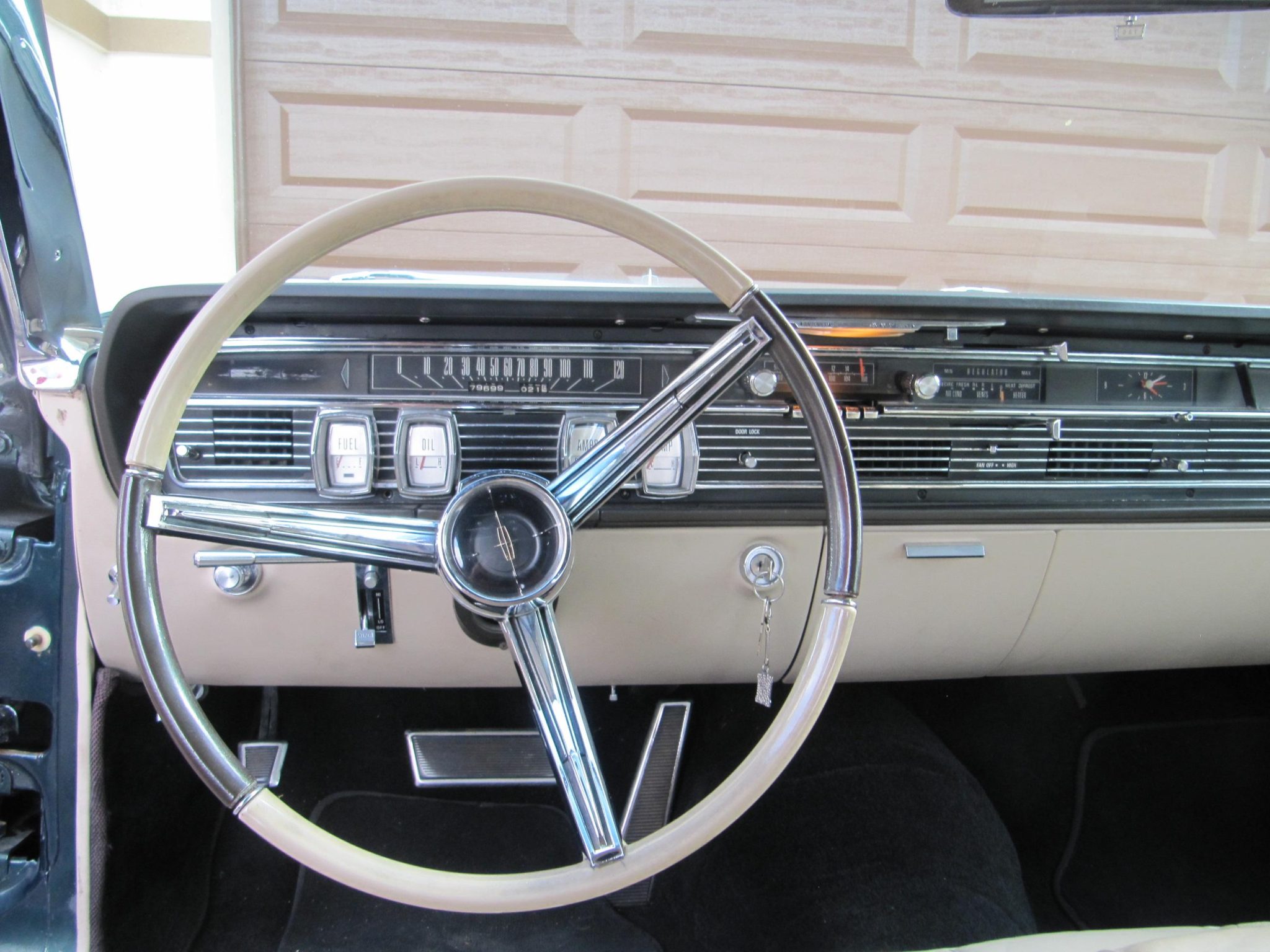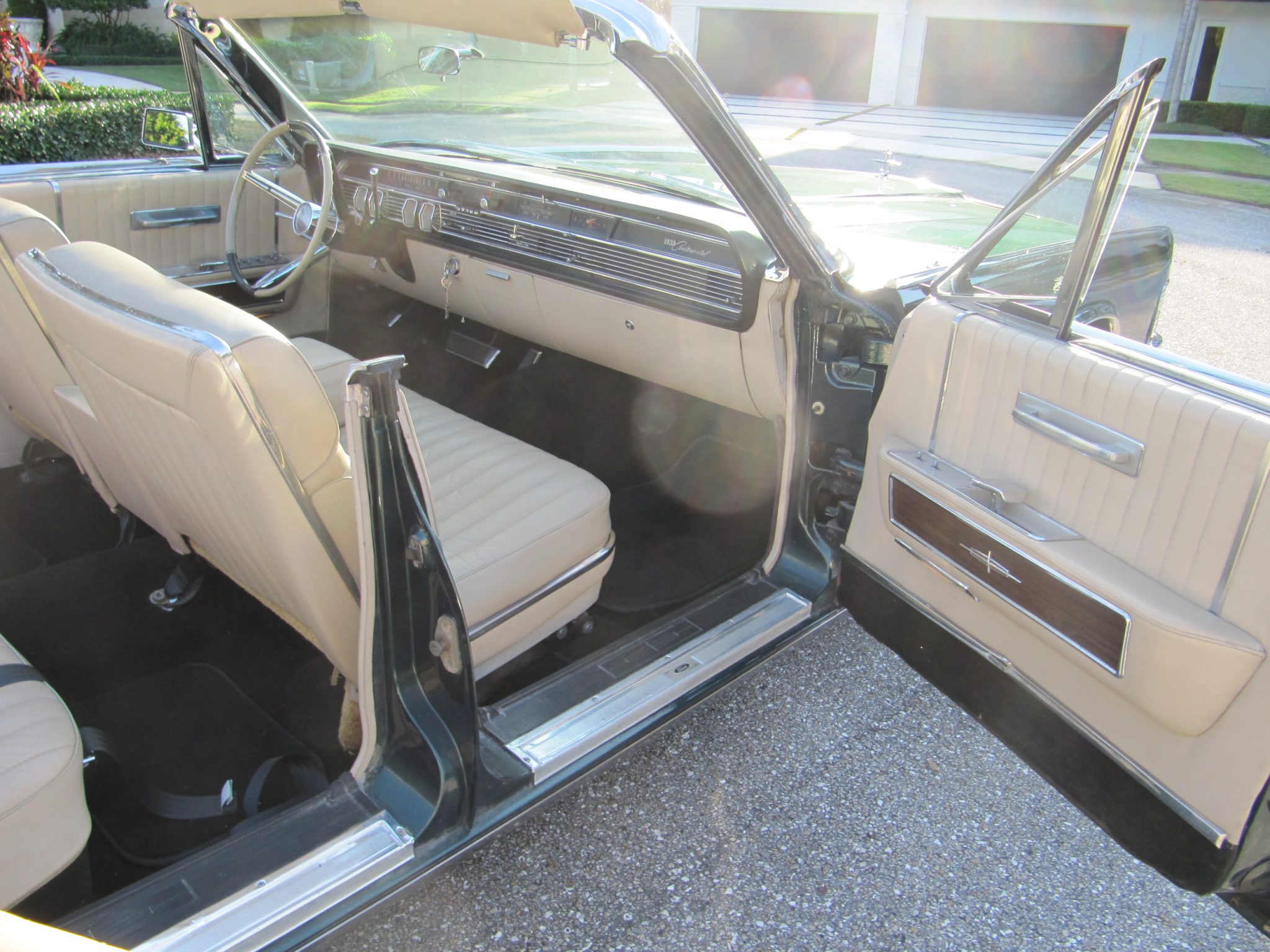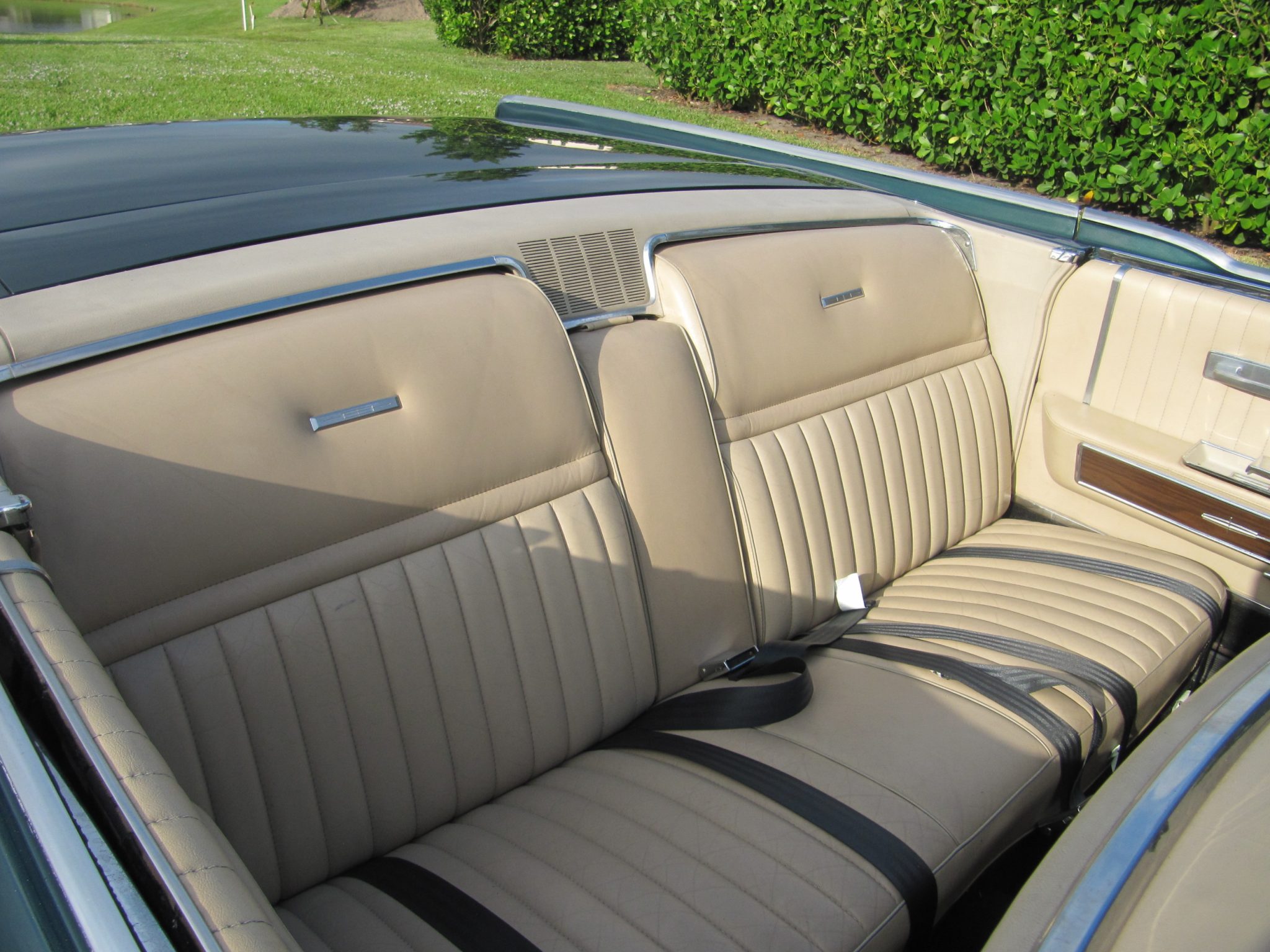 Power is provided by a 430ci V8 linked with a dual-range three-speed automatic transmission. The car rides on 15″ wheels and has stainless-steel exhaust components, a power-operated tan convertible top, a tan interior, power steering, and power-assisted front disc brakes along with a power-adjustable front bench, power windows, and power door locks.