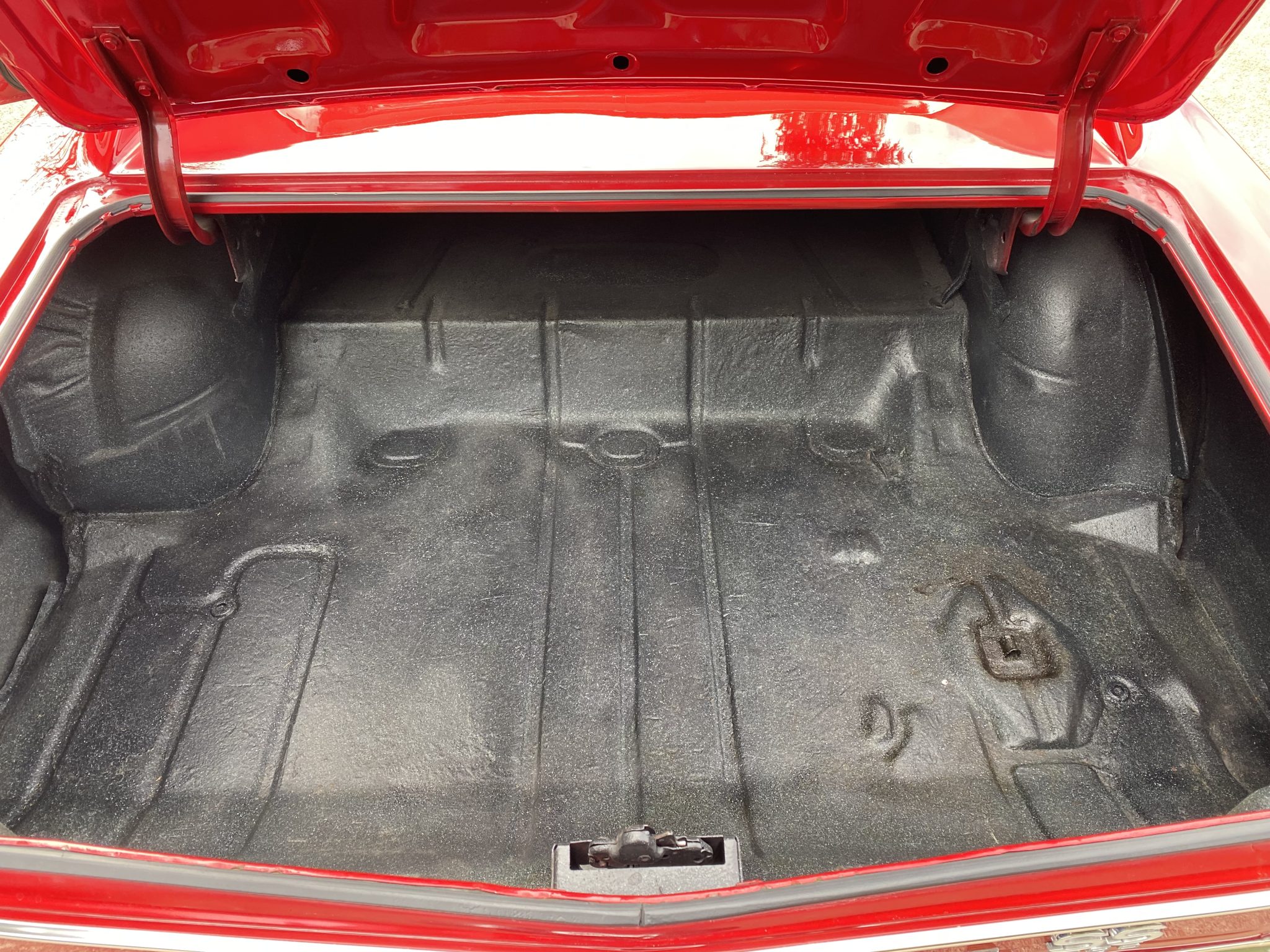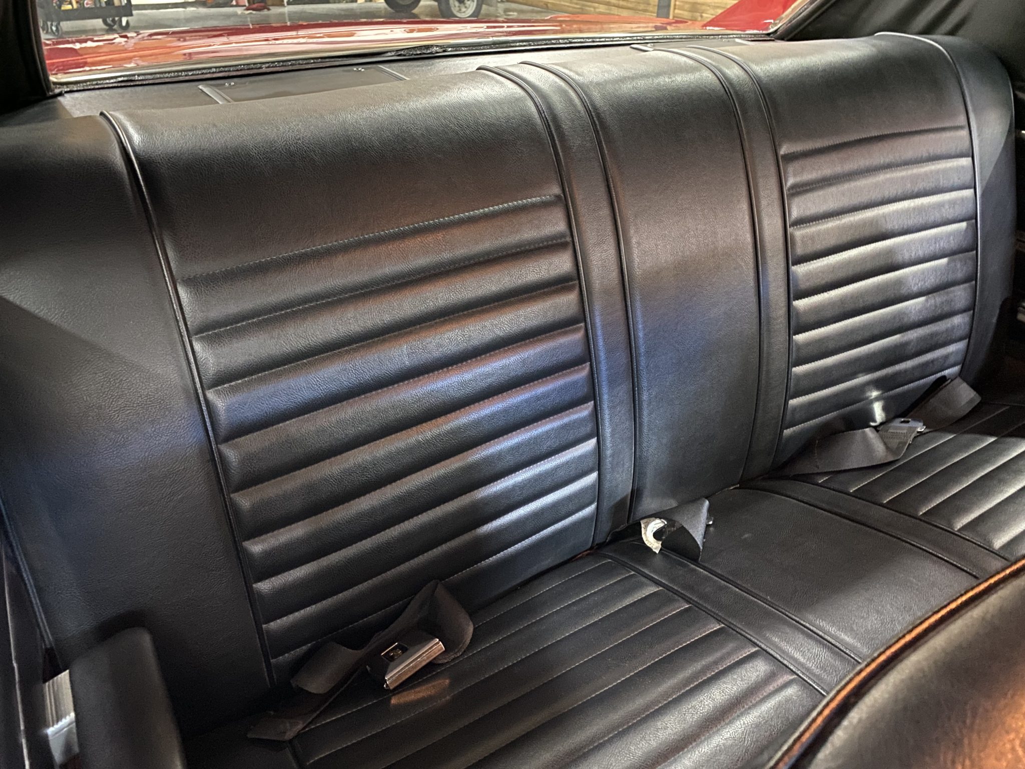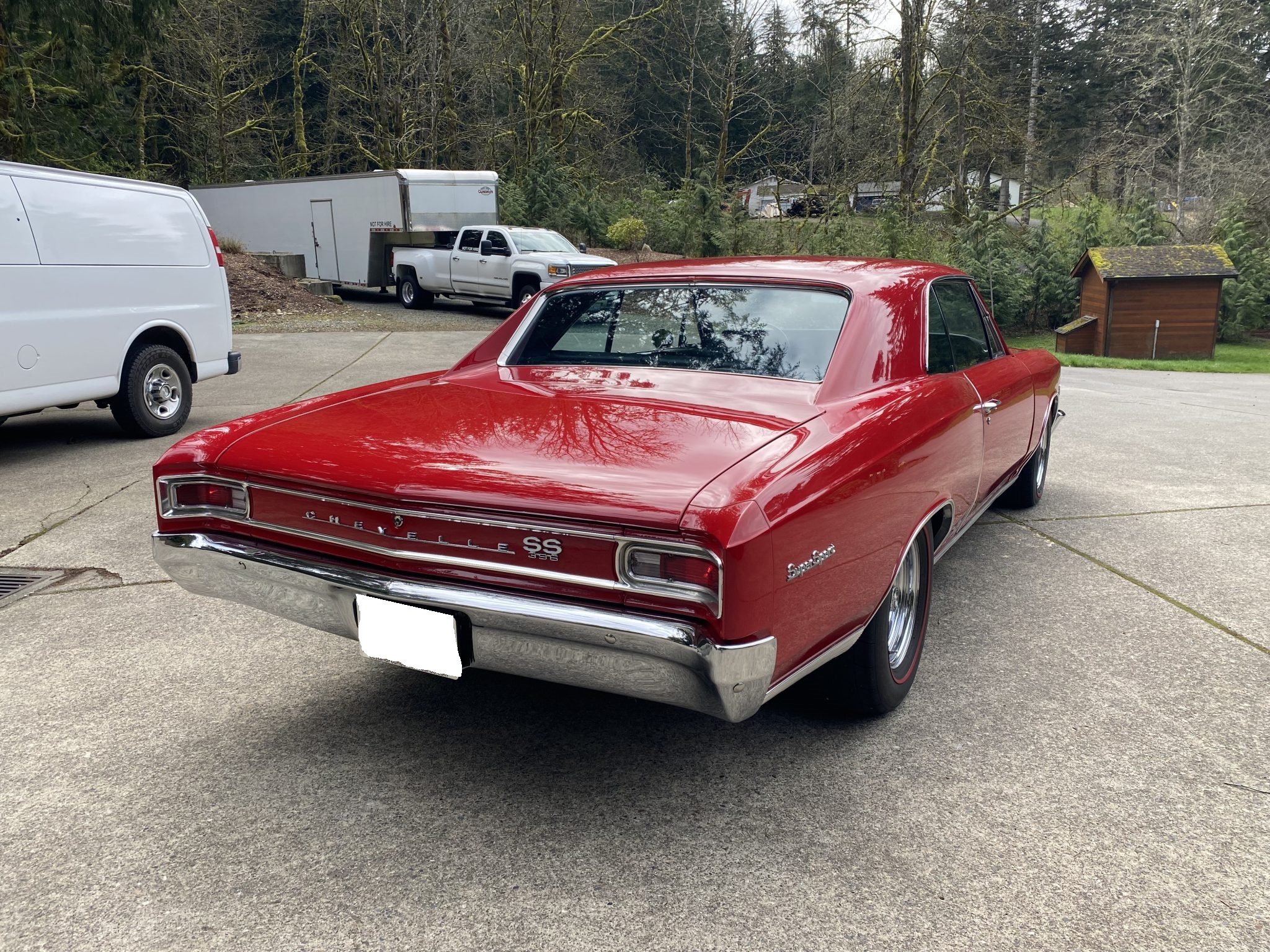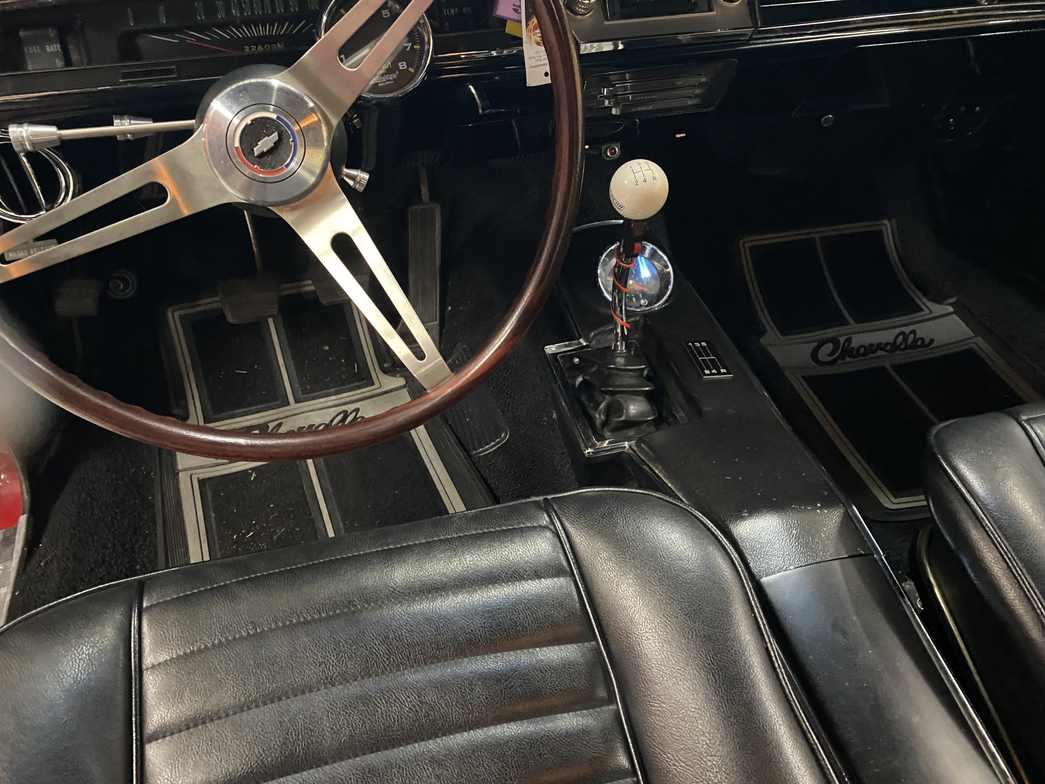 This 1966 Chevrolet Chevelle Malibu sport coupe was modified over the last three years with a 496ci V8, a TKO-600 five-speed manual transmission, four-wheel disc brakes, power steering, QA1 coilovers, Vintage Air air conditioning, and a dual exhaust system with electric cutouts. The car is refinished in red over black, and additional equipment includes a 12-bolt Positraction rear end, 14″ Rally-style steel wheels, front bucket seats, and an aftermarket stereo.