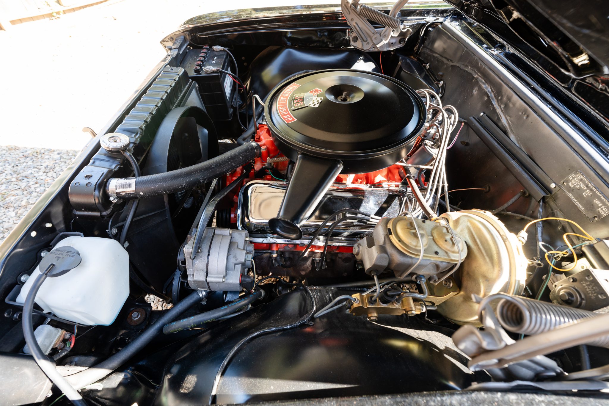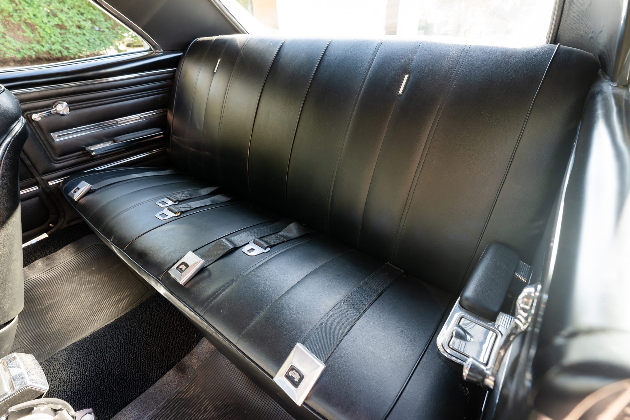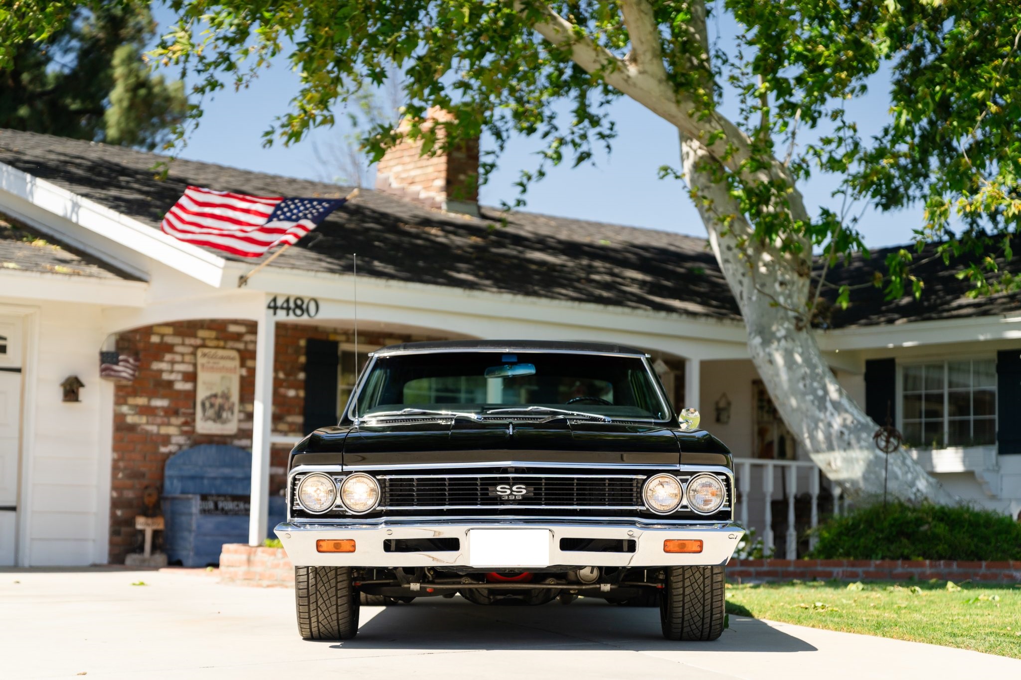 This 1966 Chevrolet Chevelle SS 396 sports coupe underwent a refurbishment in 2022 and is powered by a replacement 396ci V8 mated to a Muncie four-speed manual transmission. It is finished in black with a matching vinyl roof cover, and equipment includes a PosiTraction differential, chrome bumpers, Flowmaster mufflers, electric windshield wipers, power-assisted front disc brakes, power steering, 18″ US Mags Rambler wheels, and SS badging and trim.