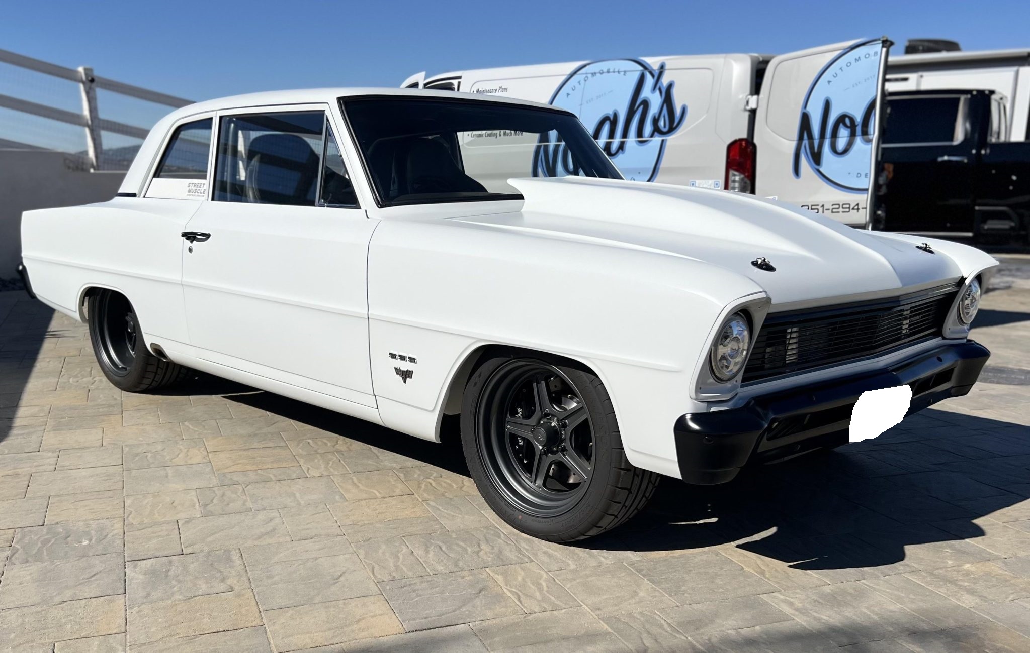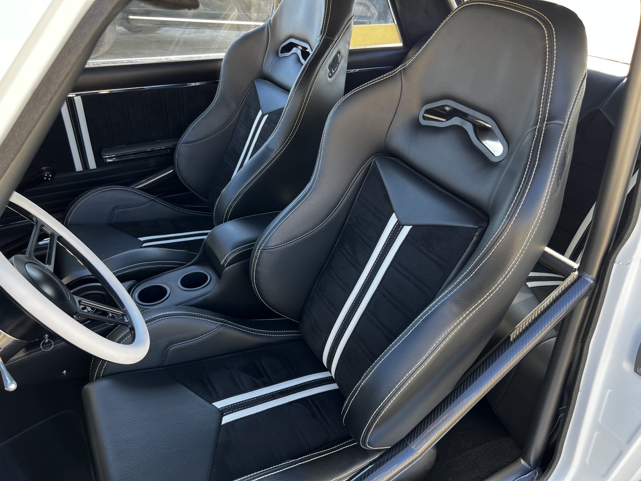 It is finished in Axalta Cromax Pro Corvette Arctic in Satin White and powered by a supercharged Pat Musi Racing 555ci big-block V8. Equipment includes a six-speed automatic transmission, Wavetrack limited-slip differential, satin white paint, a 10-point roll cage, Wilwood disc brakes, and more as listed below.