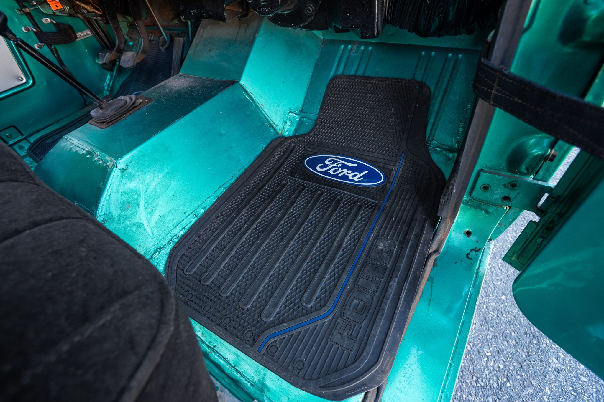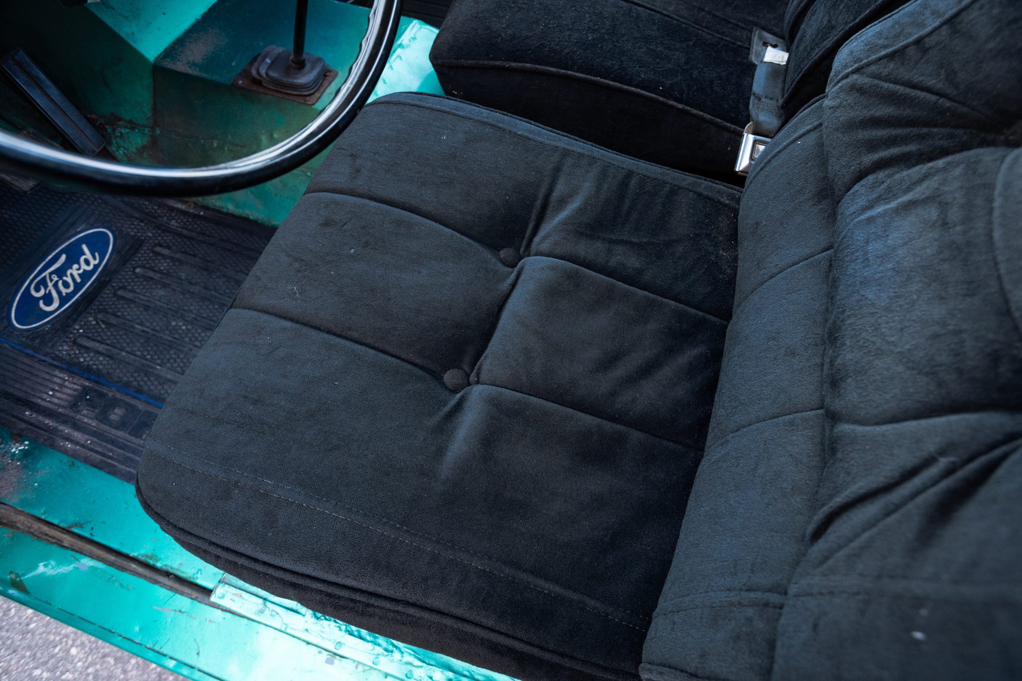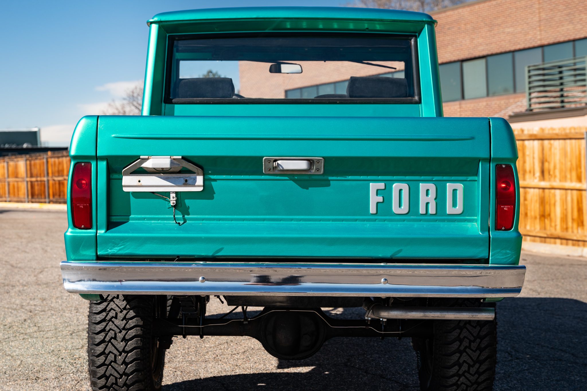 This 1966 Ford Bronco is a half-cab pickup finished in green over black cloth and powered by a 170ci inline-six paired with a three-speed manual transmission and a dual-range transfer case. Work in 2021 included installing a 2.5″ suspension lift, resurfacing the flywheel, rebuilding the steering box and carburetor, and replacing the clutch, pressure plate, exhaust, front wheel cylinders, drive shafts, U-joints, and tires. Equipment includes a body-colored hardtop, 15″ chrome-finished wheels, chrome bumpers, and a heater.