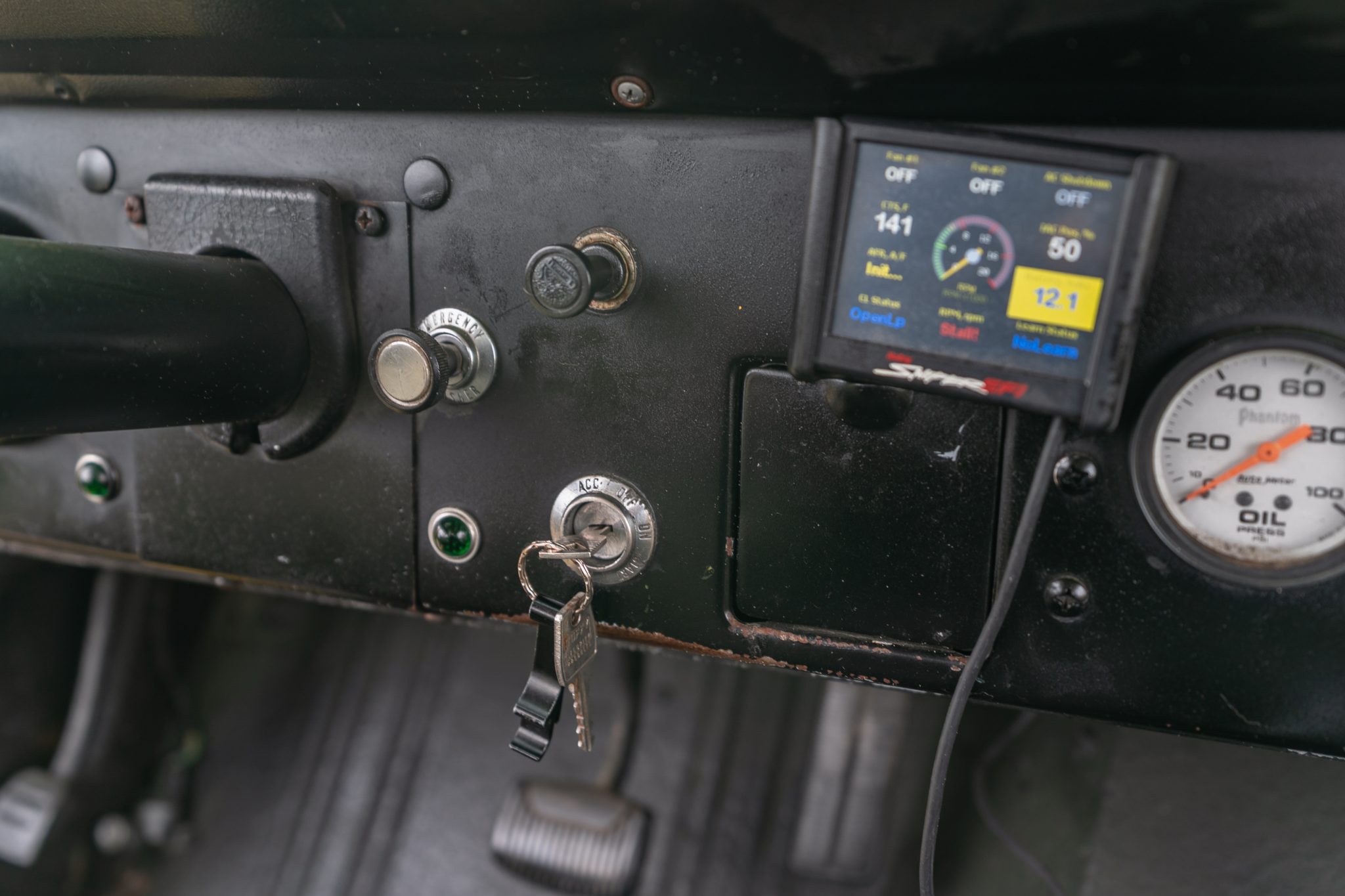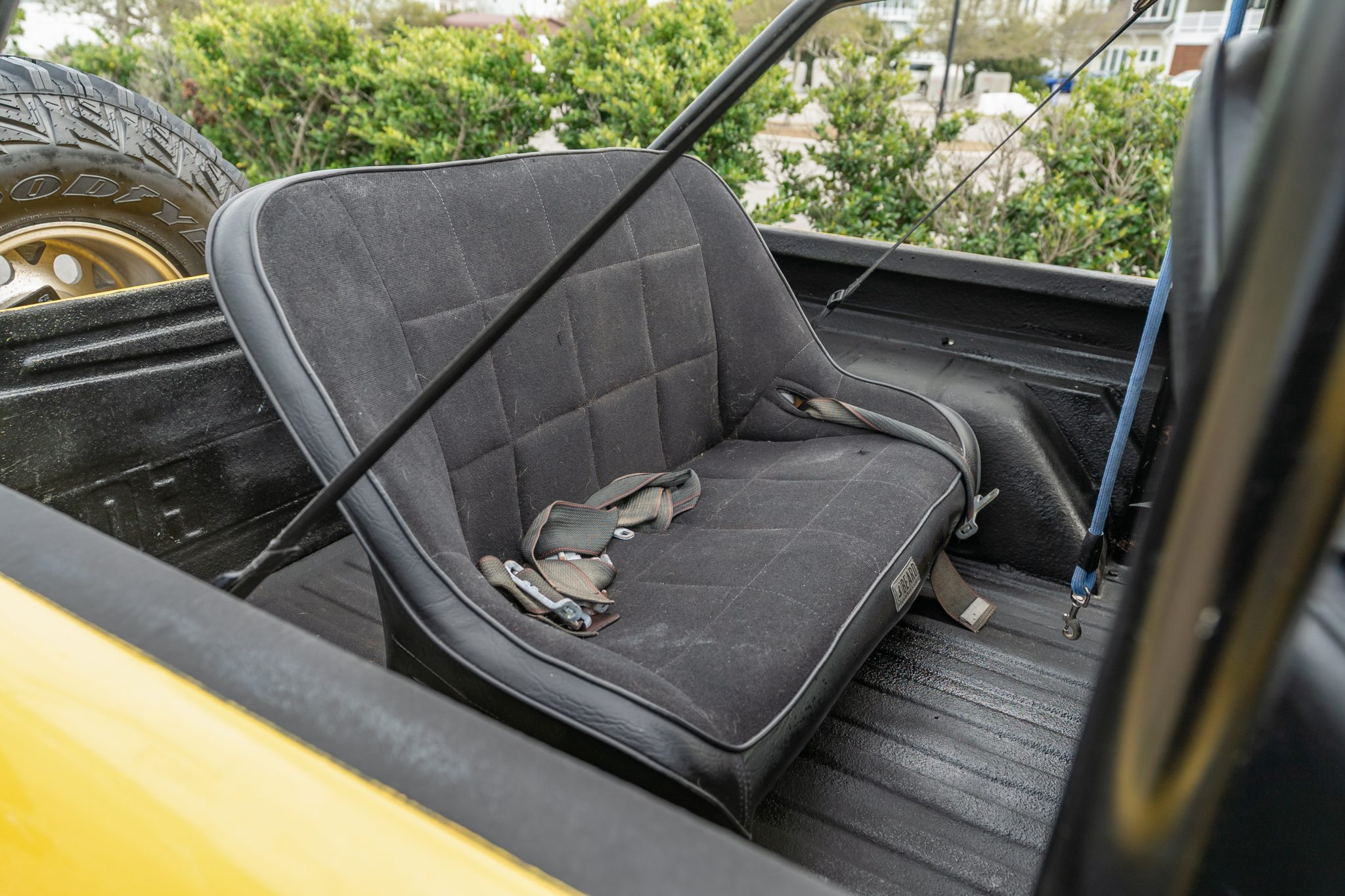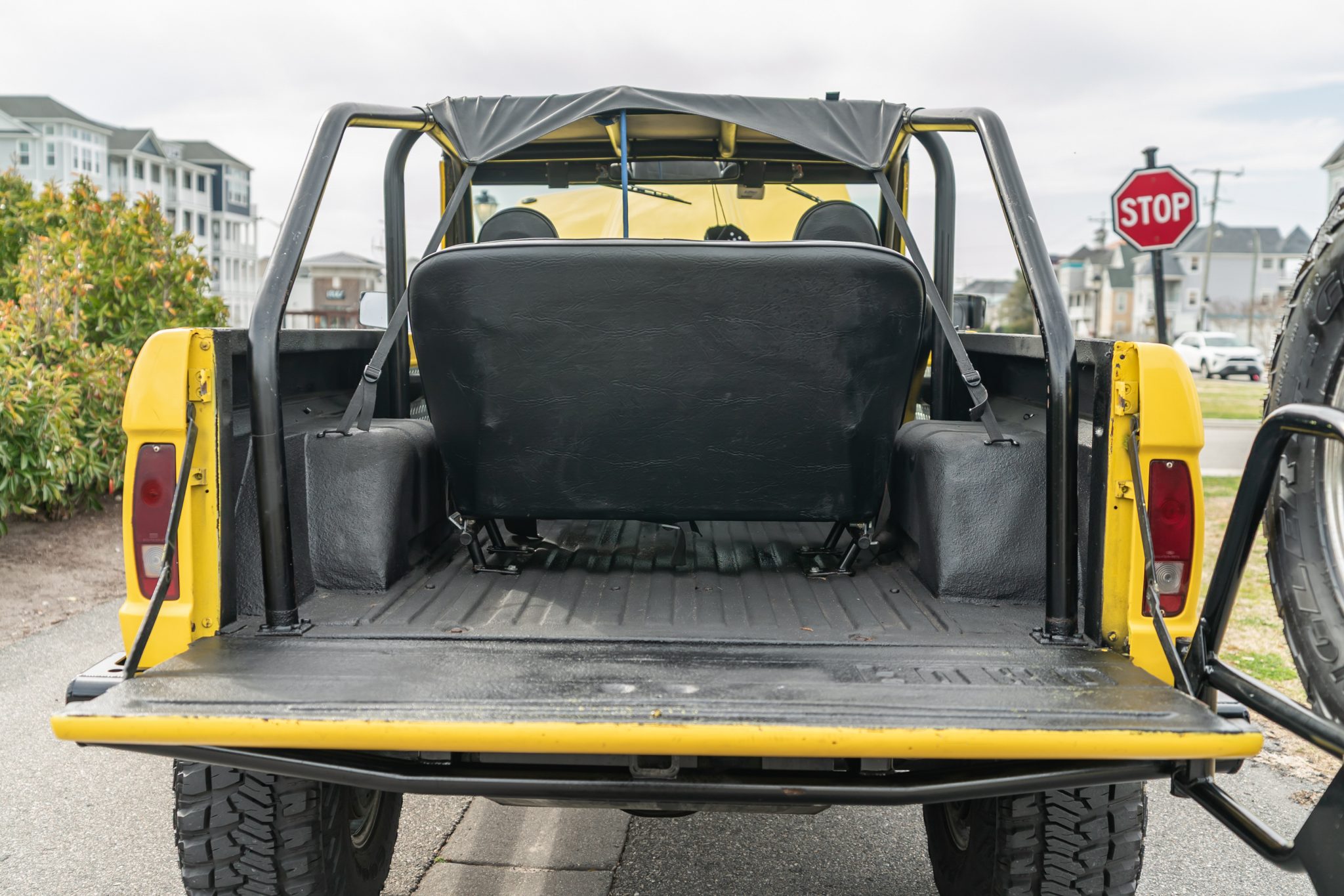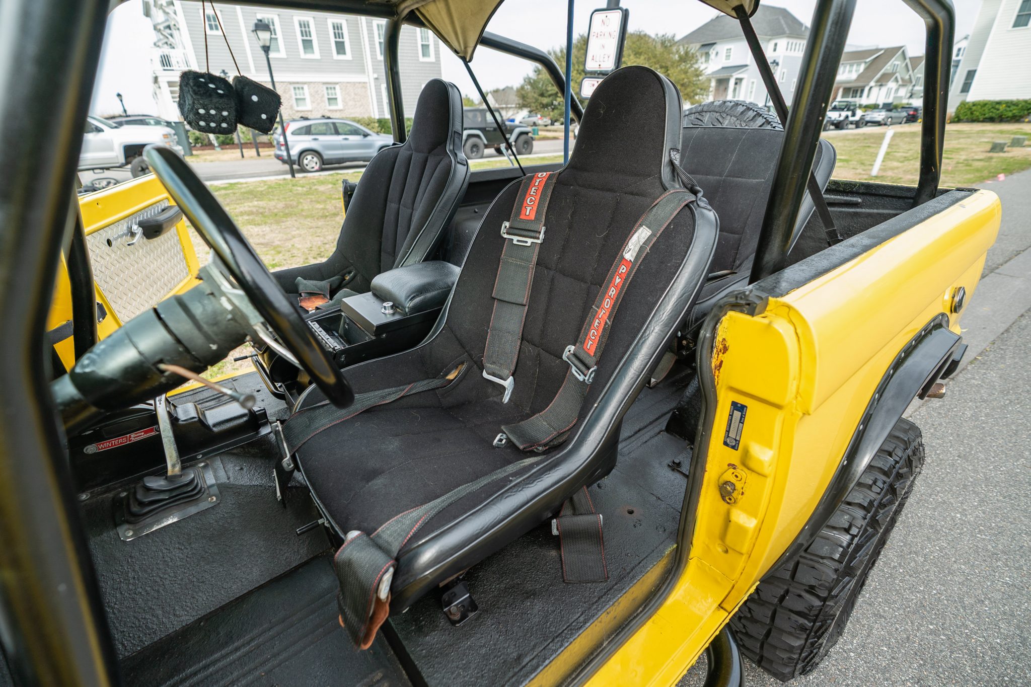 This 1966 Ford Bronco roadster was the subject of a refurbishment completed in 2004 that included a repaint in yellow as well as the installation of a 302ci V8 built by Hawaii Racing of Simi Valley, California. A Holley Sniper electronic fuel injection system has been installed, and power is sent to the rear or all four wheels through a four-speed automatic transmission that was rebuilt in 2021 and a dual-range transfer case. The truck rides on body and suspension lifts as well as 15″ polished wheels with 33″ Goodyear tires, which are mounted over locking hubs and disc brakes at the front.