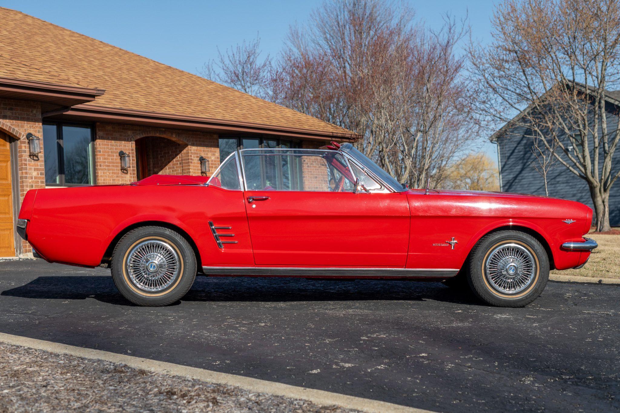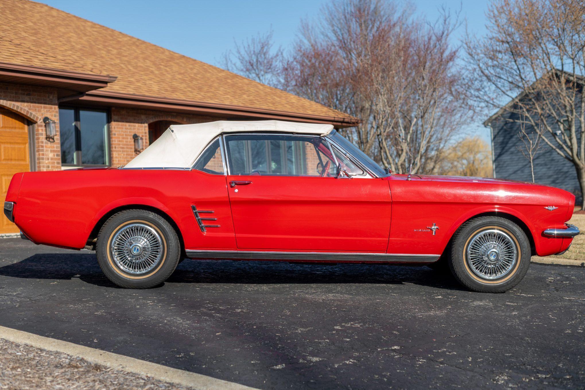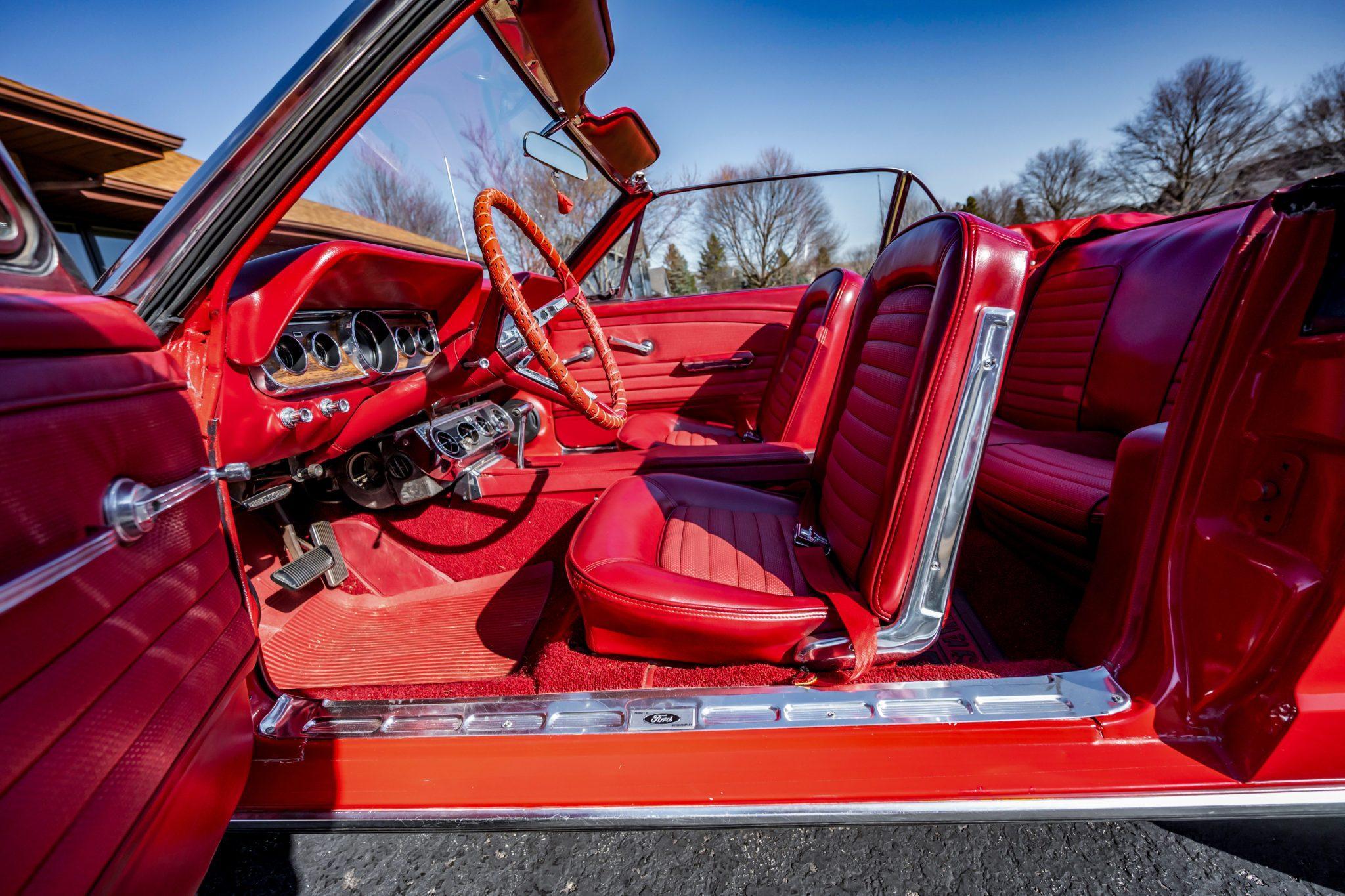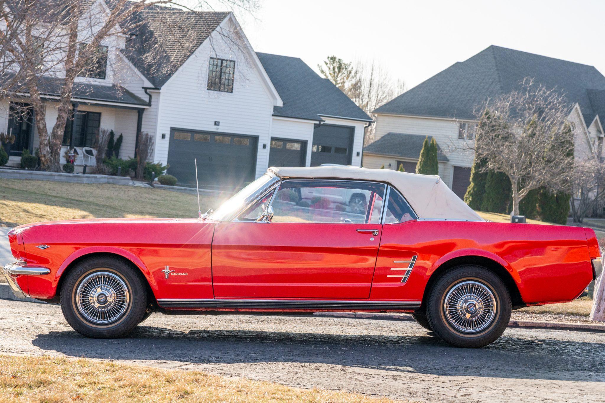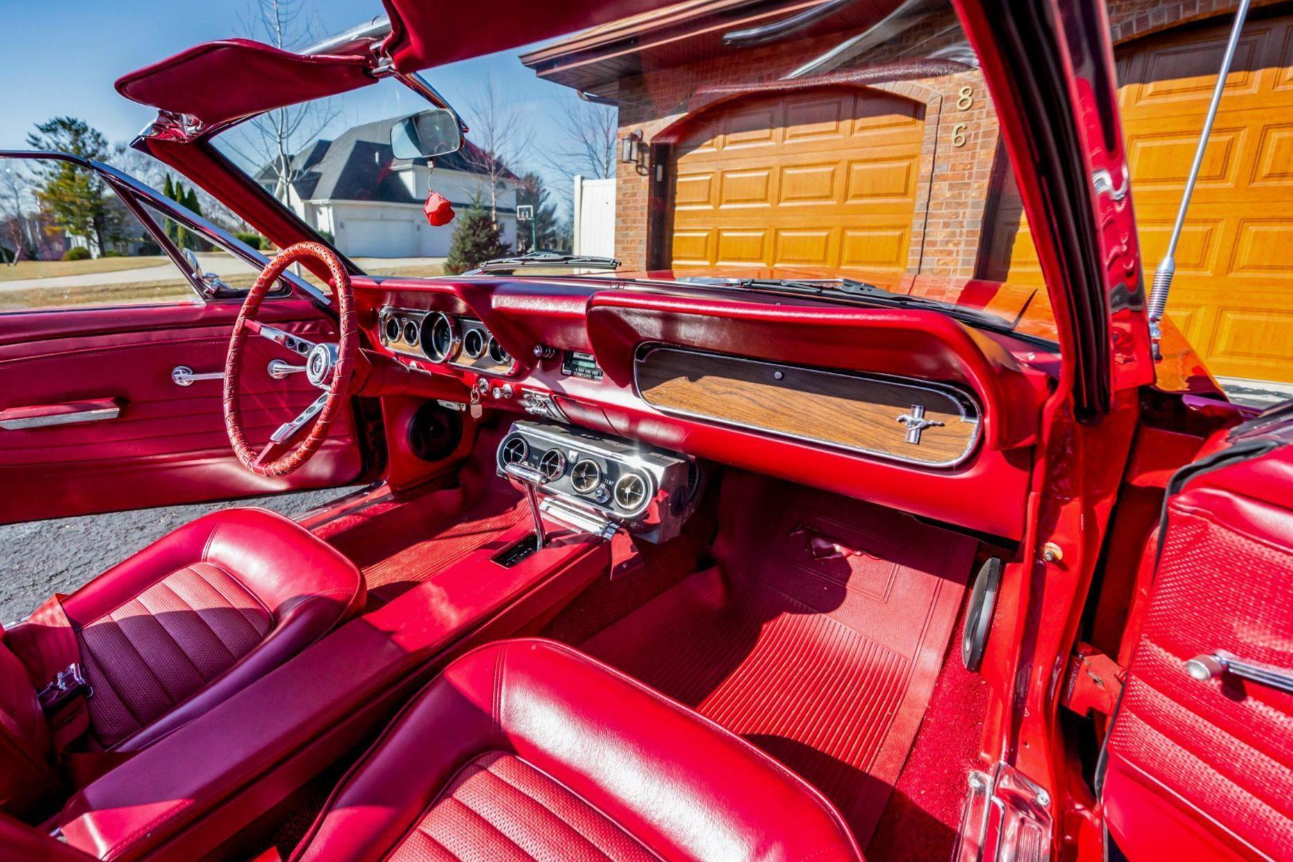 This particular Mustang Convertible boasts V8 power and a gorgeous color combination. It also features some nice modern upgrades like seat belts, a radio, and a CD player, which further enhance its appeal. Power comes from a 289-cubic-inch V8. Output is sent to the rear wheels via a 3-speed automatic transmission.