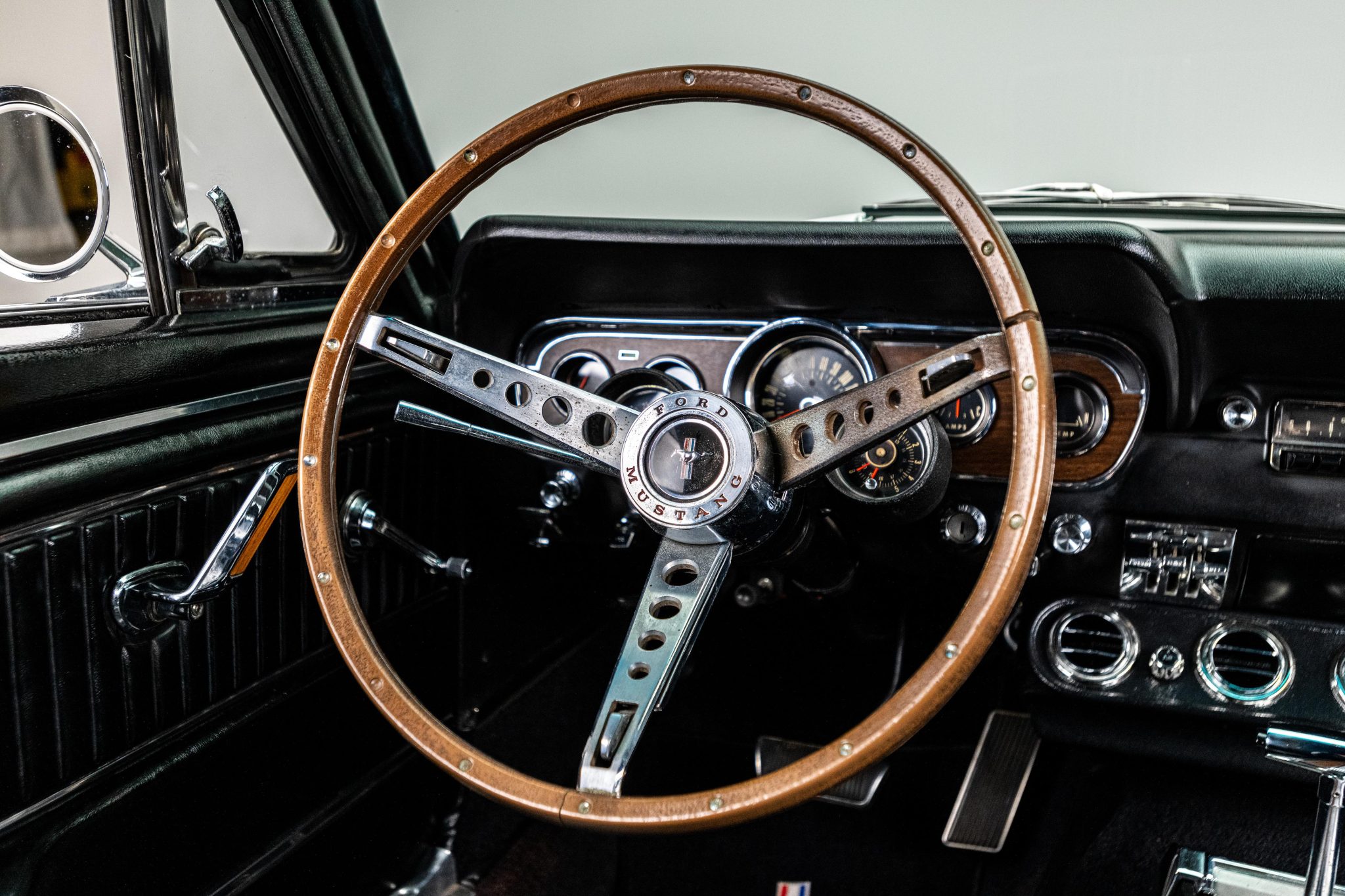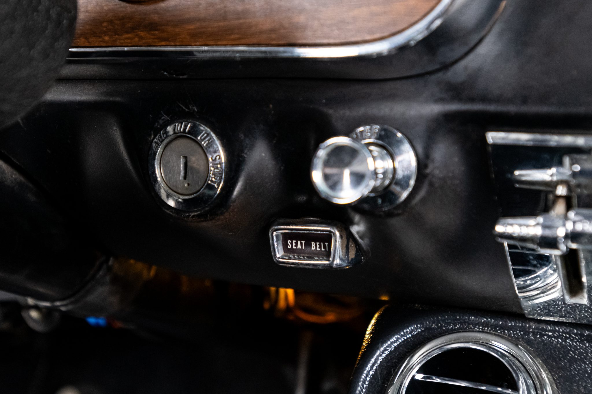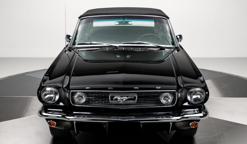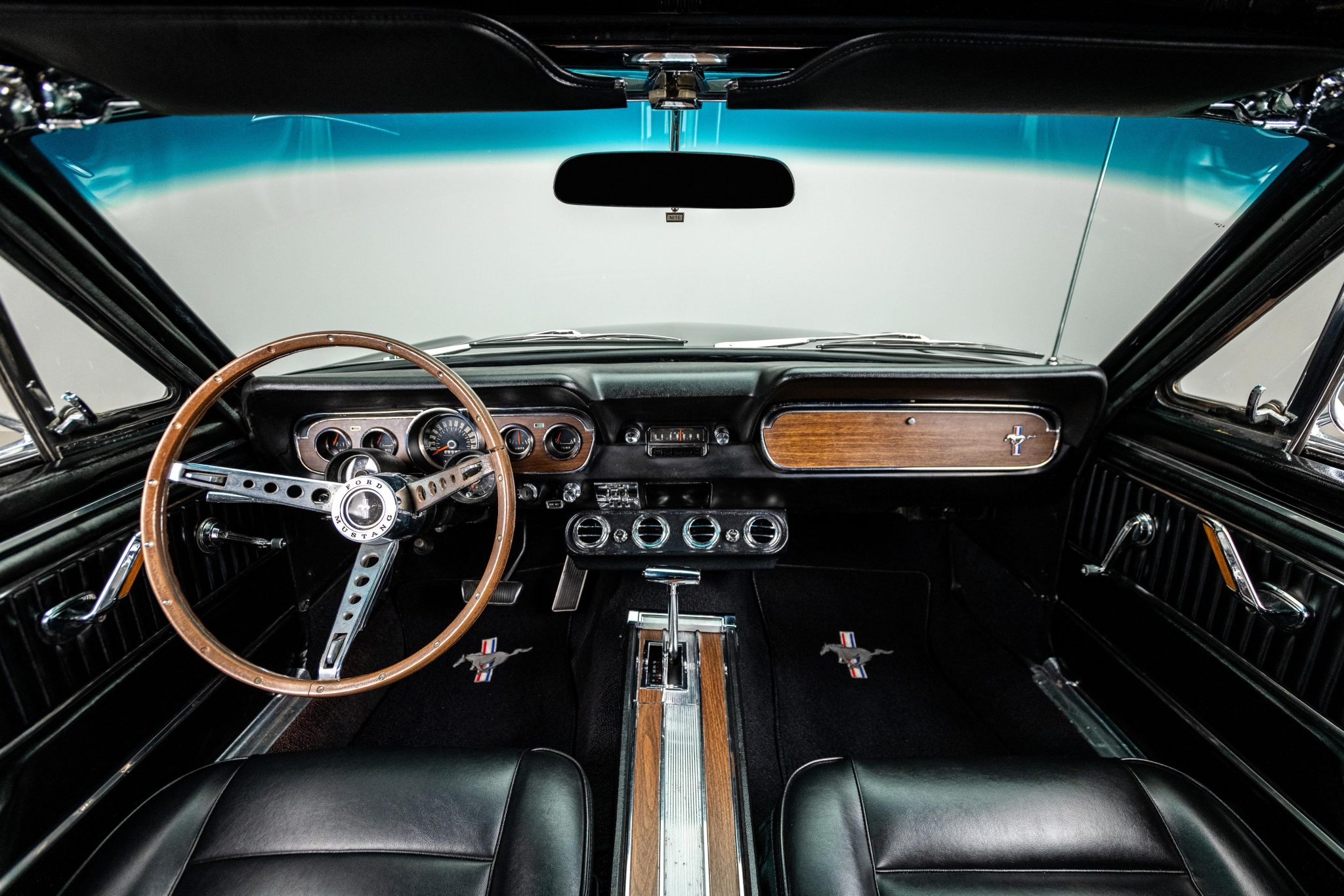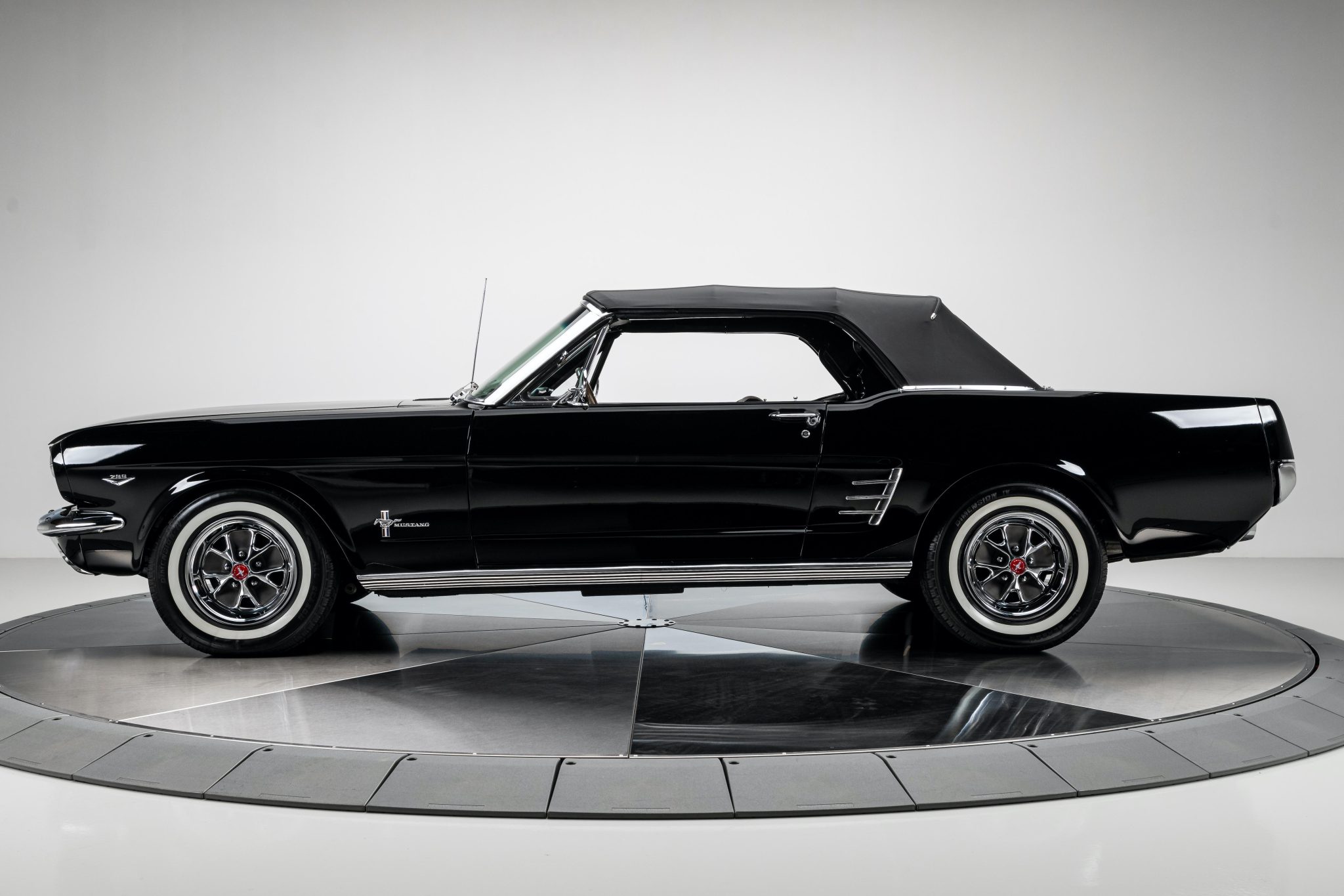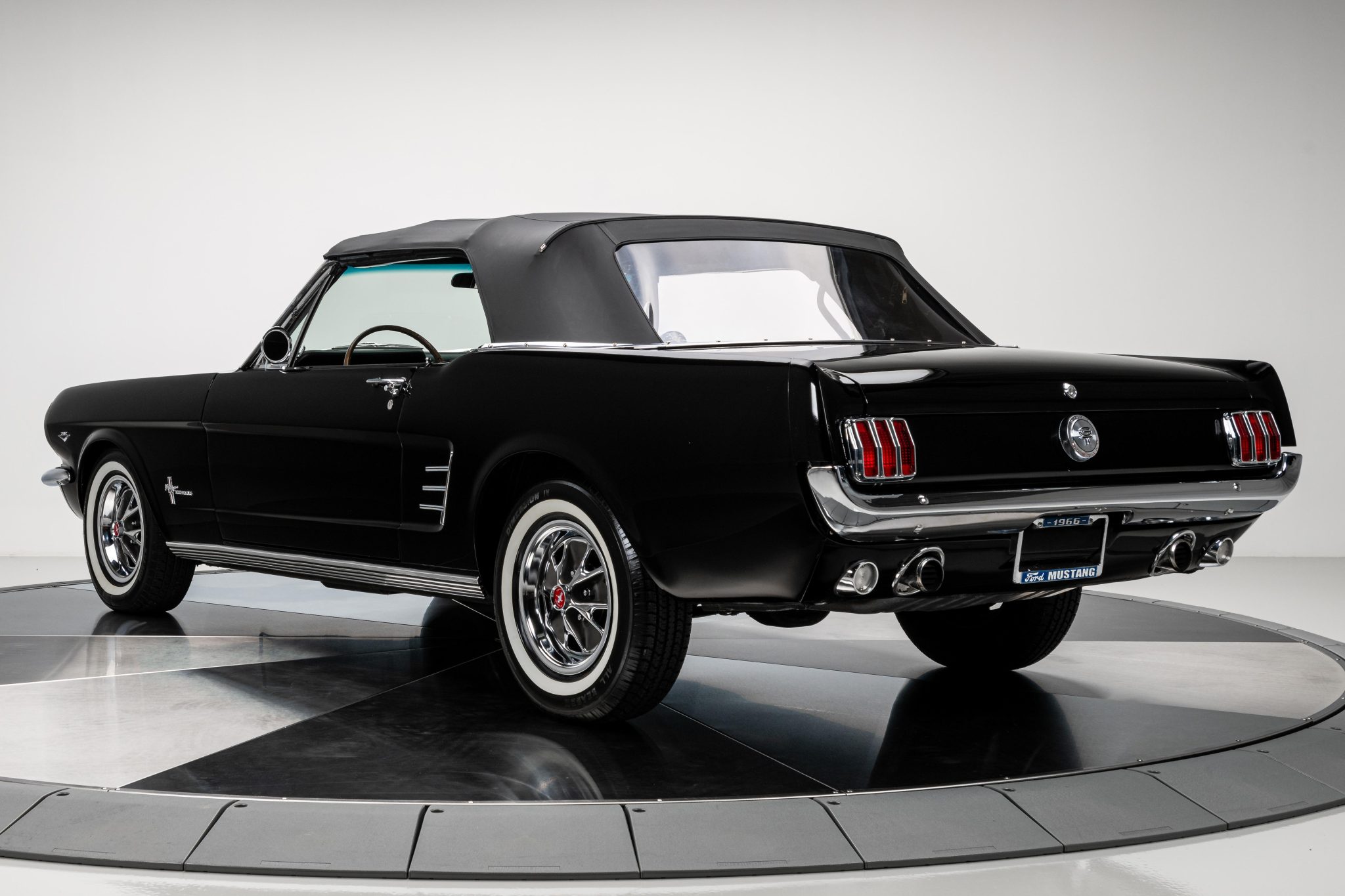 This triple-black 1966 Ford Mustang was restored and modified between 2006 and 2017 GT-style equipment has been added, including styled-steel wheels, grille lights, Rally Pac instruments, and a dual exhaust system exiting through the rear valance, and it also has air conditioning, woodgrain trim, and bucket seats. Power comes from a 289ci V8 linked with a three-speed automatic transmission.