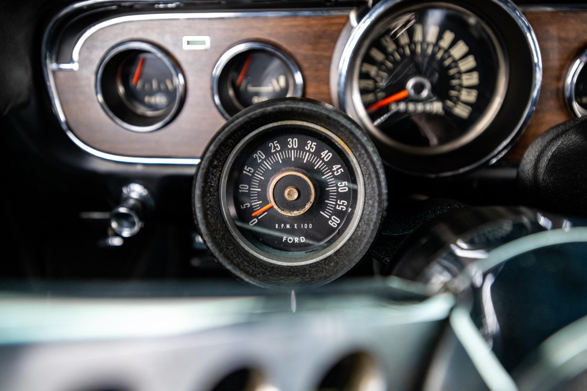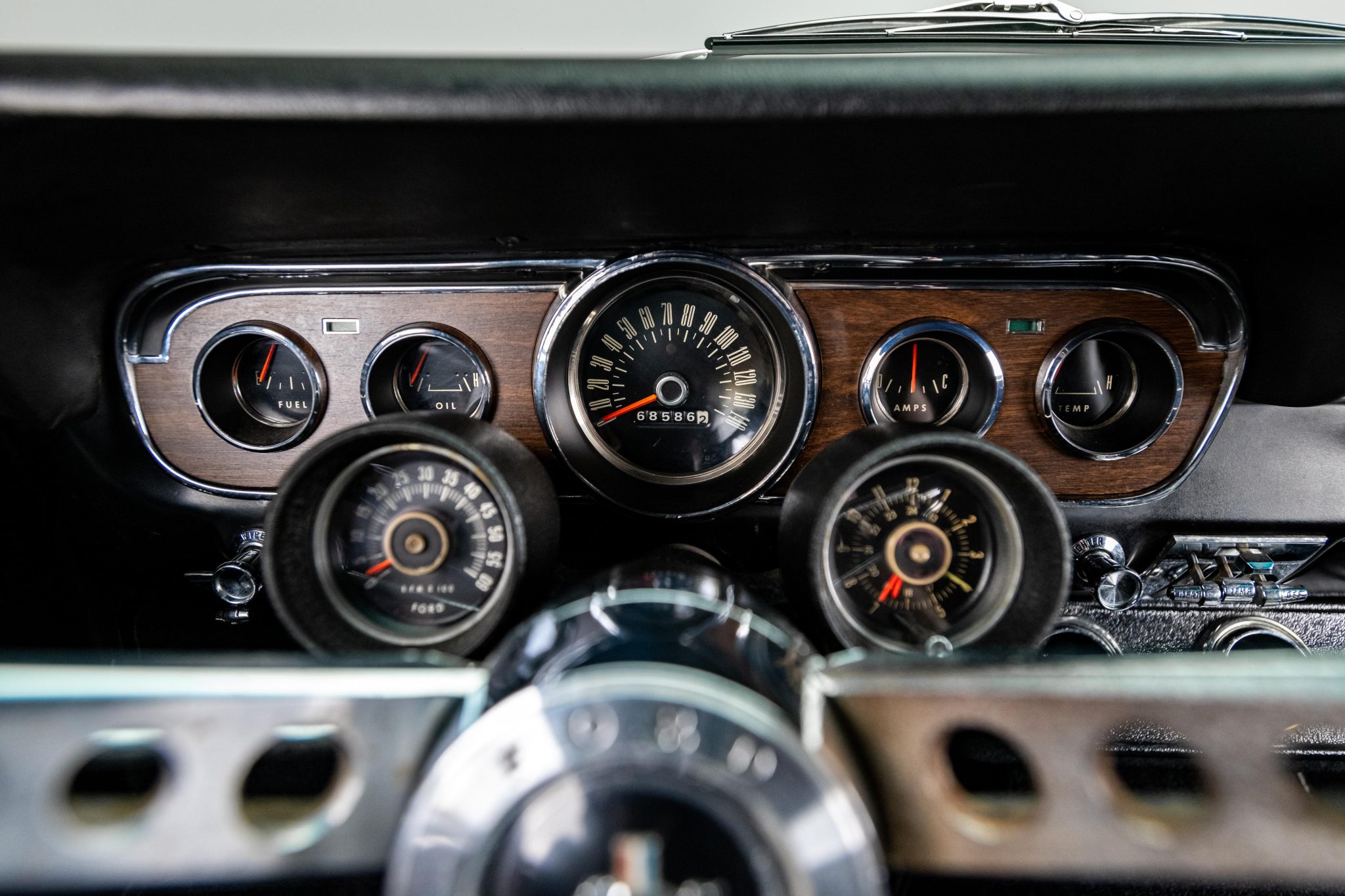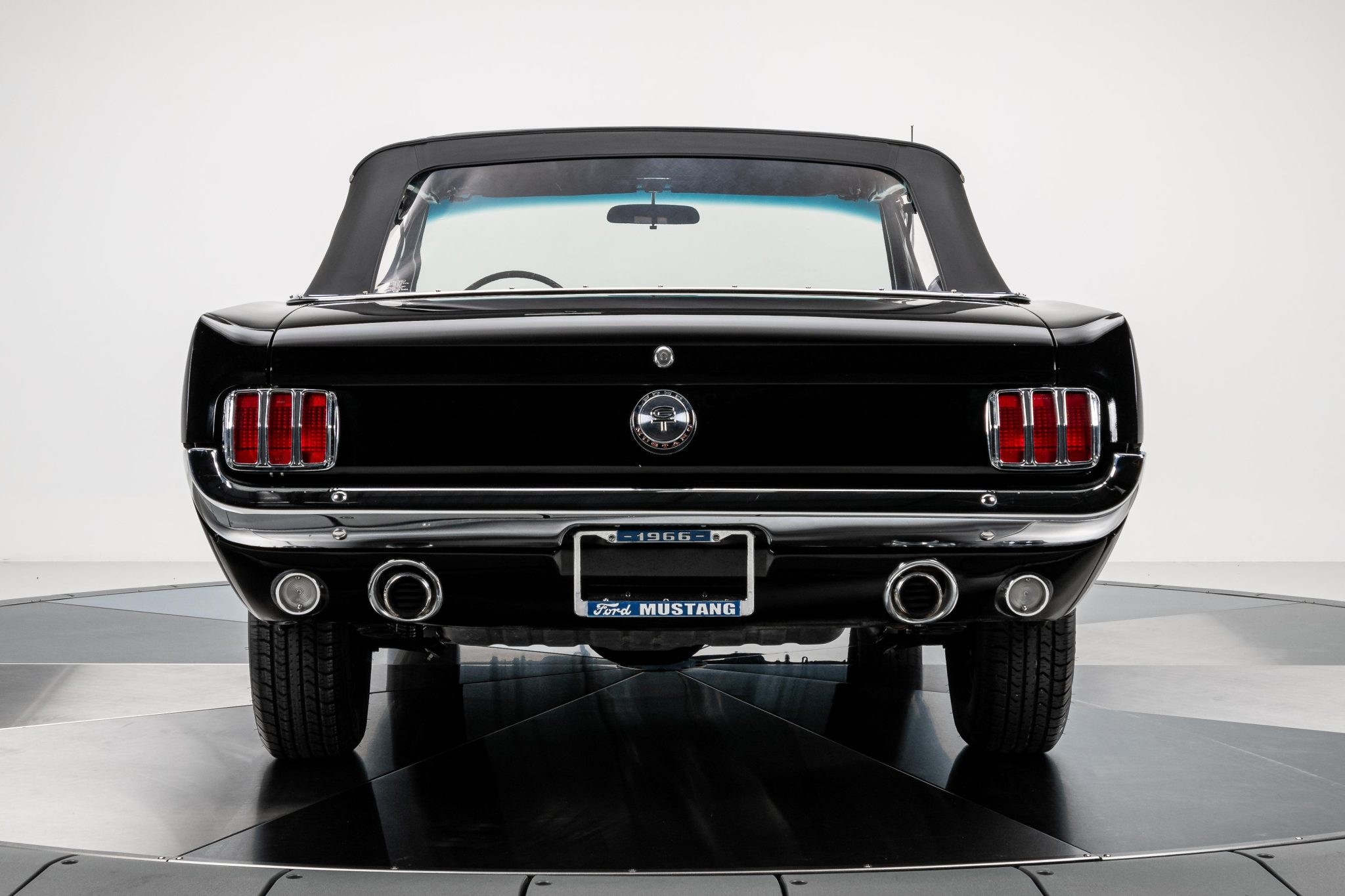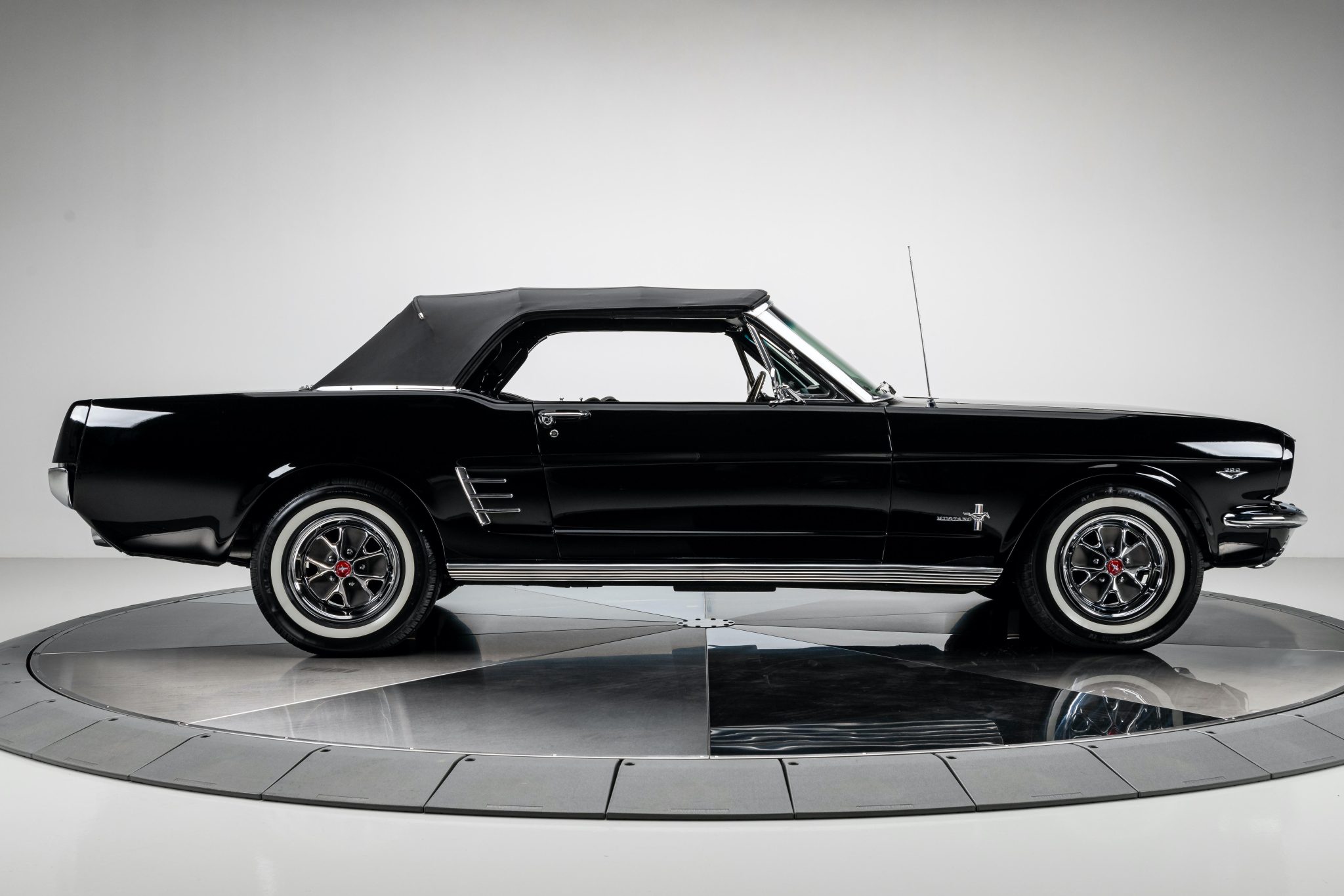 This triple-black 1966 Ford Mustang was restored and modified between 2006 and 2017 GT-style equipment has been added, including styled-steel wheels, grille lights, Rally Pac instruments, and a dual exhaust system exiting through the rear valance, and it also has air conditioning, woodgrain trim, and bucket seats. Power comes from a 289ci V8 linked with a three-speed automatic transmission.