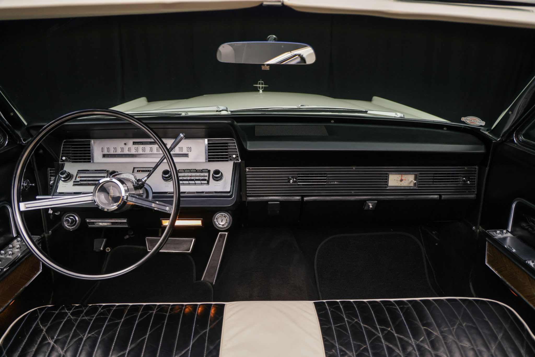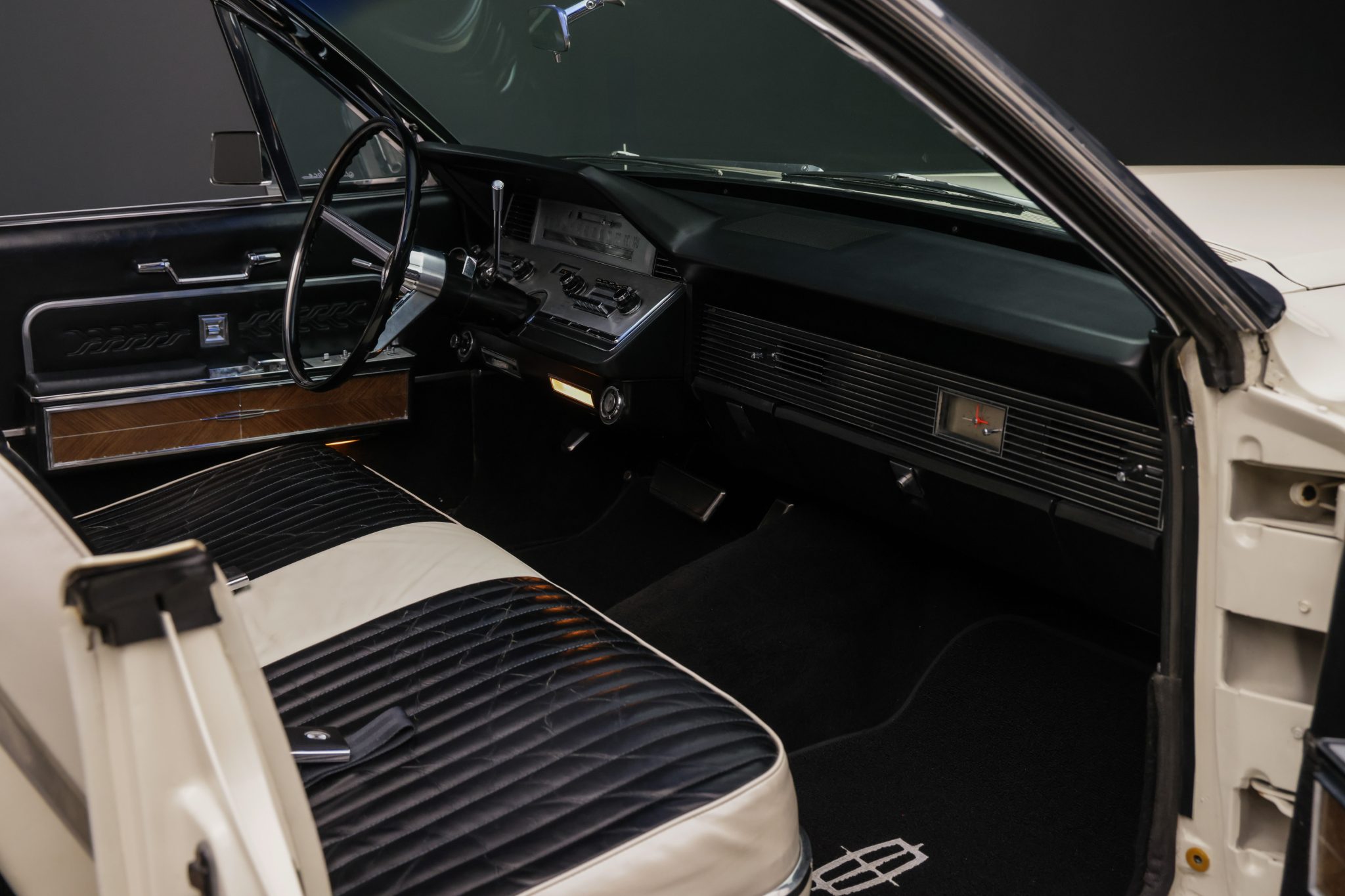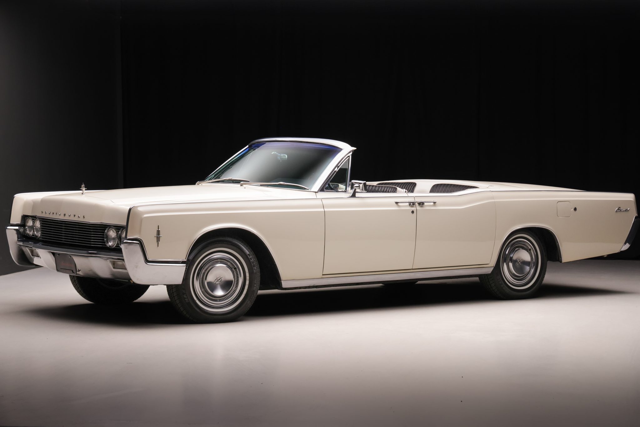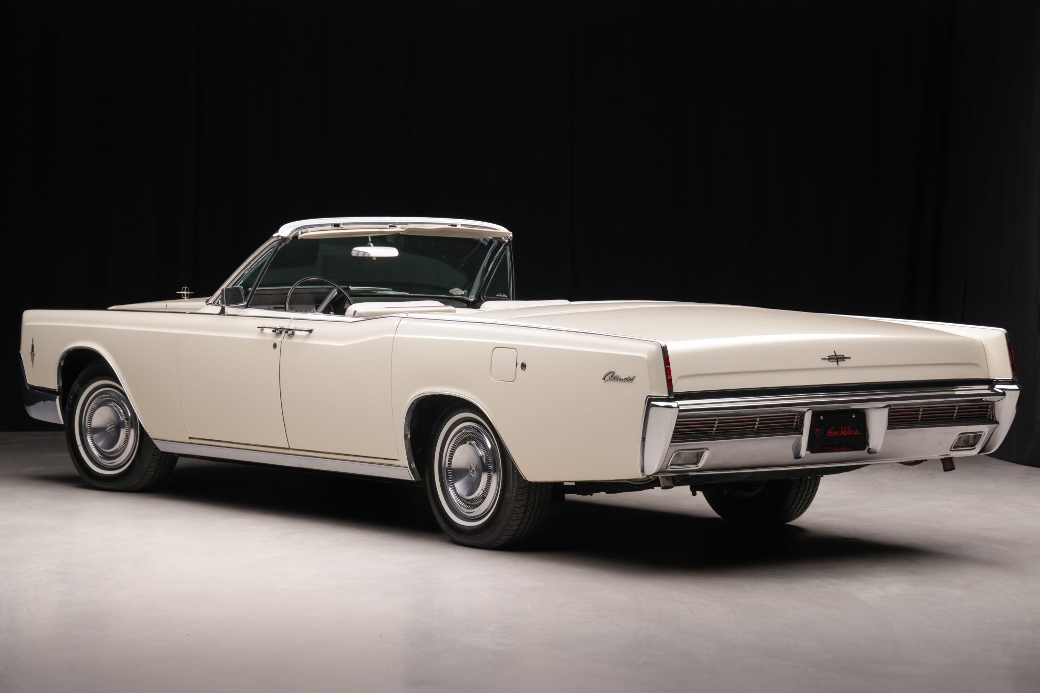 It is finished in Arctic White over white and black leather and is powered by a 462ci V8 linked with a C6 three-speed automatic transmission. Equipment includes a power-operated black convertible top, power steering, power-assisted front disc brakes, 15″ steel wheels with polished covers, a power-adjustable front seat, power windows, cruise control, an AM/FM radio, and a heater.