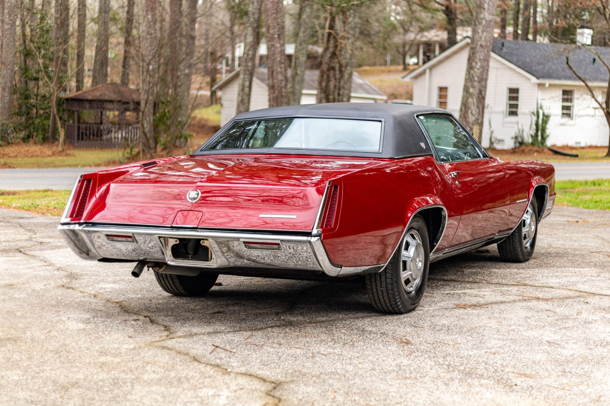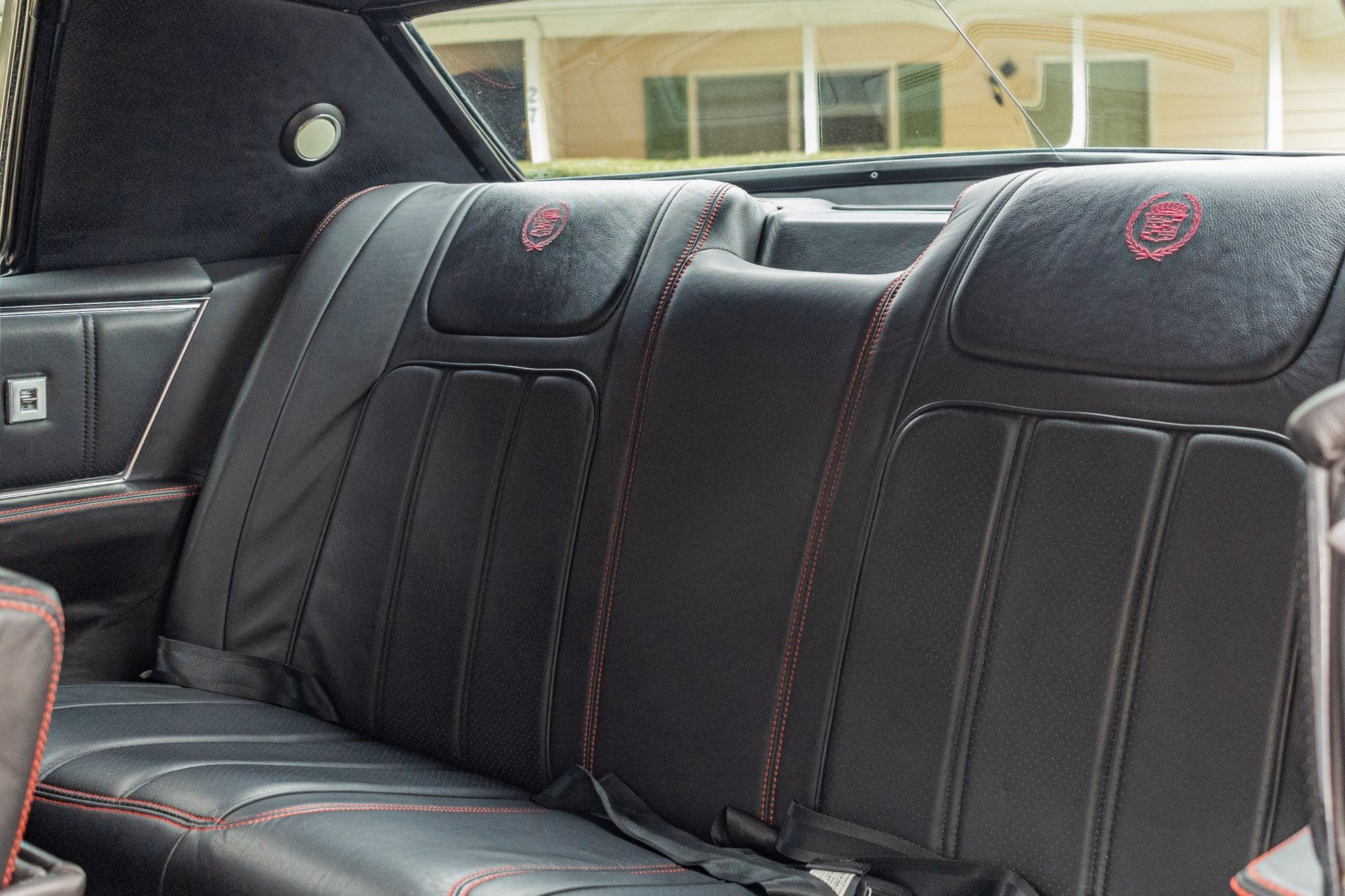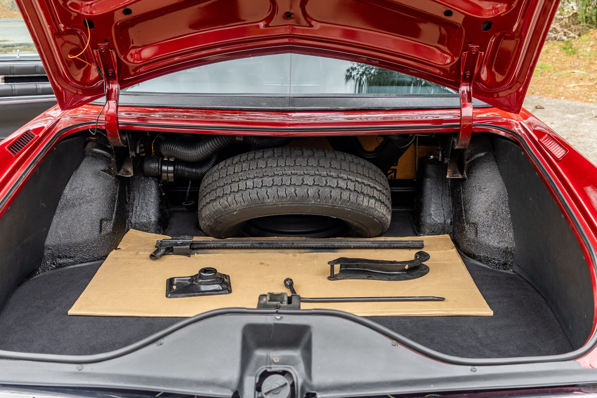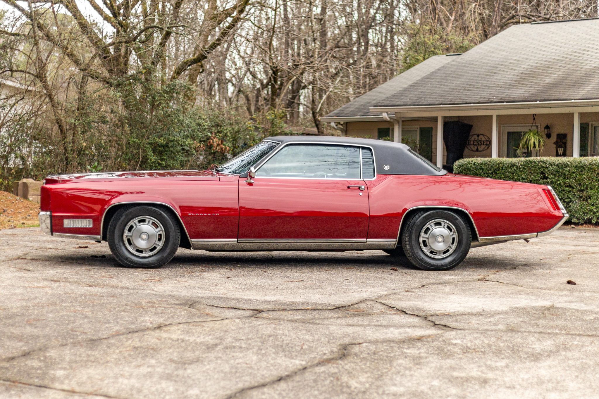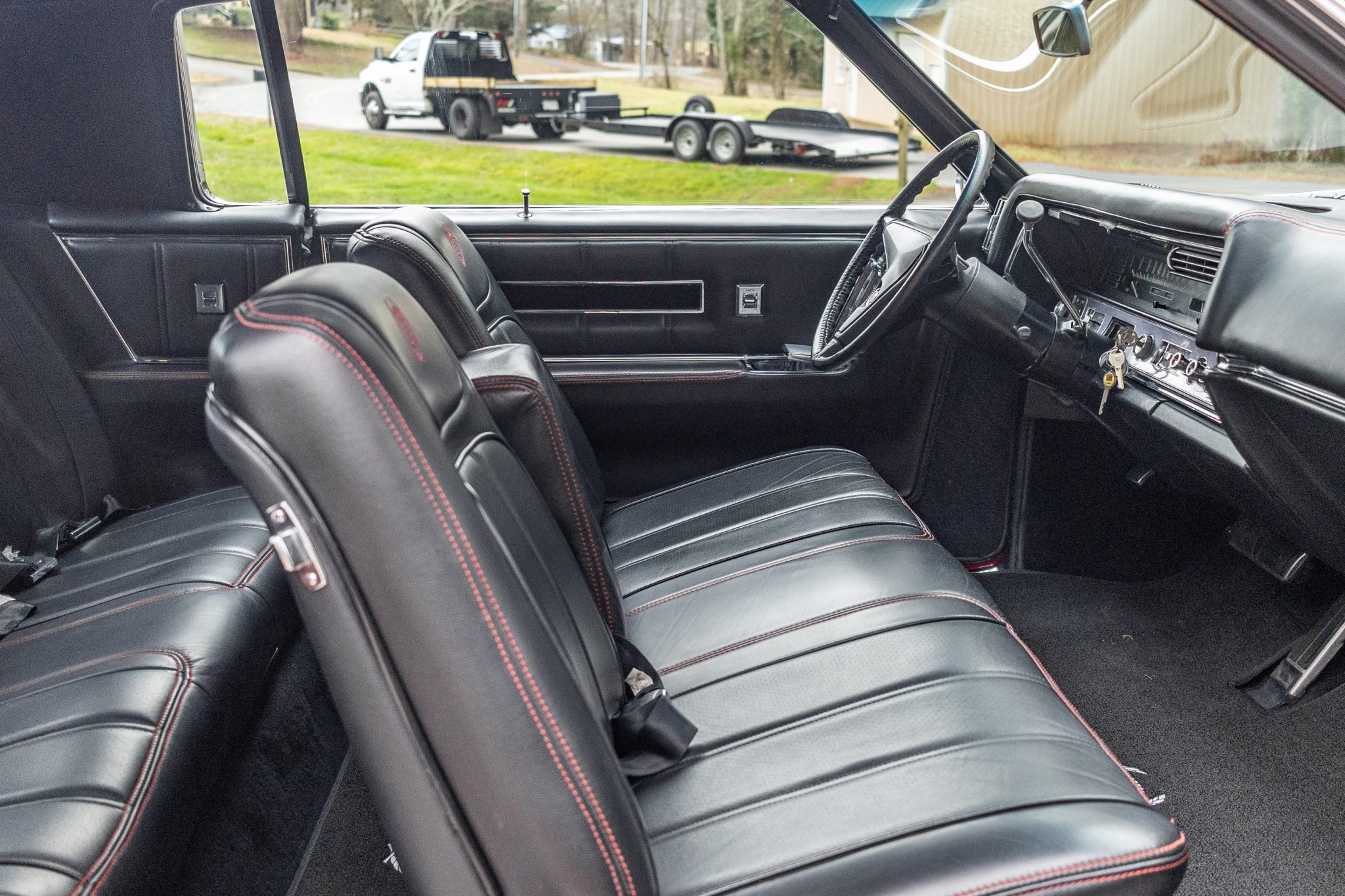 The car is finished in Regent Maroon over Black leather upholstery, and power is sent to the front wheels by a 429ci V8 mated to a three-speed automatic transmission. Equipment includes a black vinyl-covered roof, Twilight Sentinel automatic headlights, chrome bumpers and trim, a power antenna, power steering, 15″ steel wheels with covers, a power-operated front split bench, power front windows, a digital stereo, cruise control, and automatic climate control.