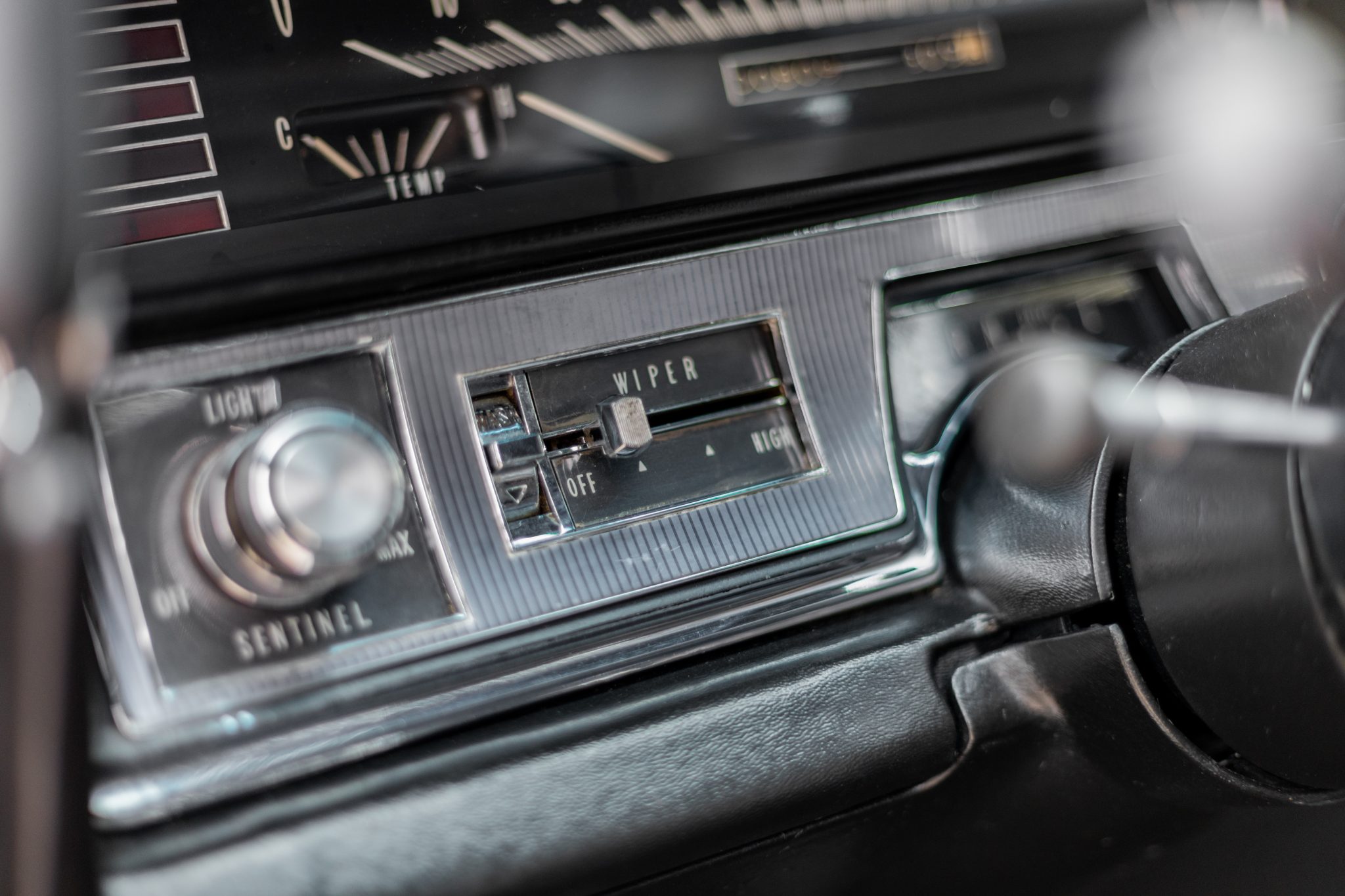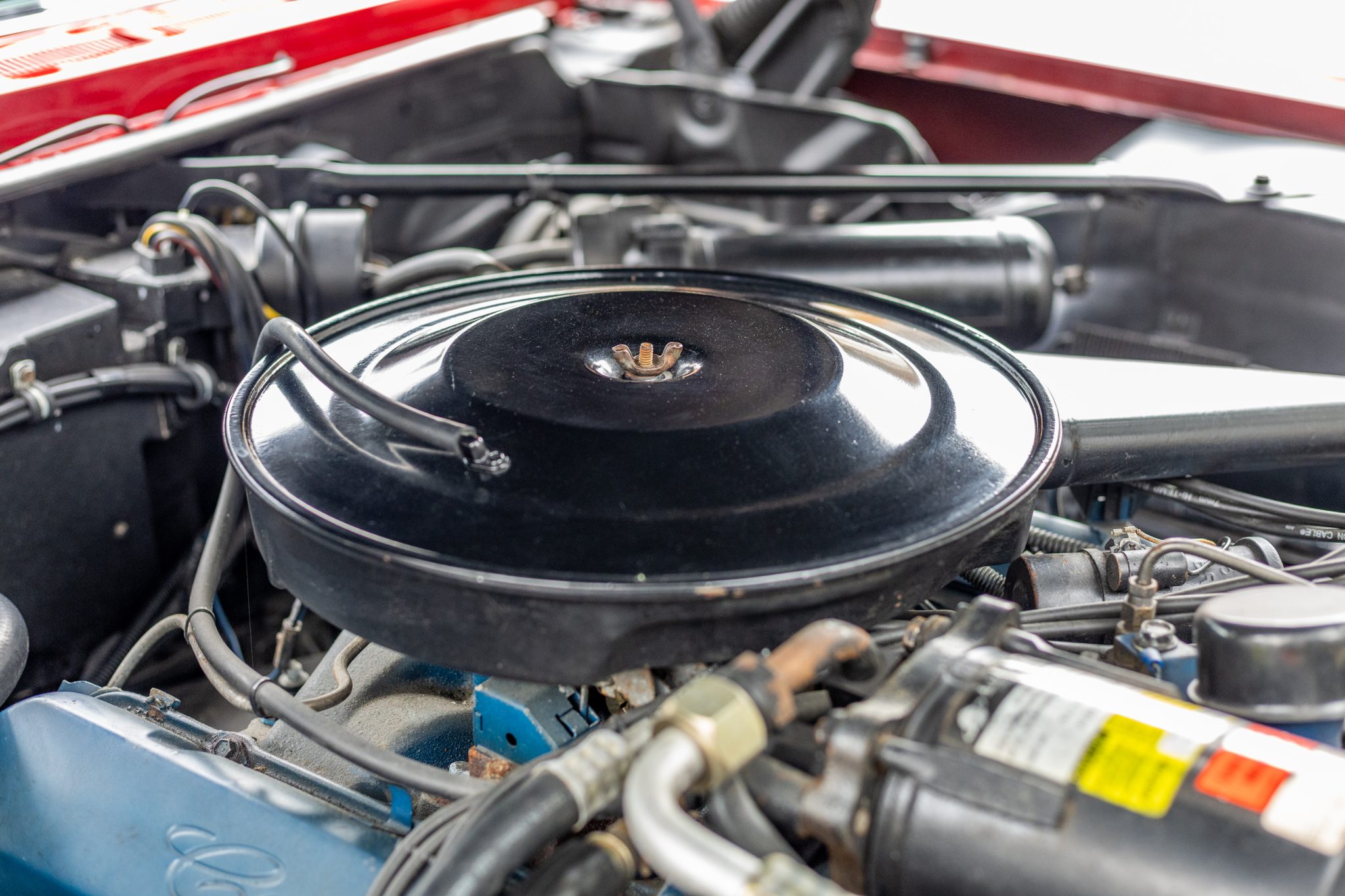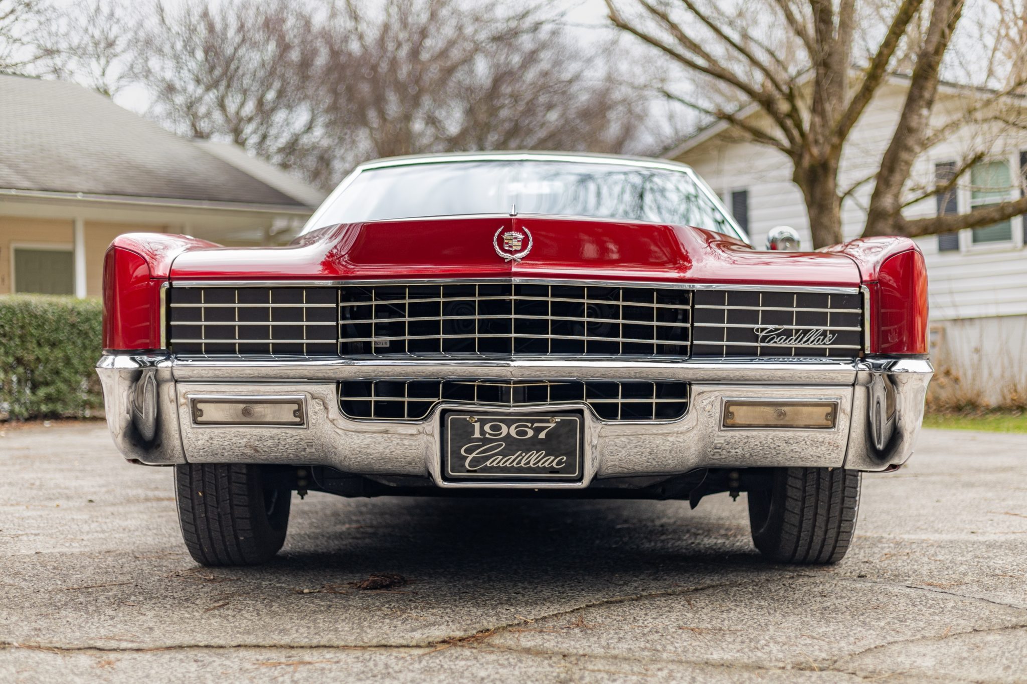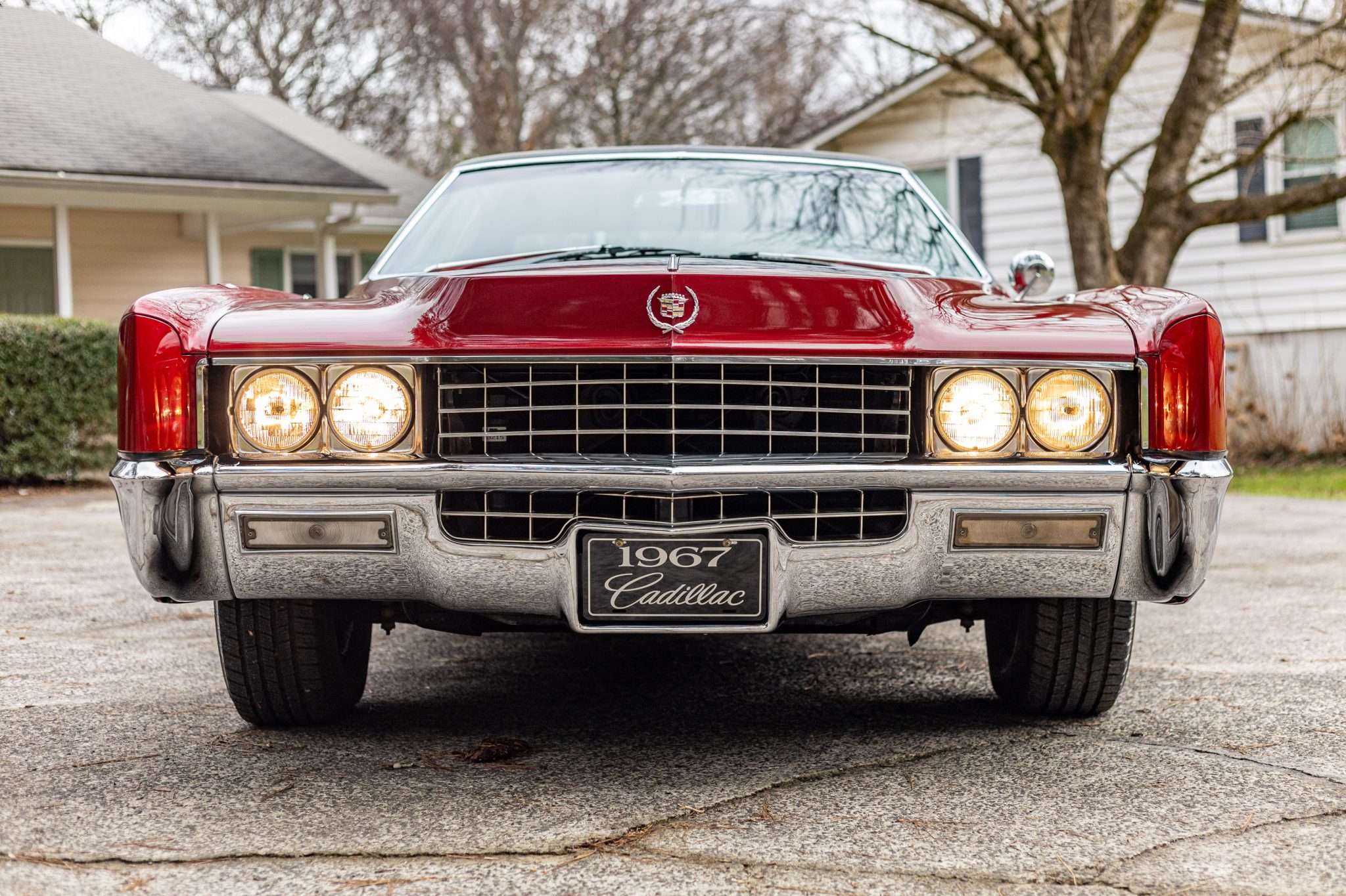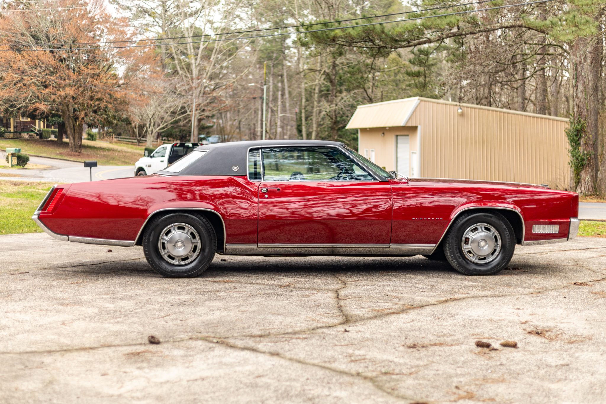 The car is finished in Regent Maroon over Black leather upholstery, and power is sent to the front wheels by a 429ci V8 mated to a three-speed automatic transmission. Equipment includes a black vinyl-covered roof, Twilight Sentinel automatic headlights, chrome bumpers and trim, a power antenna, power steering, 15″ steel wheels with covers, a power-operated front split bench, power front windows, a digital stereo, cruise control, and automatic climate control.