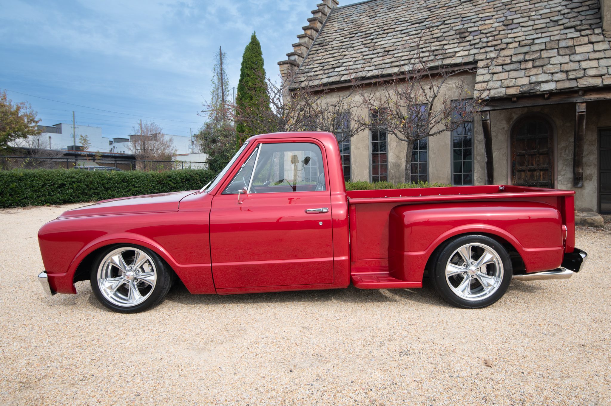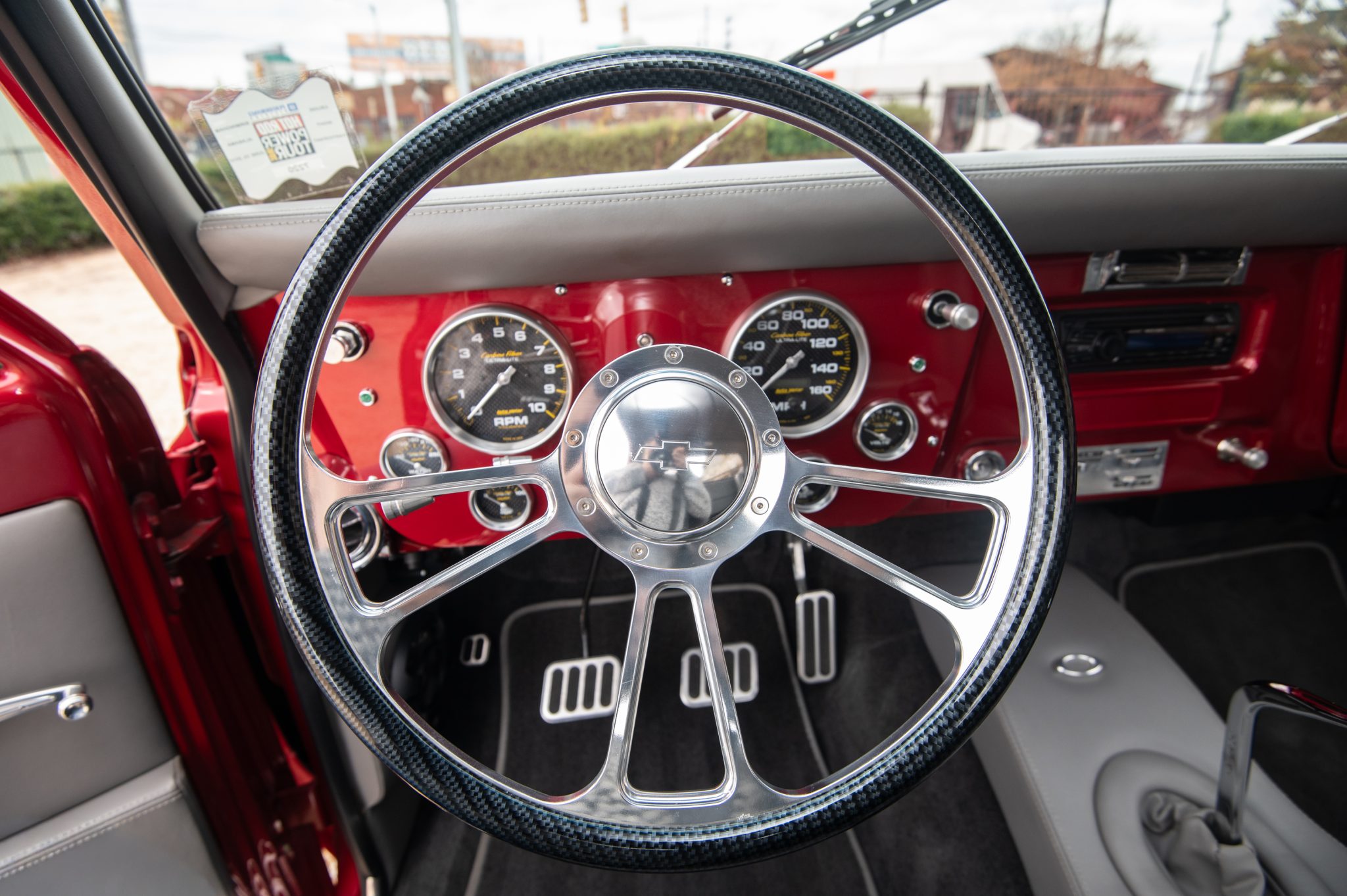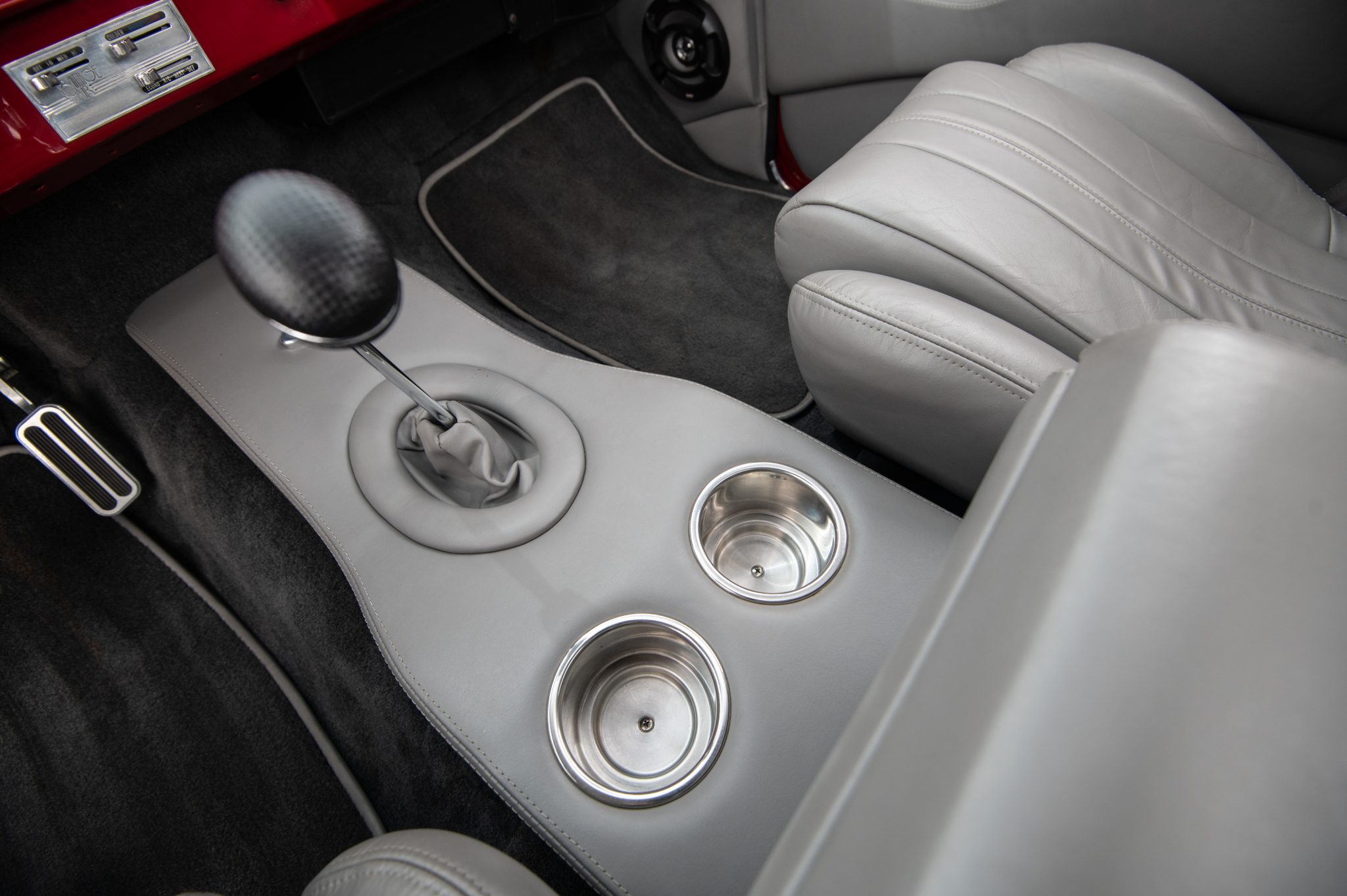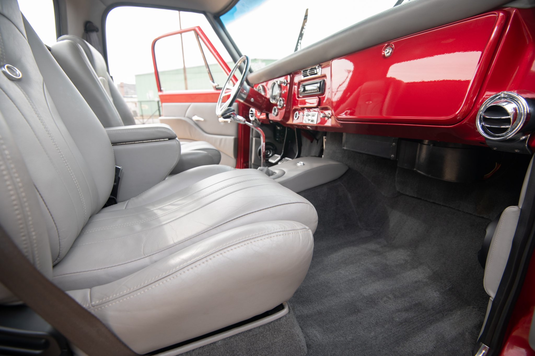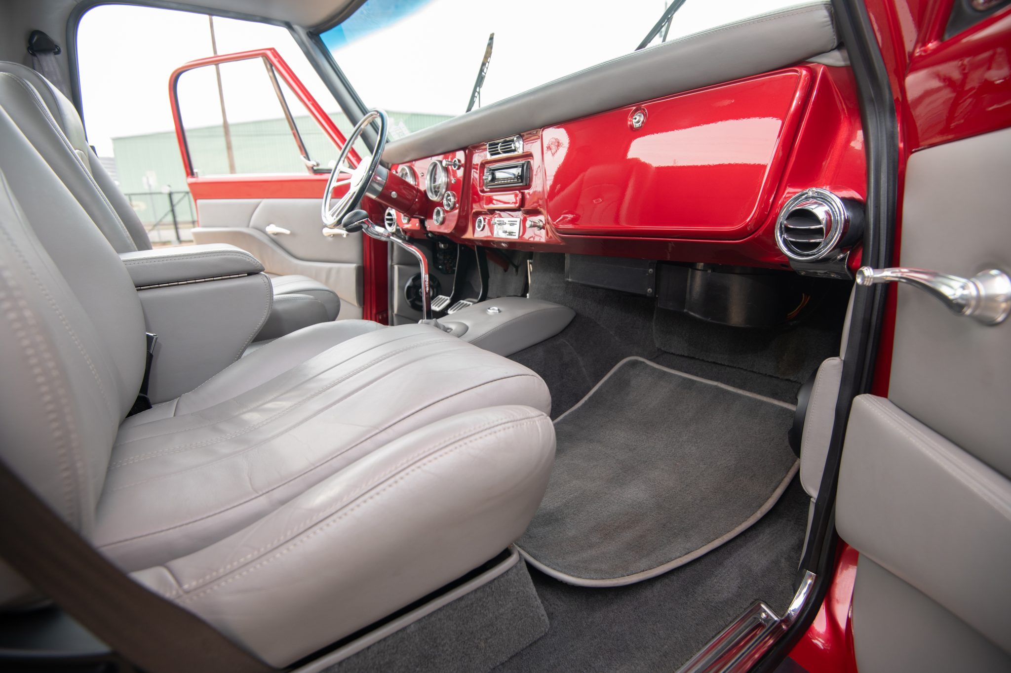 Completed primarily between 2006 and 2010, “Candy” features a twin-carbureted 496ci V8, a Tremec TKO 600 five-speed manual transmission, a 3.73:1 limited-slip differential, air suspension, power steering, disc brakes, Foose 18″ forged wheels, and a dual exhaust with cut-outs. Her gray interior has bucket seats, Sony audio, and air conditioning.