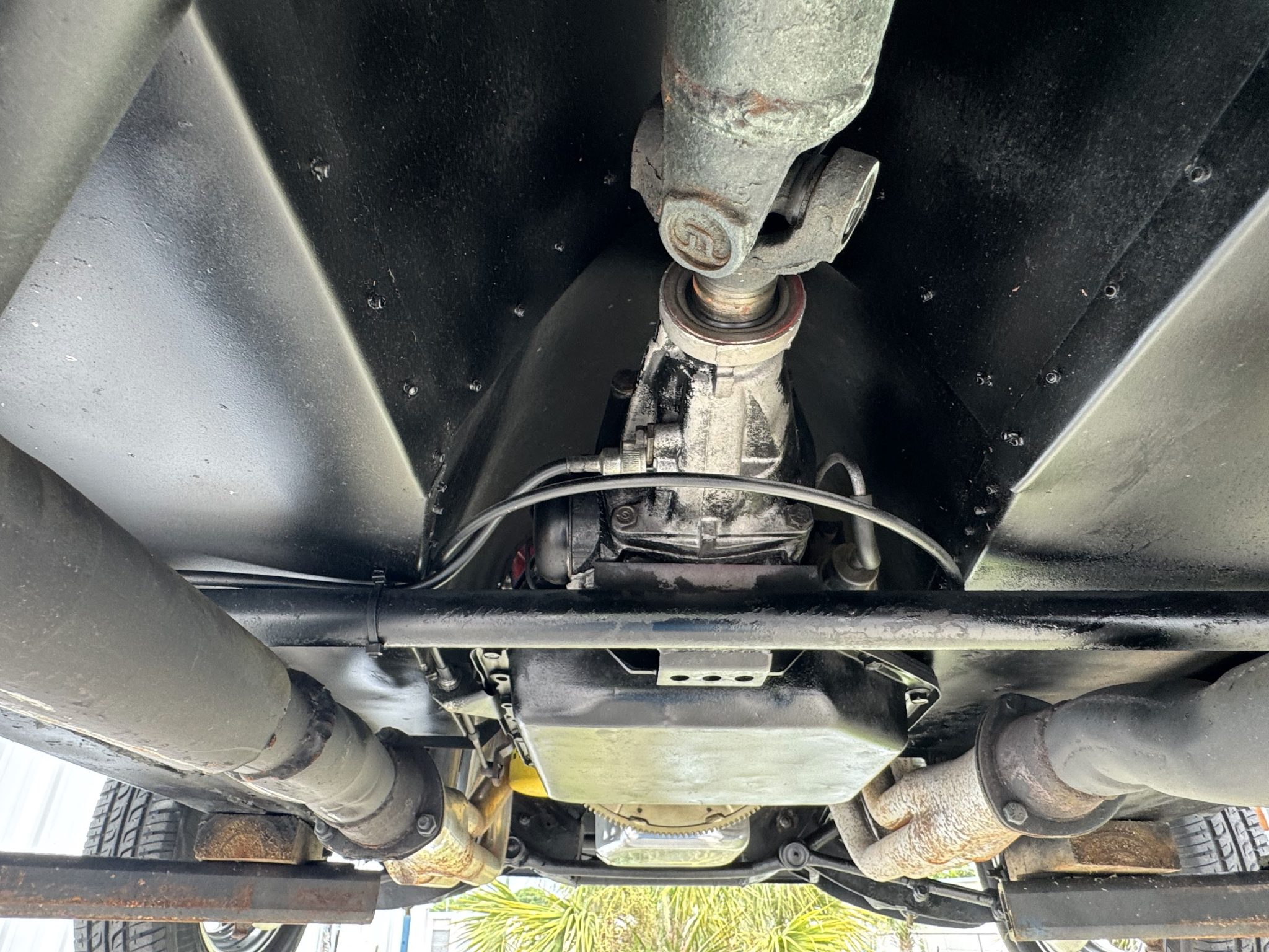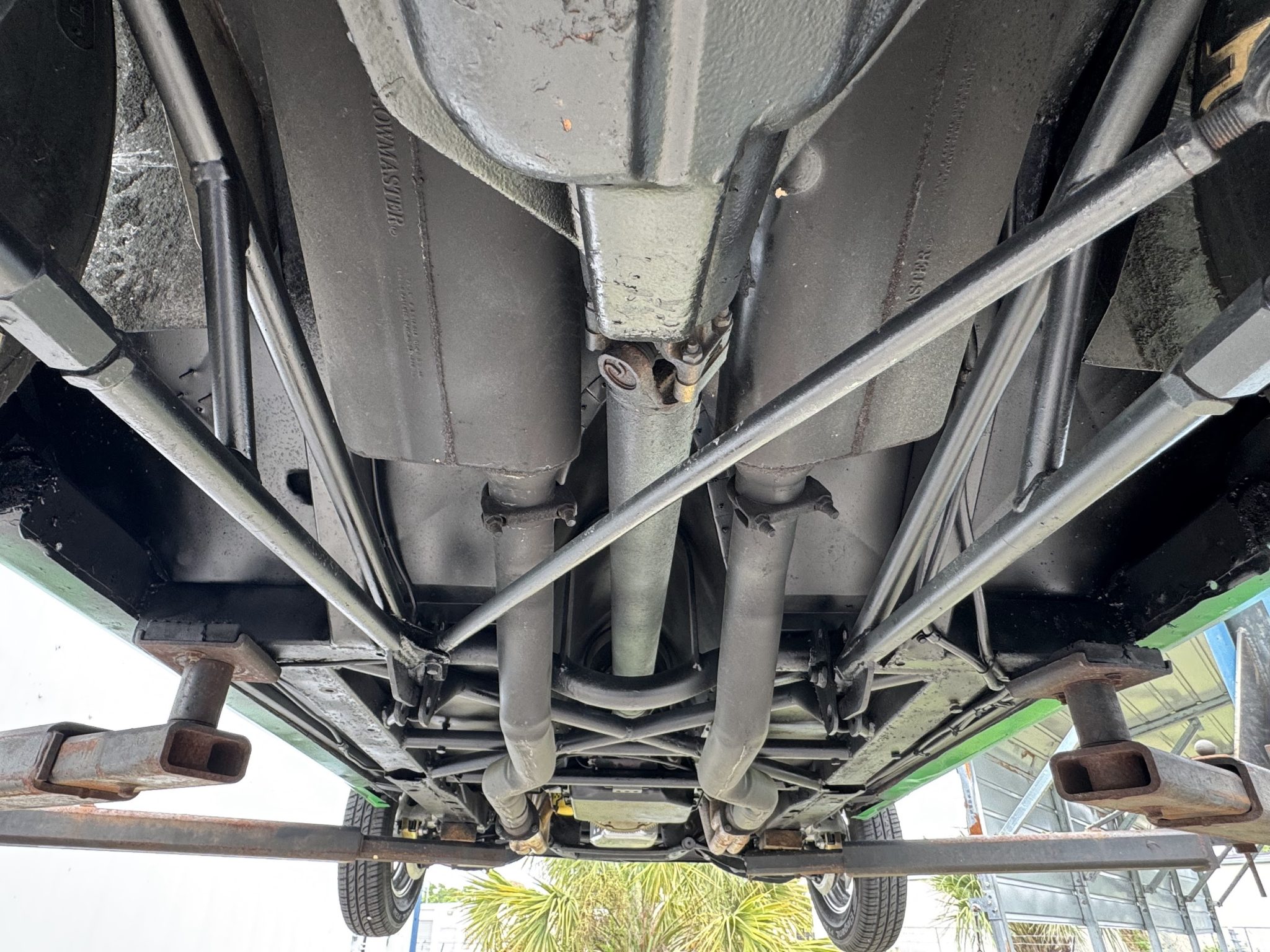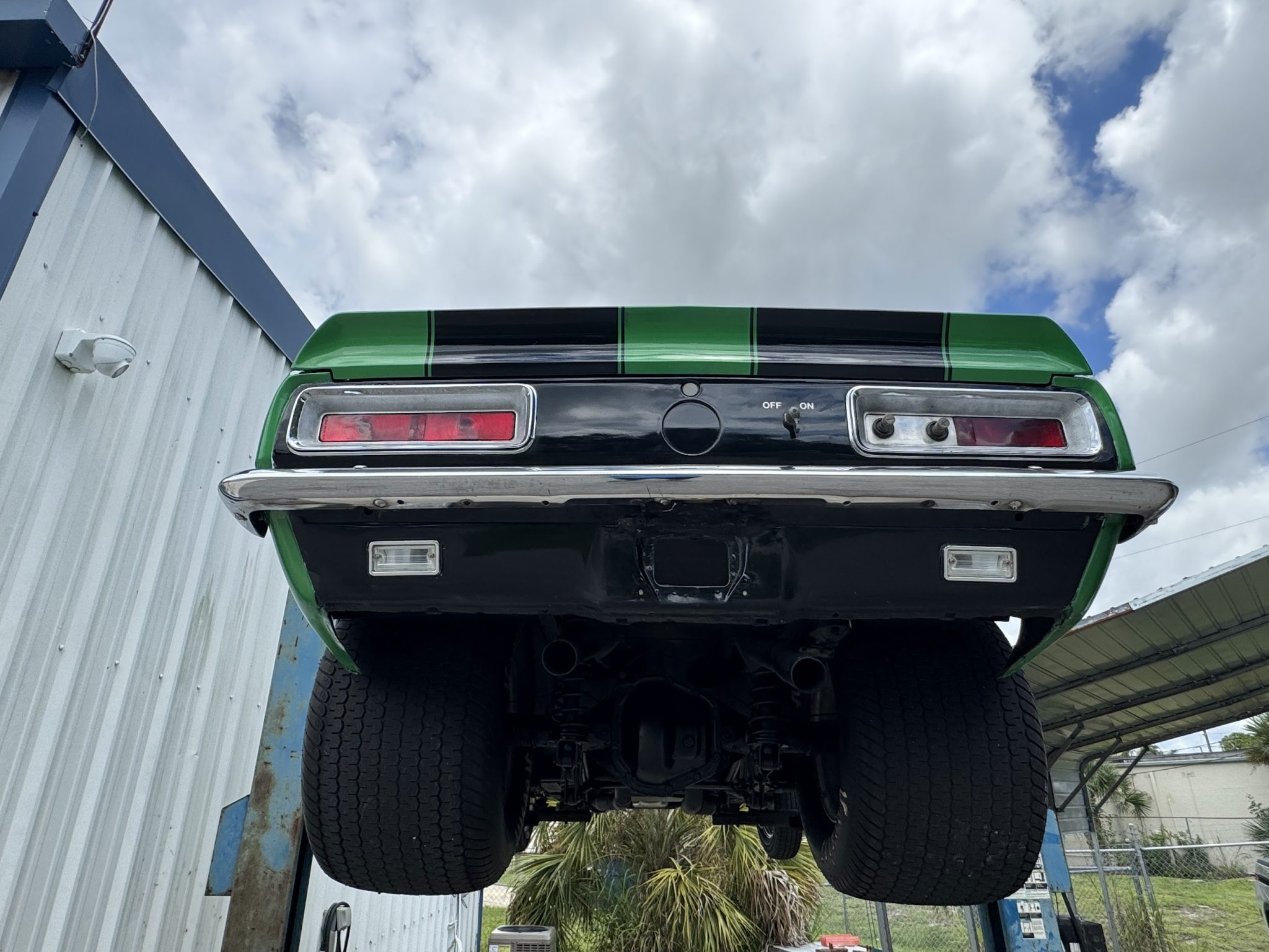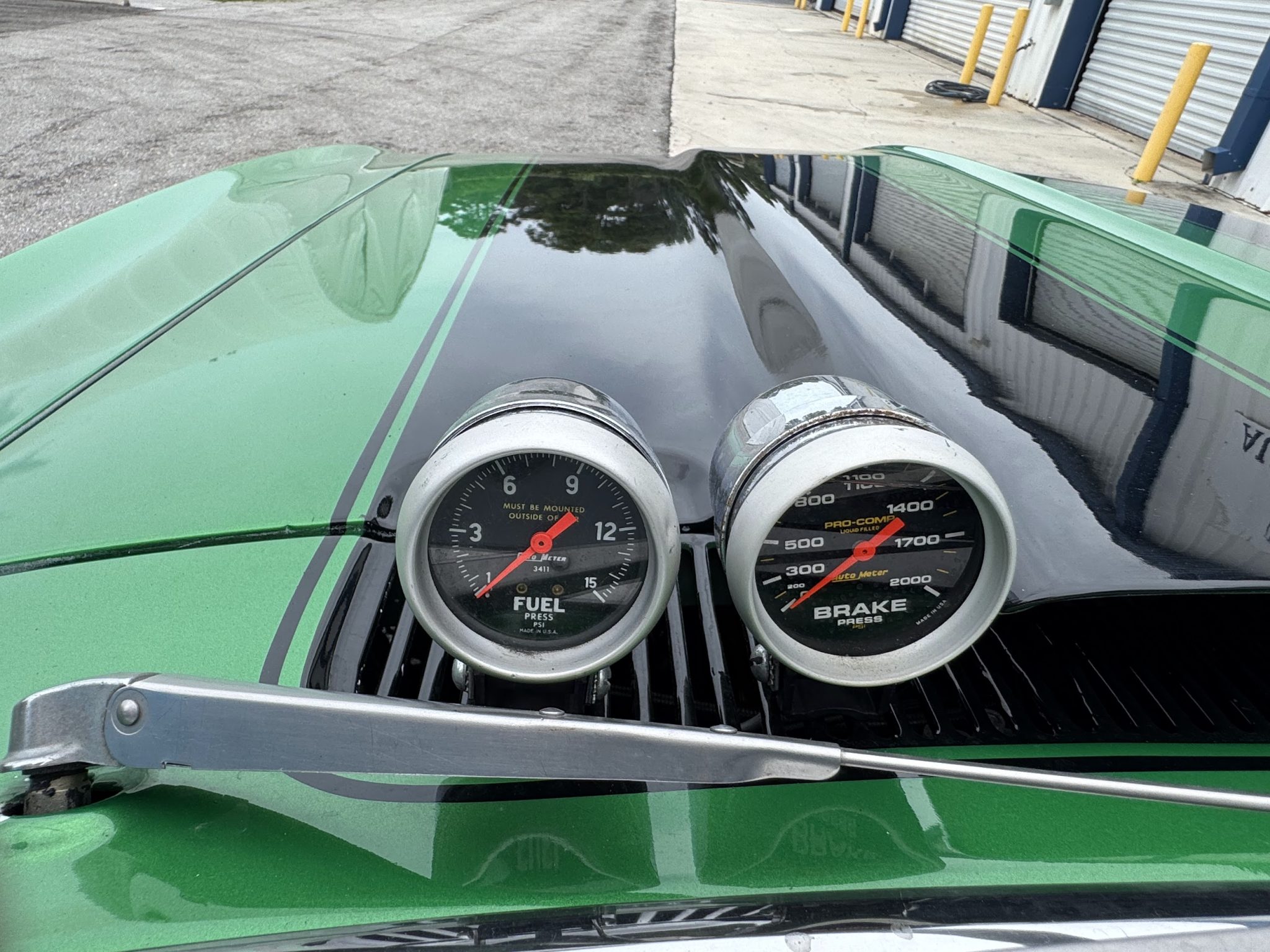 This 1967 Chevrolet Camaro coupe was modified during a pro-street-style build under prior ownership that involved the installation of a 383ci stroker V8 linked to a TH350 three-speed automatic transmission and a Dana 60 rear end with a 5.33:1 differential and Strange Engineering axle shafts. The back-halved chassis features adjustable ladder bars and coilovers at the rear along with power-assisted front disc brakes with drilled and slotted rotors, and the rear wheel wells have been tubbed to accommodate 15×15″ Centerline rear wheels. A roll cage surrounds Procar bucket seats with RCI harnesses, and a Hurst Quarter Stick shifter is installed along with AutoMeter gauges and a Sony cassette stereo unit.